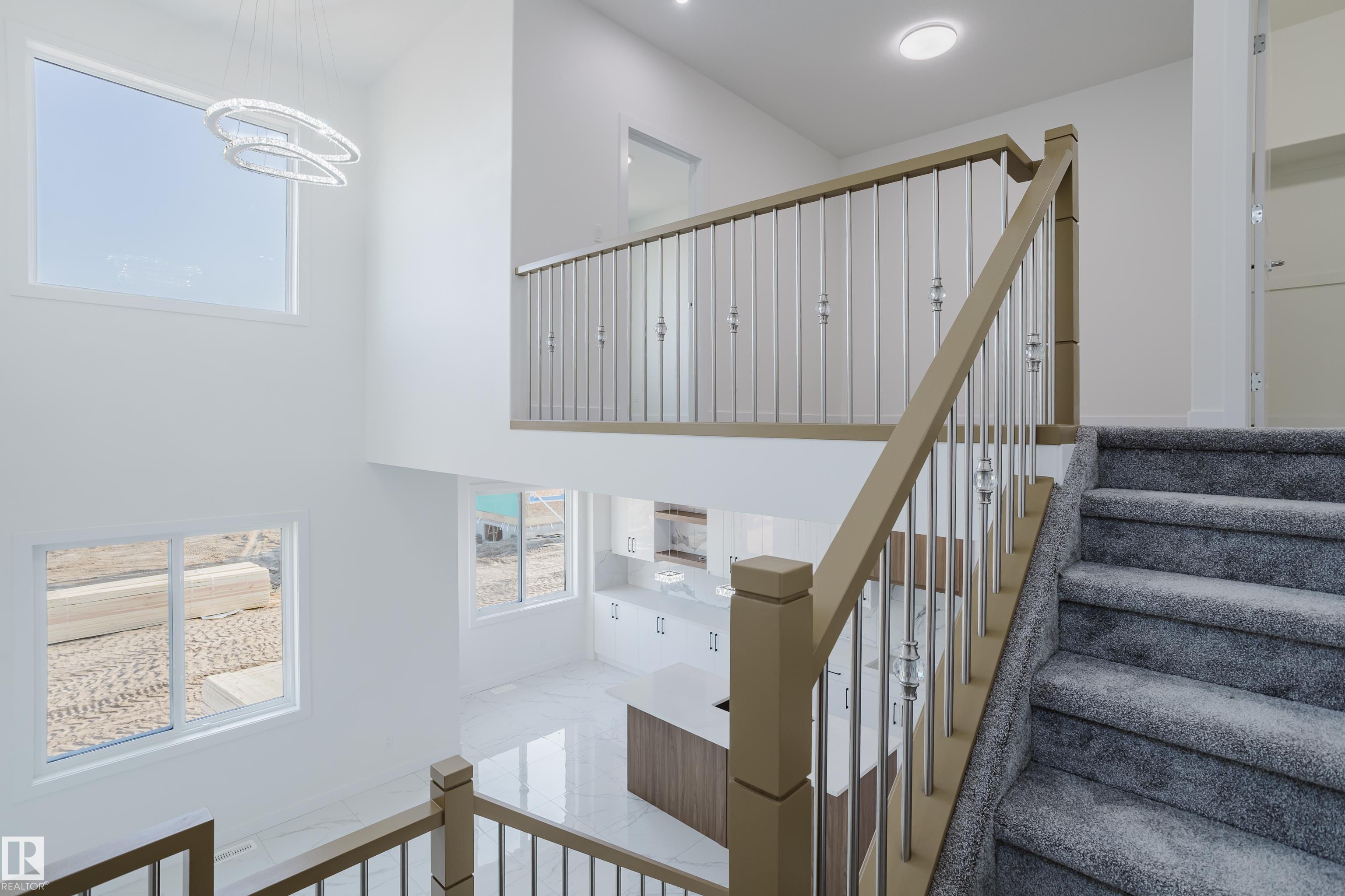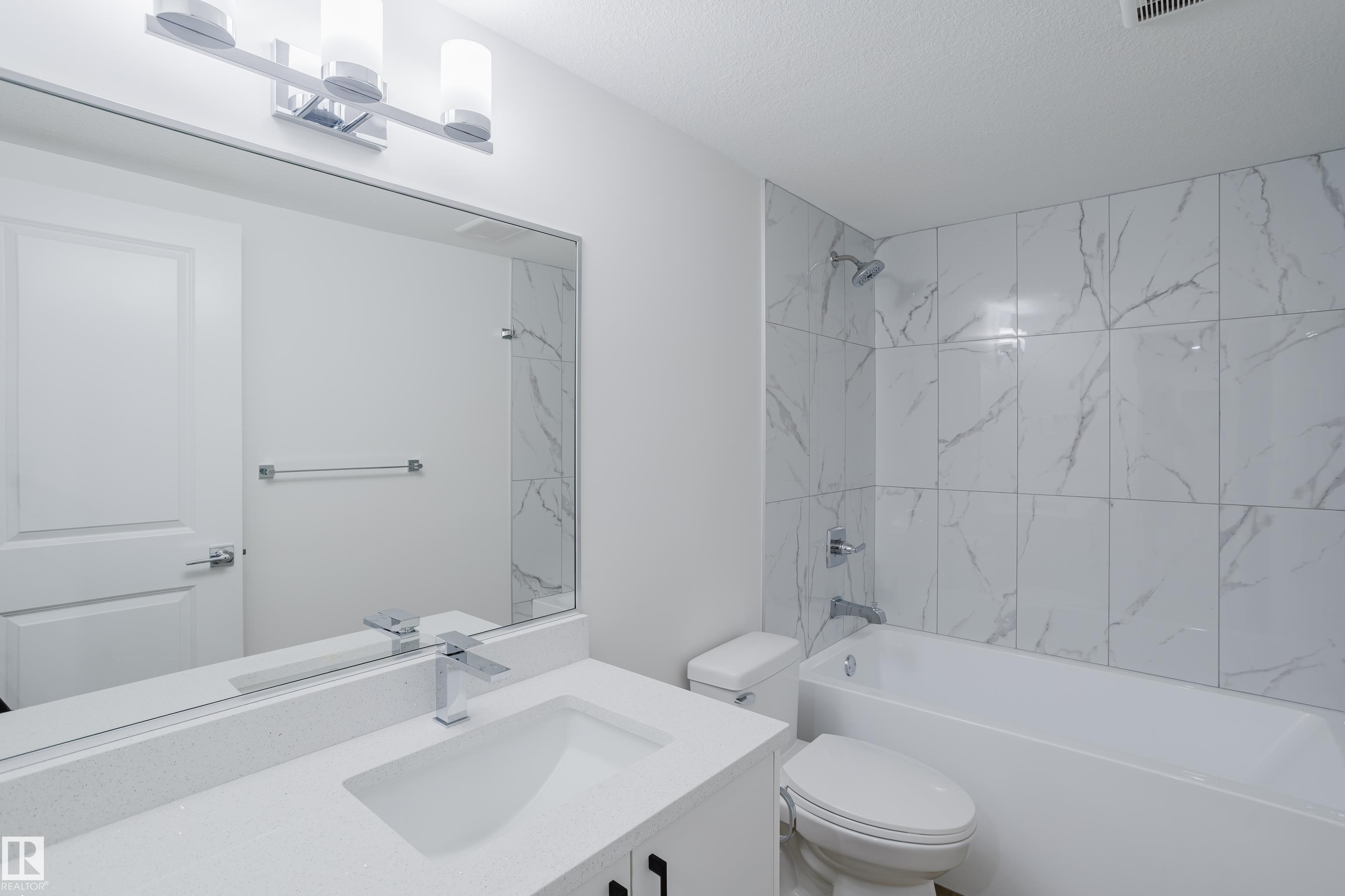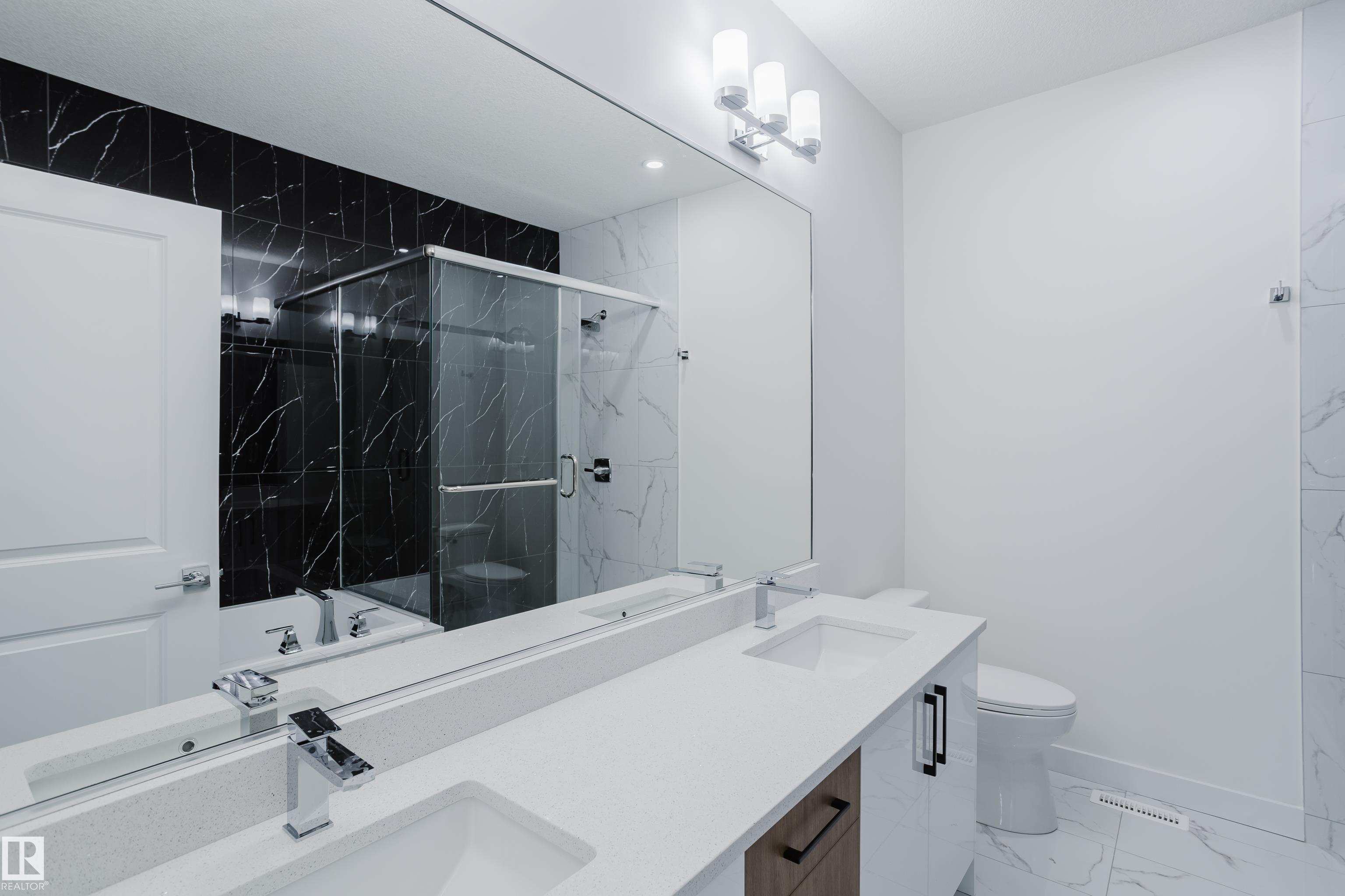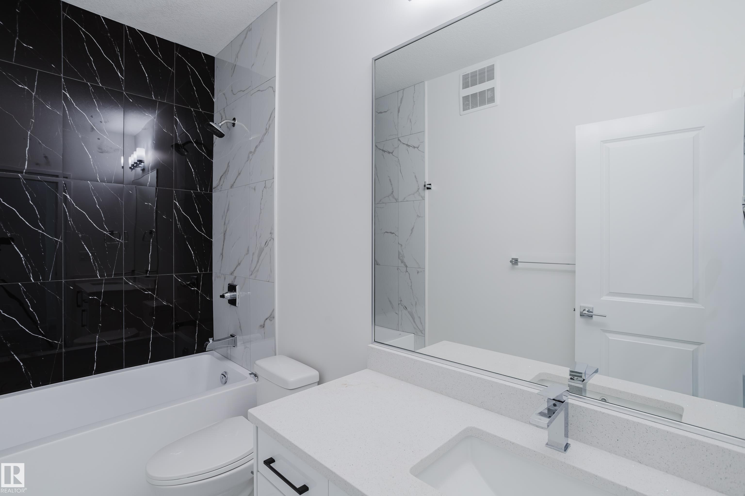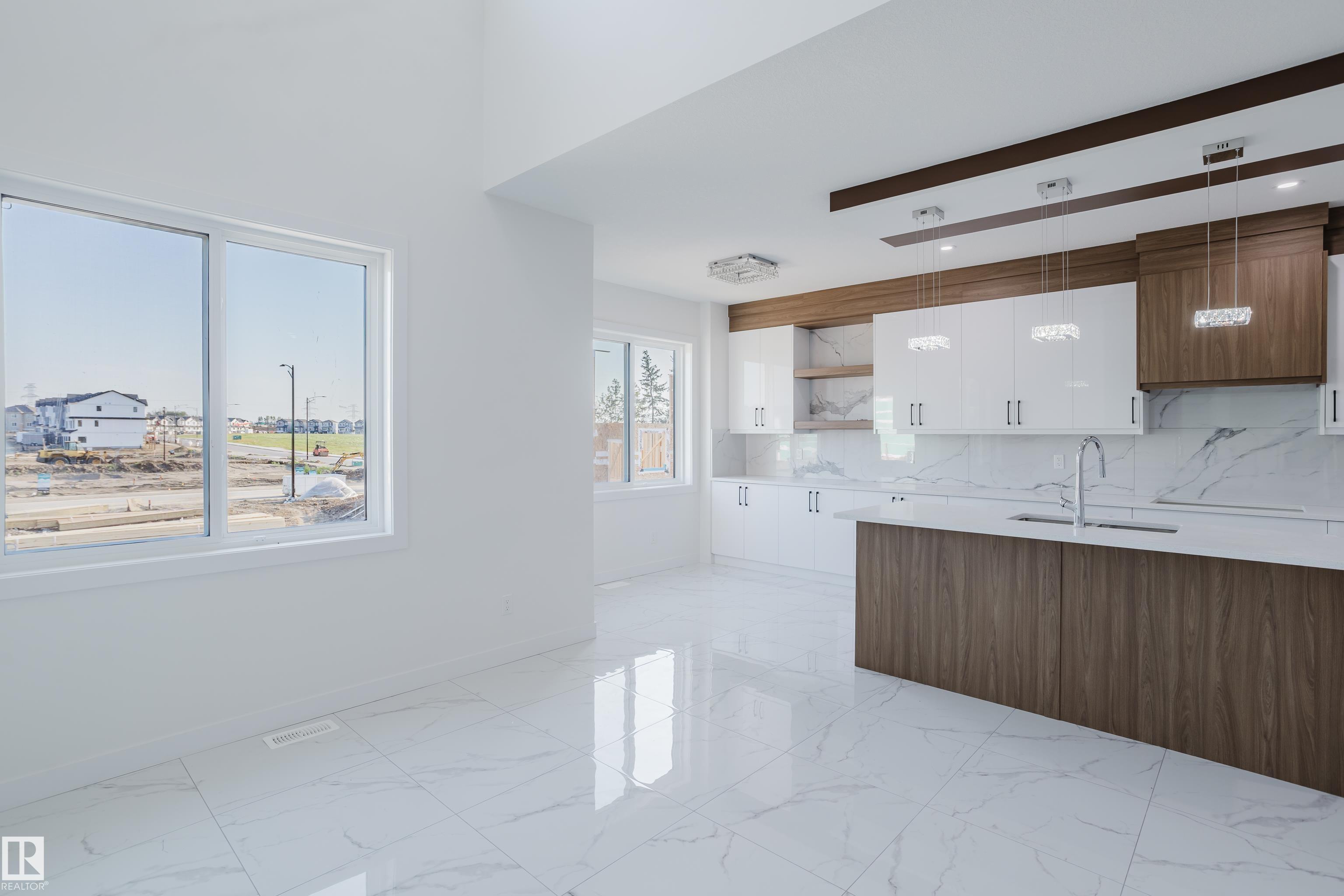Welcome to this captivating half duplex in the highly desirable community of Aster, proudly built by Victory Homes, a trusted builder recognized for quality construction, attention to detail, and years of experience. The main floor offers a spacious layout with tile flooring, an extended kitchen with ample cabinetry and counter space, a separate spice kitchen, a versatile den, and a full bathroom with a standing shower. The open to above living room creates a striking centerpiece with abundant natural light and a grand sense of space. Upstairs you will find three well-sized bedrooms including a primary suite with a five piece ensuite, along with a bonus room that adds extra flexibility for your family's needs. The fully finished basement is developed with a legal two bedroom suite that provides additional living space or excellent rental potential. Located close to schools, shopping, parks, and major roadways, this home combines functionality and value in a prime location.