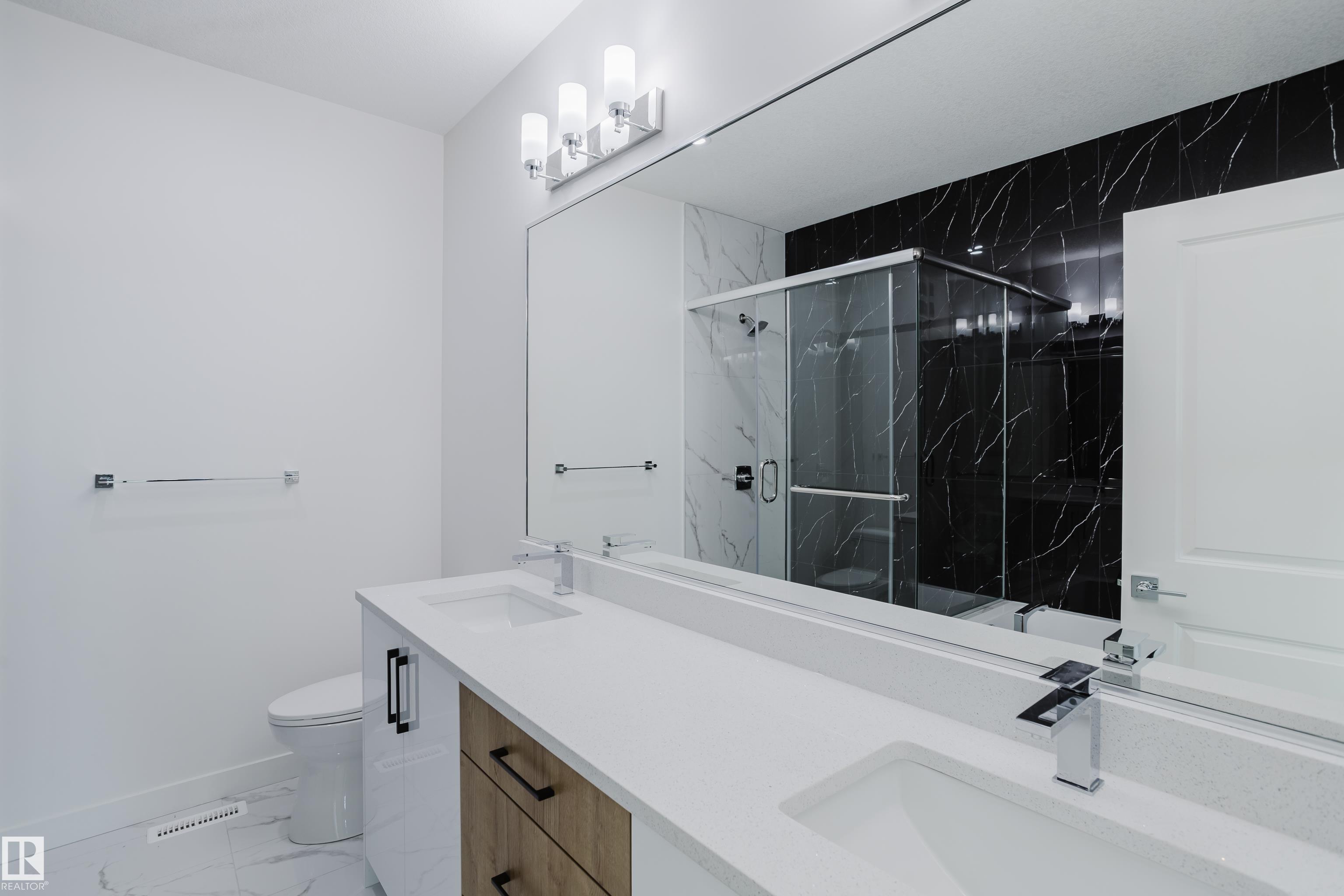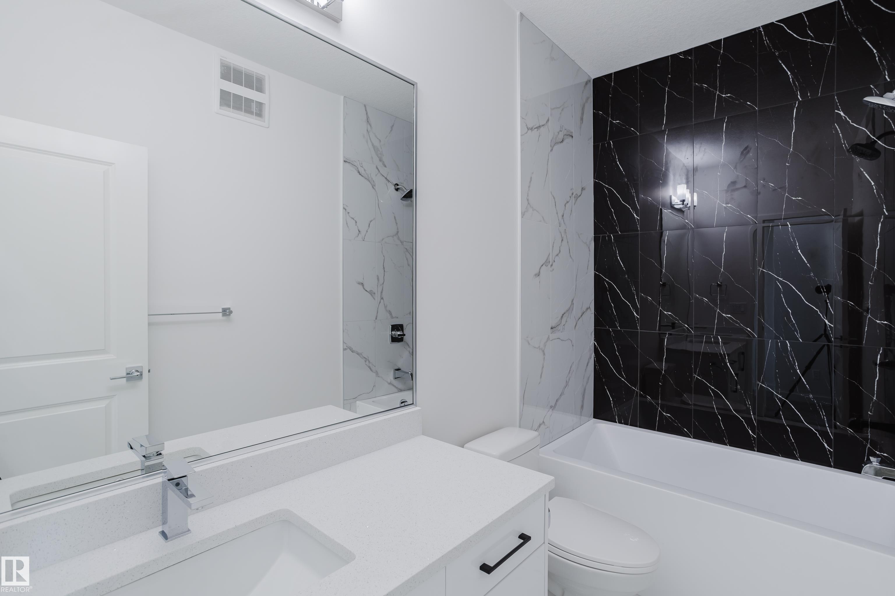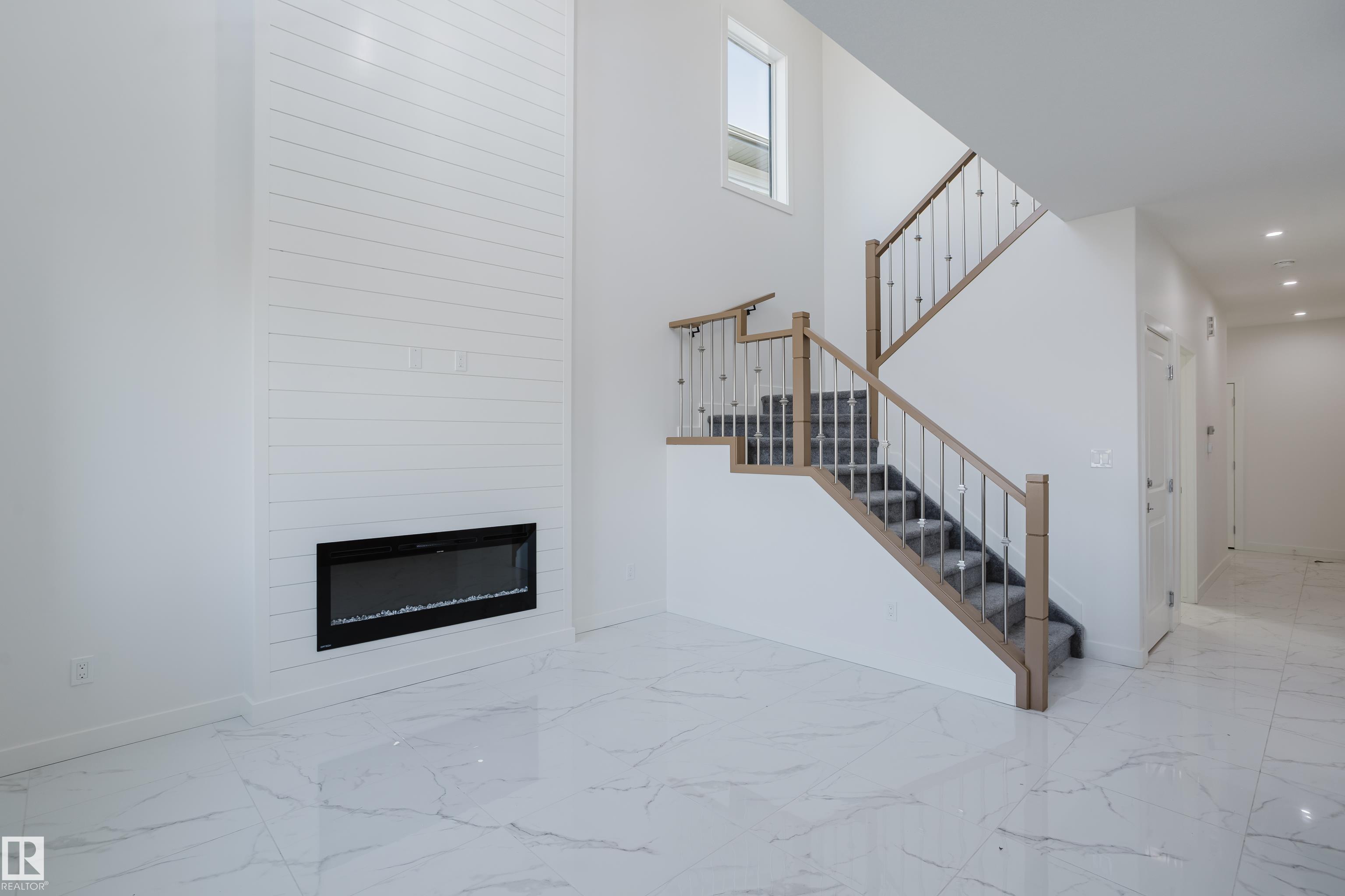 Welcome to this captivating half duplex in the highly desirable community of Aster. The main floor offers a spacious layout with tile flooring, an extended kitchen with ample cabinetry and counter space, a separate spice kitchen, a versatile den, and a full bathroom with a standing shower. The open to above living room creates a striking centerpiece with abundant natural light and a grand sense of space. Upstairs you will find three well sized bedrooms including a primary suite with a five piece ensuite, along with a bonus room that adds extra flexibility for your family's needs. The fully finished basement is developed with a legal two bedroom suite that provides additional living space or excellent rental potential. Located close to schools, shopping, parks, and major roadways, this home combines functionality and value in a prime location.
