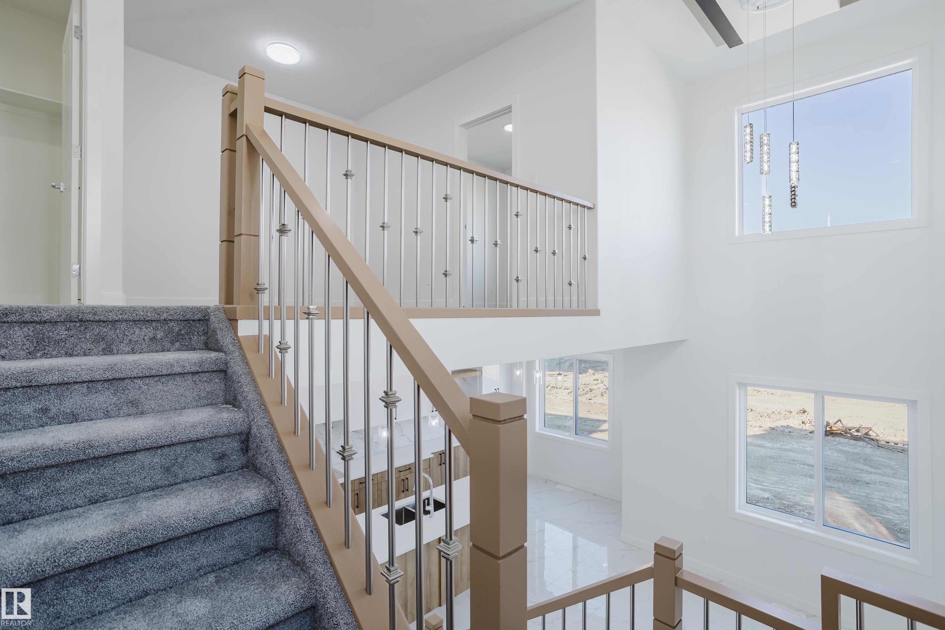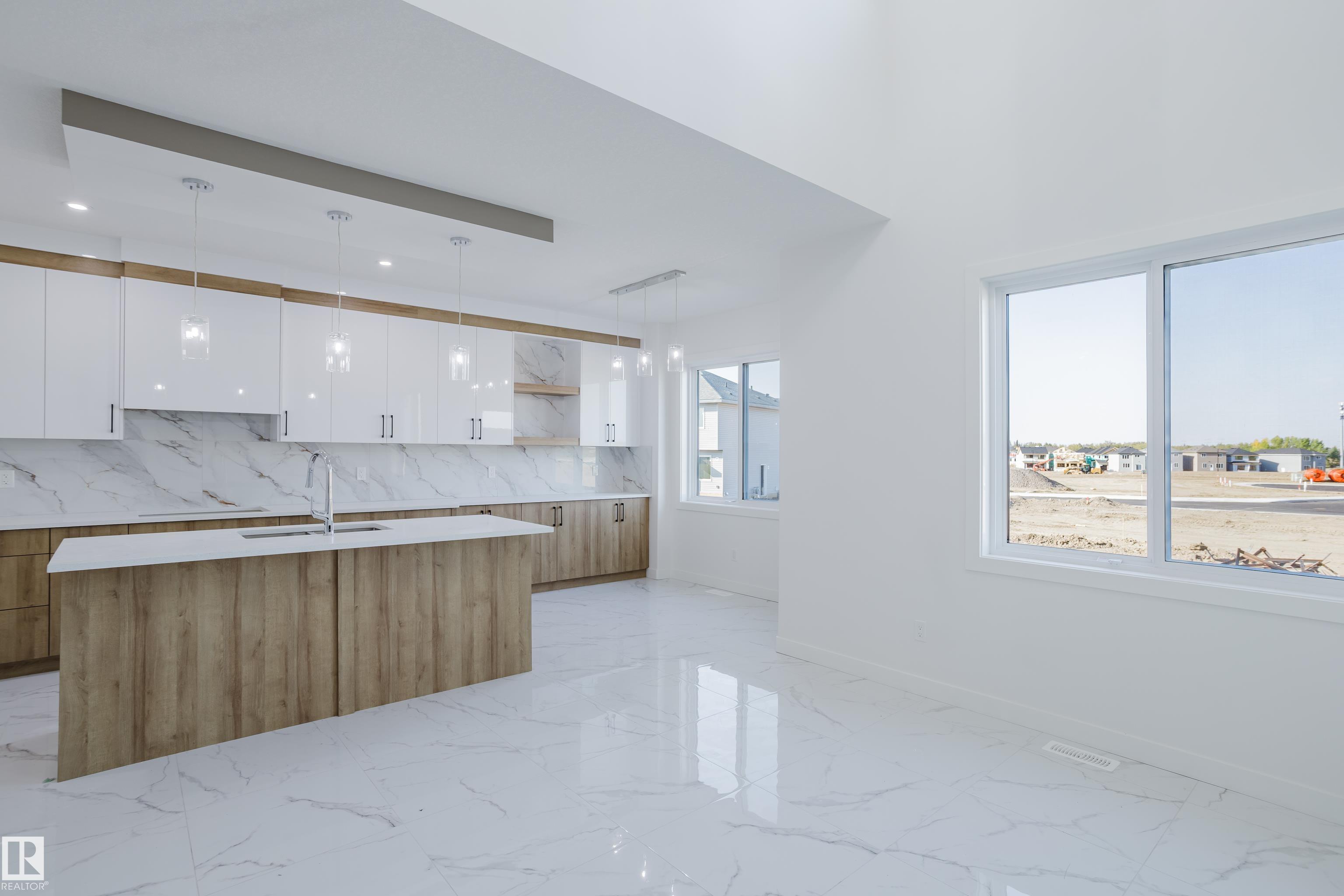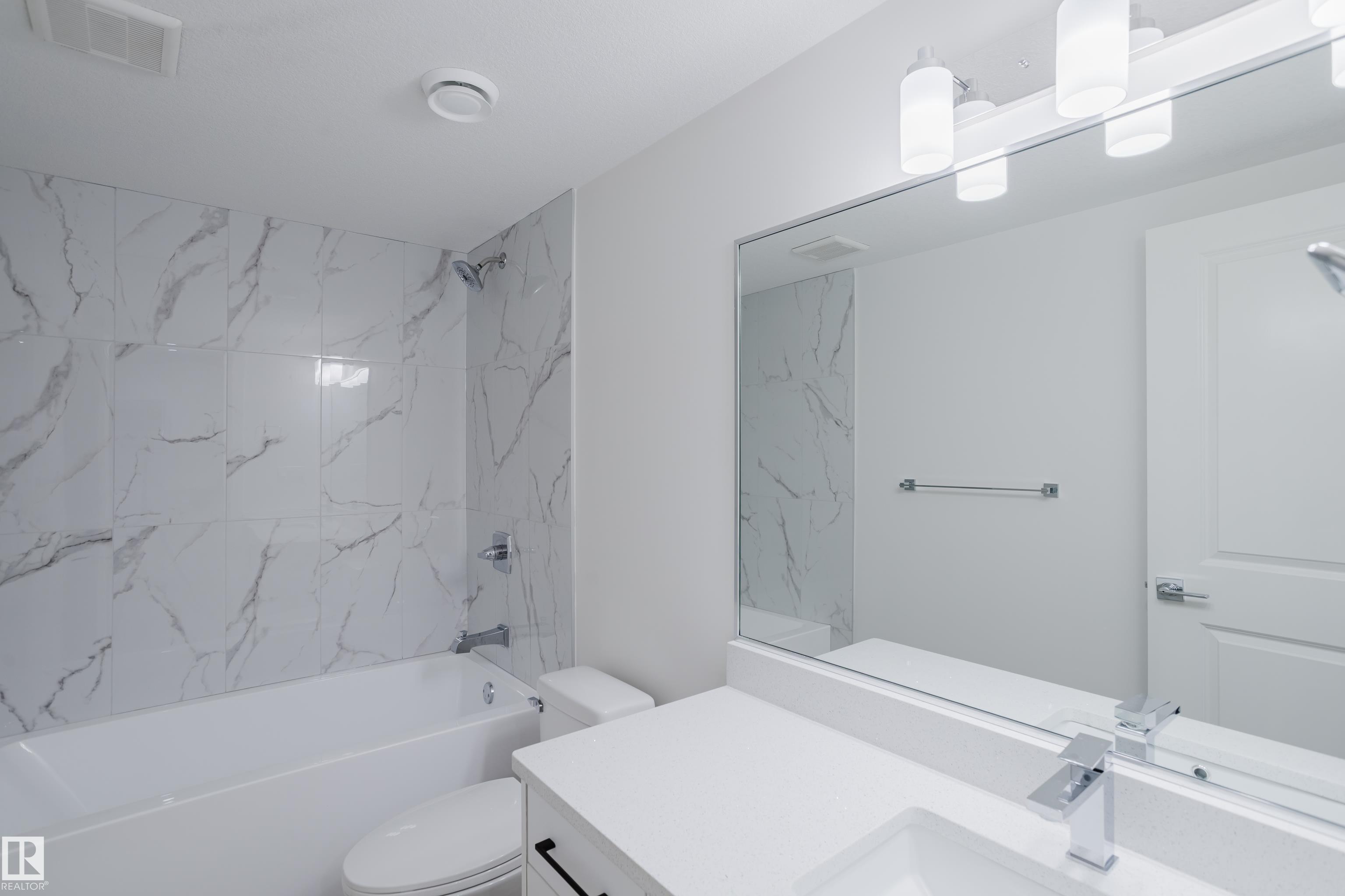 Welcome to this captivating half duplex in the highly desirable community of Aster. The main floor offers a spacious layout with tile flooring, an extended kitchen with ample cabinetry and counter space, a separate spice kitchen, a versatile den, and a full bathroom with a standing shower. The open to above living room creates a striking centerpiece with abundant natural light and a grand sense of space. Upstairs you will find three well sized bedrooms including a primary suite with a five piece ensuite, along with a bonus room that adds extra flexibility for your family's needs. The fully finished basement is developed with a legal two bedroom suite that provides additional living space or excellent rental potential. Located close to schools, shopping, parks, and major roadways, this home combines functionality and value in a prime location.
