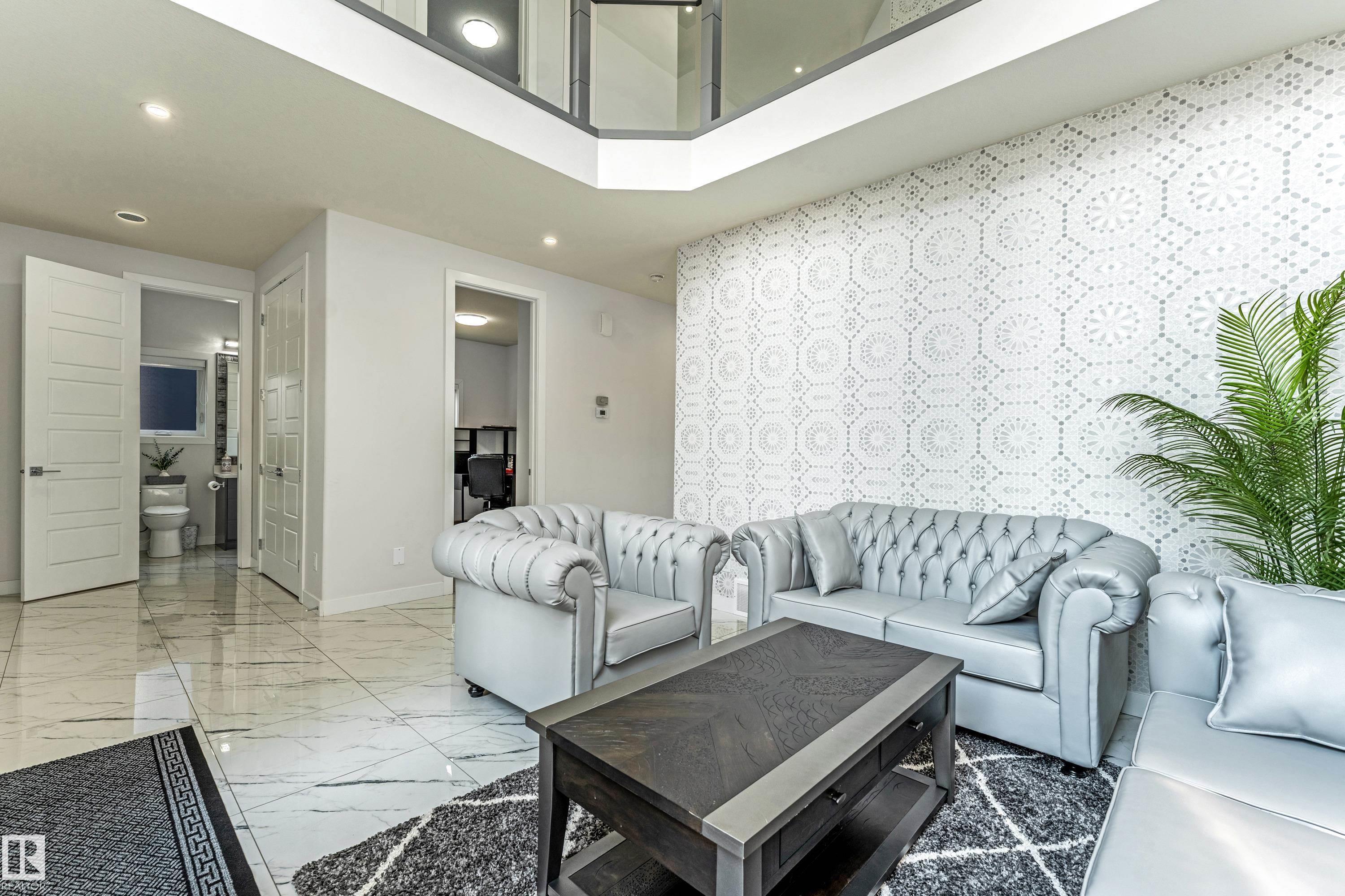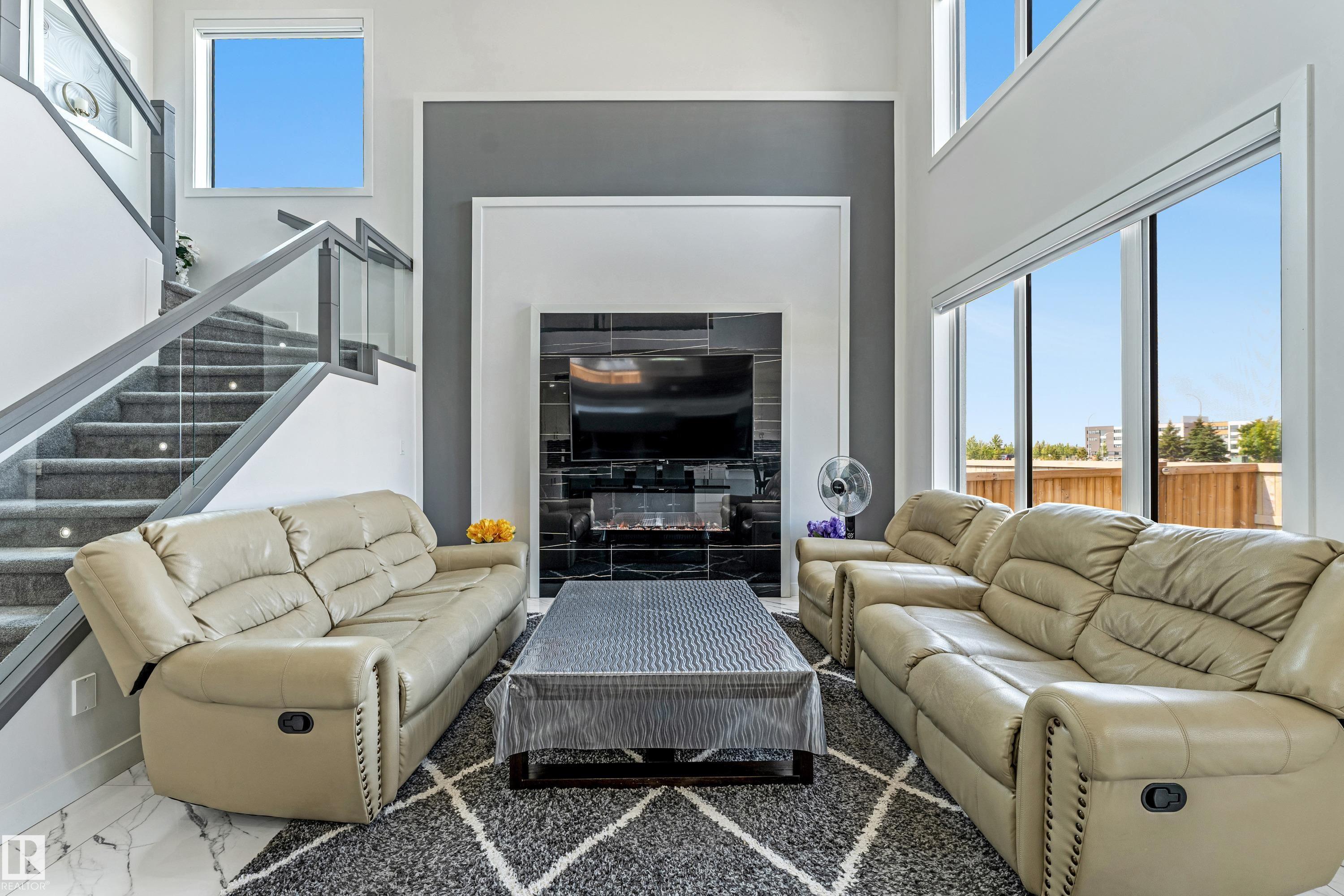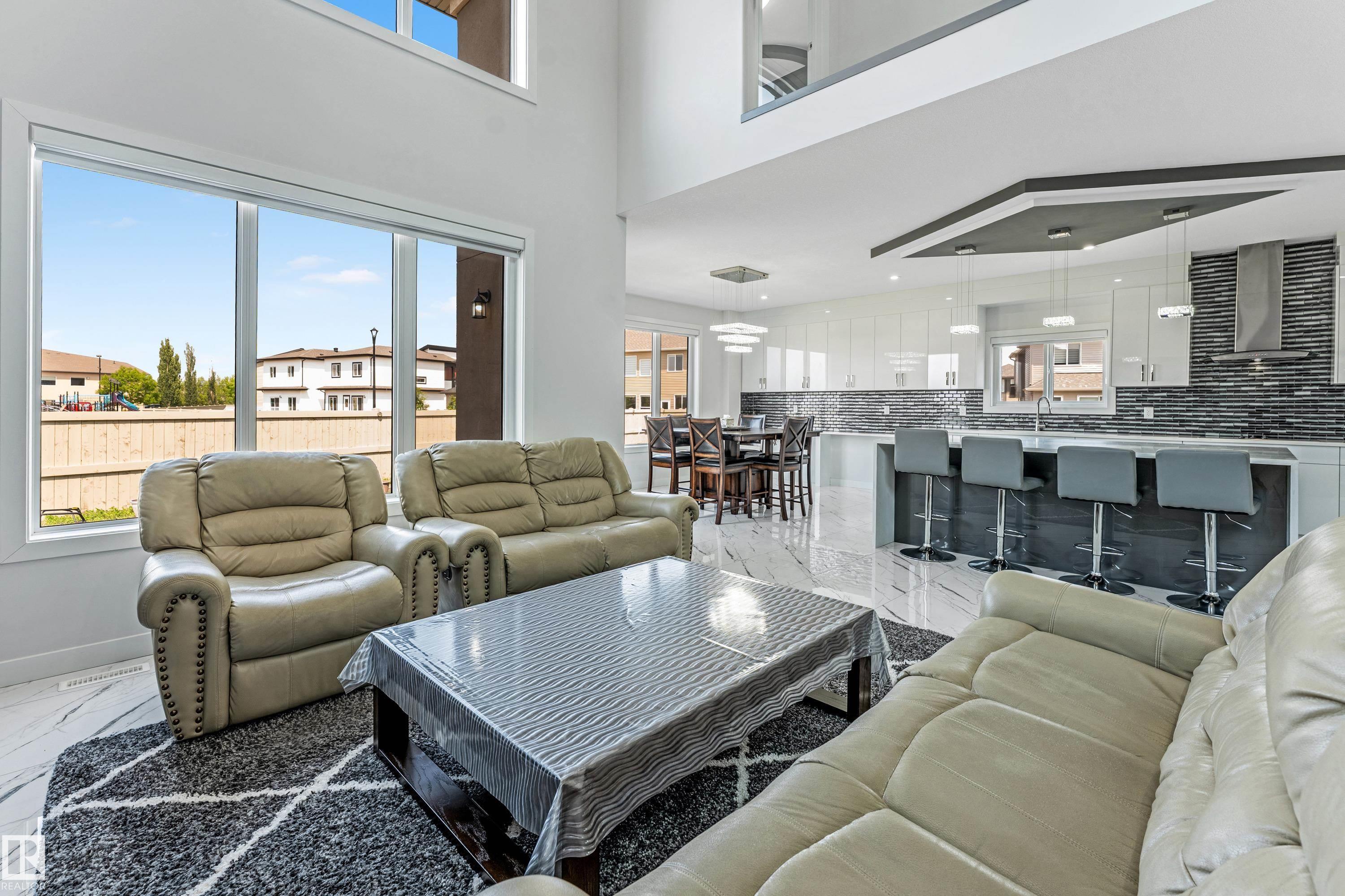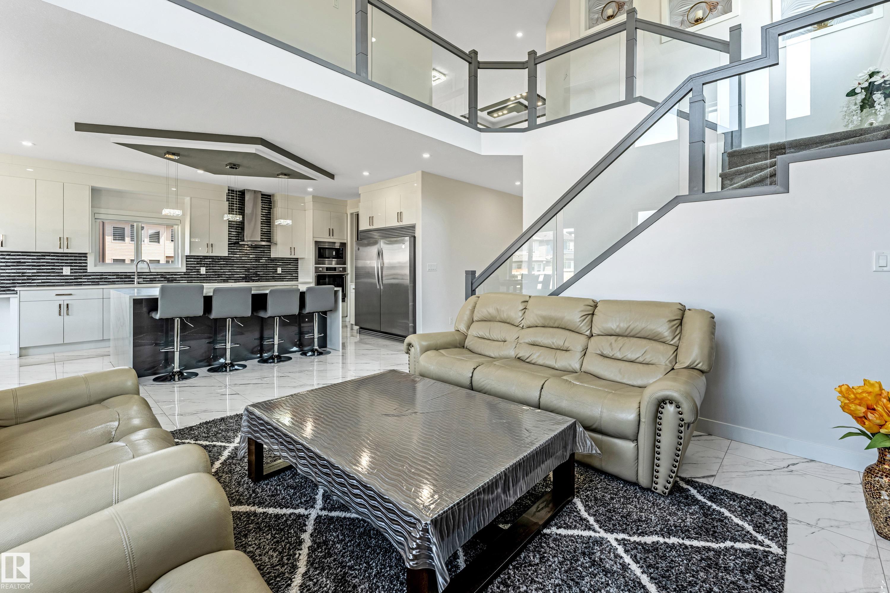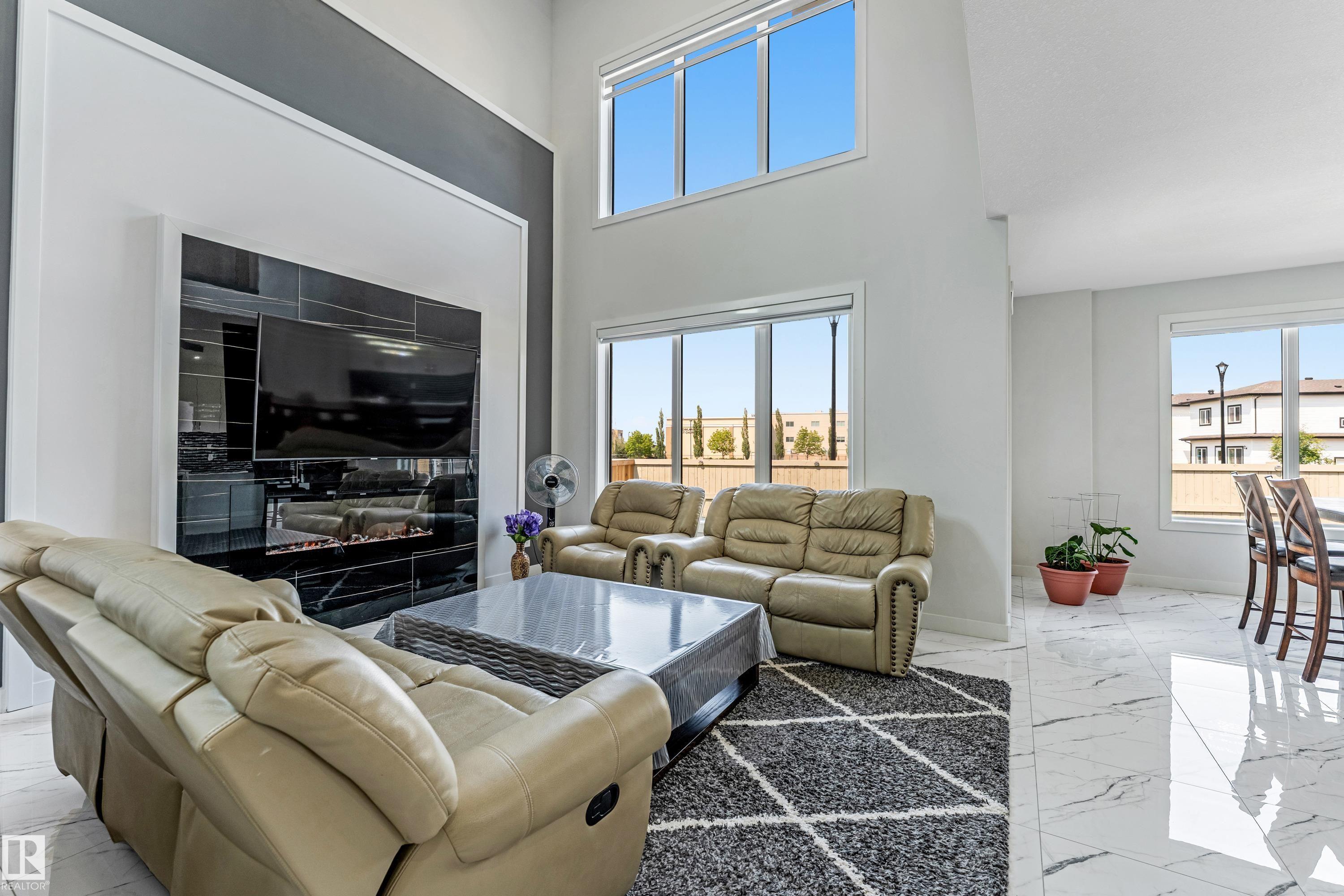 **ASTER COMMUNITY**HUGE PIE SHAPE LOT**SOUTH EMDMONTON**The main floor features an inviting blend of open-concept living and practical spaces. Two distinct living areas provide options for relaxation or entertaining, while the kitchen anchors the heart of the home with seamless flow into the dining area and an adjacent servery. A main-floor bedroom and a full bath add convenience. Upstairs, four well-appointed bedrooms offer privacy and tranquility. The primary suite includes its own ensuite bath and a walk-in closet. Two additional bathrooms one ensuite and one shared--serve the remaining bedrooms. A dedicated laundry room adds everyday practicality, while open-to-below spaces lend architectural interest and light. The basement presents a vast unfinished area, providing endless potential for future development, whether you envision a home theatre, gym, or rental suite. Completing the layout is a large garage with direct access to the main floor. With careful attention to flow and function throughout.