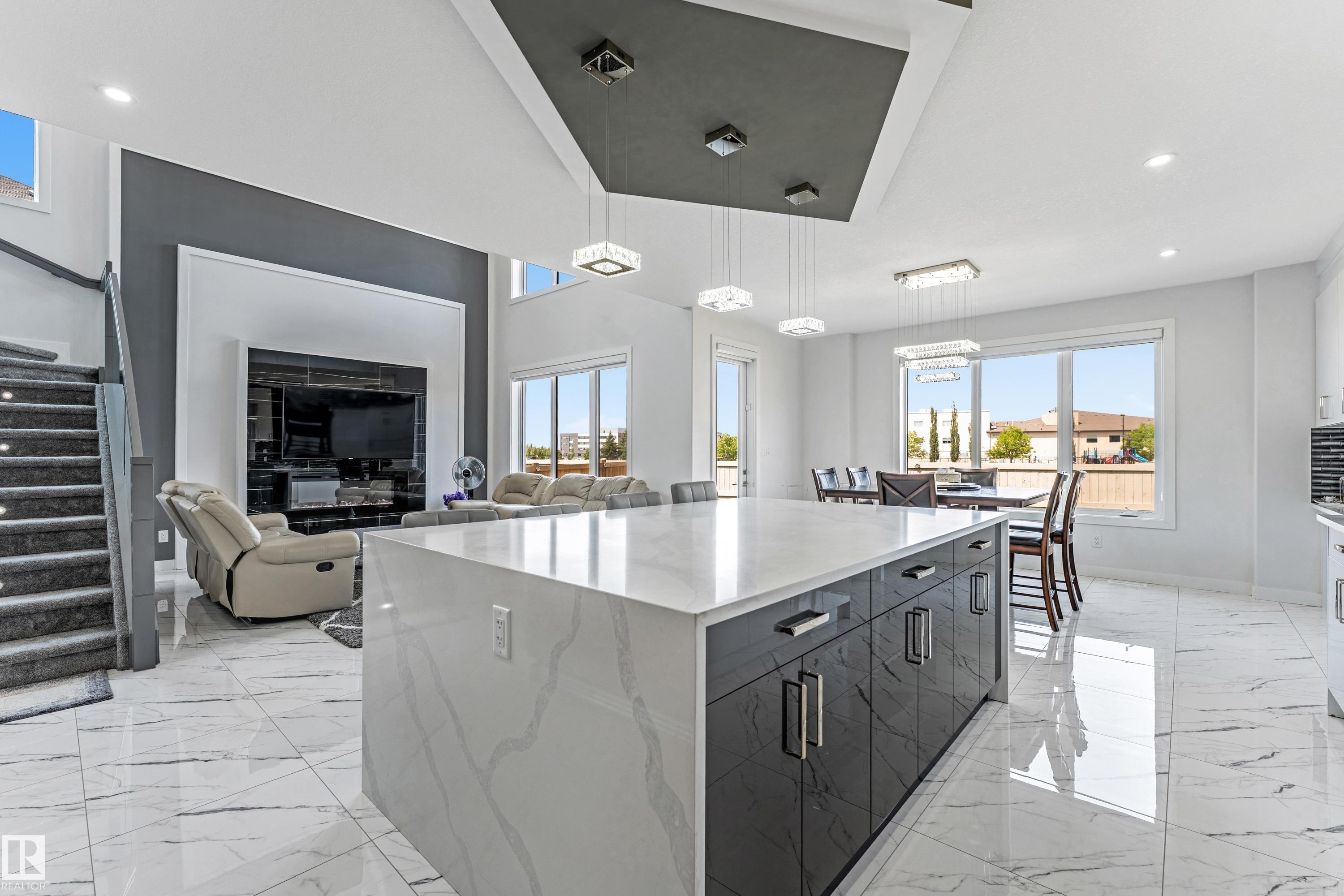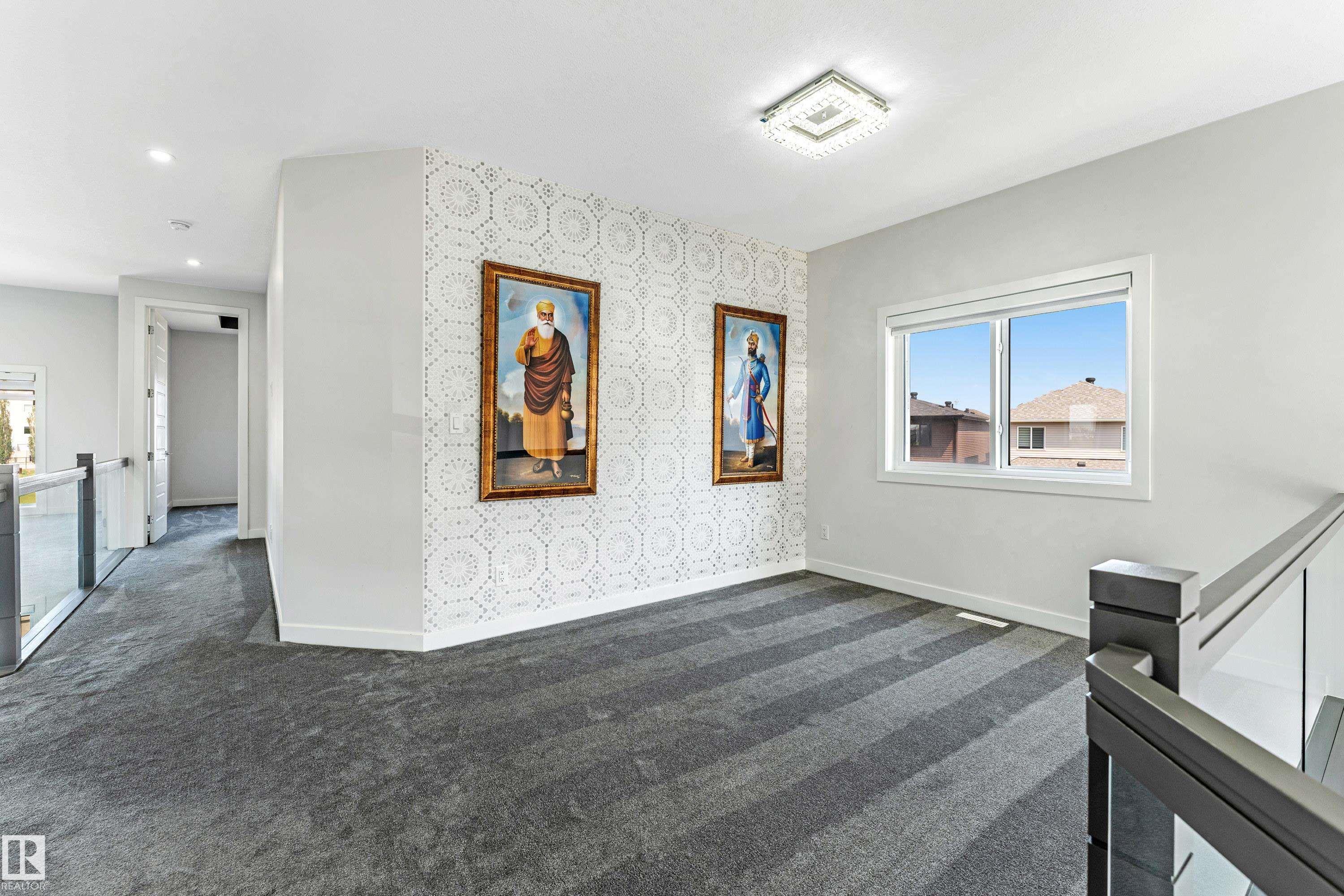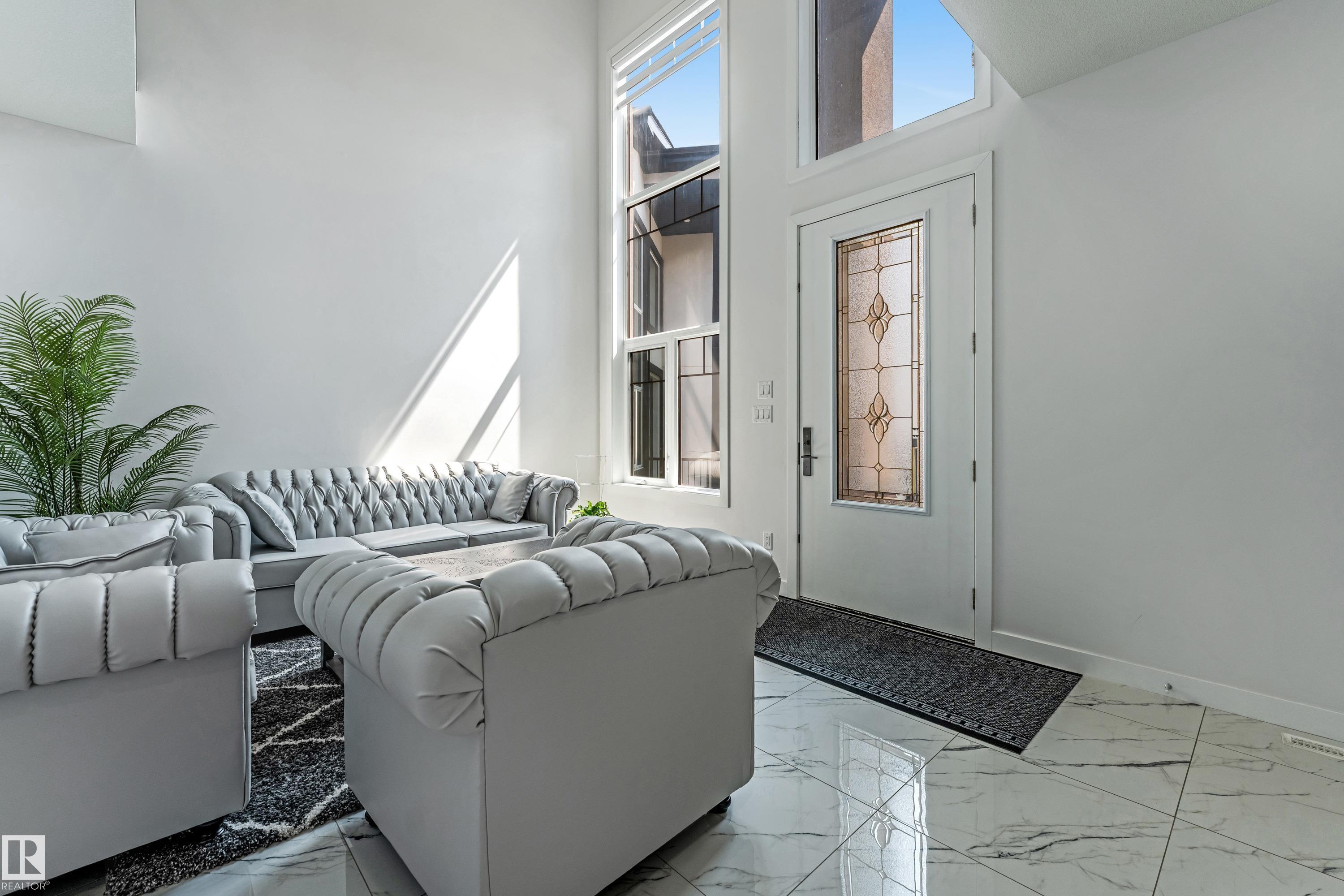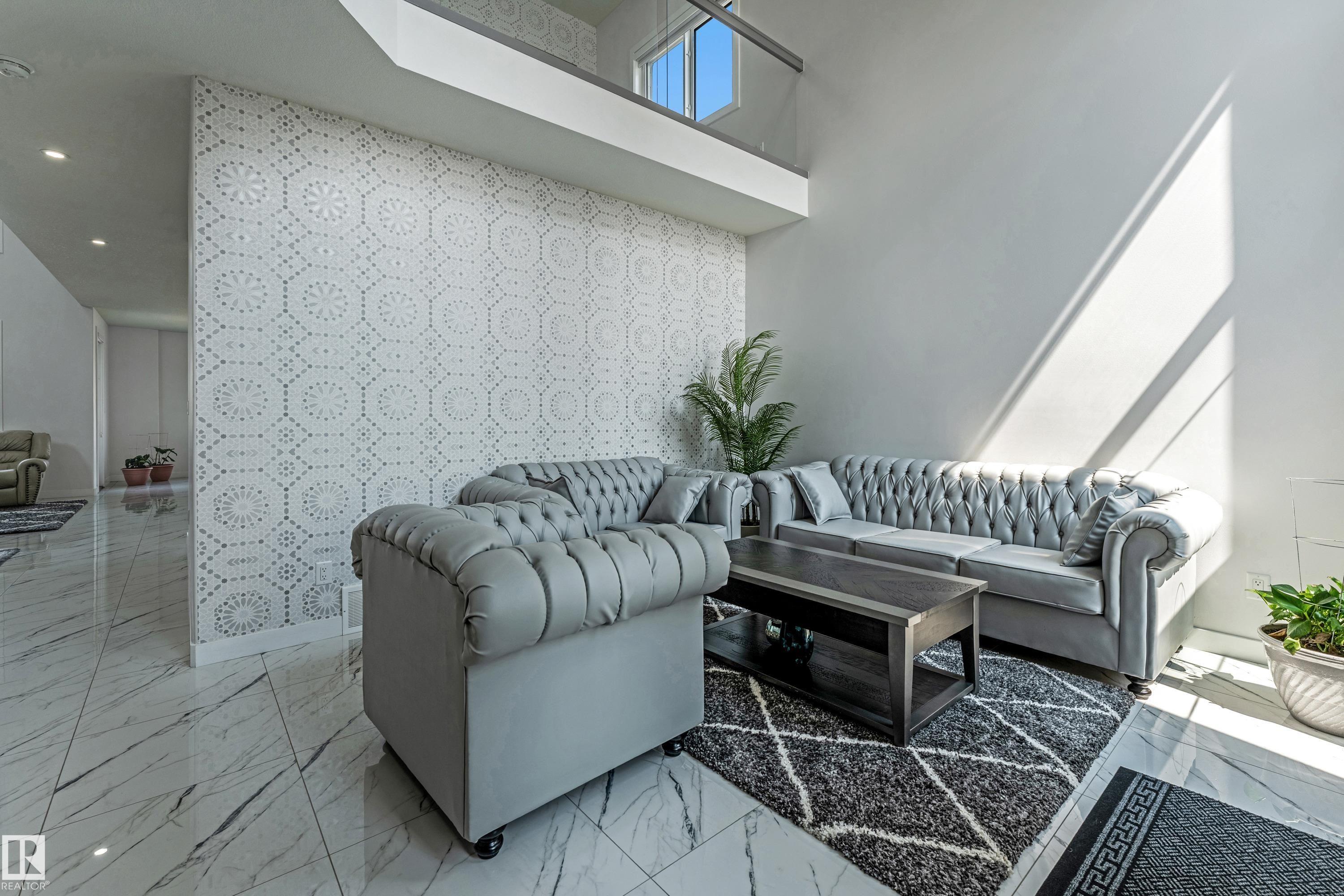 **ASTER COMMUNITY**HUGE PIE SHAPE LOT**SOUTH EMDMONTON**The main floor features an inviting blend of open-concept living and practical spaces. Two distinct living areas provide options for relaxation or entertaining, while the kitchen anchors the heart of the home with seamless flow into the dining area and an adjacent servery. A main-floor bedroom and a full bath add convenience. Upstairs, four well-appointed bedrooms offer privacy and tranquility. The primary suite includes its own ensuite bath and a walk-in closet. Two additional bathrooms one ensuite and one shared--serve the remaining bedrooms. A dedicated laundry room adds everyday practicality, while open-to-below spaces lend architectural interest and light. The basement presents a vast unfinished area, providing endless potential for future development, whether you envision a home theatre, gym, or rental suite. Completing the layout is a large garage with direct access to the main floor. With careful attention to flow and function throughout.