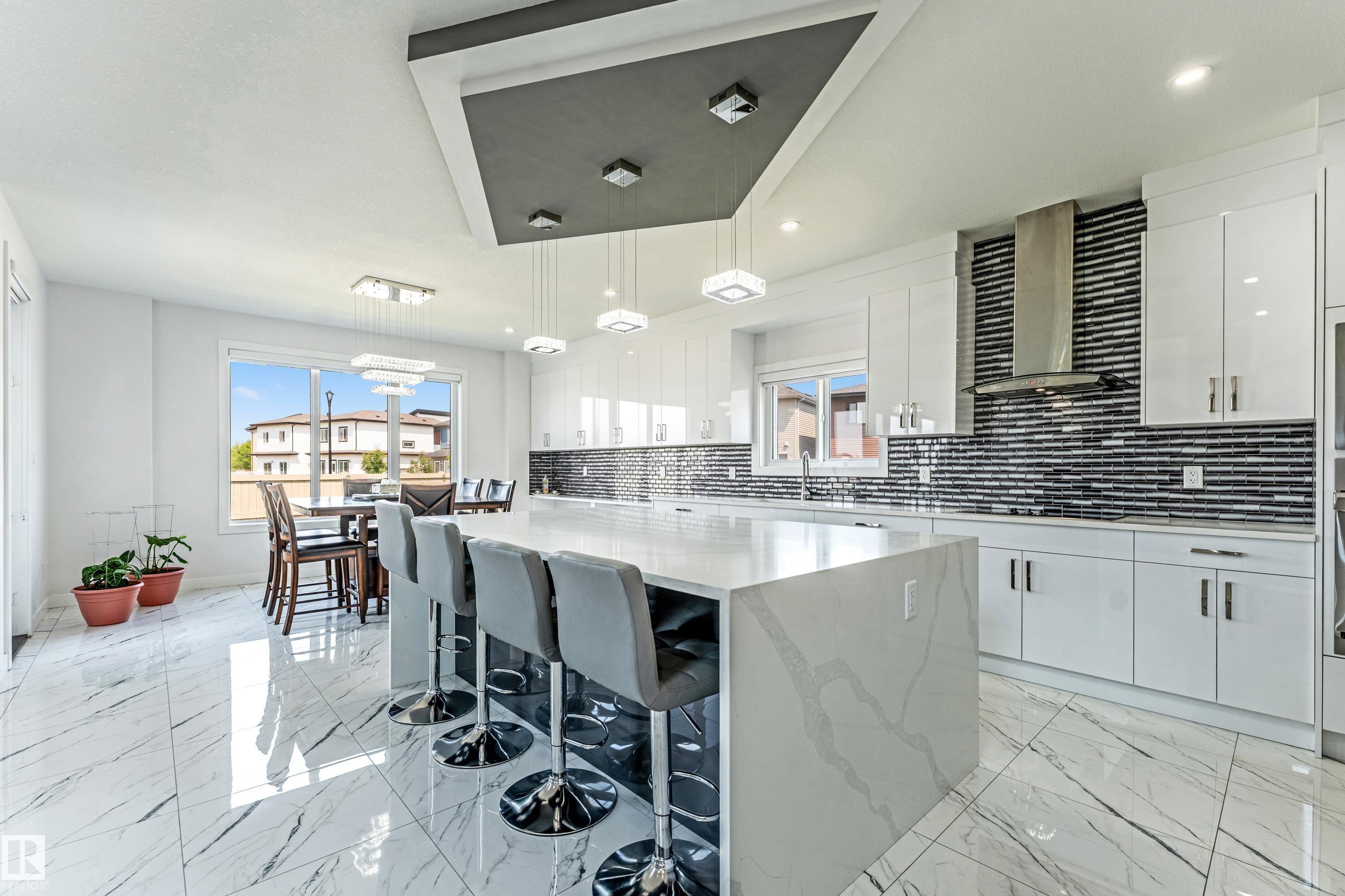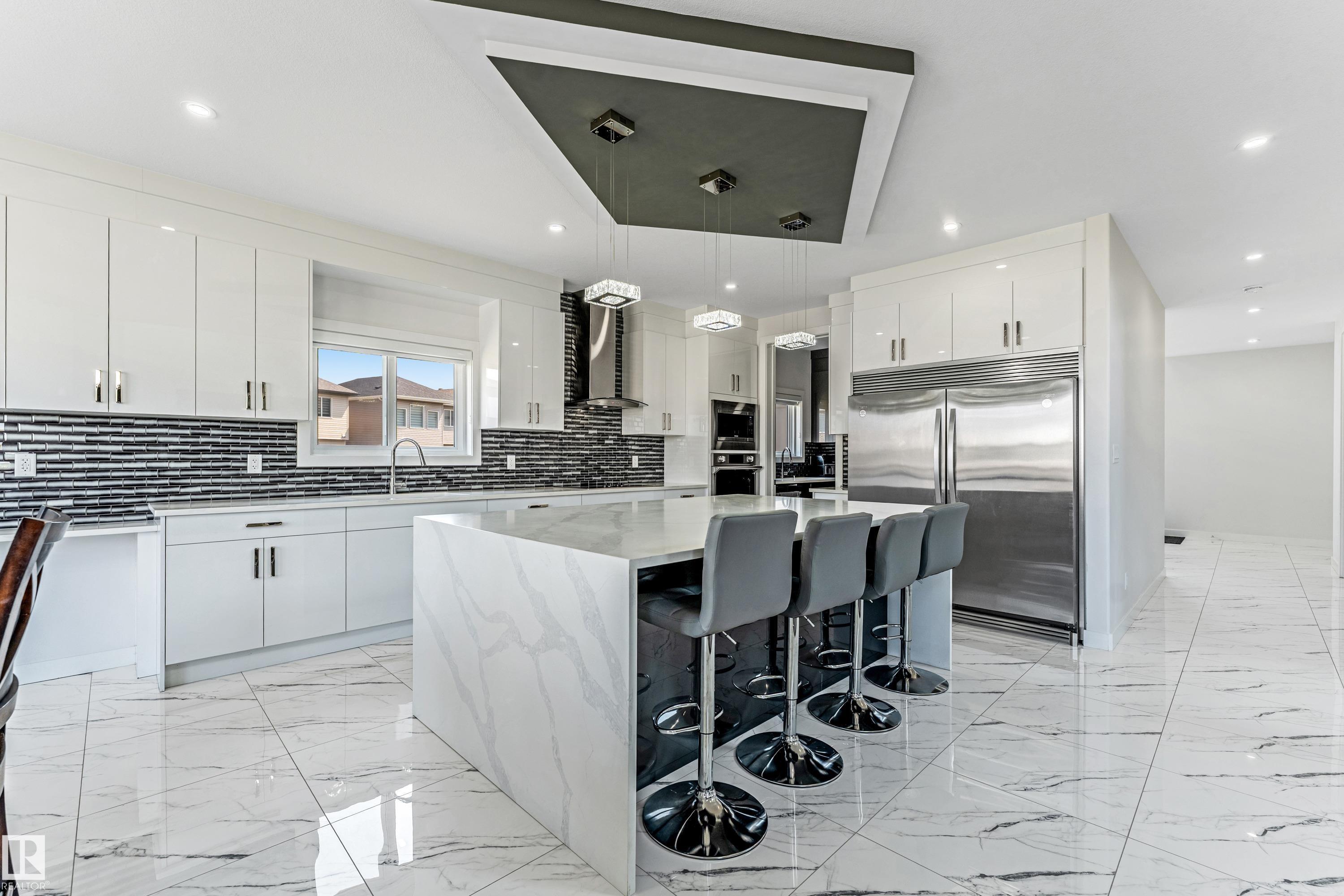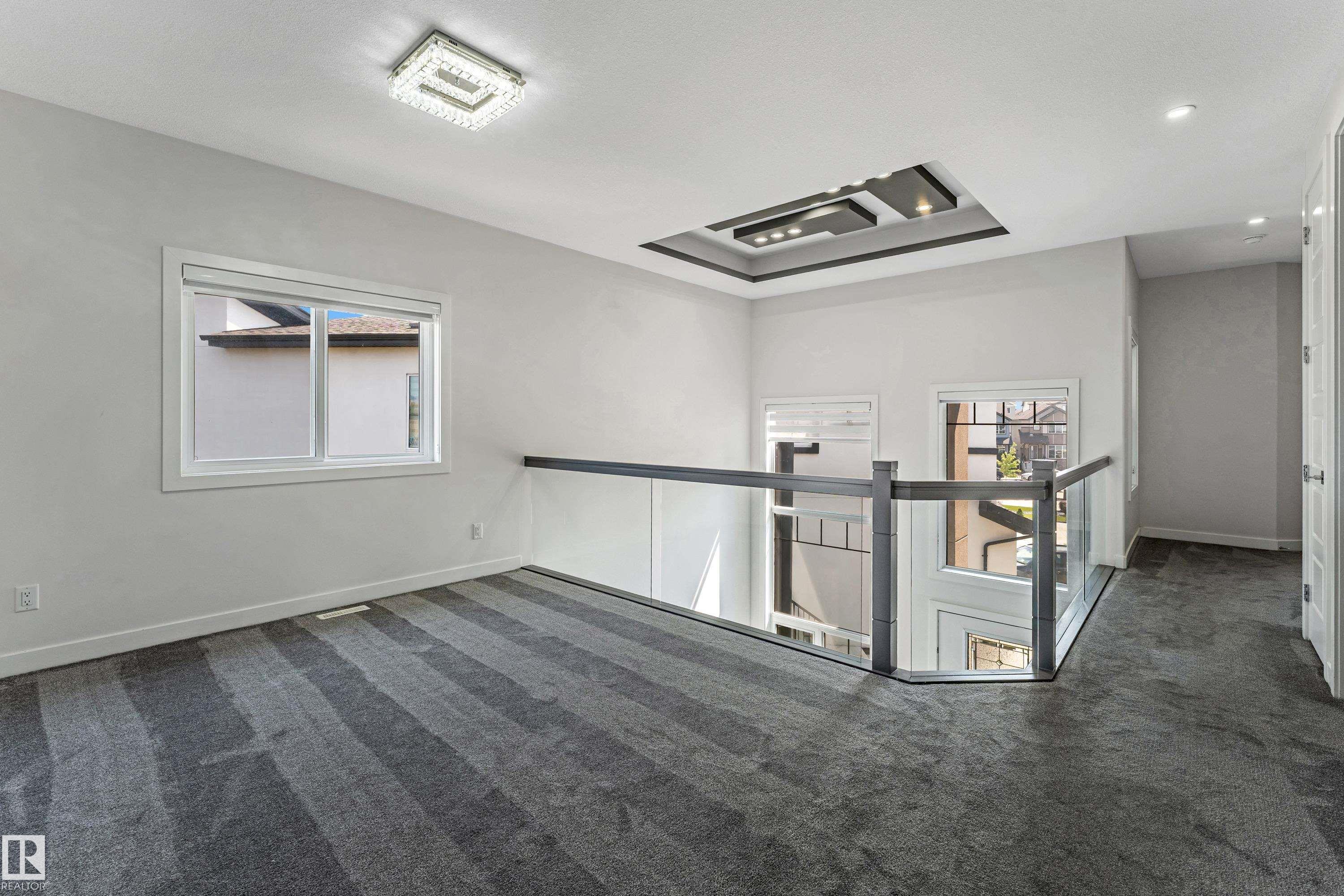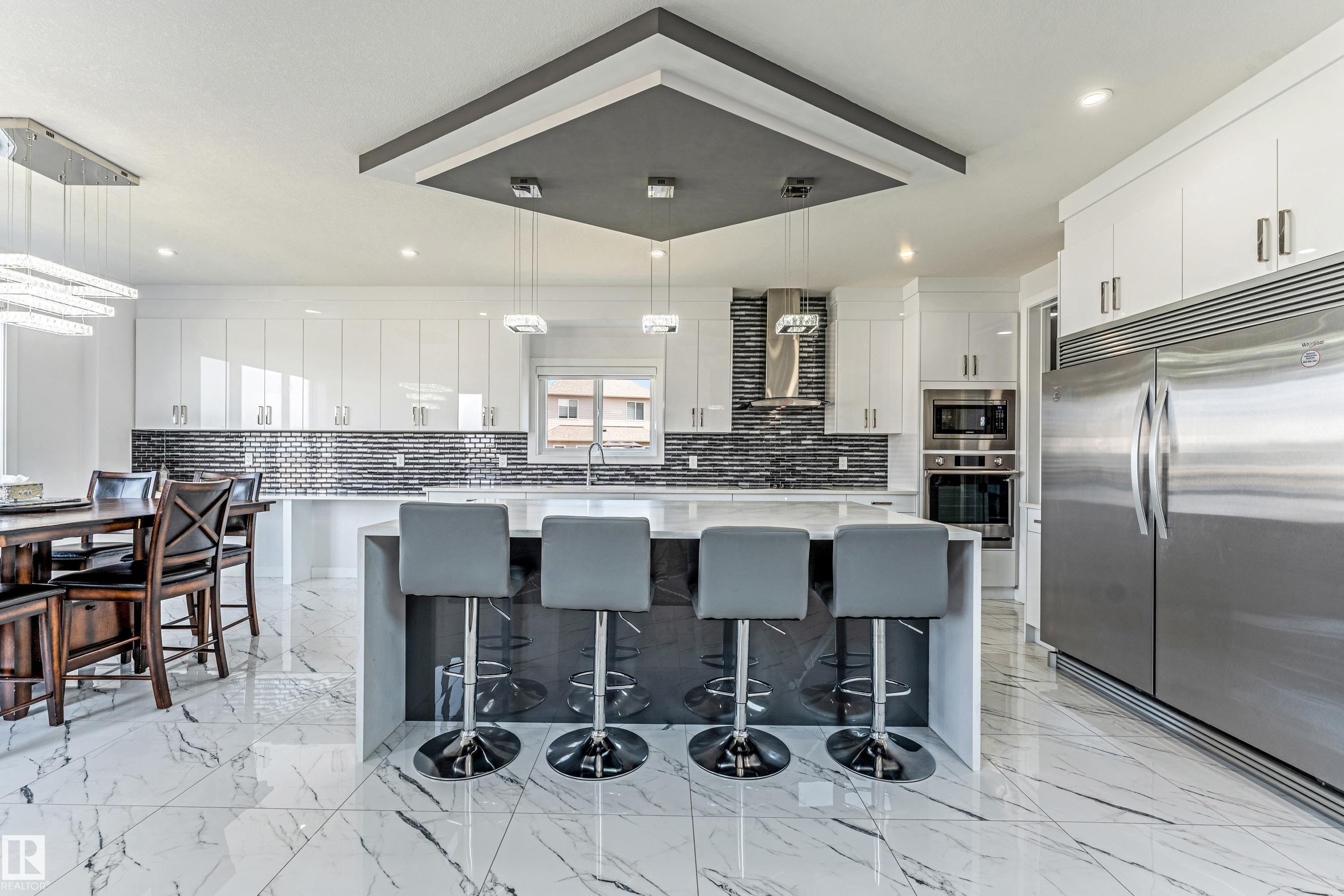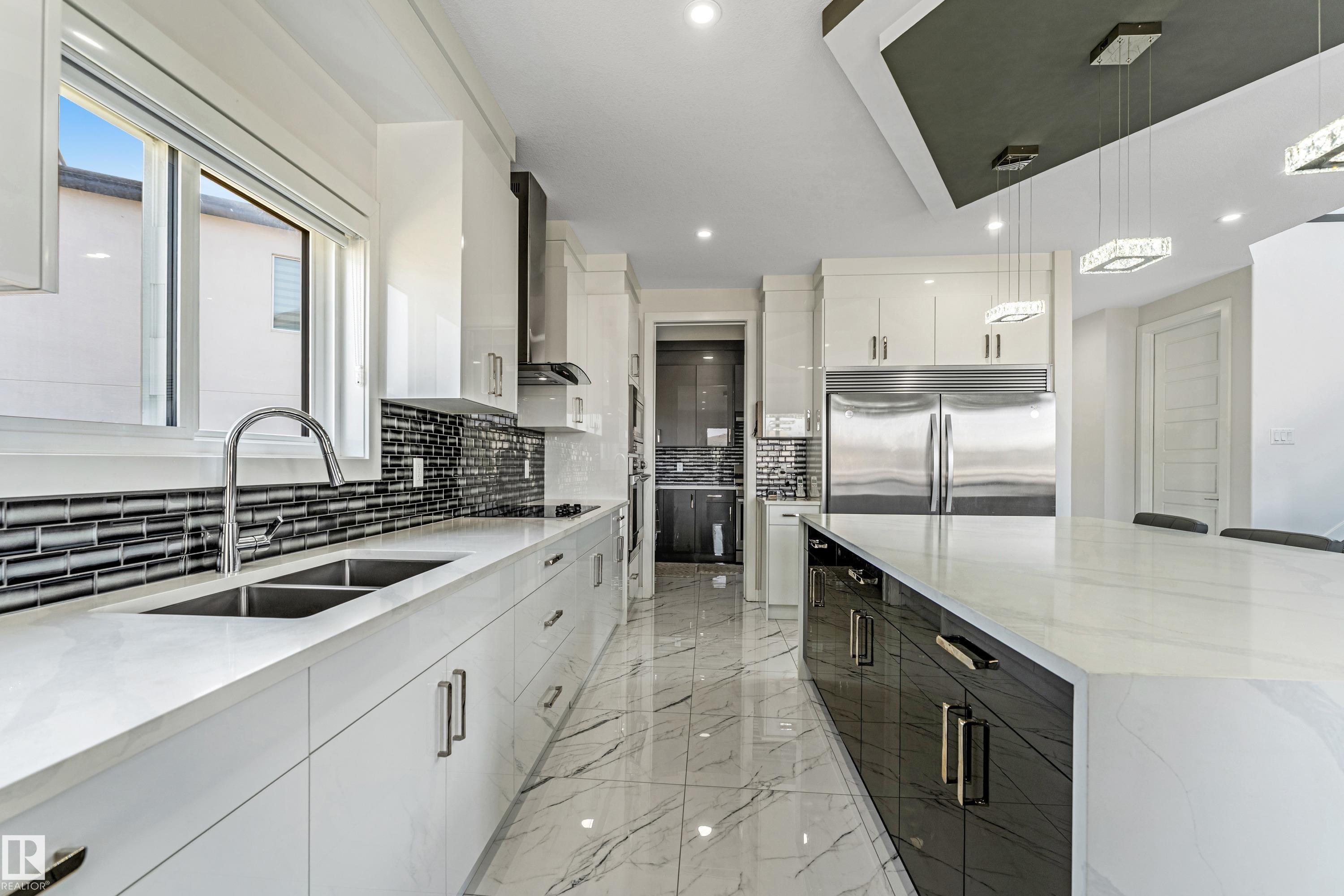 **ASTER COMMUNITY**HUGE PIE SHAPE LOT**SOUTH EMDMONTON**The main floor features an inviting blend of open-concept living and practical spaces. Two distinct living areas provide options for relaxation or entertaining, while the kitchen anchors the heart of the home with seamless flow into the dining area and an adjacent servery. A main-floor bedroom and a full bath add convenience. Upstairs, four well-appointed bedrooms offer privacy and tranquility. The primary suite includes its own ensuite bath and a walk-in closet. Two additional bathrooms one ensuite and one shared--serve the remaining bedrooms. A dedicated laundry room adds everyday practicality, while open-to-below spaces lend architectural interest and light. The basement presents a vast unfinished area, providing endless potential for future development, whether you envision a home theatre, gym, or rental suite. Completing the layout is a large garage with direct access to the main floor. With careful attention to flow and function throughout.