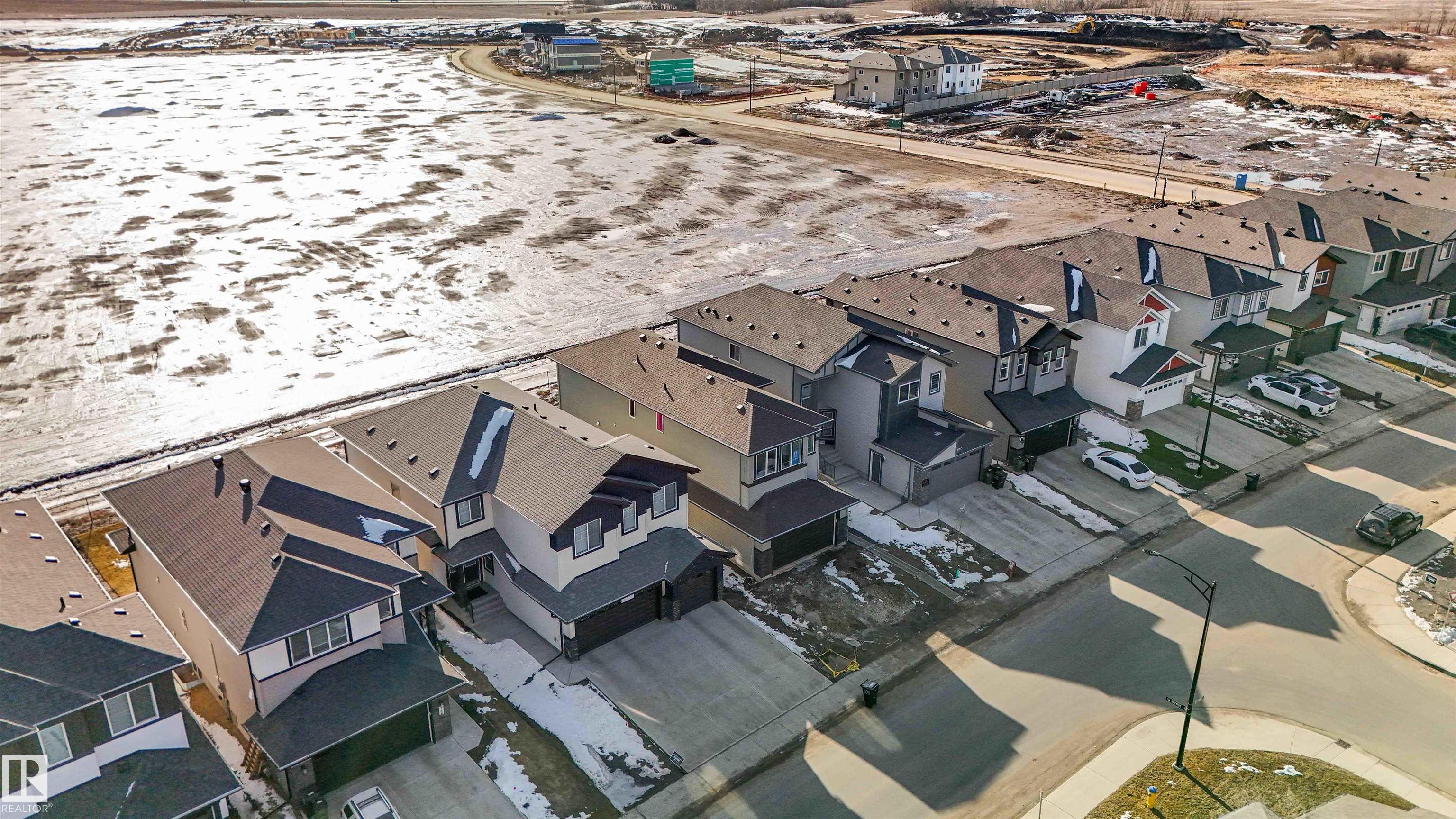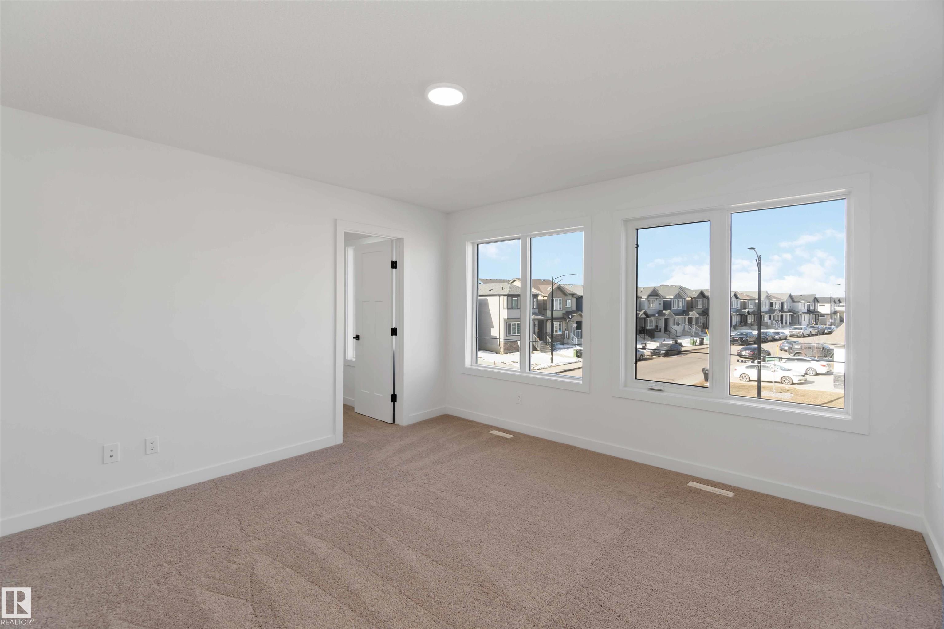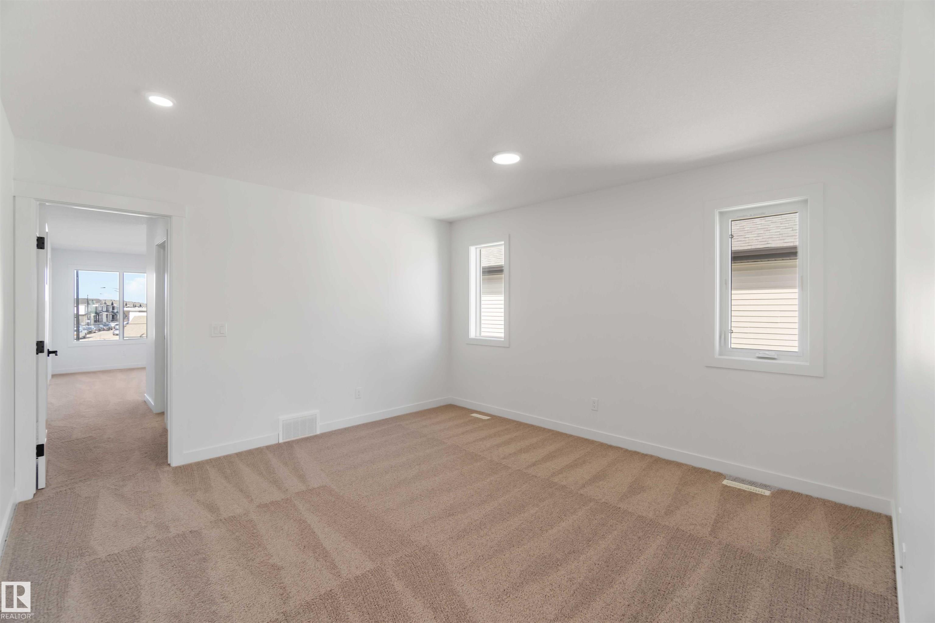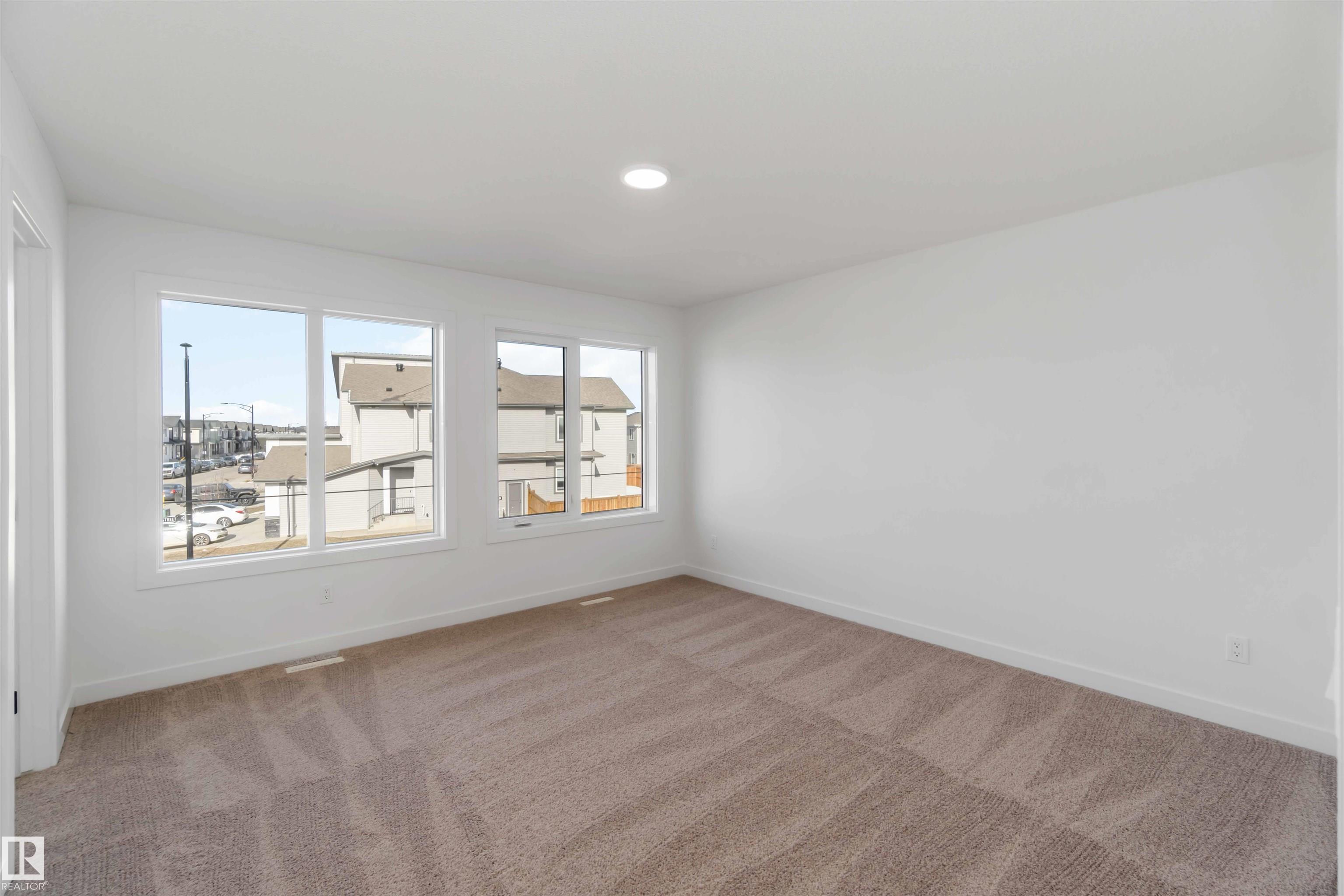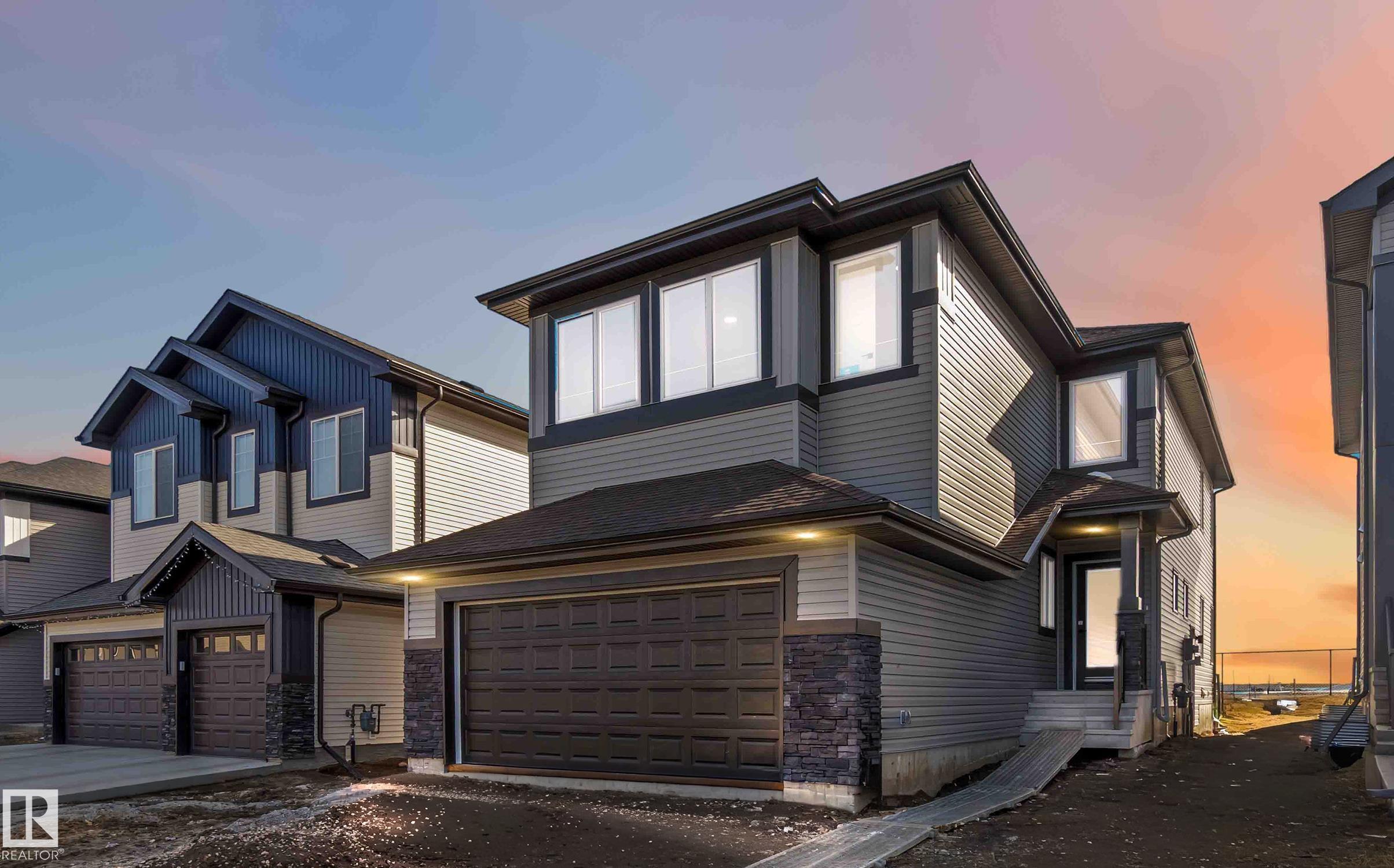 The Artemis 4-bed plan has everything you need, backing onto a future park/school with a 200amp electrical upgrade. The double garage is widened, extended, and includes a floor drain, 240V EV outlet, and hot/cold taps. Features include 9' ceilings on main & basement, Luxury Vinyl Plank flooring, and SLD recessed lighting. The foyer leads to a sitting room, main floor bedroom, 3-piece bath, and mudroom with garage access. The spice kitchen connects to the main kitchen with quartz countertops, flush island, Silgranite sink, Moen matte black faucet, chimney hood, full height backsplash, and soft-close Thermofoil cabinets. The great room has a 17' ceiling, fireplace, and large windows. Upstairs: two primary suites (4 & 5-piece ensuites), bonus room, 3-piece bath, laundry, and a 4th bedroom. Includes appliances, black matte fixtures, upgraded trim, railings, rough-in plumbing, knockdown ceilings, and extra side windows.