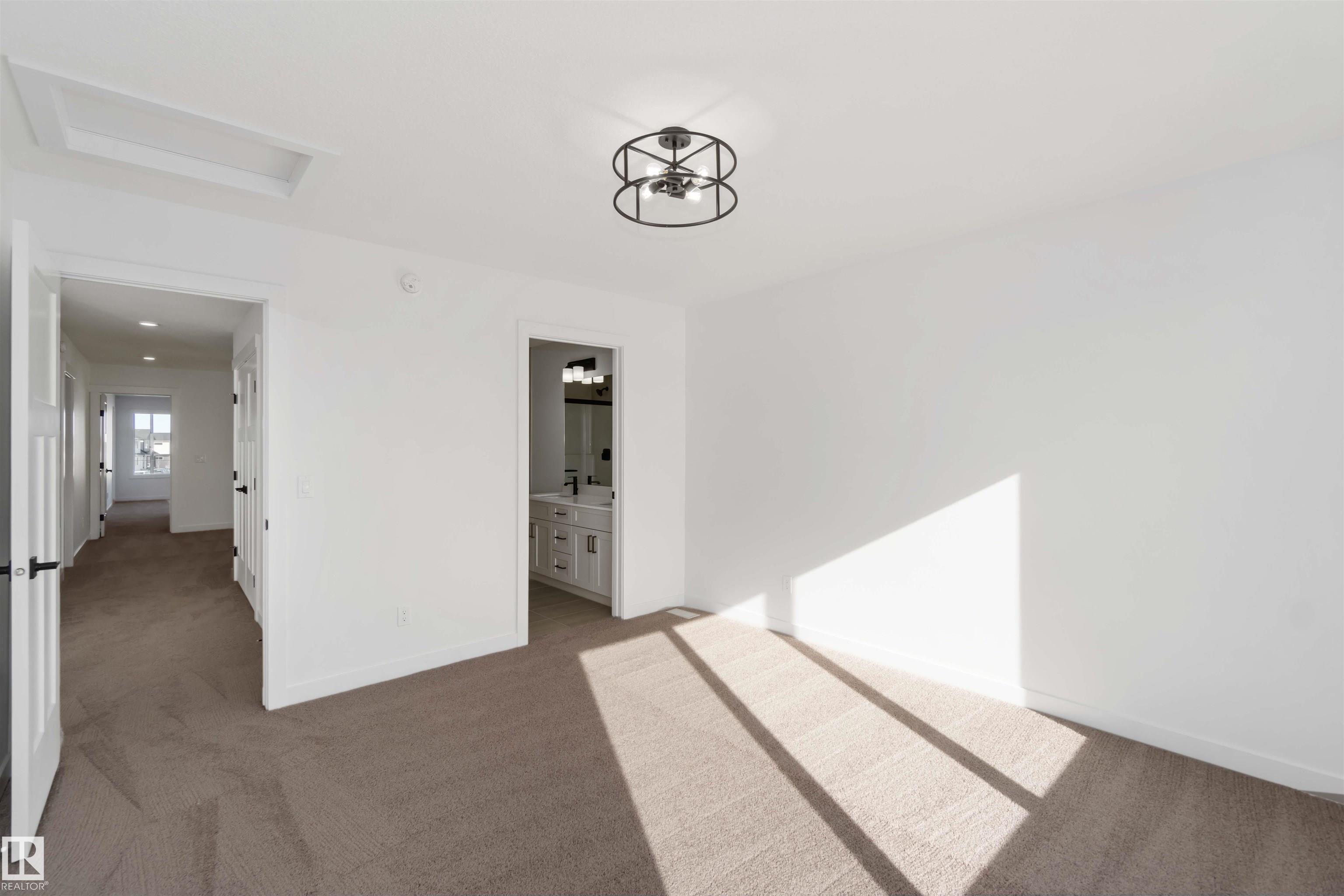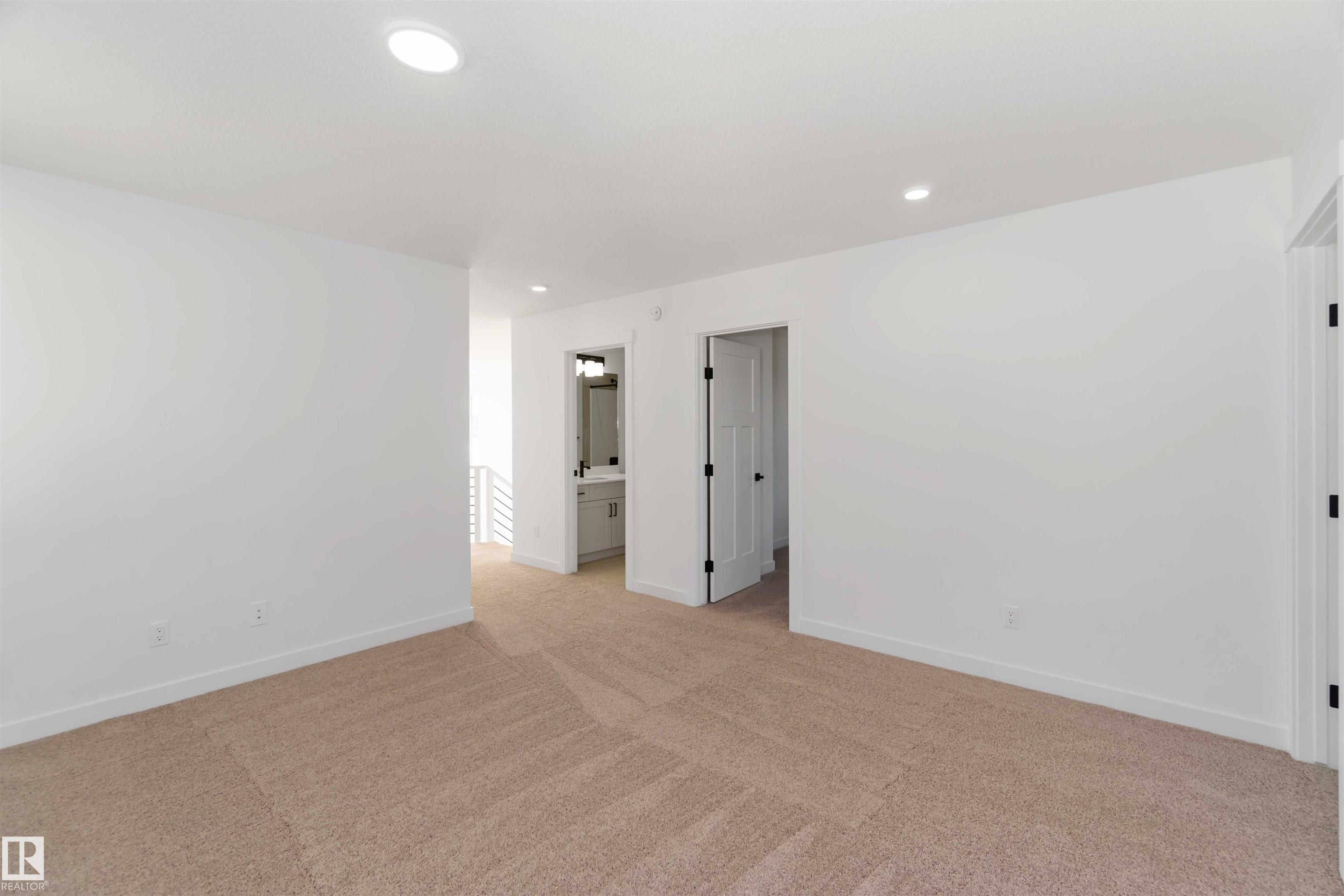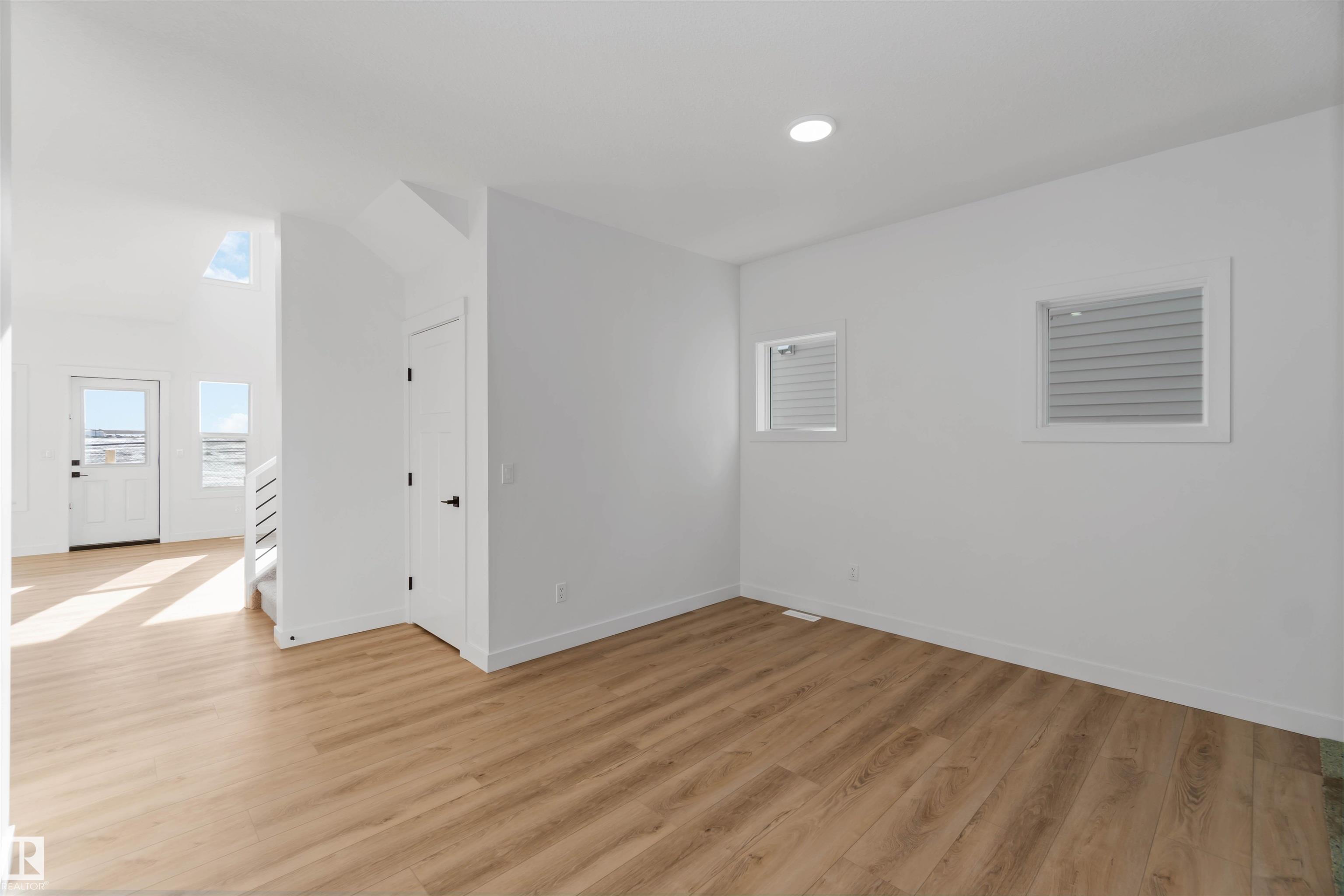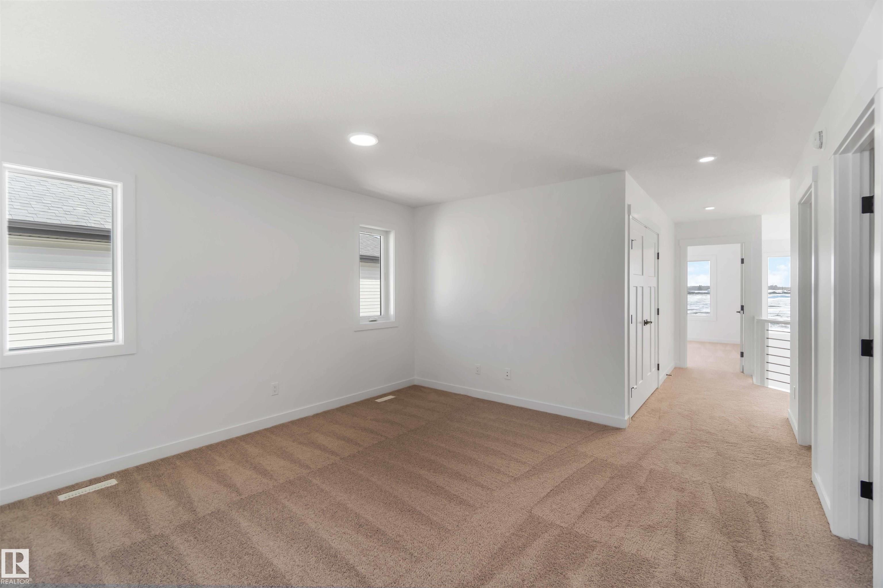 The Artemis 4-bed plan has everything you need, backing onto a future park/school with a 200amp electrical upgrade. The double garage is widened, extended, and includes a floor drain, 240V EV outlet, and hot/cold taps. Features include 9' ceilings on main & basement, Luxury Vinyl Plank flooring, and SLD recessed lighting. The foyer leads to a sitting room, main floor bedroom, 3-piece bath, and mudroom with garage access. The spice kitchen connects to the main kitchen with quartz countertops, flush island, Silgranite sink, Moen matte black faucet, chimney hood, full height backsplash, and soft-close Thermofoil cabinets. The great room has a 17' ceiling, fireplace, and large windows. Upstairs: two primary suites (4 & 5-piece ensuites), bonus room, 3-piece bath, laundry, and a 4th bedroom. Includes appliances, black matte fixtures, upgraded trim, railings, rough-in plumbing, knockdown ceilings, and extra side windows.
