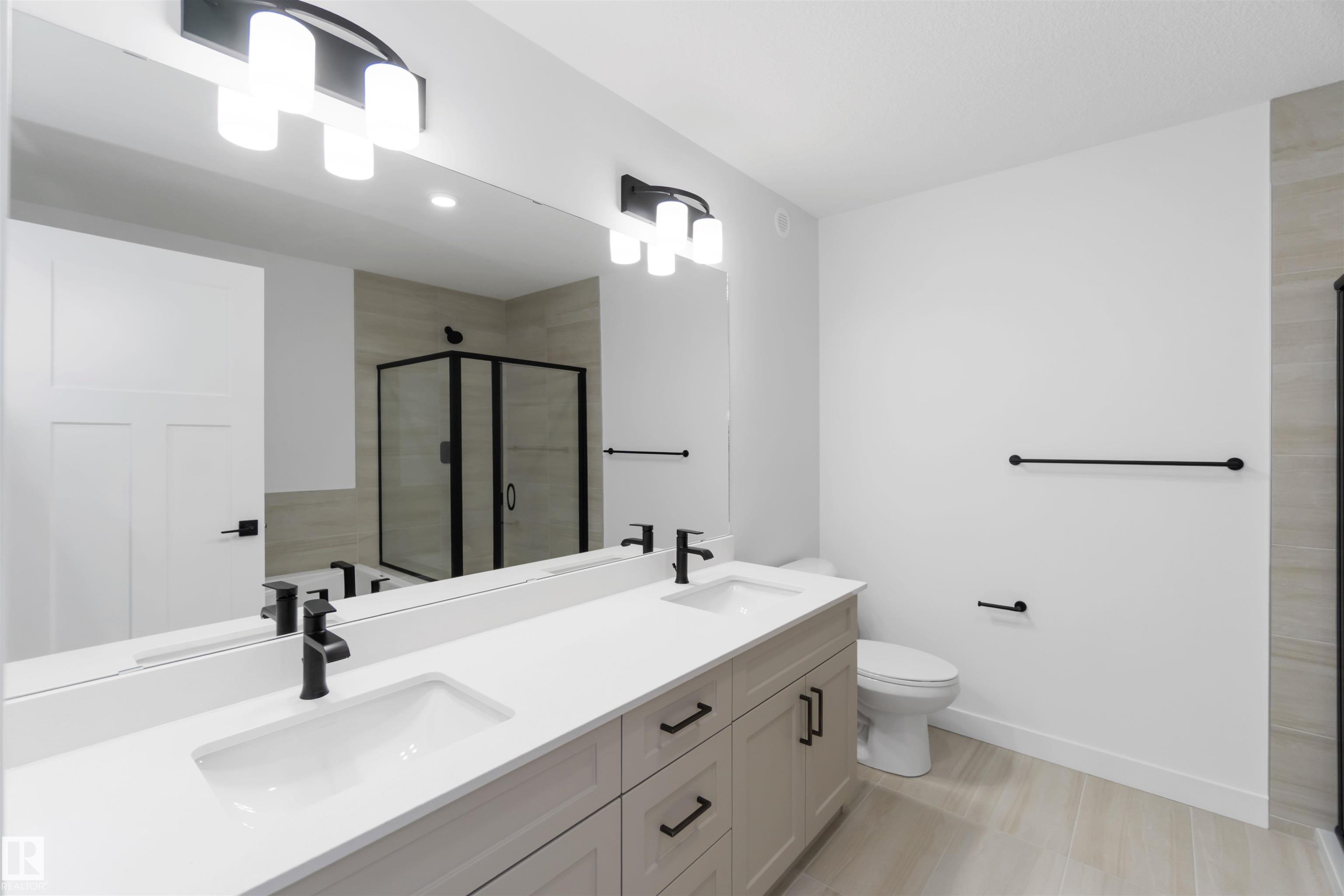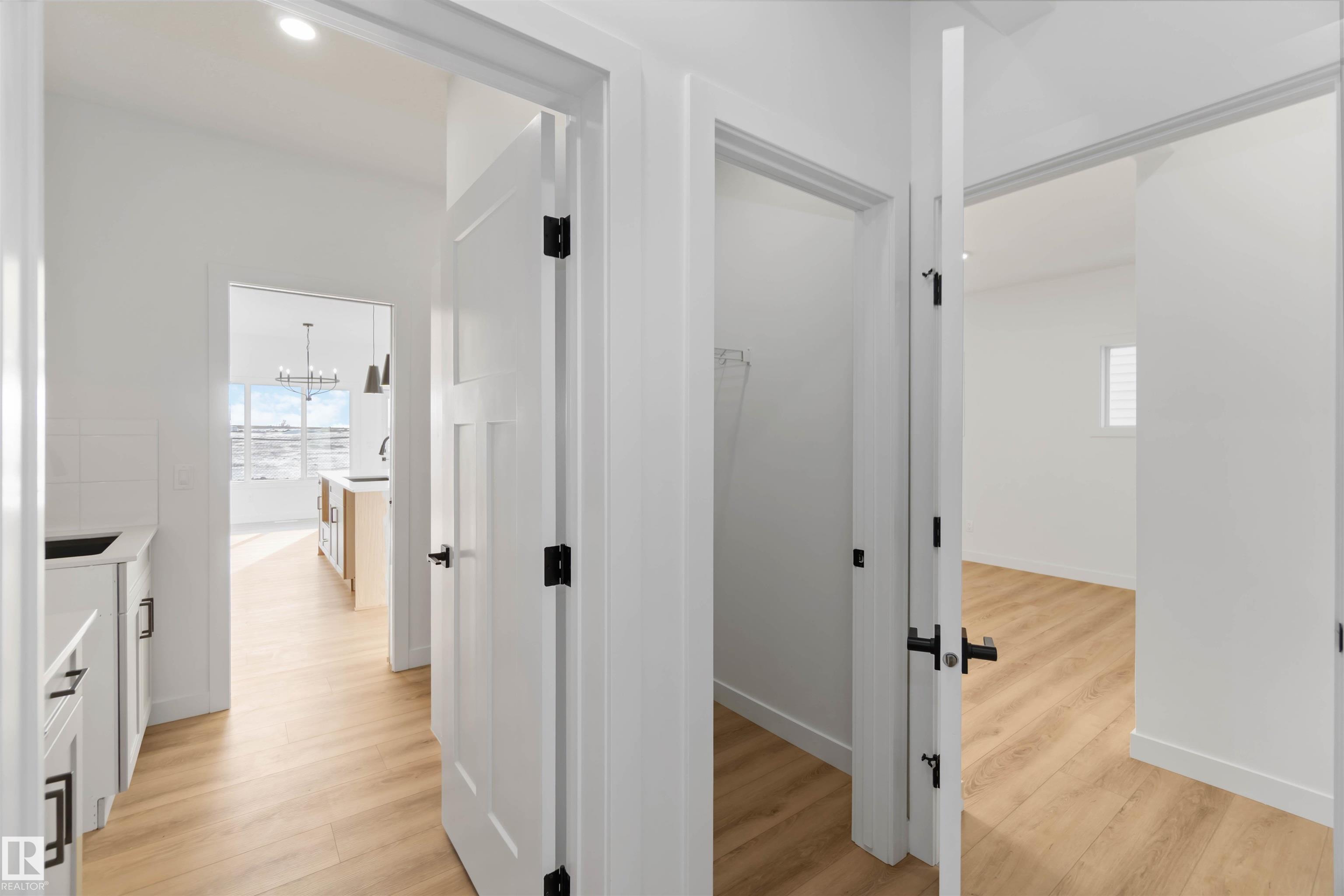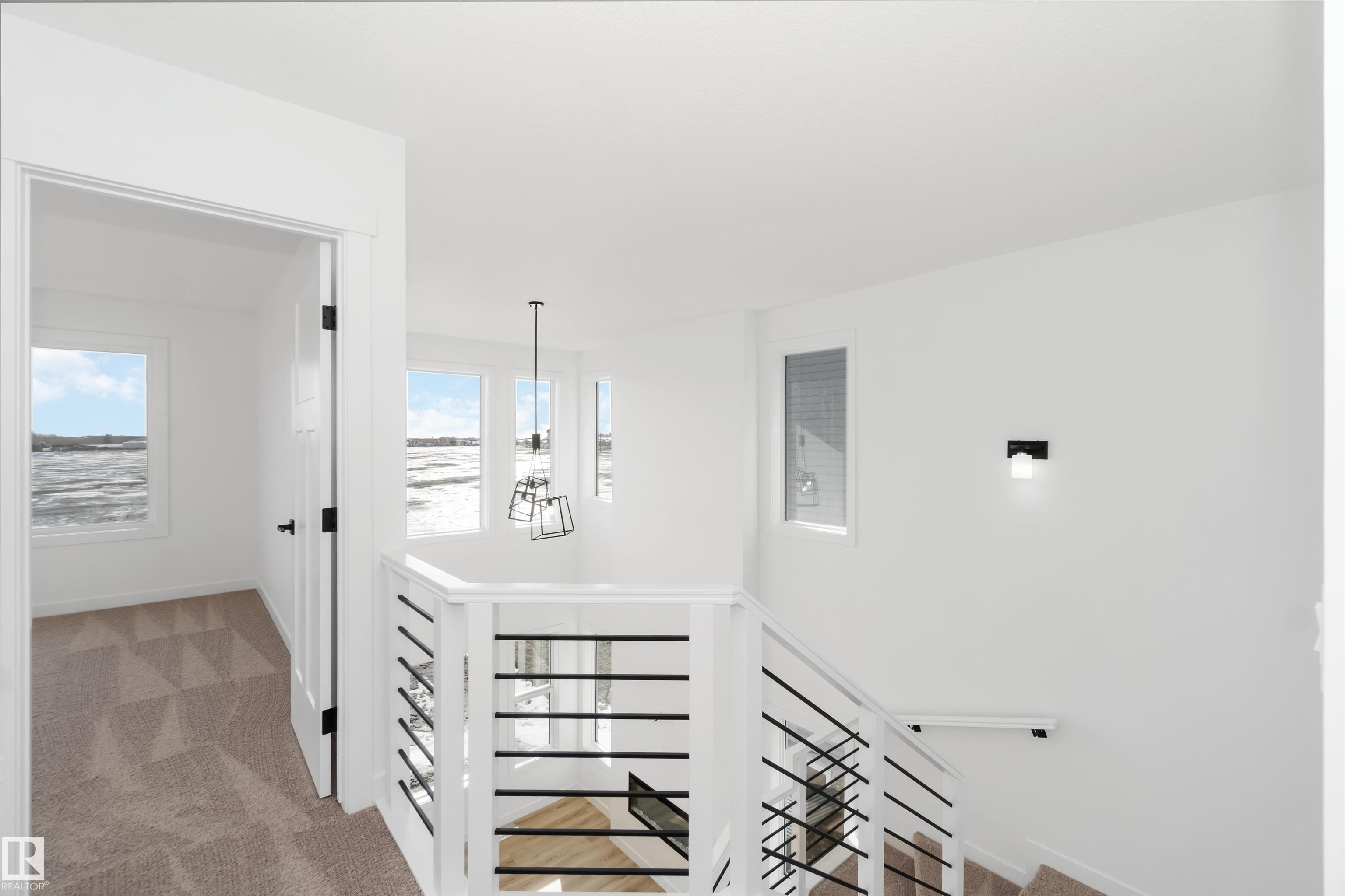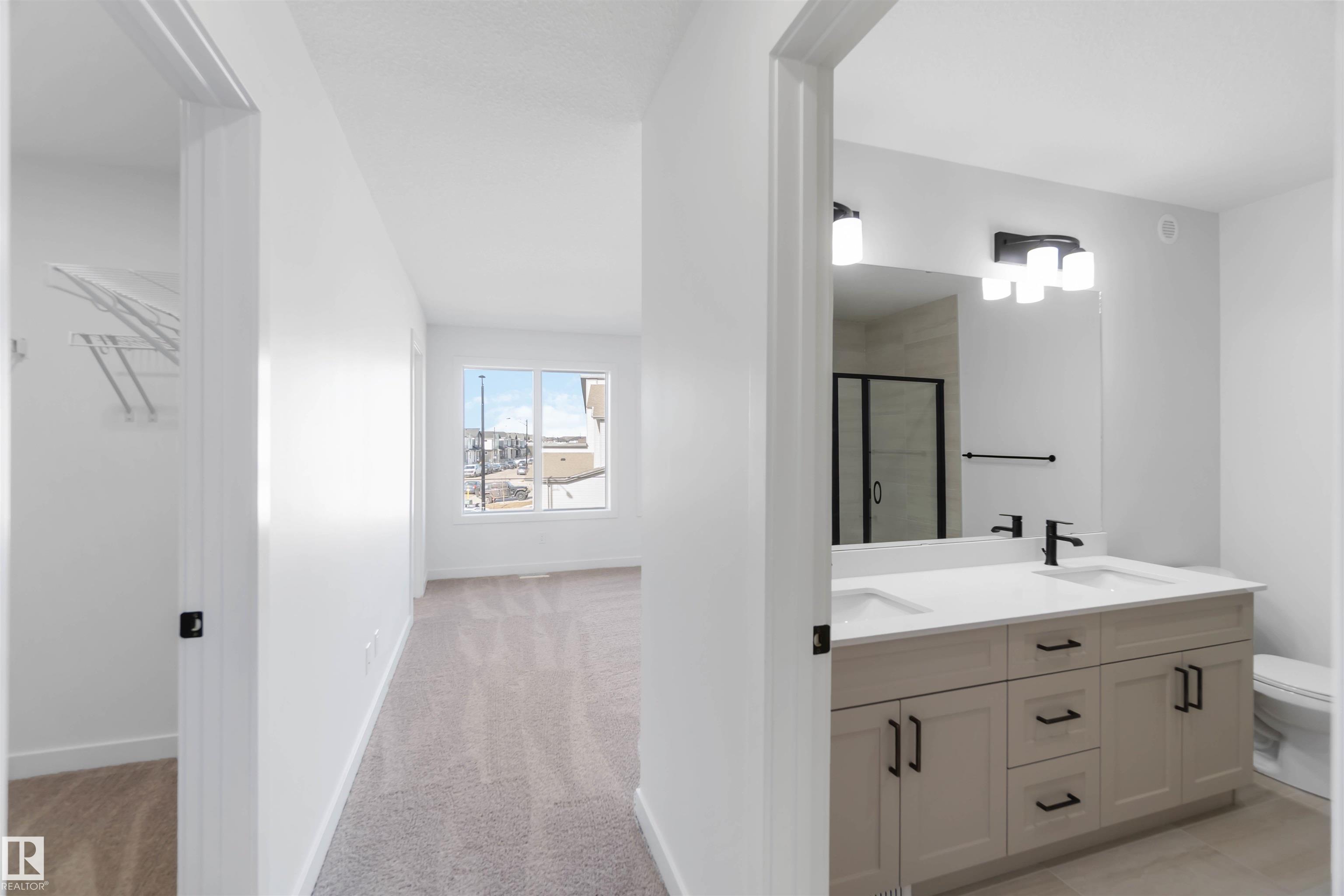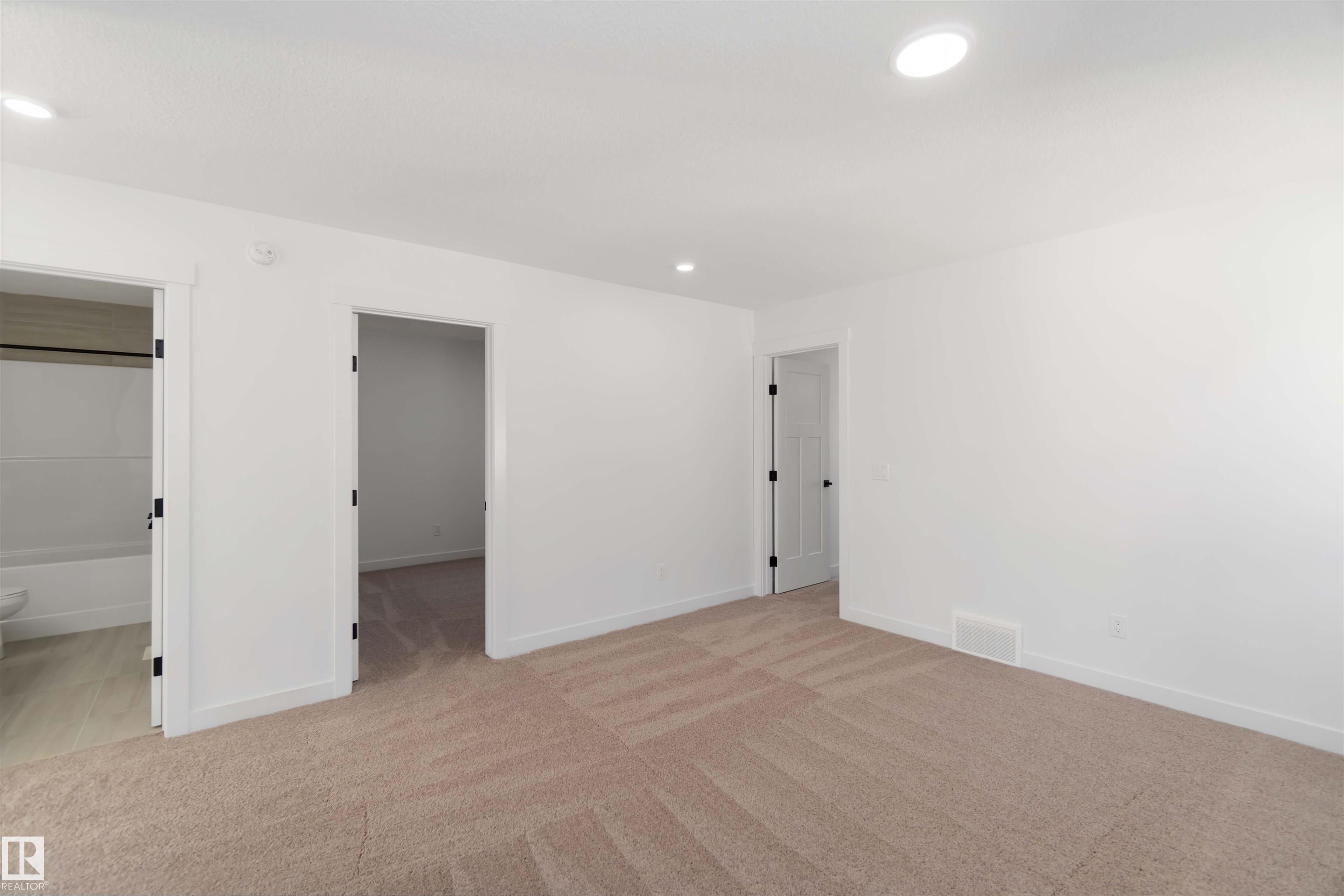 The Artemis 4-bed plan has everything you need, backing onto a future park/school with a 200amp electrical upgrade. The double garage is widened, extended, and includes a floor drain, 240V EV outlet, and hot/cold taps. Features include 9' ceilings on main & basement, Luxury Vinyl Plank flooring, and SLD recessed lighting. The foyer leads to a sitting room, main floor bedroom, 3-piece bath, and mudroom with garage access. The spice kitchen connects to the main kitchen with quartz countertops, flush island, Silgranite sink, Moen matte black faucet, chimney hood, full height backsplash, and soft-close Thermofoil cabinets. The great room has a 17' ceiling, fireplace, and large windows. Upstairs: two primary suites (4 & 5-piece ensuites), bonus room, 3-piece bath, laundry, and a 4th bedroom. Includes appliances, black matte fixtures, upgraded trim, railings, rough-in plumbing, knockdown ceilings, and extra side windows.