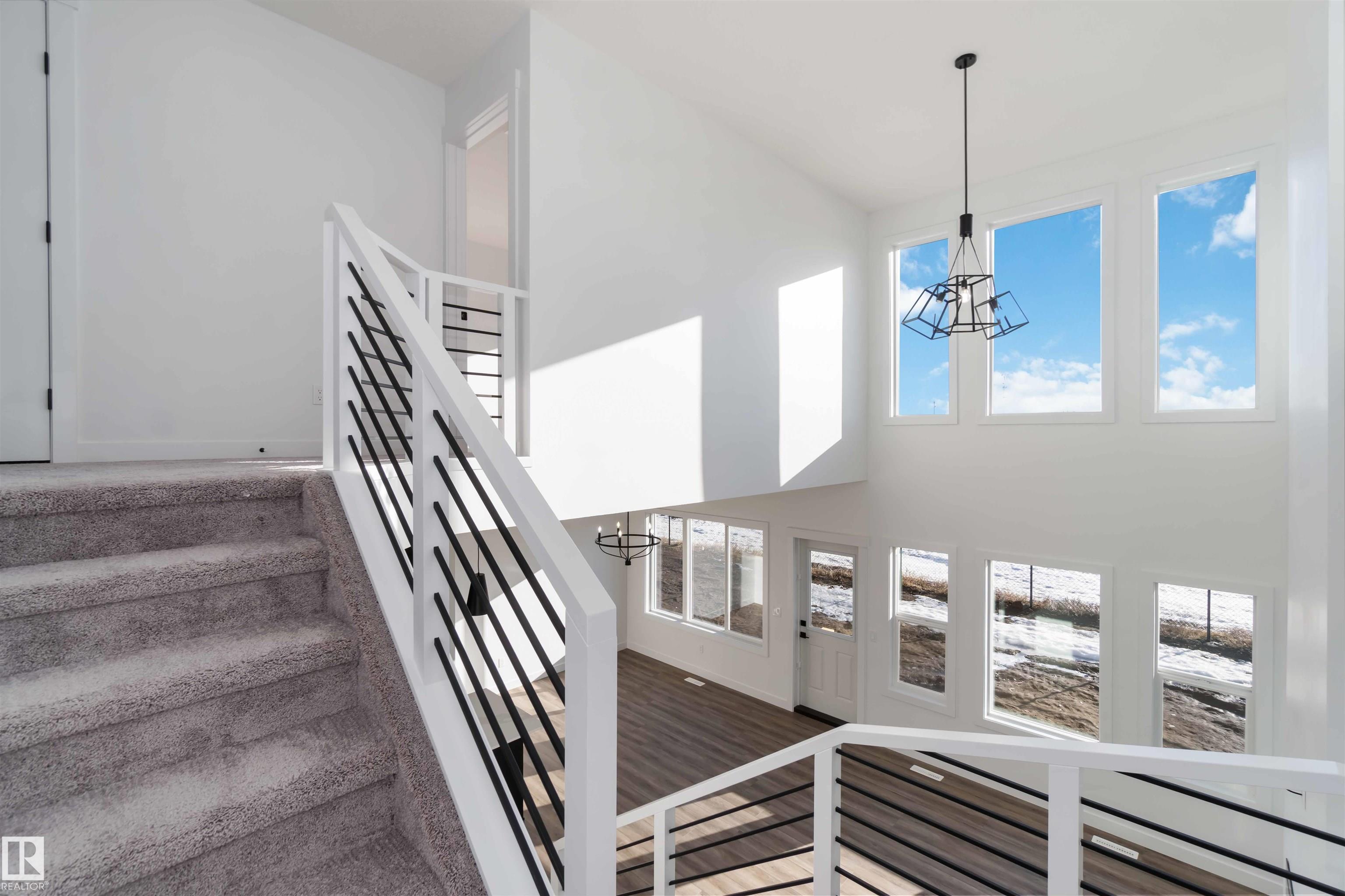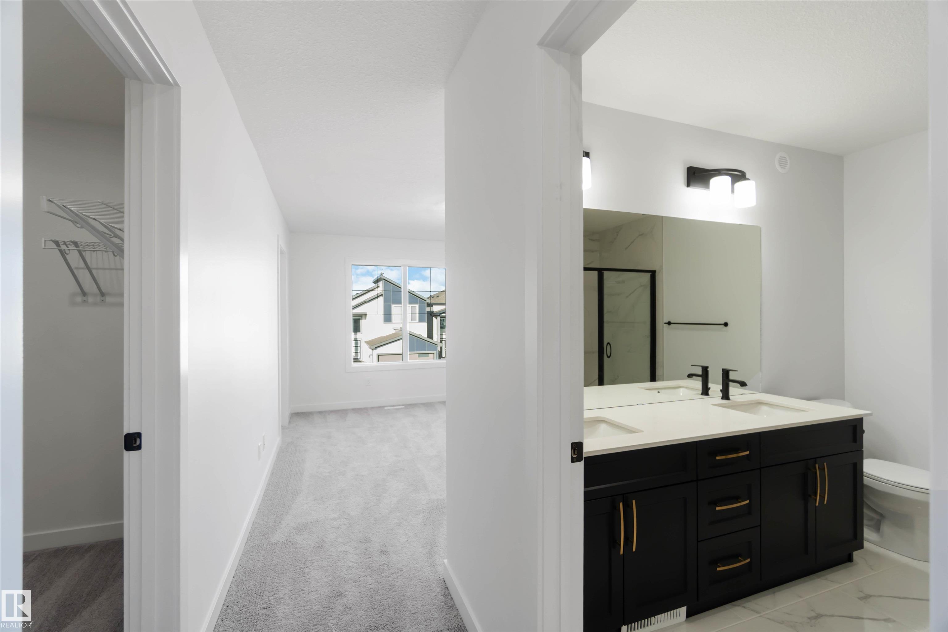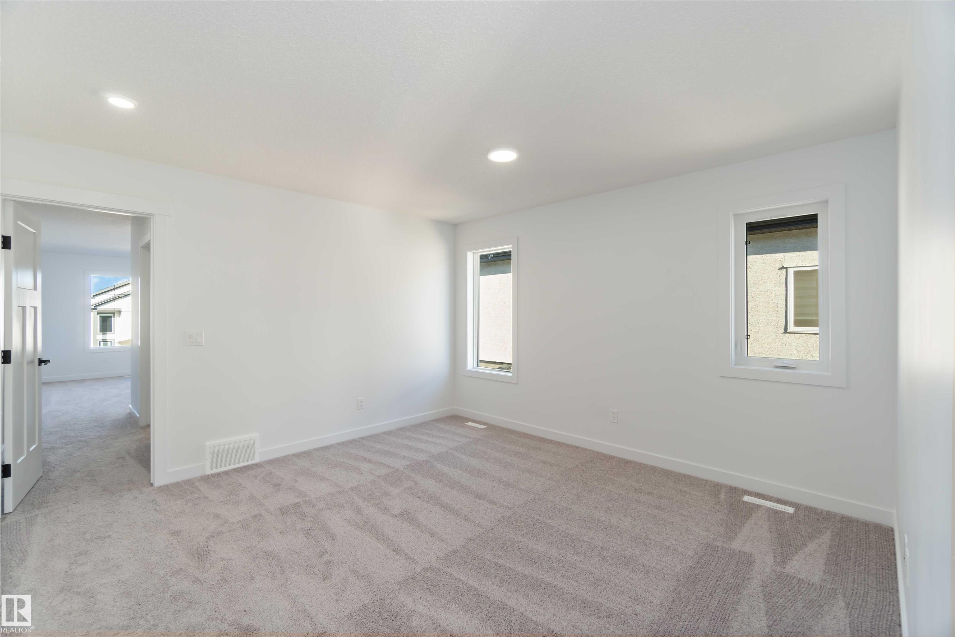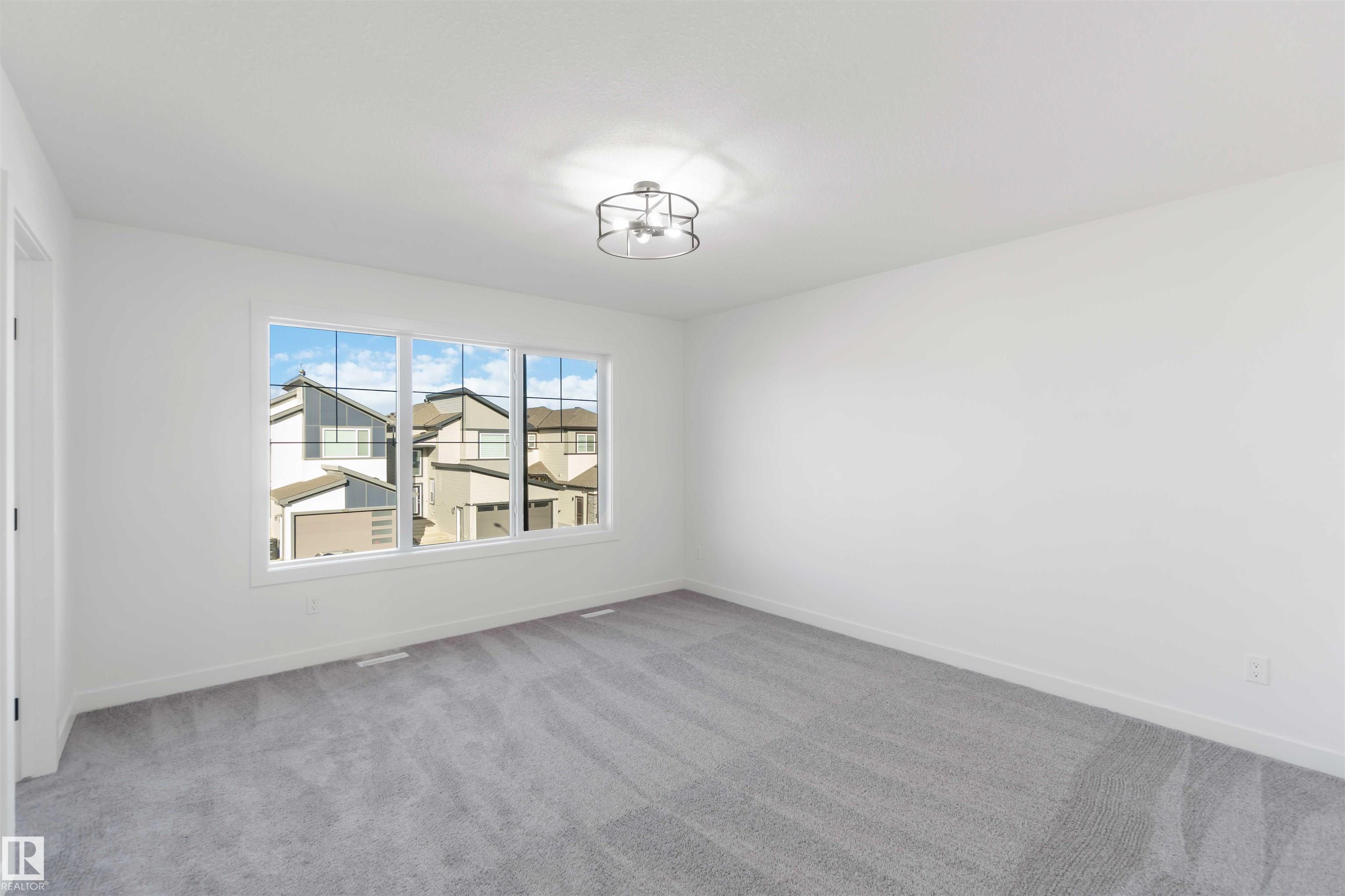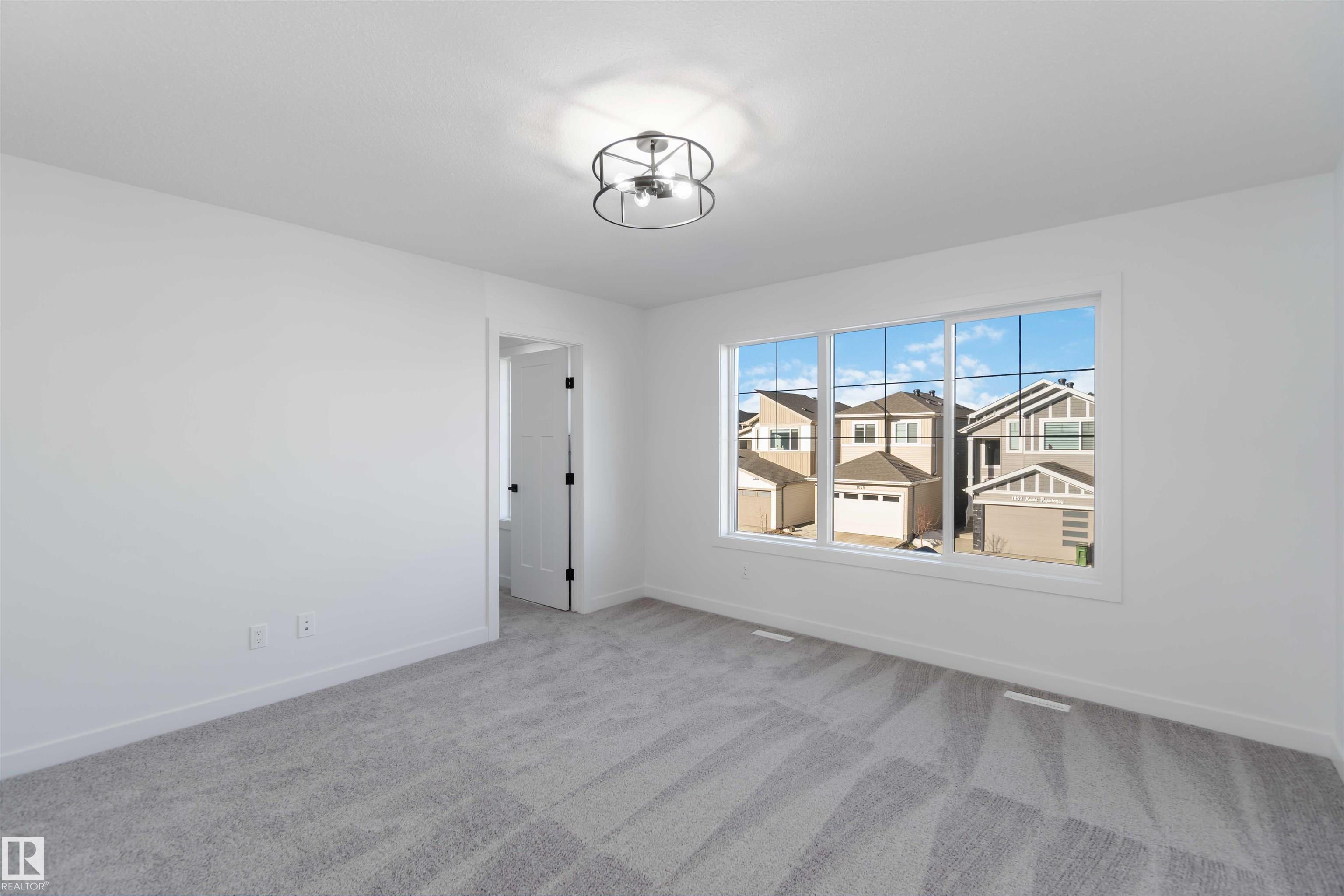 The Artemis is a spacious 4-bedroom home w/an extended dbl att. garage, separate side entrance & 9' ceilings on the main & basement levels. LVP flooring & stylish recessed lighting enhance the main floor. The foyer leads to a sitting room, with a main-floor bedroom & 3pc bath nearby. A mudroom with a large open closet connects to the garage & kitchen via a spice kitchen w/pantry. The open-concept design flows from the sitting room to the nook, great room & kitchen. The kitchen boasts quartz counters, an island with flush eating ledge, Silgranite sink, chimney-style hood fan, tile backsplash & Sarasota-style Thermofoil cabinets with soft-close. The great room has soaring 17' ceilings, F/P, large windows & garden door to the backyard. Upstairs offers 2 primary suites--one with a 4pc ensuite, and the other with a 5pc ensuite. A bonus room, 3pc bath, laundry area & an additional bedroom complete the upper level. Upgrades include upgraded railings & lighting, premium app pkg, R/I plumbing & extra side windows.