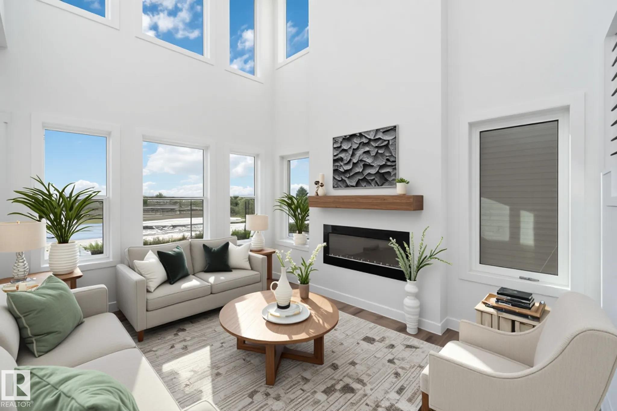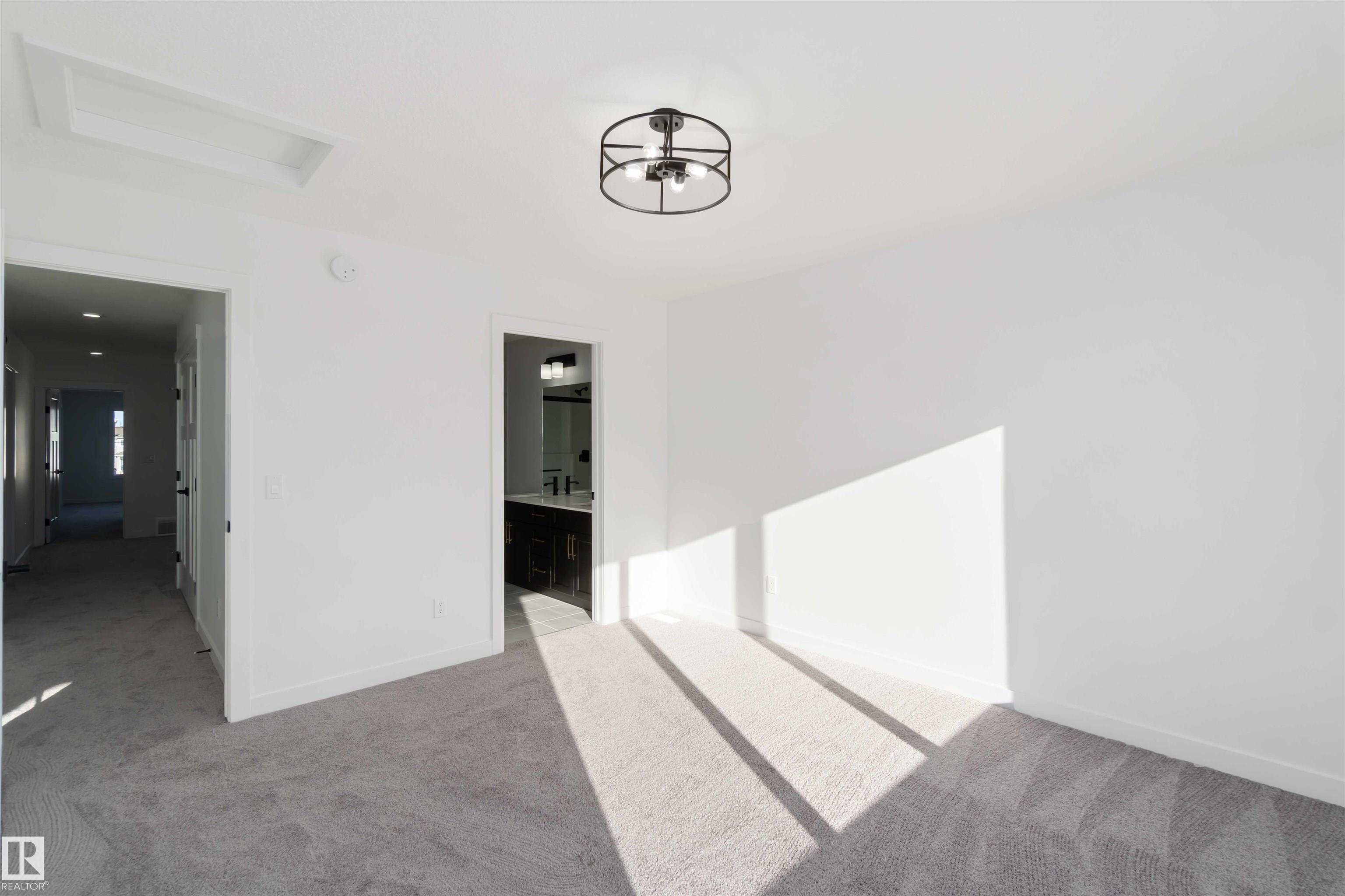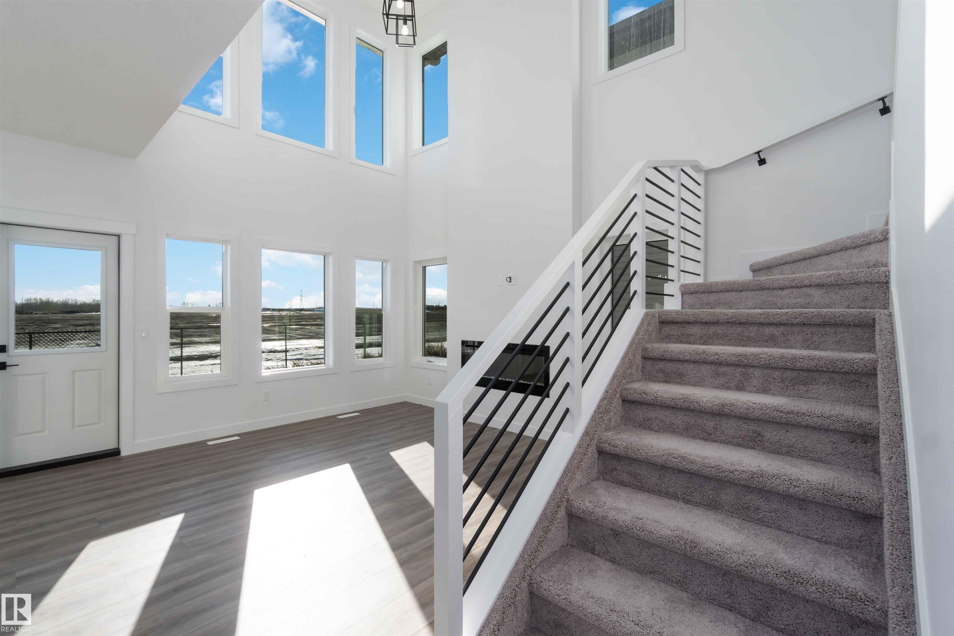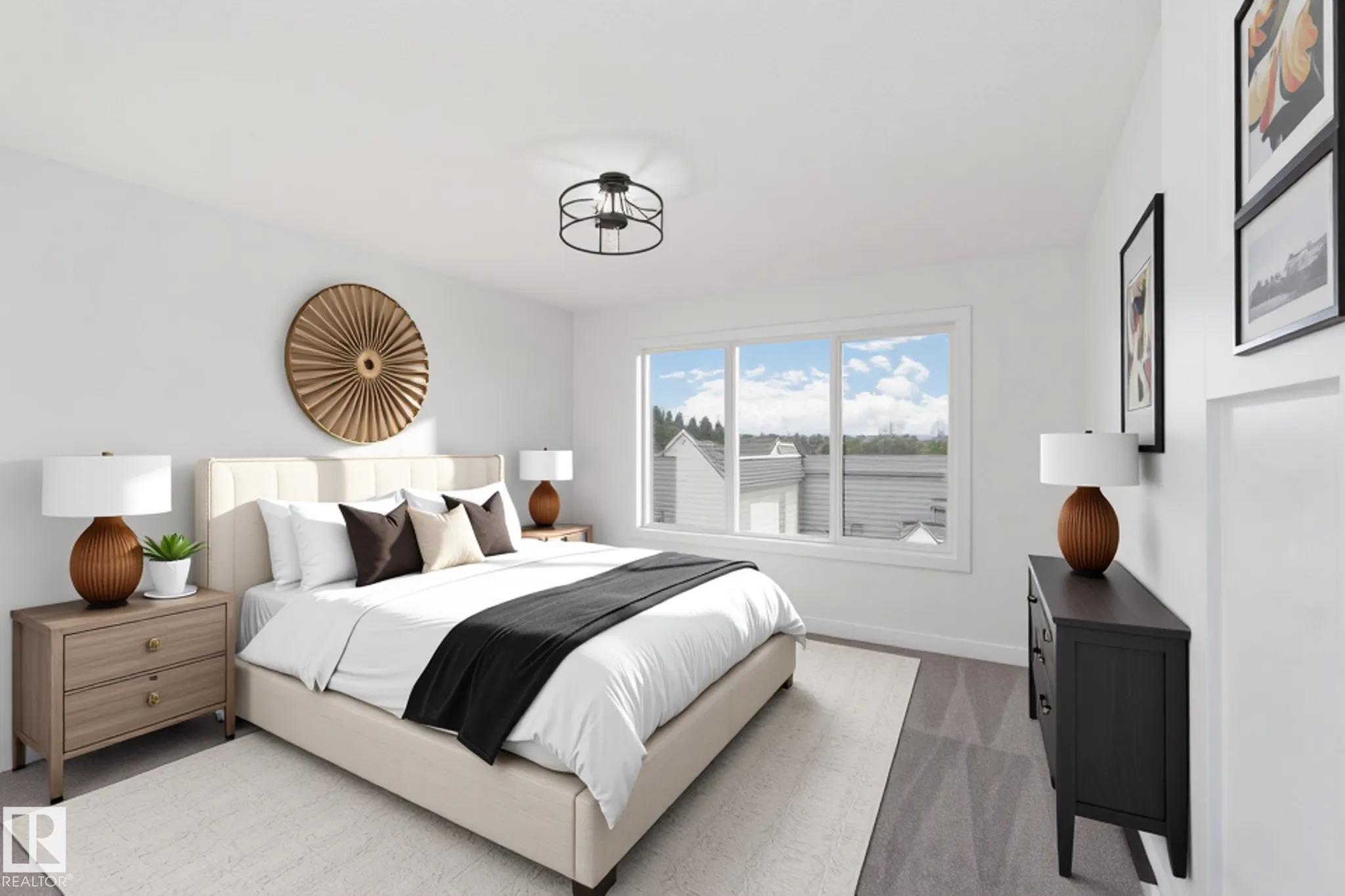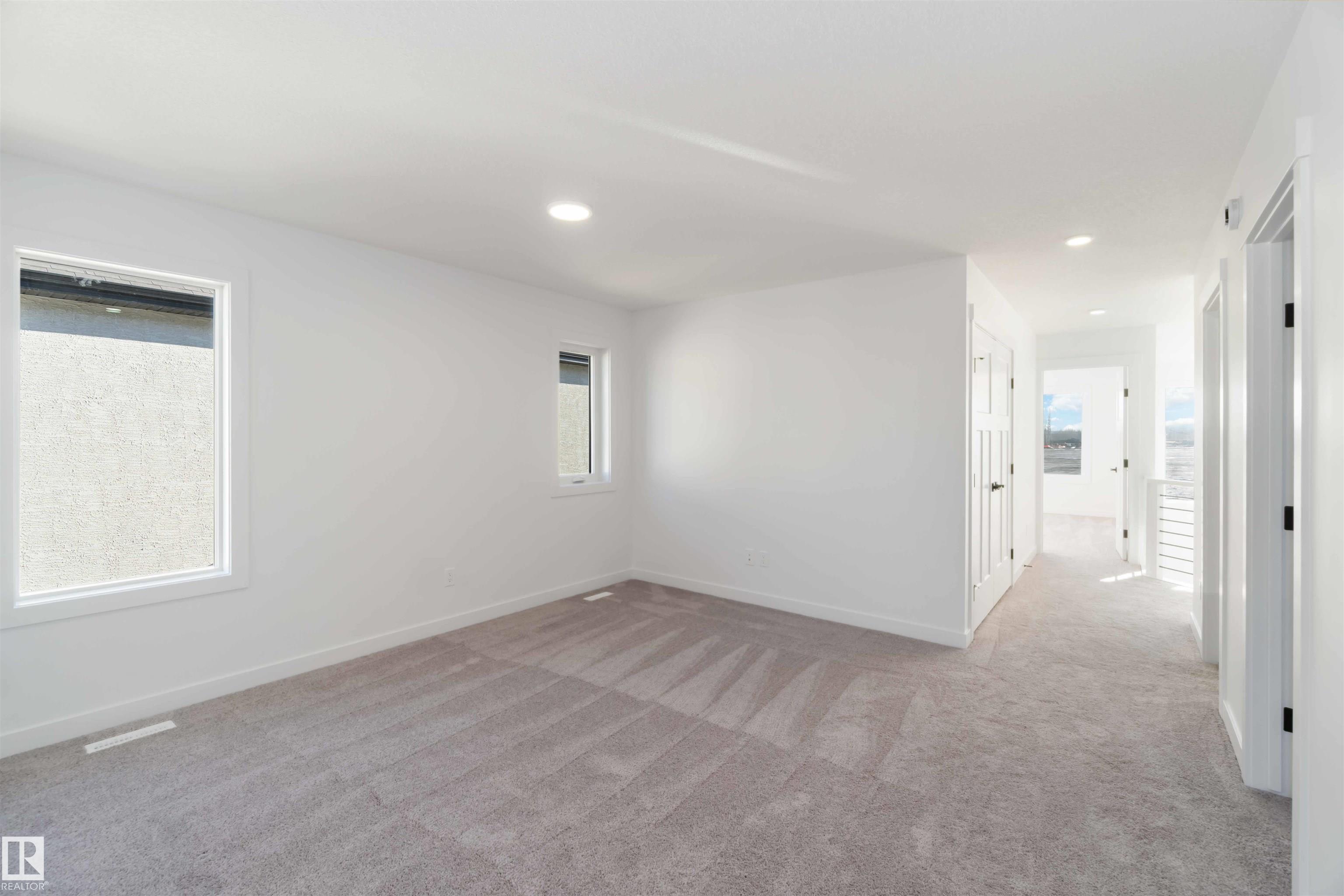 The Artemis is a spacious 4-bedroom home w/an extended dbl att. garage, separate side entrance & 9' ceilings on the main & basement levels. LVP flooring & stylish recessed lighting enhance the main floor. The foyer leads to a sitting room, with a main-floor bedroom & 3pc bath nearby. A mudroom with a large open closet connects to the garage & kitchen via a spice kitchen w/pantry. The open-concept design flows from the sitting room to the nook, great room & kitchen. The kitchen boasts quartz counters, an island with flush eating ledge, Silgranite sink, chimney-style hood fan, tile backsplash & Sarasota-style Thermofoil cabinets with soft-close. The great room has soaring 17' ceilings, F/P, large windows & garden door to the backyard. Upstairs offers 2 primary suites--one with a 4pc ensuite, and the other with a 5pc ensuite. A bonus room, 3pc bath, laundry area & an additional bedroom complete the upper level. Upgrades include upgraded railings & lighting, premium app pkg, R/I plumbing & extra side windows.