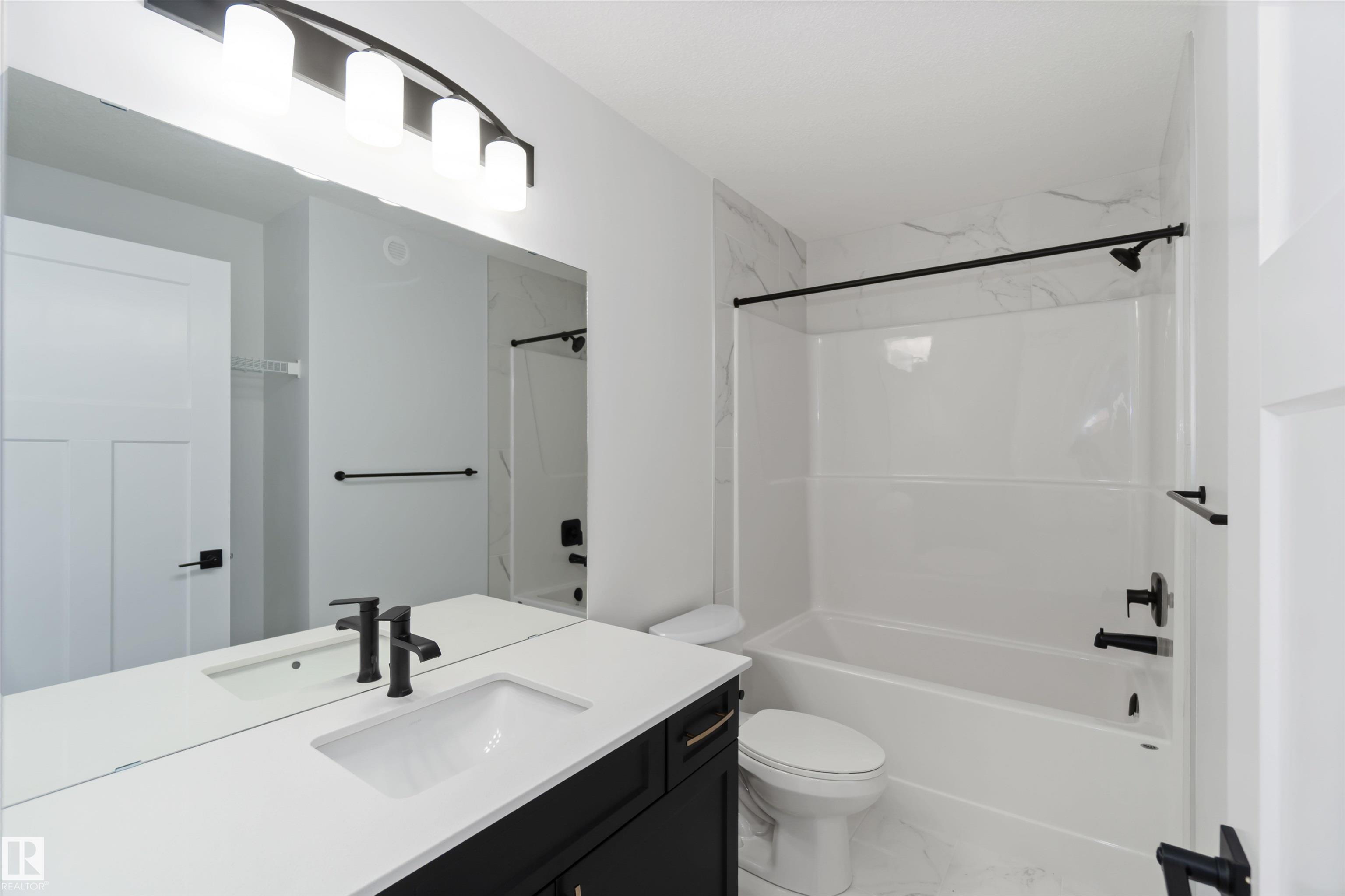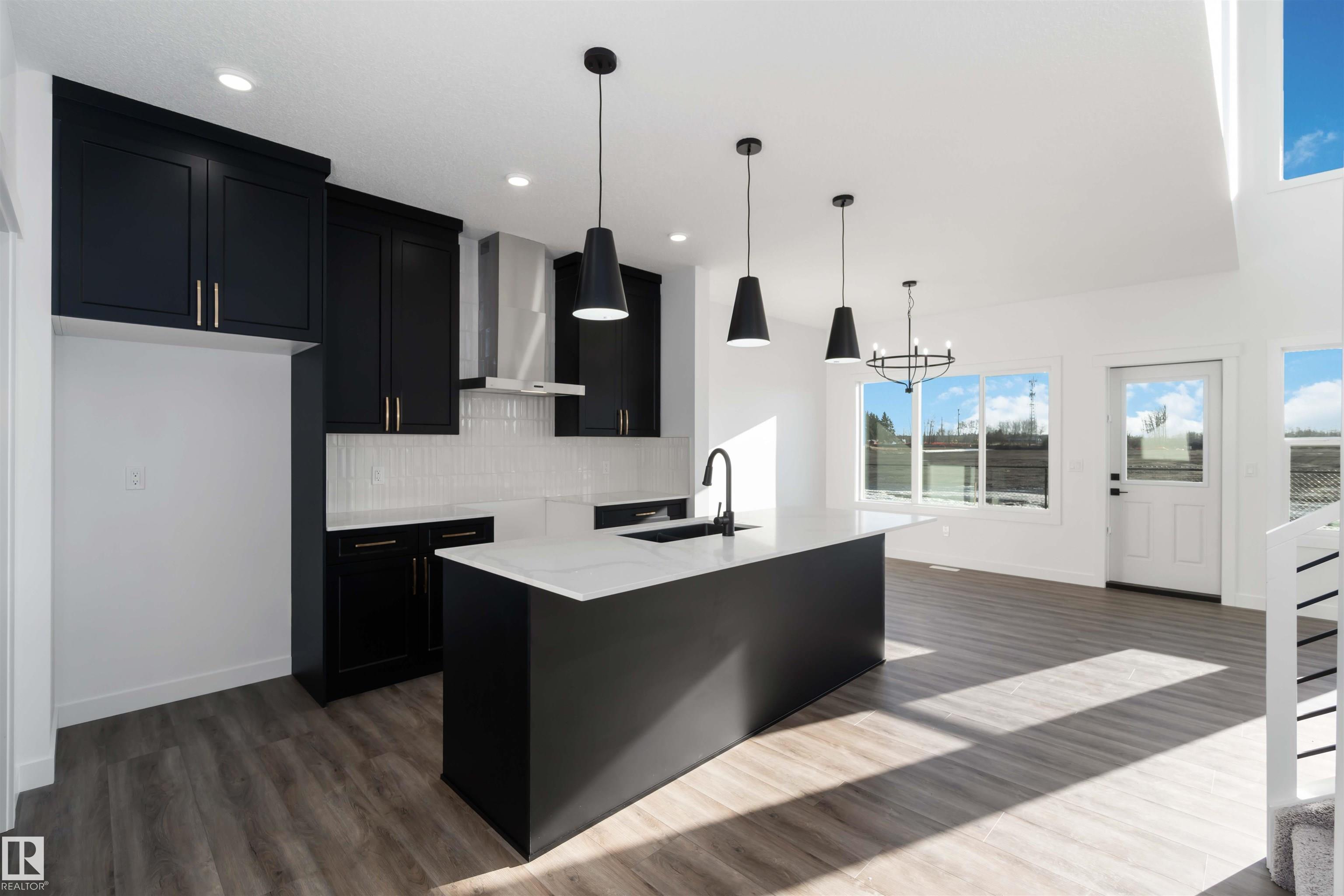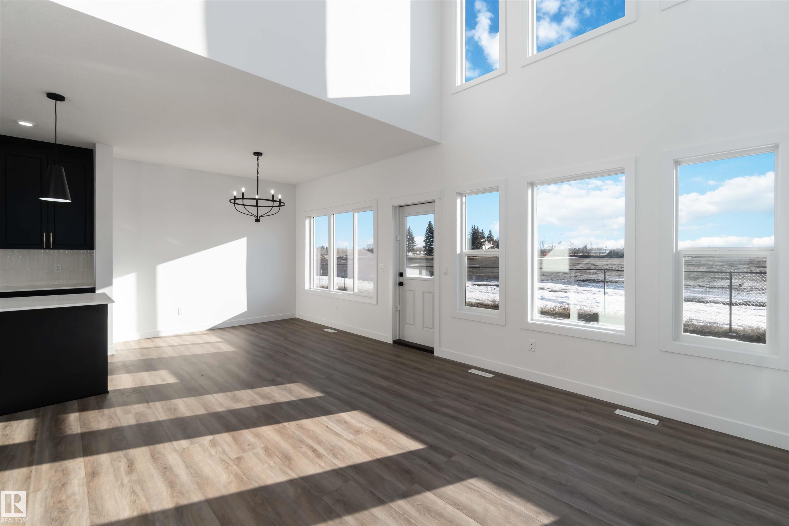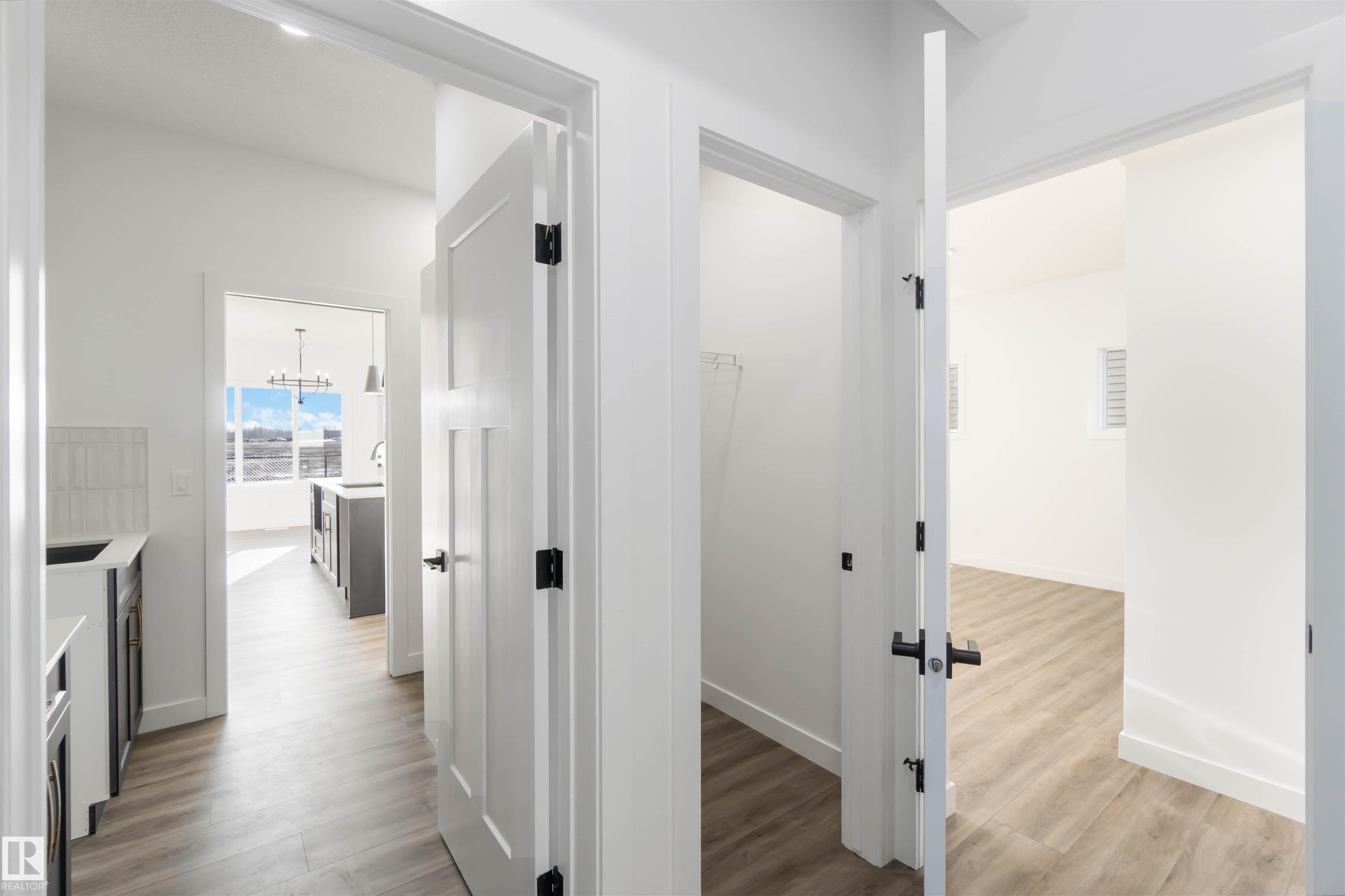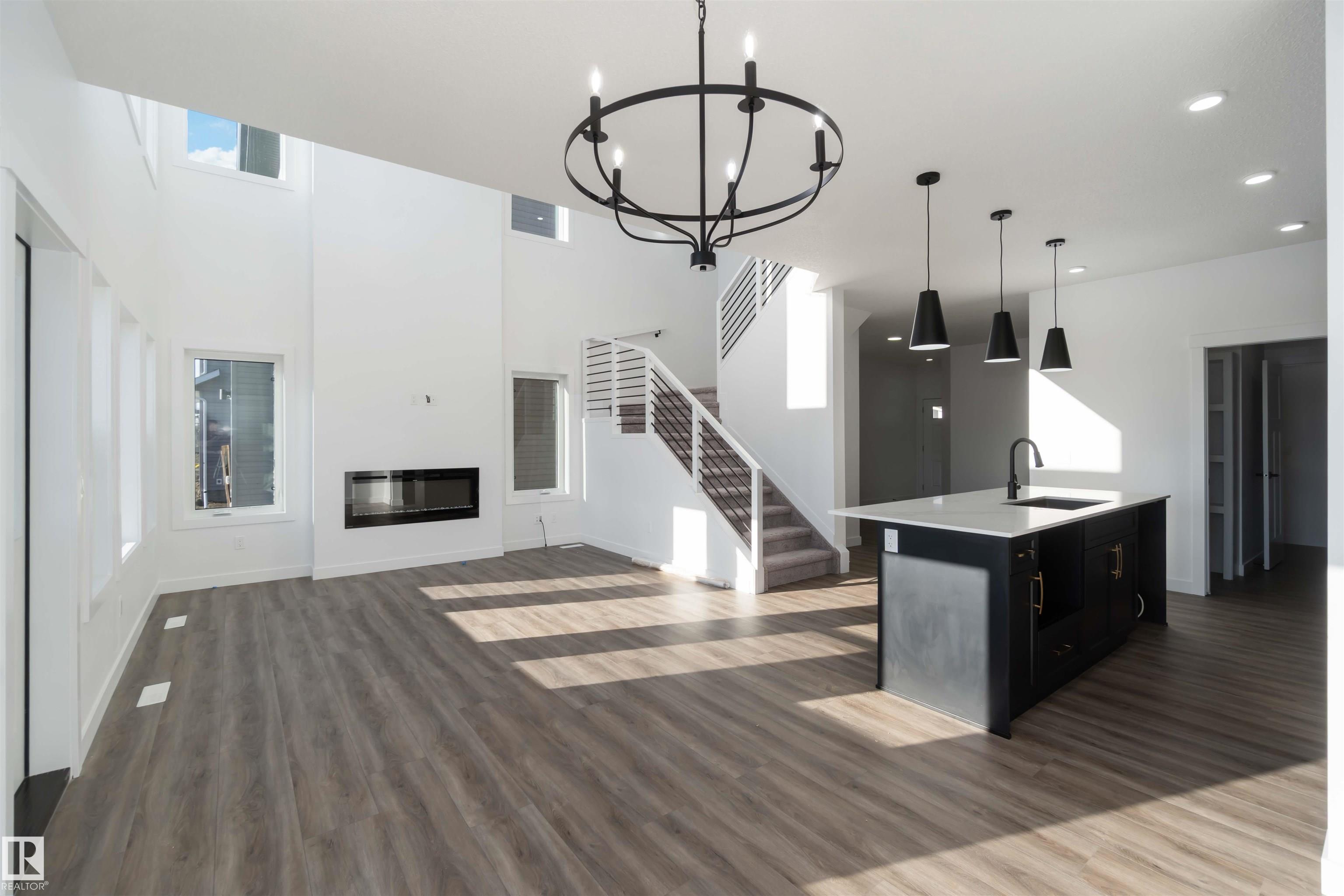 The Artemis is a spacious 4-bedroom home w/an extended dbl att. garage, separate side entrance & 9' ceilings on the main & basement levels. LVP flooring & stylish recessed lighting enhance the main floor. The foyer leads to a sitting room, with a main-floor bedroom & 3pc bath nearby. A mudroom with a large open closet connects to the garage & kitchen via a spice kitchen w/pantry. The open-concept design flows from the sitting room to the nook, great room & kitchen. The kitchen boasts quartz counters, an island with flush eating ledge, Silgranite sink, chimney-style hood fan, tile backsplash & Sarasota-style Thermofoil cabinets with soft-close. The great room has soaring 17' ceilings, F/P, large windows & garden door to the backyard. Upstairs offers 2 primary suites--one with a 4pc ensuite, and the other with a 5pc ensuite. A bonus room, 3pc bath, laundry area & an additional bedroom complete the upper level. Upgrades include upgraded railings & lighting, premium app pkg, R/I plumbing & extra side windows.