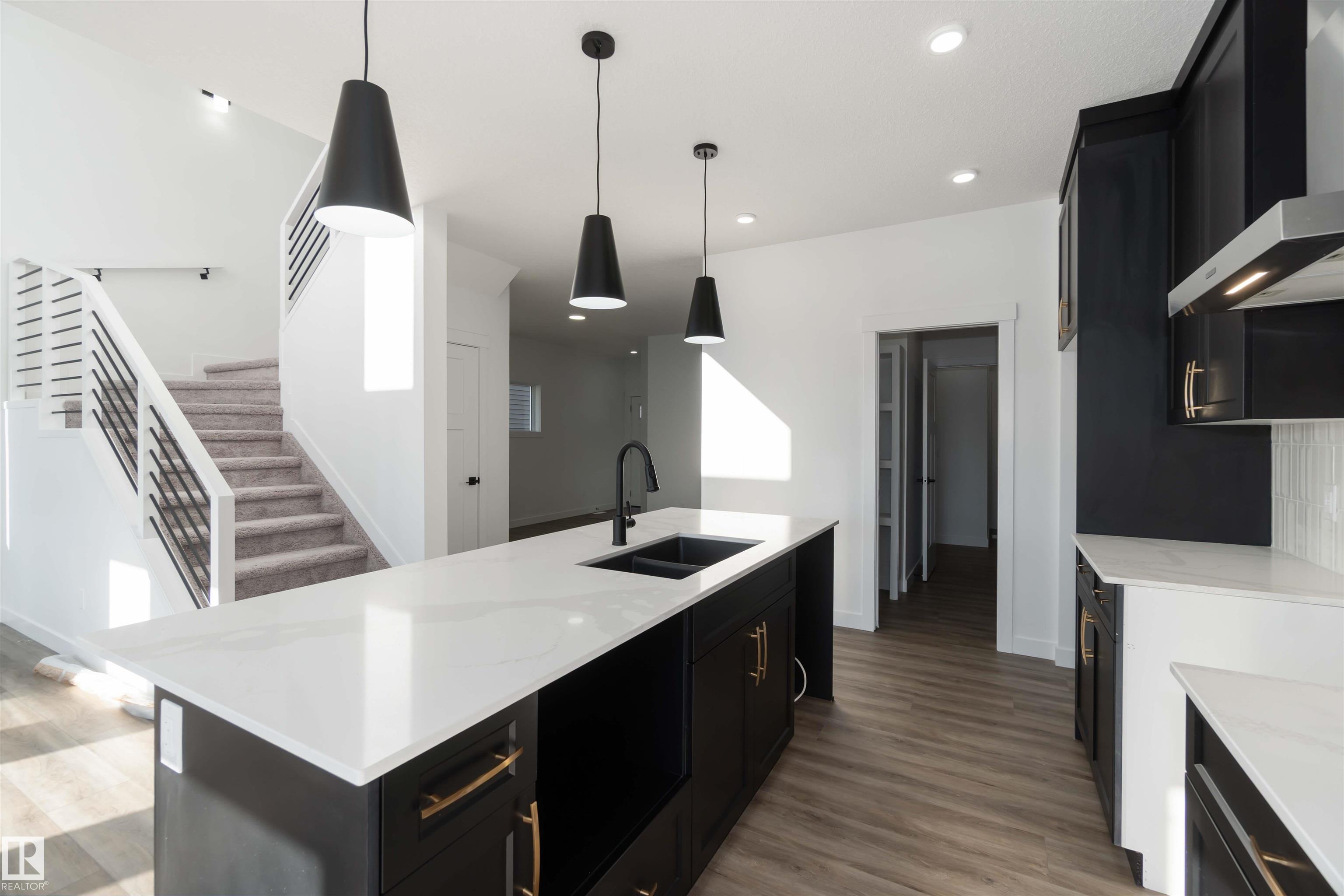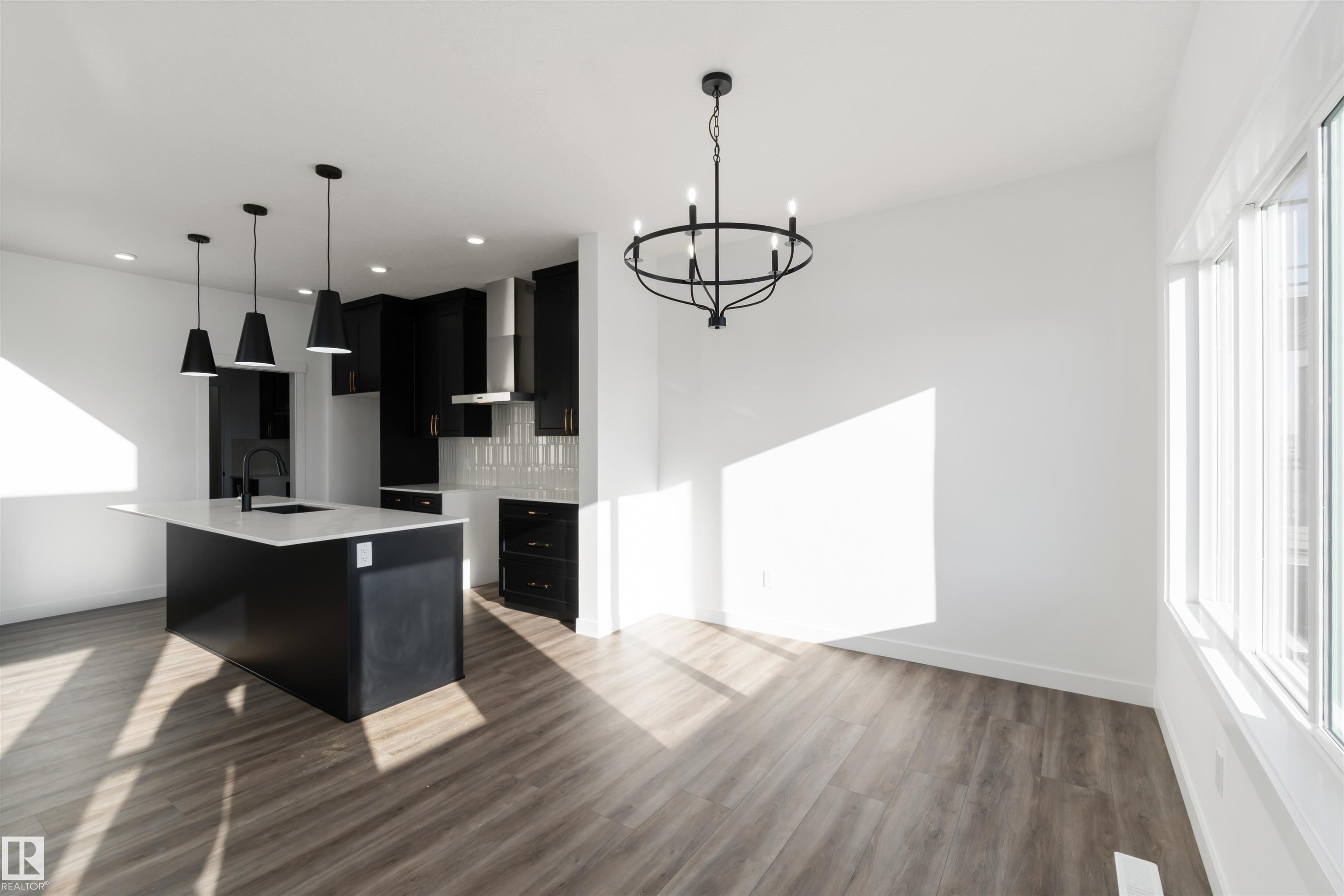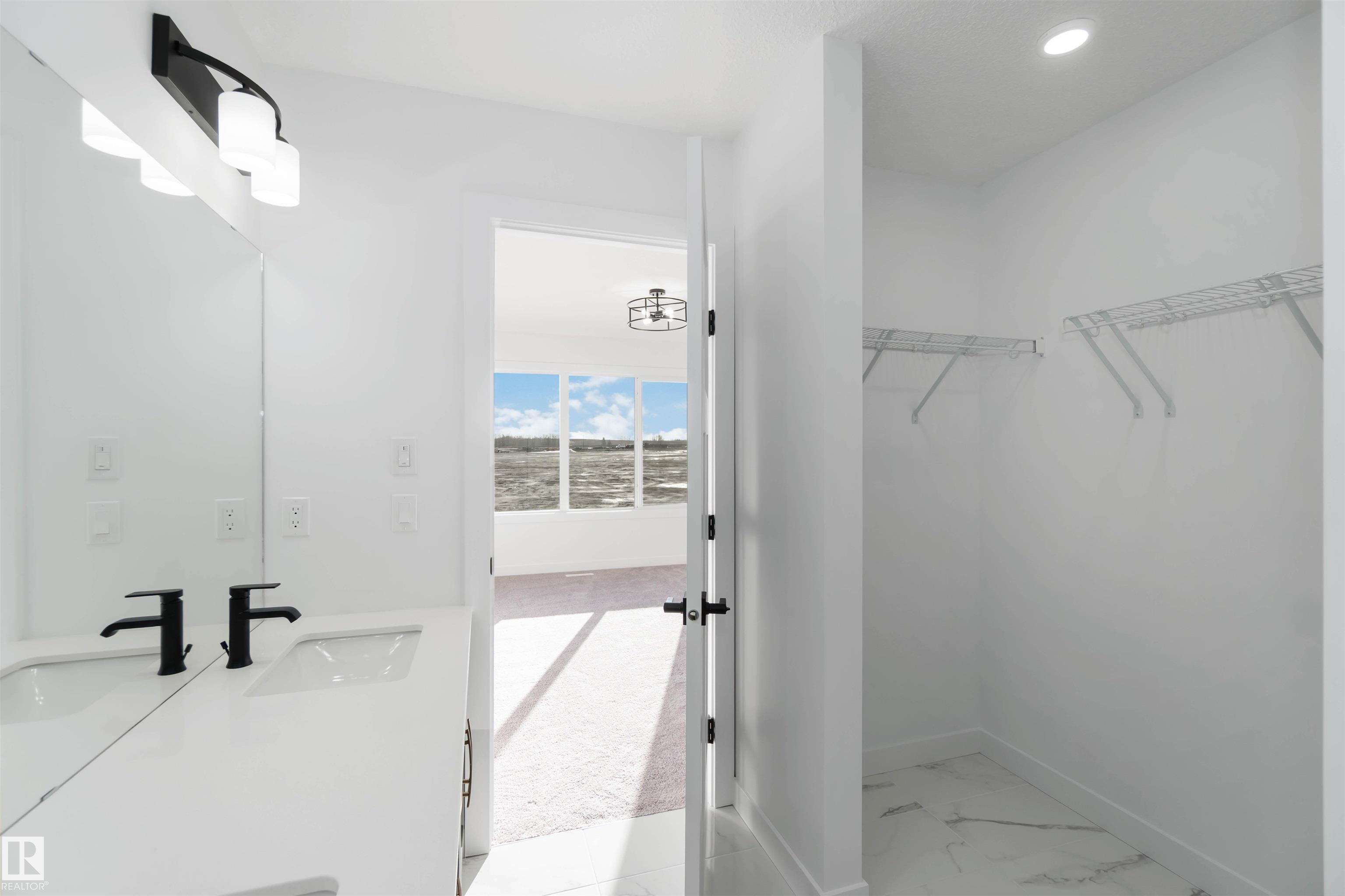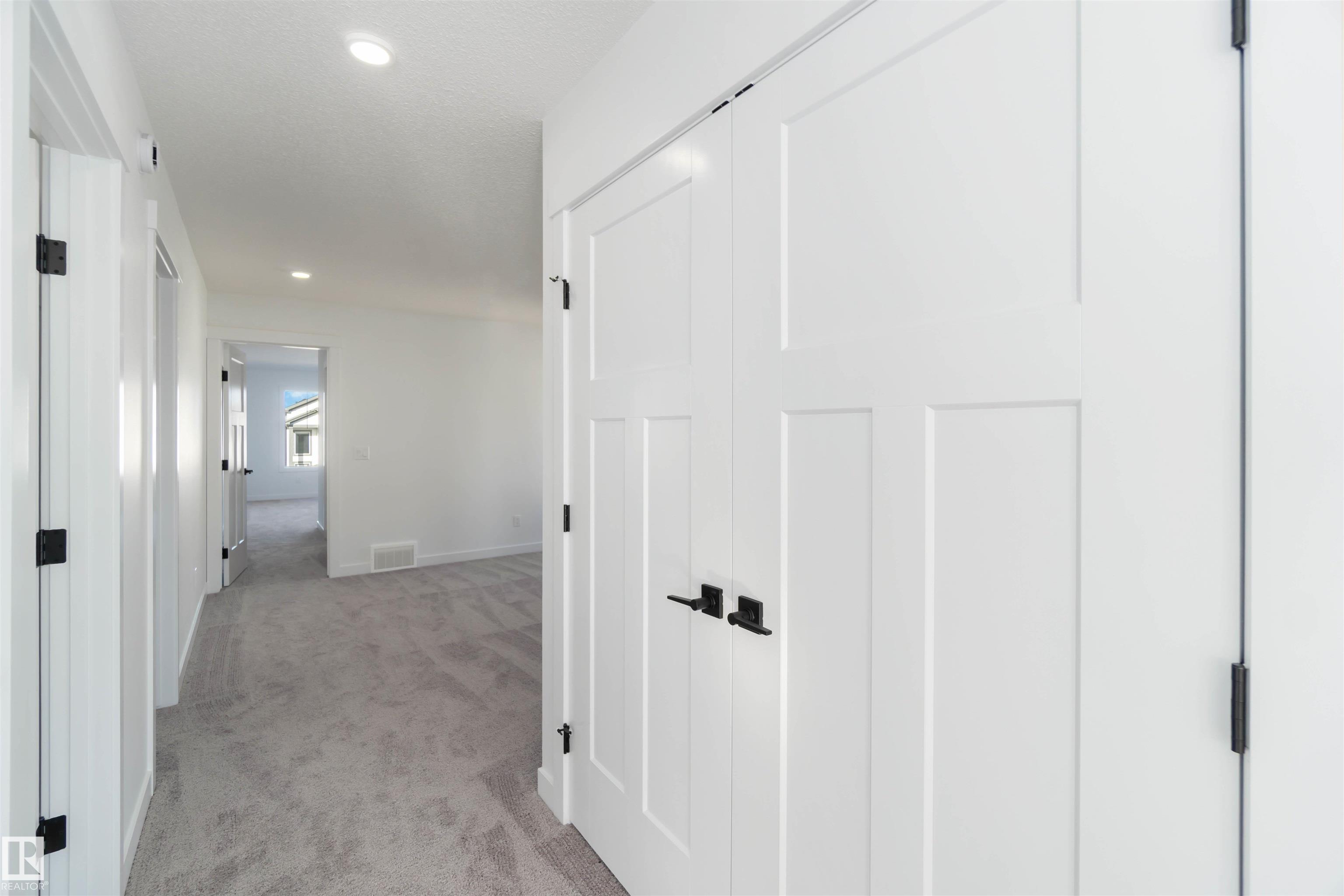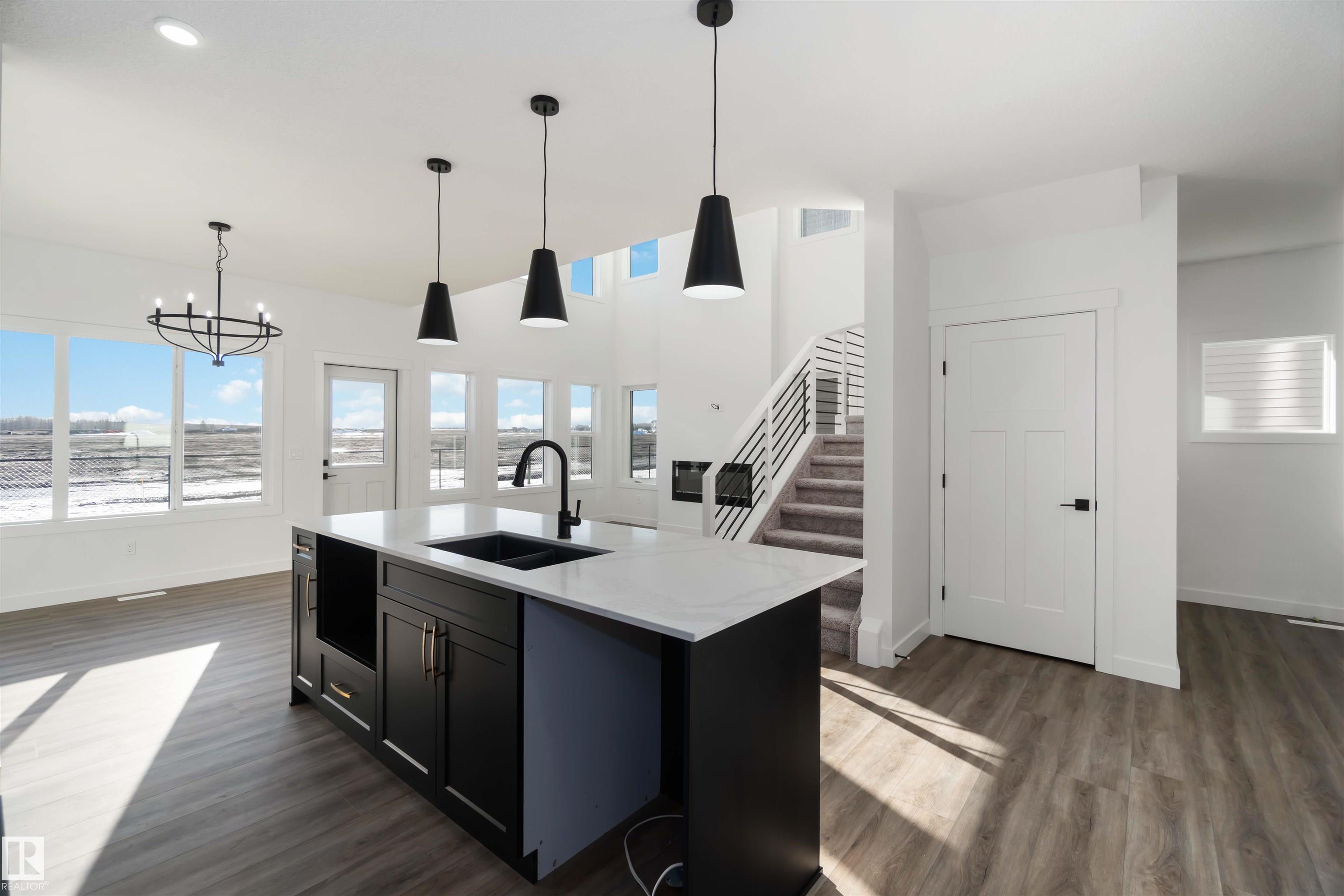 The Artemis is a spacious 4-bedroom home w/an extended dbl att. garage, separate side entrance & 9' ceilings on the main & basement levels. LVP flooring & stylish recessed lighting enhance the main floor. The foyer leads to a sitting room, with a main-floor bedroom & 3pc bath nearby. A mudroom with a large open closet connects to the garage & kitchen via a spice kitchen w/pantry. The open-concept design flows from the sitting room to the nook, great room & kitchen. The kitchen boasts quartz counters, an island with flush eating ledge, Silgranite sink, chimney-style hood fan, tile backsplash & Sarasota-style Thermofoil cabinets with soft-close. The great room has soaring 17' ceilings, F/P, large windows & garden door to the backyard. Upstairs offers 2 primary suites--one with a 4pc ensuite, and the other with a 5pc ensuite. A bonus room, 3pc bath, laundry area & an additional bedroom complete the upper level. Upgrades include upgraded railings & lighting, premium app pkg, R/I plumbing & extra side windows.