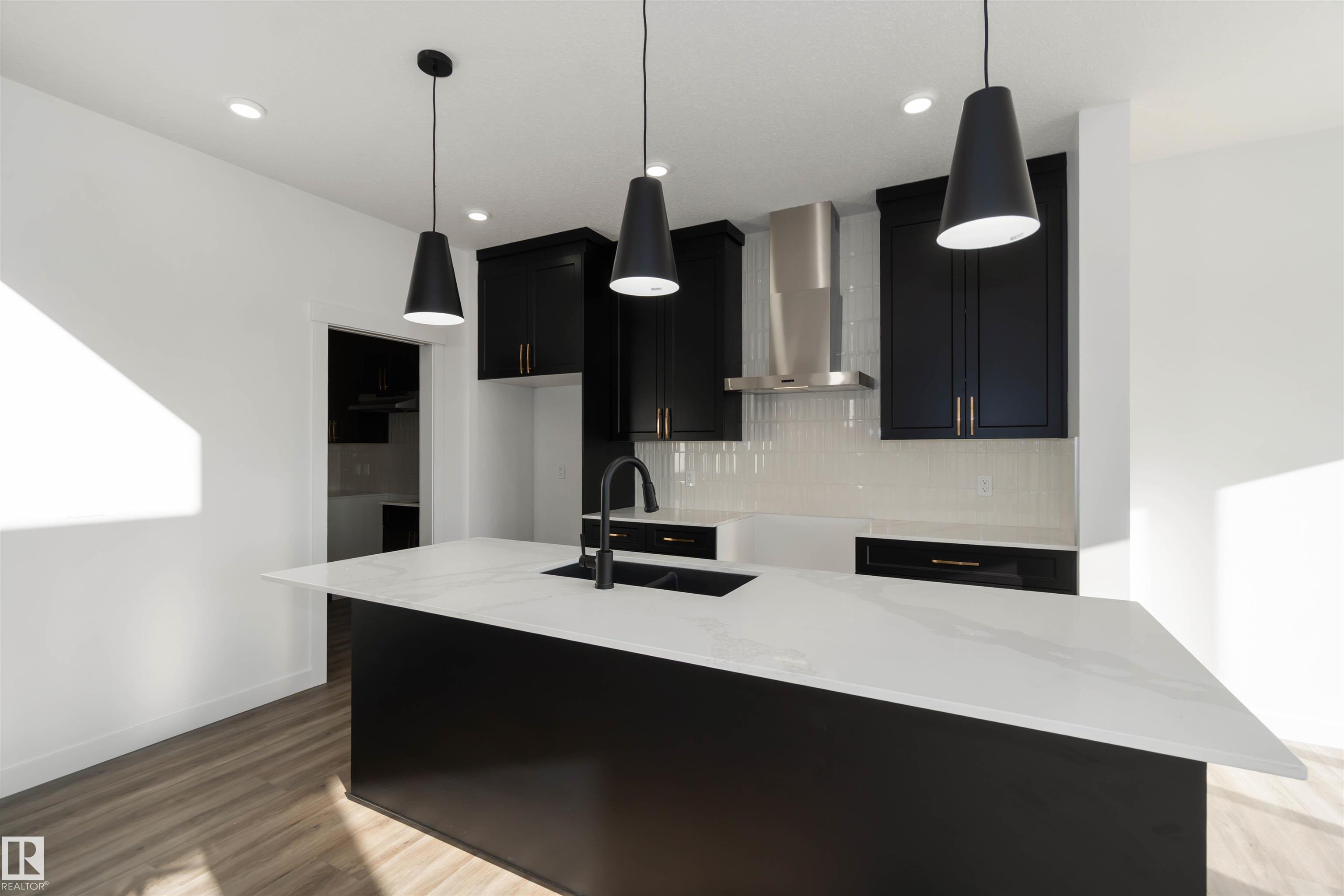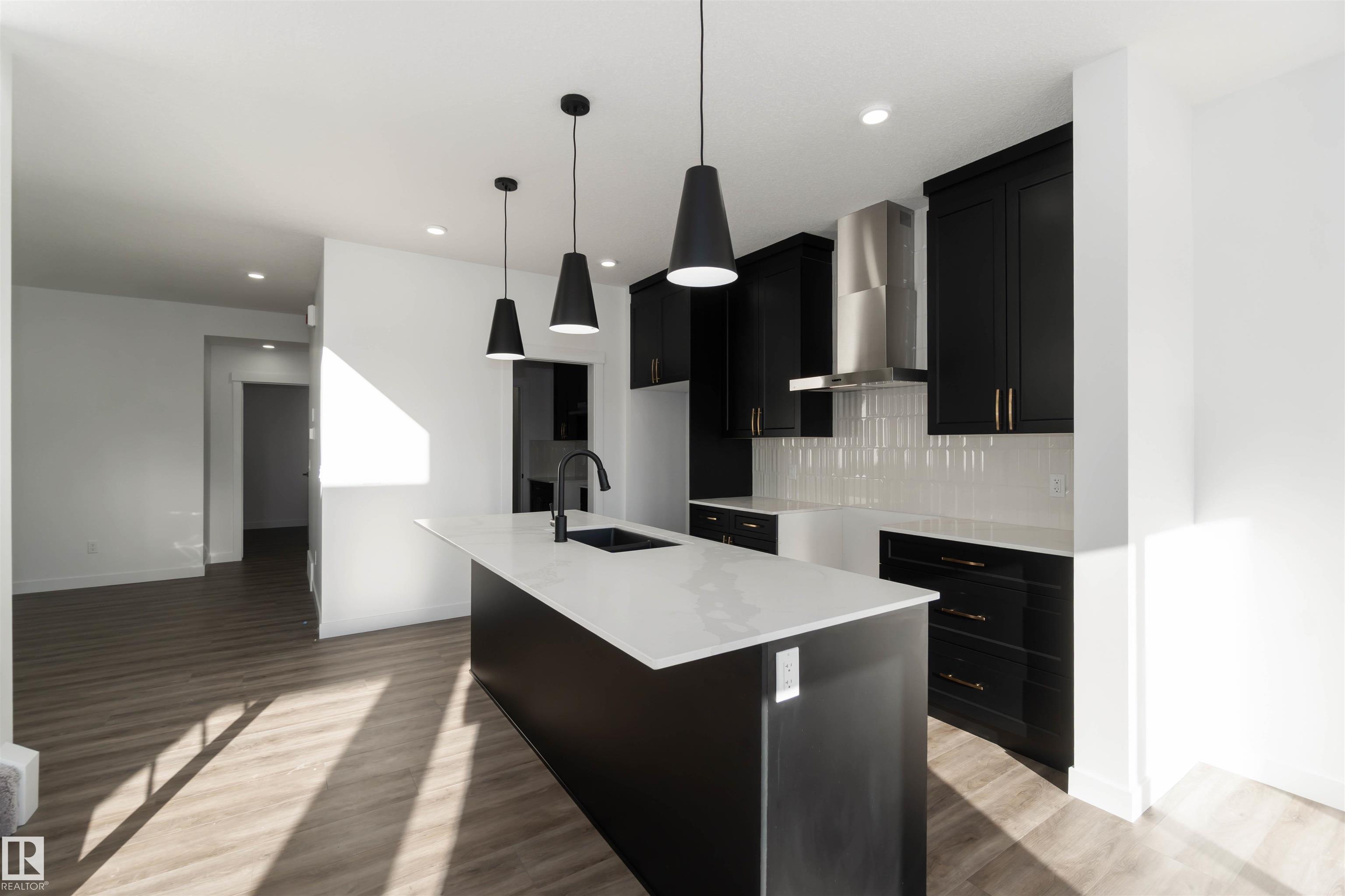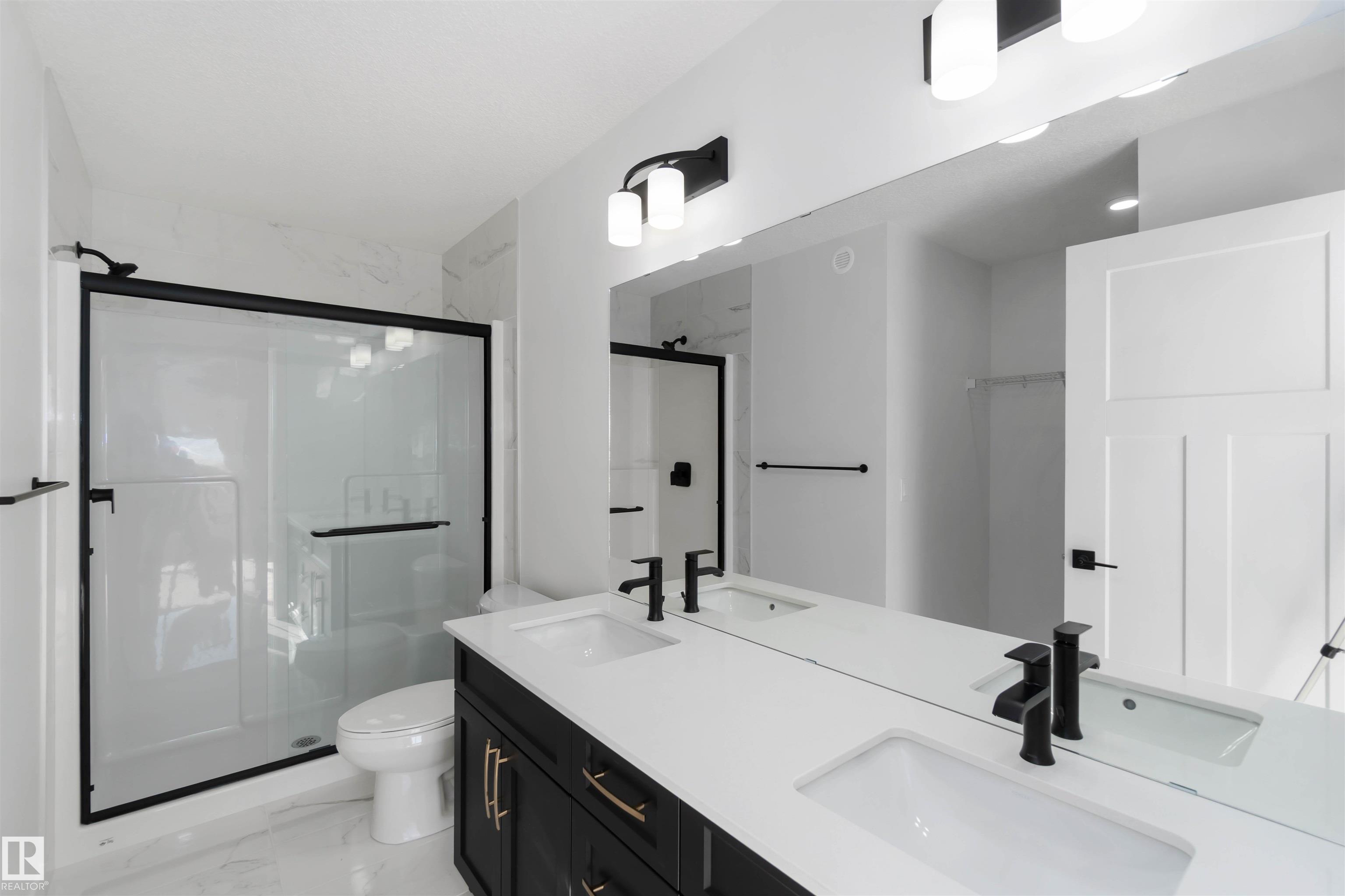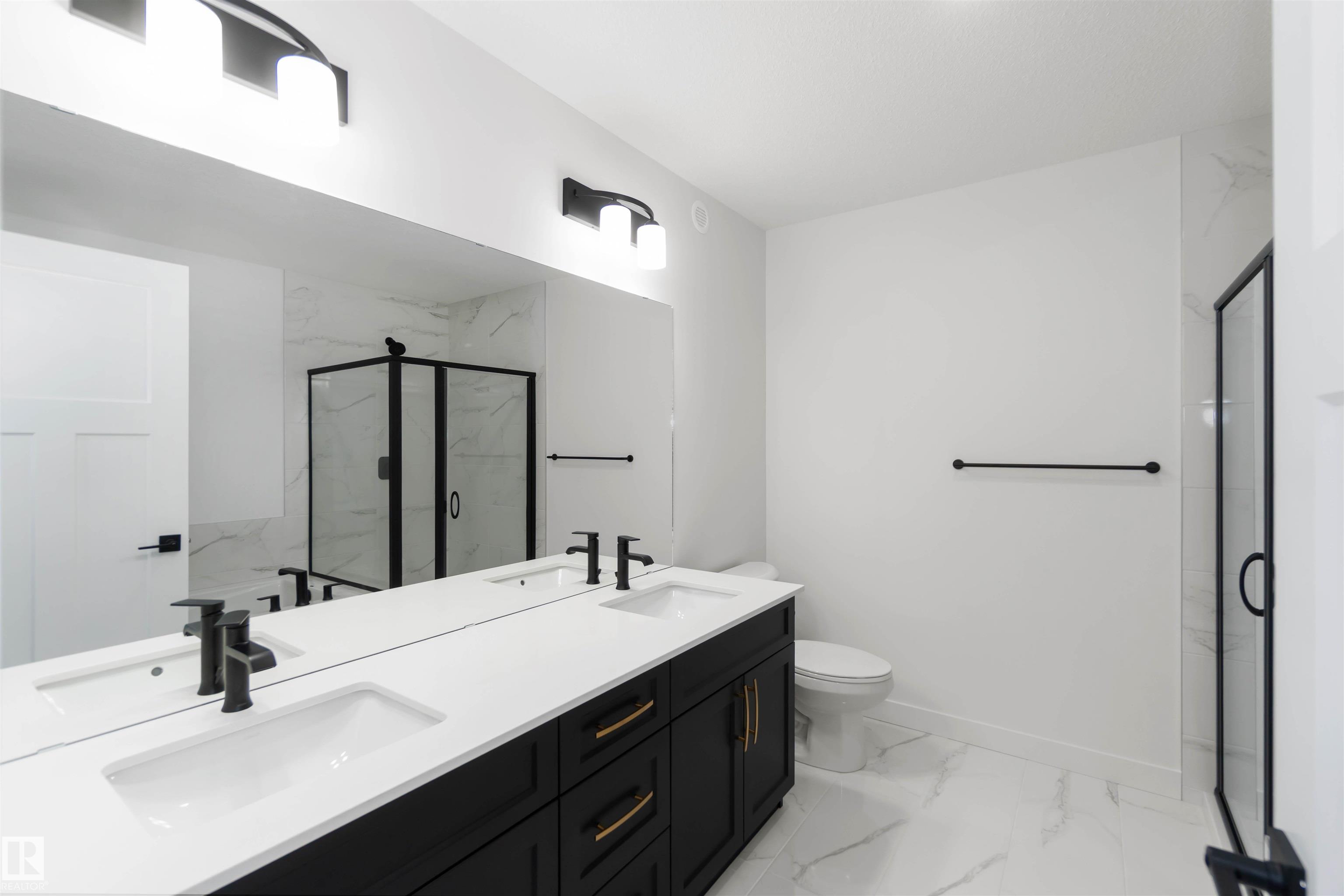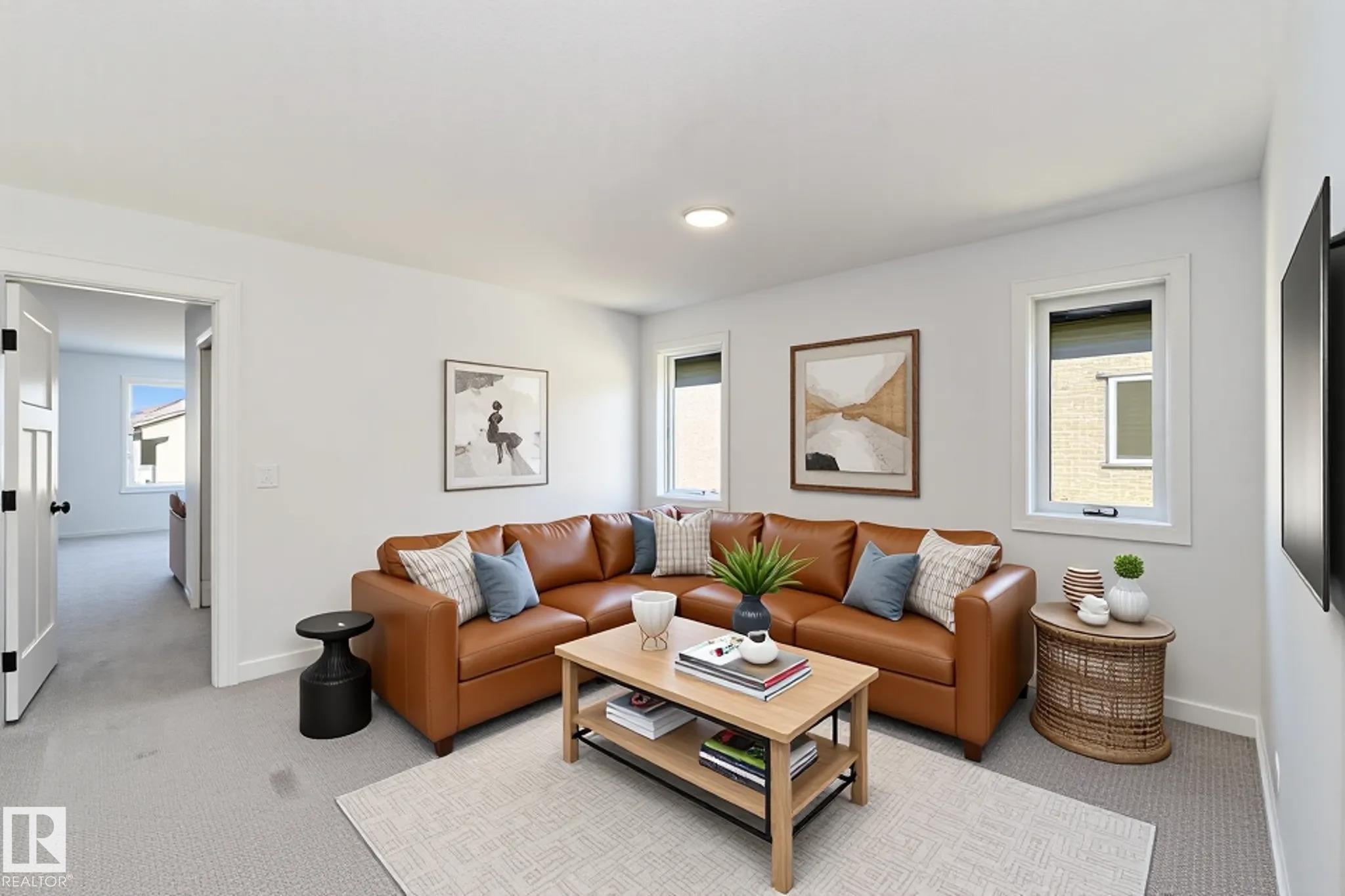 The Artemis is a spacious 4-bedroom home w/an extended dbl att. garage, separate side entrance & 9' ceilings on the main & basement levels. LVP flooring & stylish recessed lighting enhance the main floor. The foyer leads to a sitting room, with a main-floor bedroom & 3pc bath nearby. A mudroom with a large open closet connects to the garage & kitchen via a spice kitchen w/pantry. The open-concept design flows from the sitting room to the nook, great room & kitchen. The kitchen boasts quartz counters, an island with flush eating ledge, Silgranite sink, chimney-style hood fan, tile backsplash & Sarasota-style Thermofoil cabinets with soft-close. The great room has soaring 17' ceilings, F/P, large windows & garden door to the backyard. Upstairs offers 2 primary suites--one with a 4pc ensuite, and the other with a 5pc ensuite. A bonus room, 3pc bath, laundry area & an additional bedroom complete the upper level. Upgrades include upgraded railings & lighting, premium app pkg, R/I plumbing & extra side windows.