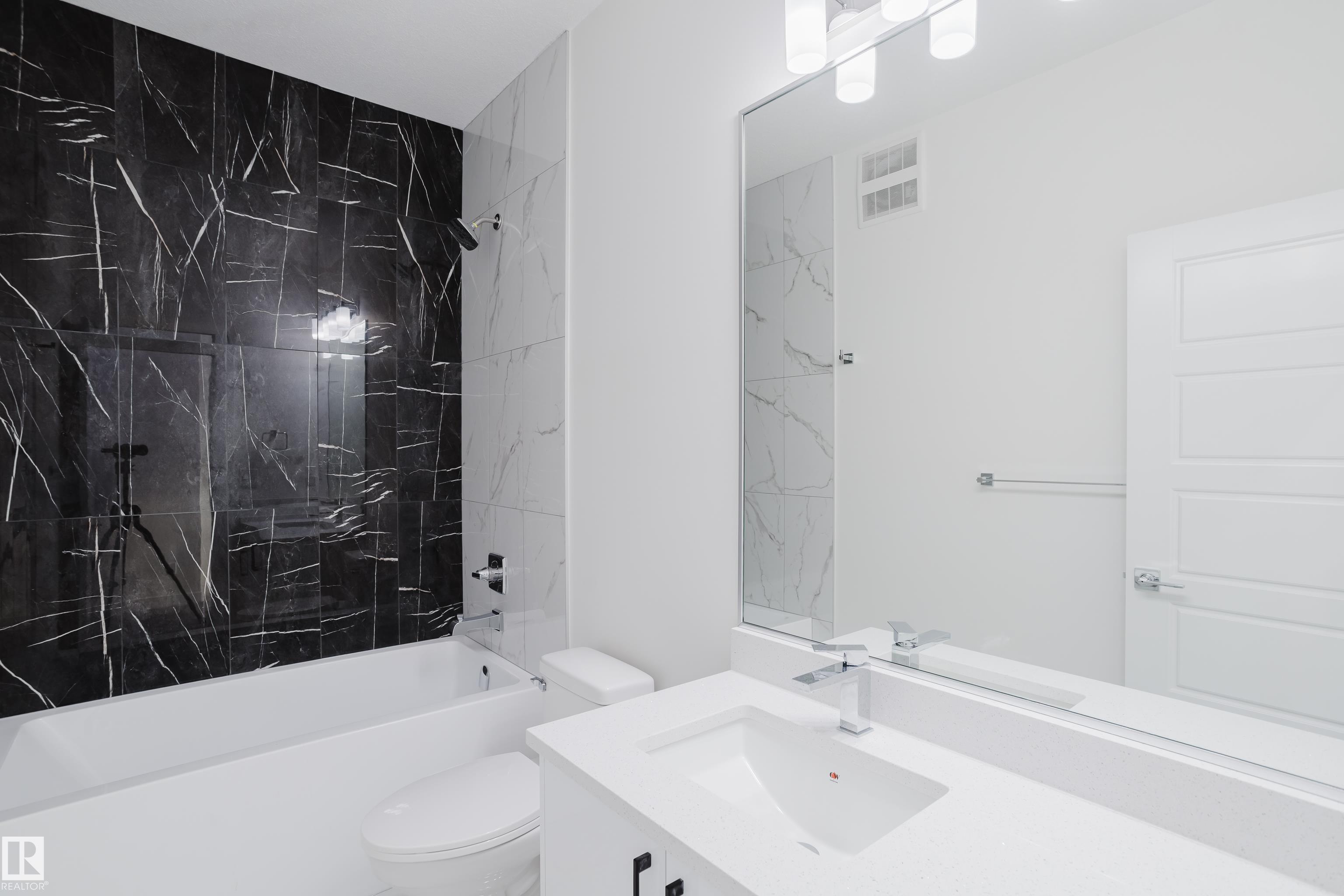 Welcome to this captivating half duplex in the highly desirable community of Aster. The main floor offers a spacious layout with tile flooring, an extended kitchen with ample cabinetry and counter space, a separate spice kitchen, a versatile den, and a full bathroom with a standing shower. The open to above living room creates a striking centerpiece with abundant natural light and a grand sense of space. Upstairs you will find three well sized bedrooms including a primary suite with a five piece ensuite, along with a bonus room that adds extra flexibility for your family's needs. The fully finished basement is developed with a legal two bedroom suite that provides additional living space or excellent rental potential. Located close to schools, shopping, parks, and major roadways, this home combines functionality and value in a prime location.