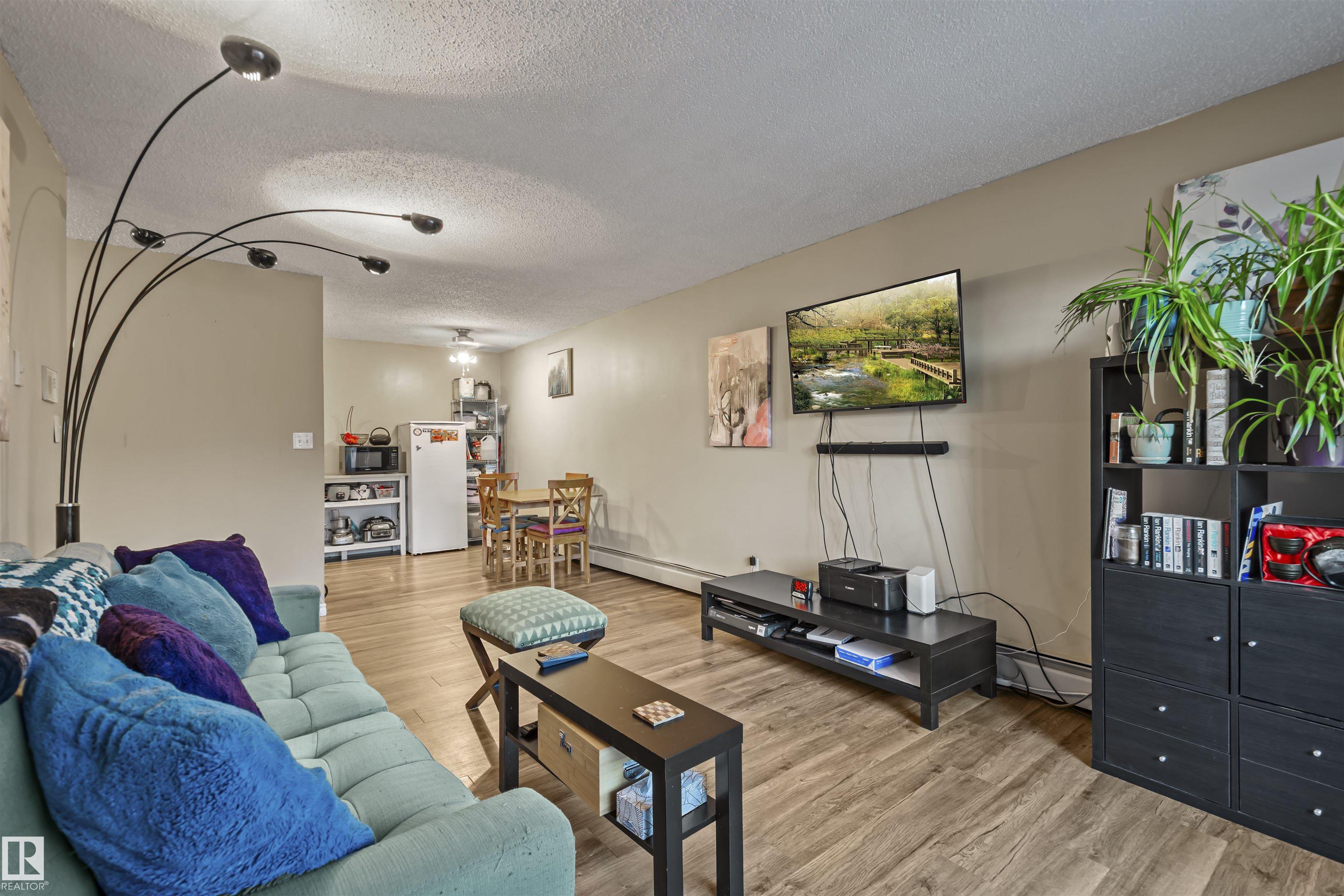 Welcome to Ravine Place in Cromdale! This bright 1-bedroom, 1-bath condo offers 629 sq ft of comfortable living just steps from the river valley and two blocks from the Commonwealth LRT. The second-floor unit features modern vinyl plank flooring upgrade throughout and a functional layout with spacious living and dining areas, kitchen, and private balcony. Enjoy a surface parking stall near the door, Shared Laundry across the hall, low condo fees, and a pet-friendly building with no snow shovelling or lawn care. Perfectly located near downtown, Commonwealth Stadium, Borden Park, the Rec Centre, and Northlands--plus nearby grocery stores, caf‚s, restaurants, and medical services. Whether you're a first-time buyer, student, or investor, this is a fantastic opportunity for low-maintenance living in a convenient, transit-rich community.
