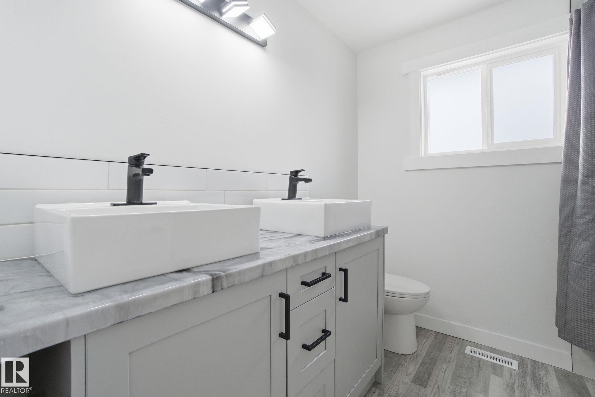 WOW! Large families, nothing to do here but move in! This large completely renovated 3+3 Bedroom + Den, 3 Bath stunning home, is located in the mature Community of Delwood. Move in ready and absolutely stunning. This property has been completely renovated. Main floor + lower laundry. New windows, new doors (in and out), new electrical, plumbing, H/W tank, new wall and attic insulation, flooring, drywall, paint, custom epoxy countertops, fixtures and cabinets. New concrete sidewalks, new sod, new fascia, eaves and downspouts. Great floor plan and super bright! Large master with 3 pce ensuite. The basement is fully finished - consists of an in-law suite with new kitchen, family room, 3 bedrooms + Den, 3 pce bath, separate laundry room, insulated ceiling and wine rack under stairs. A/C, backyard is fenced with new fence, large patio and double garage. Close to all amenities, daycare, schools and a new city paved street with bike lane. This shows 10/10.