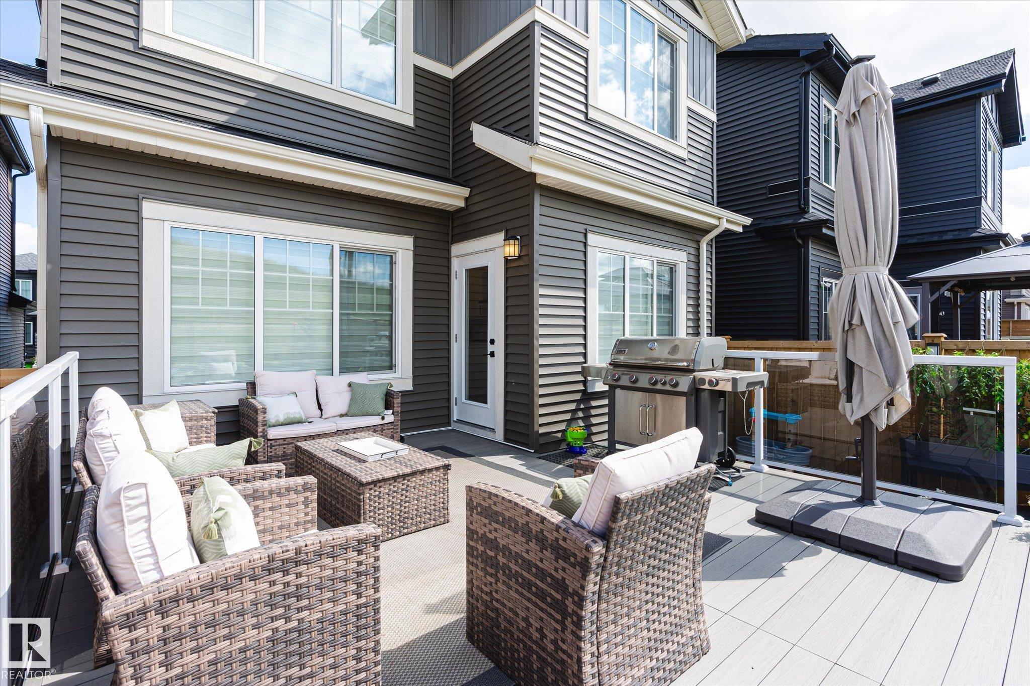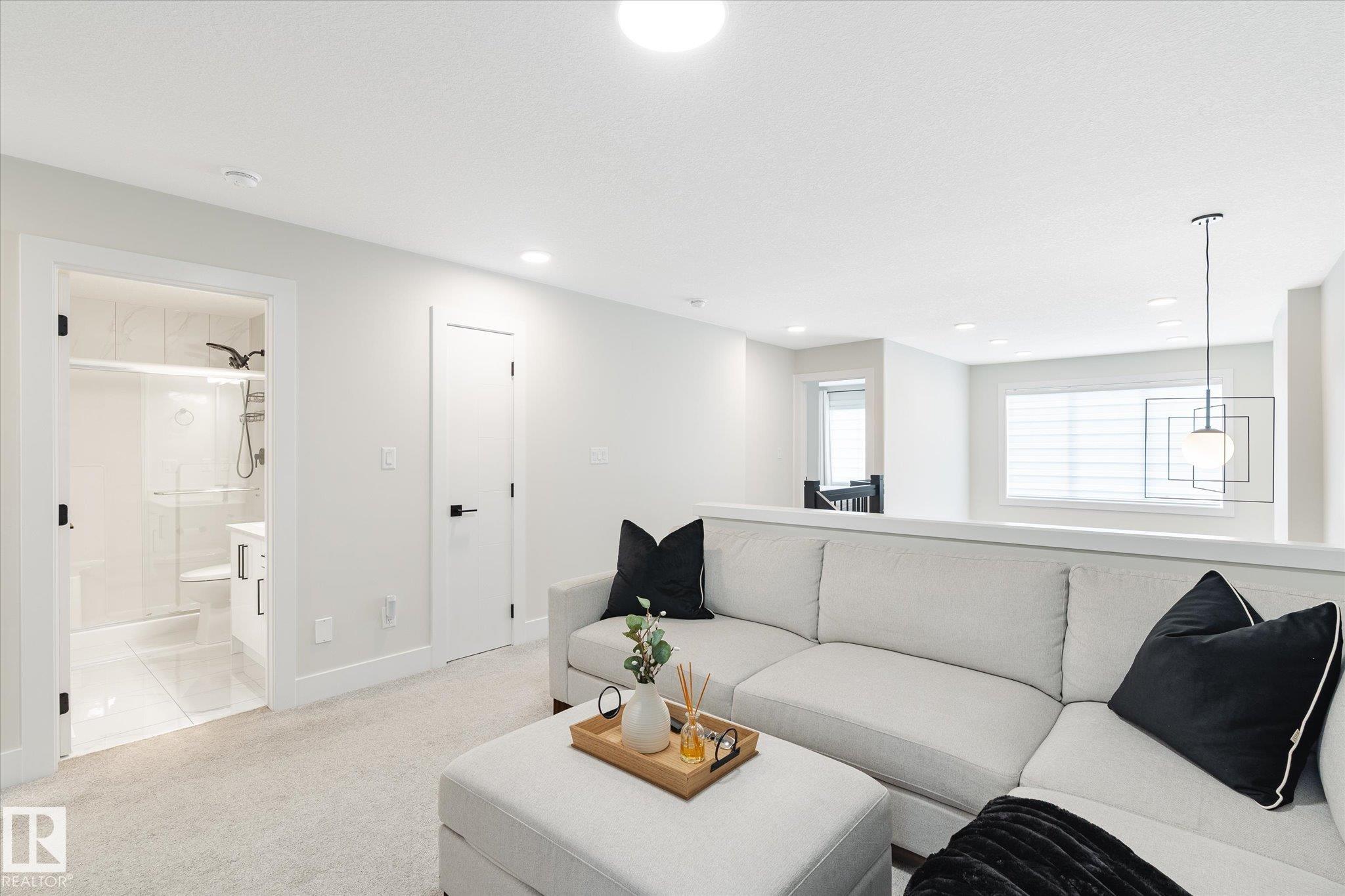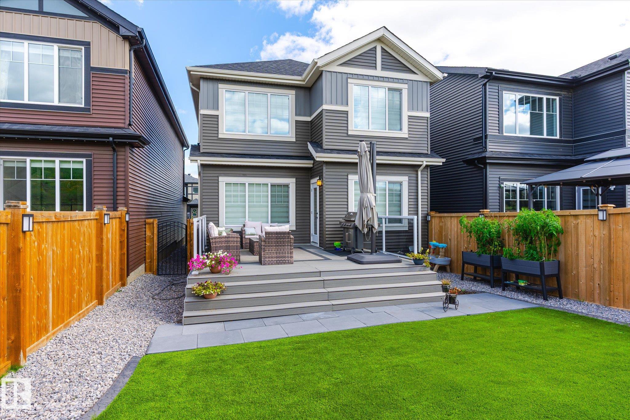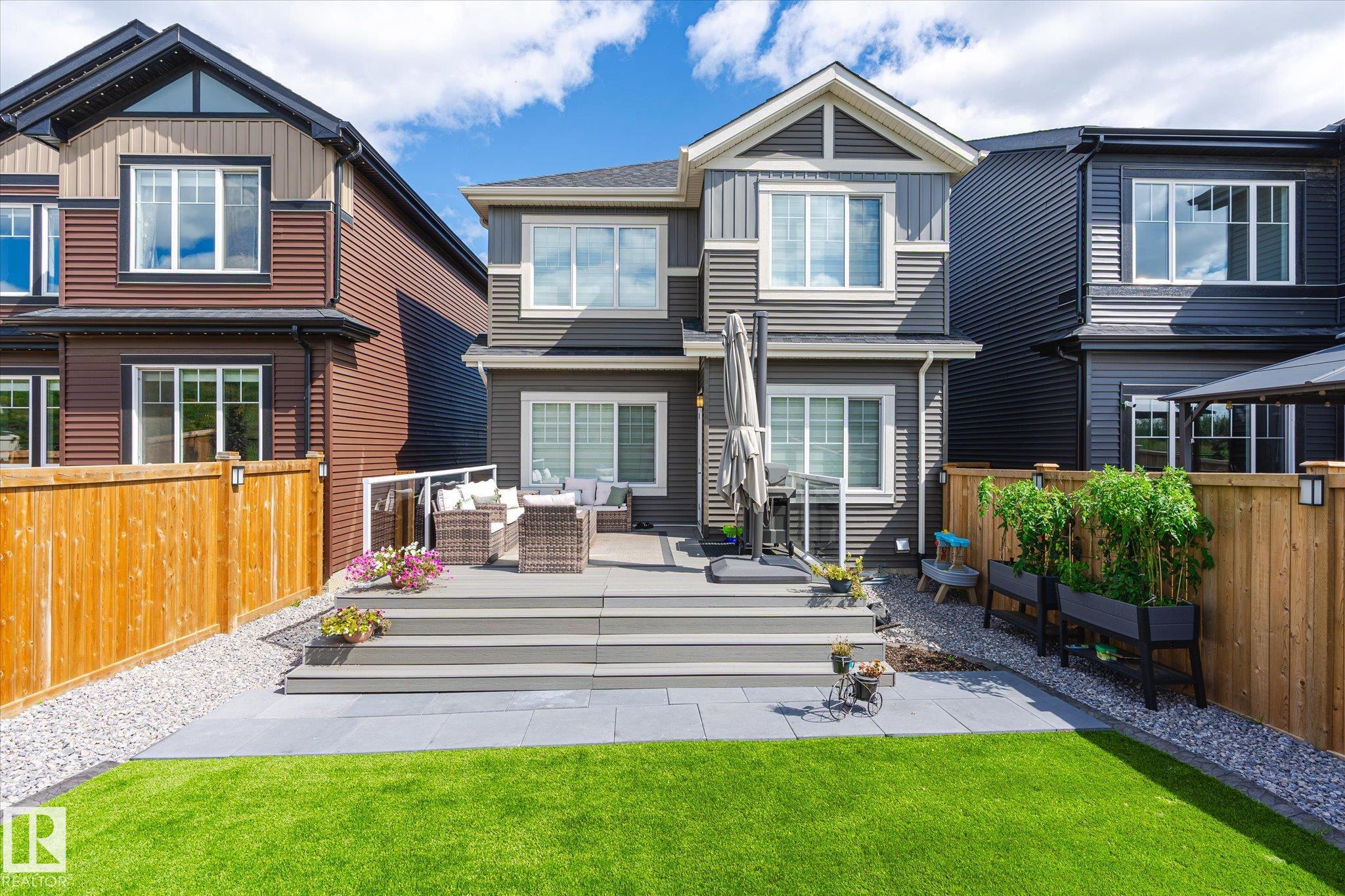 Welcome to this beautifully upgraded Blackstone home, offering 2,419 sq. ft. of total finished living space with thoughtful design and premium finishes throughout. The open-to-above living room creates an impressive focal point with its fireplace feature wall, while the chef's kitchen features quartz countertops, full-height cabinetry, and a walk-through pantry connecting to the garage for convenience. Upstairs, the primary suite offers a walk-in closet and a spa-inspired 5-pc ensuite with dual sinks and a glass shower. A versatile bonus room and upper-floor laundry add practicality. The fully finished basement with 9-foot ceilings expands the living space with a rec room, den, bedroom, and full bath. Outside, enjoy low-maintenance landscaping and a backyard that backs directly onto a paved walking trail, with parks, playgrounds, and shopping nearby. Complete with an oversized air conditioner and a double attached garage, this home combines comfort, function, and style in one exceptional package.