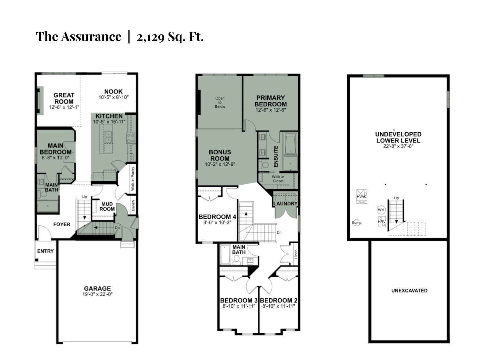 Welcome to the Assurance model, designed for modern family living with refined style and functionality. This home features a double attached garage with floor drain, separate side entrance, extra side windows, and 9' ceilings on the main and basement levels. The bright main floor offers luxury vinyl plank flooring, recessed lighting, a main-floor bedroom and full 3-piece bath, plus a mudroom with walkthrough pantry. The open-concept kitchen, nook, and great room include quartz countertops, flush eating ledge island, soft-close cabinetry, built-in microwave, chimney-style hood fan, and a 17' open-to-above ceiling with electric fireplace. Upstairs features a bonus room, laundry, three bedrooms, and a primary suite with a 5-piece ensuite and walk-in closet. Basement rough-ins and upgraded railings included, finished with the Sterling Signature Specification.