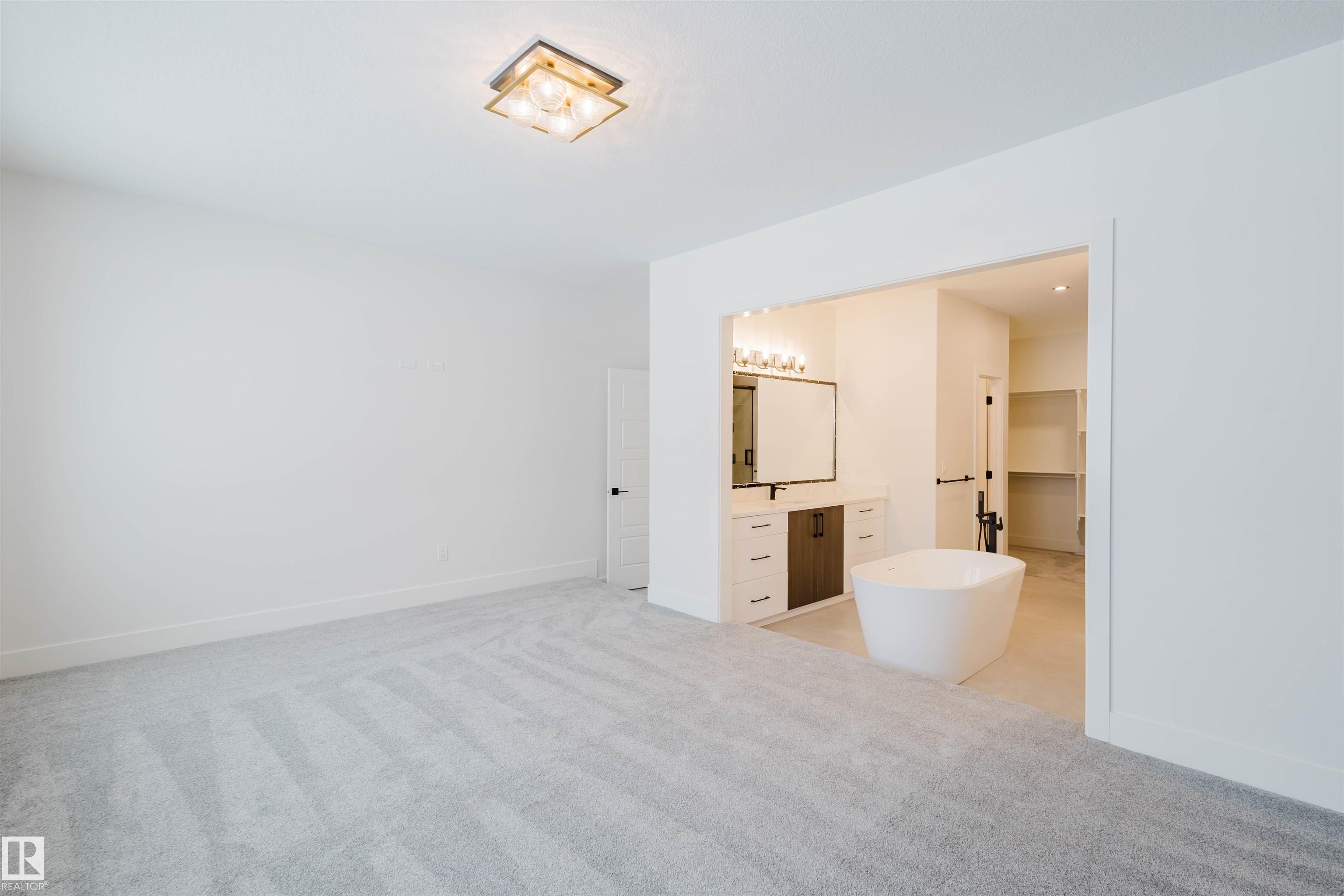 Welcome to this stunning brand new home in the highly sought-after Edgemont community of west Edmonton, backing onto a tranquil dry pond with beautiful open views. Offering 5 bedrooms and 4 full bathrooms, this exceptional property includes a main-floor bedroom with a full washroom--perfect for guests or multi-generational living. The show-stopping open-to-below living room with a fireplace creates a grand yet inviting atmosphere, while the upper level features four generously sized bedrooms and a spacious bonus room ideal for family living. Designed for both functionality and entertaining, the home boasts a well-equipped spice kitchen, an oversized double attached garage, and a convenient side entrance with excellent future development potential. Step out onto the deck and enjoy peaceful pond views, all while being minutes from parks, trails, schools, and shopping--this home perfectly blends luxury, space, and lifestyle.