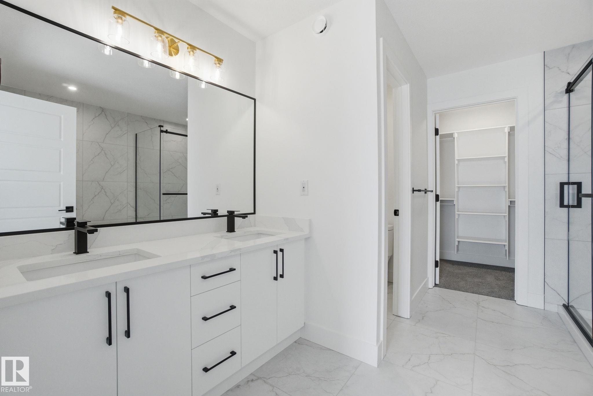 Stunning new build by Finesse Homes. This new home offers a stunning modern design with 2175 SQFT of modern and high end finishing's, a full built in appliance package, 4 bedrooms plus a main floor den/Bedroom, walk through pantry, nice sized mud room, a beautiful well planned living space with nice sized mud room, this home has 3-bathrooms a separate entrance and a nice open floor plan with high ceilings, This home is perfect for a growing family. The main floor includes a full bathroom and a den that's ideal for guests or flexible use, while the open-to-below living room adds a bright, spacious feel next to the chef's kitchen. Upstairs, you'll find four generously sized bedrooms, including a primary with a beautiful ensuite, a bonus room, and convenient second-floor laundry.. Located in the desirable community of Hawks Ridge, you'll enjoy easy access major routes like Anthony Henday Drive and Yellow Head Trail for a smooth commute.