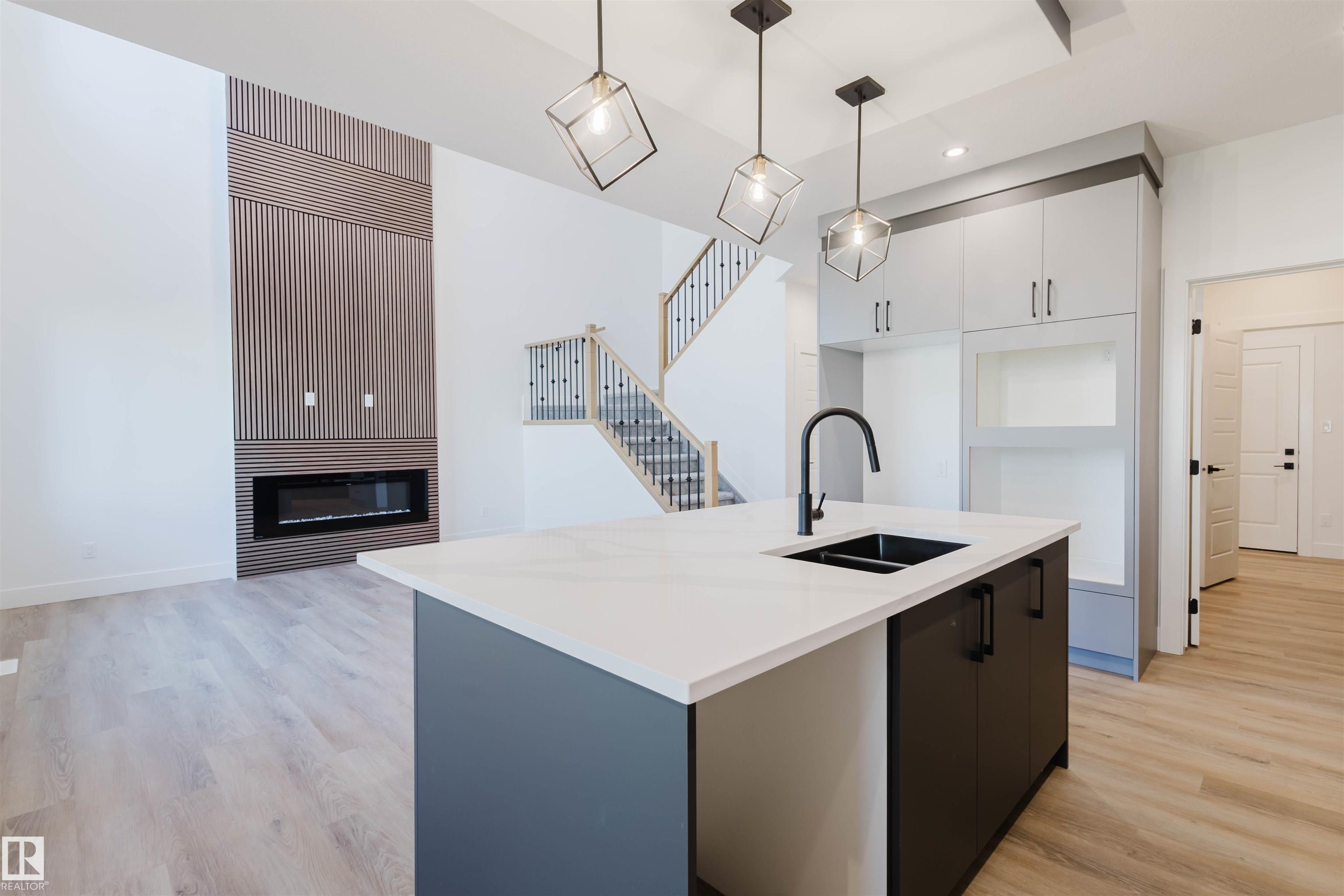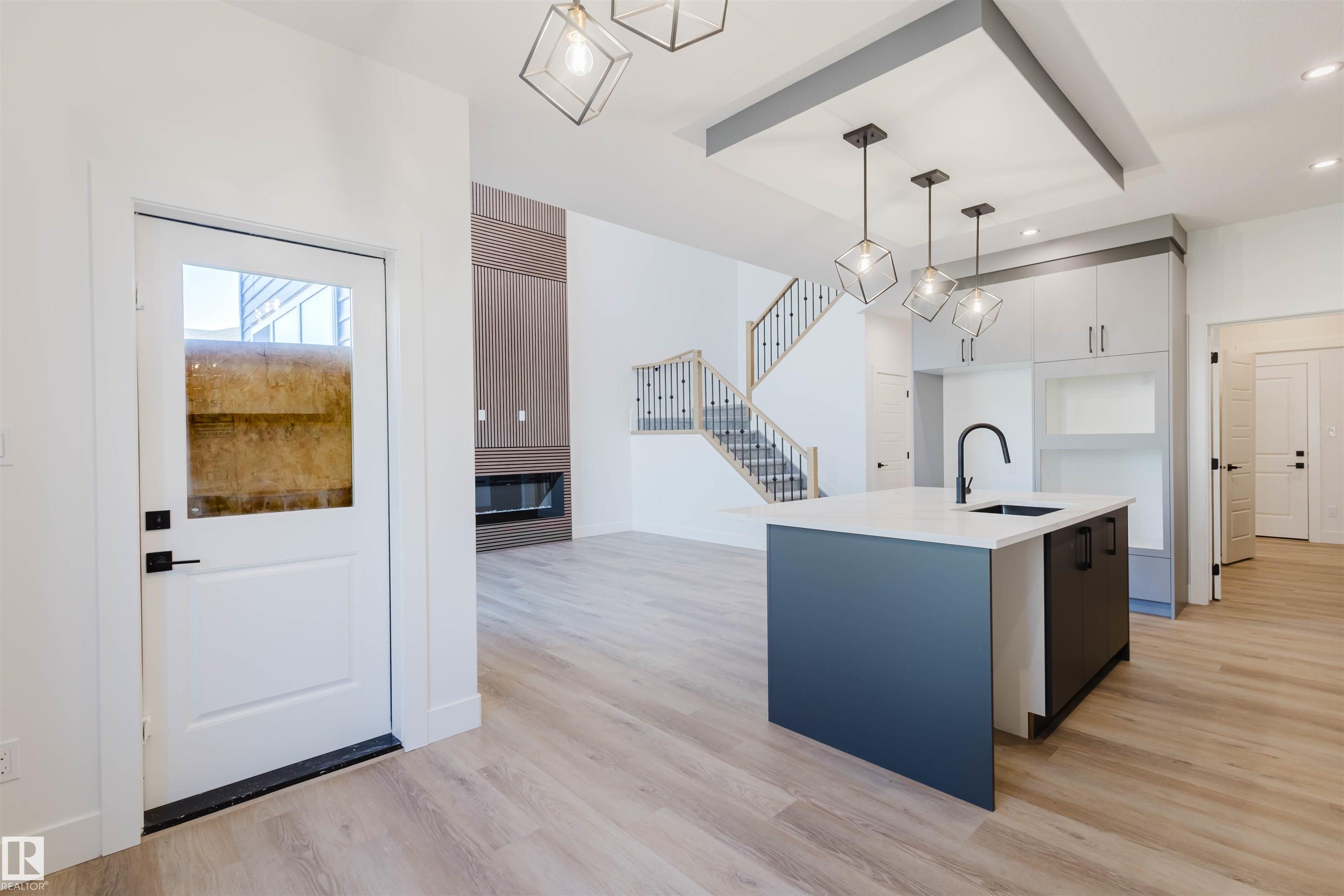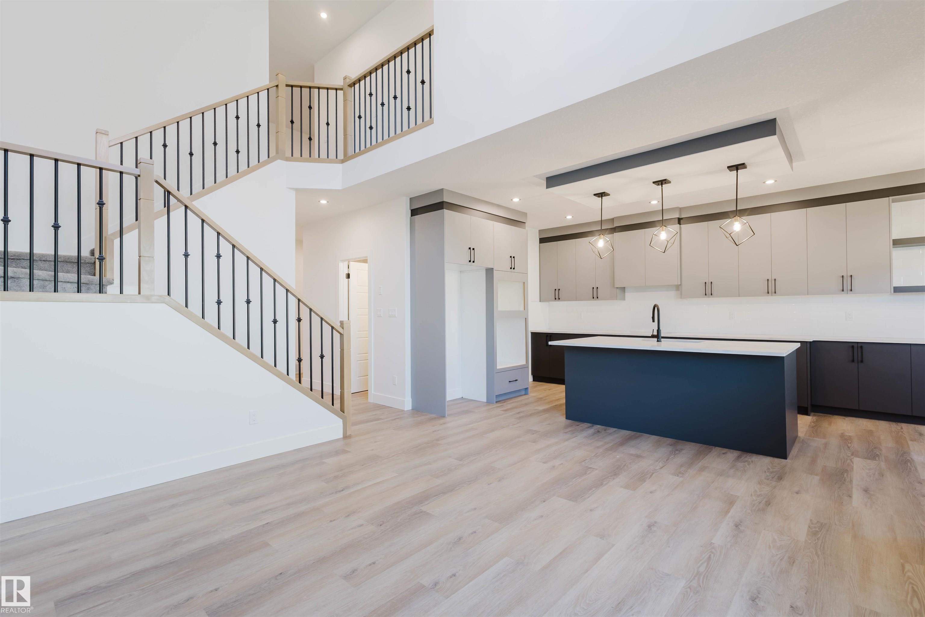 Welcome to this beautifully designed 4-bedroom, 3-bath home in the desirable community of Kinglet Gardens. The main floor features 9-ft ceilings, modern vinyl plank flooring, and an impressive open-to-above living room filled with natural light. A main-floor bedroom and full bath offer flexibility for guests or multi-generational living. The contemporary kitchen connects seamlessly to the dining area, perfect for everyday living and entertaining. Upstairs includes three spacious bedrooms, with the primary suite offering a 5-piece ensuite with a soaker tub and separate shower. The unfinished basement has a separate entrance for potential future development. Close to schools, parks, and amenities--this home combines comfort and convenience in a family-friendly neighbourhood.