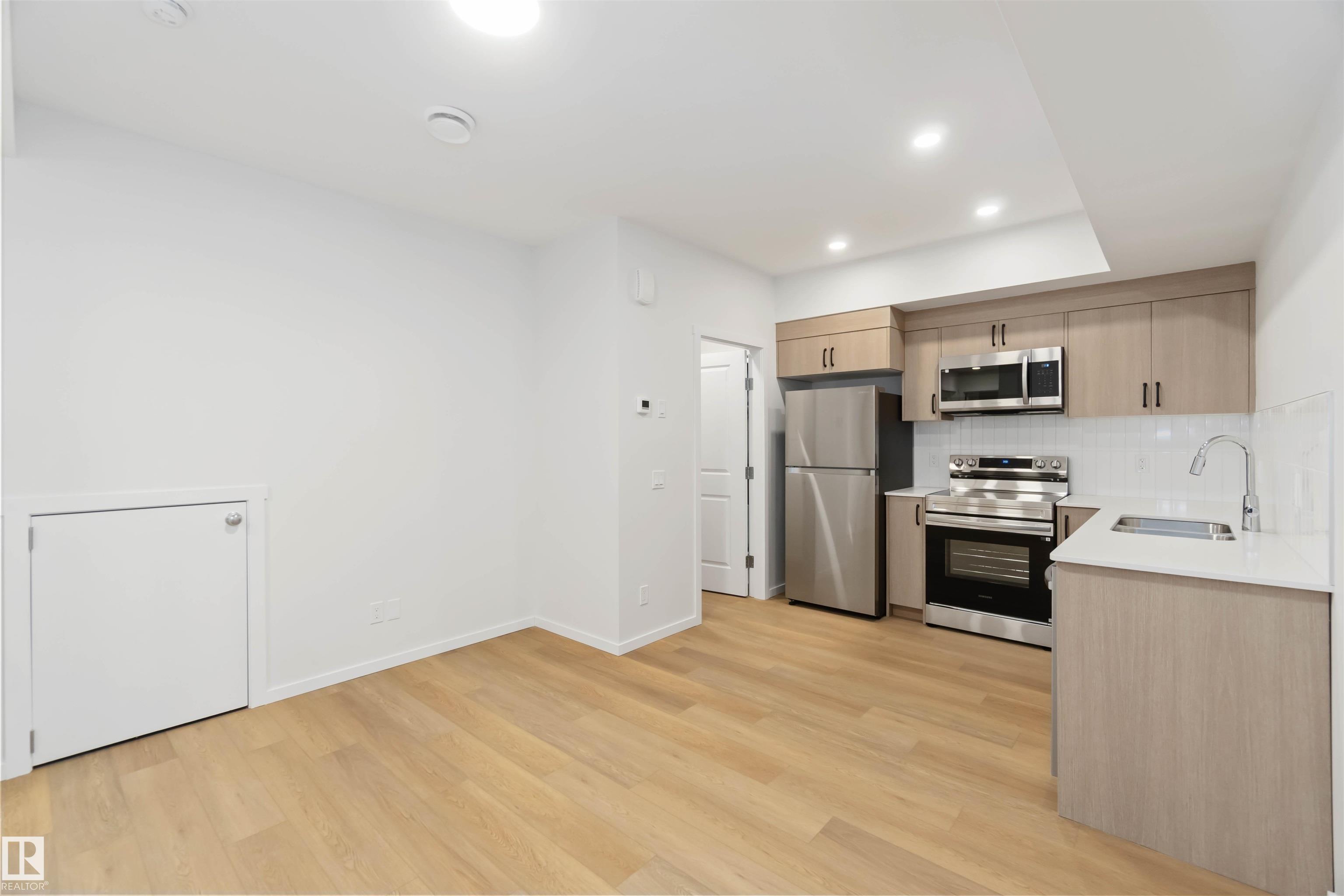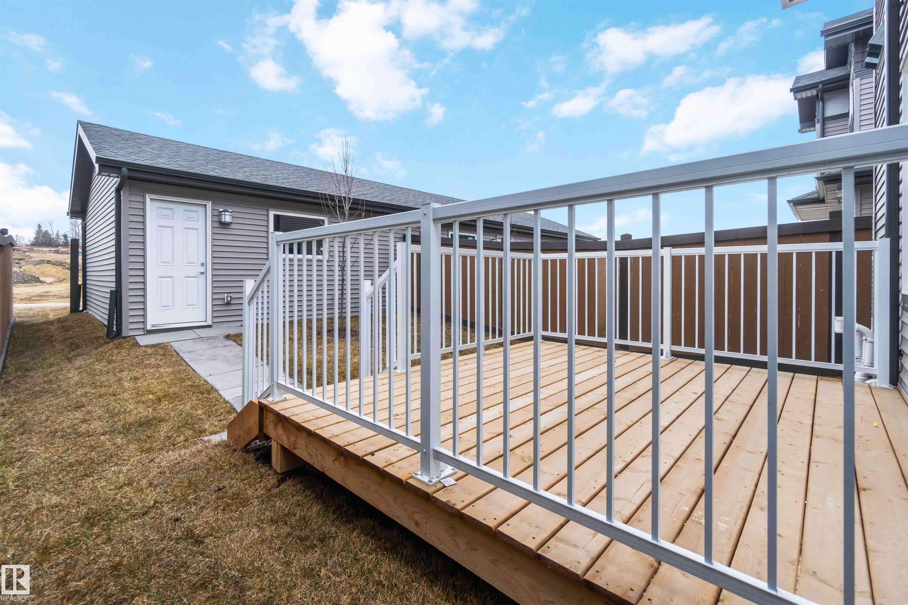 Located in the amazing community of Kinglet, this end-unit home offers incredible value with 3 bedrooms, 3 bathrooms, and a separate side entrance leading to your own LEGAL BASEMENT SUITE--perfect for added income potential. Inside, you'll find a bright, open floor plan with modern finishes throughout. The kitchen features quality cabinetry, a large island, and all appliances included, making this truly turn-key. Enjoy the convenience of the already constructed detatched garage, upper-floor laundry, and a spacious primary suite with its own ensuite. Fully landscaped with your deck and fence included this home is truly turn key! Whether you're an investor or a buyer looking to offset mortgage costs, this property delivers an excellent opportunity in one of Edmonton's growing, nature-focused communities.