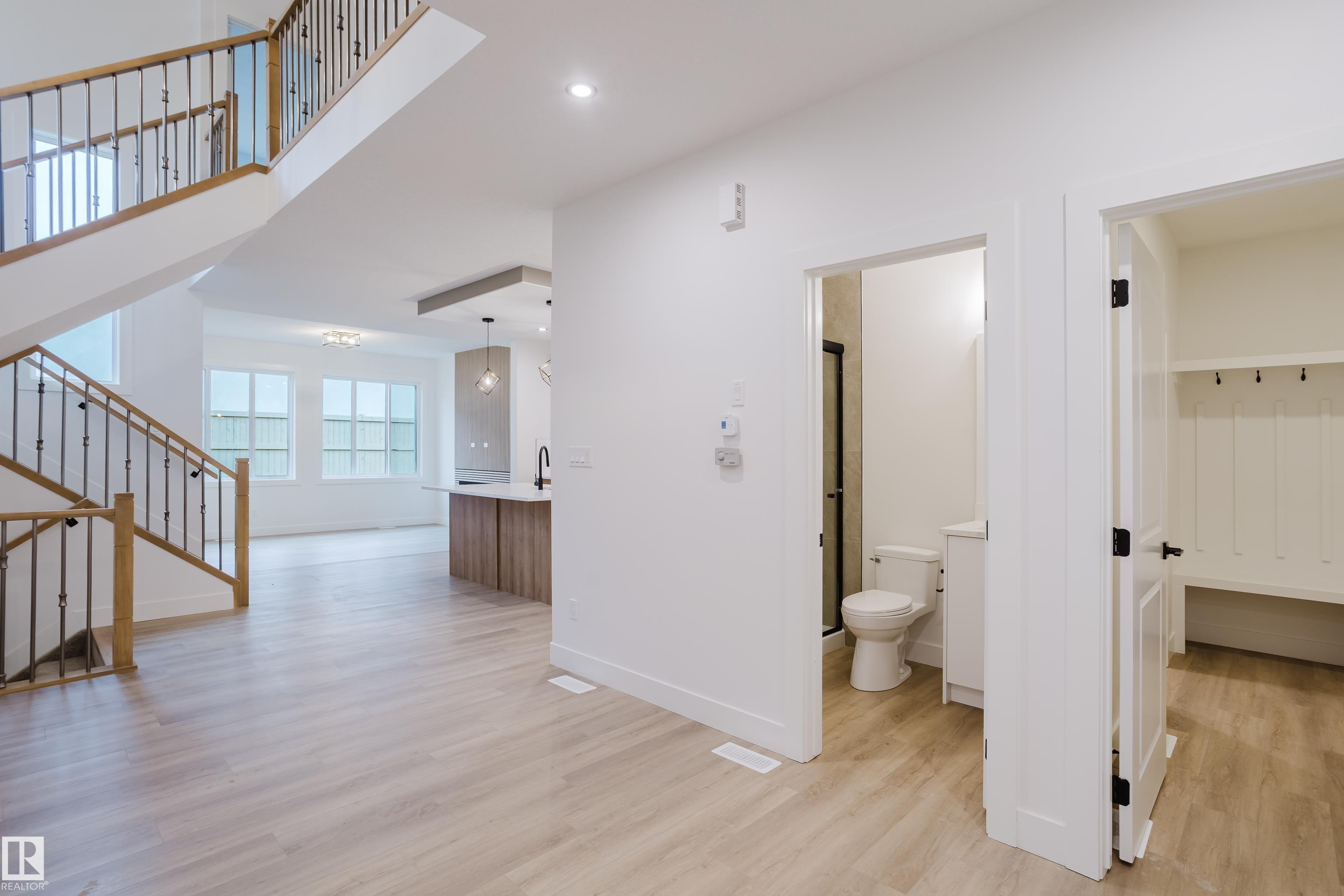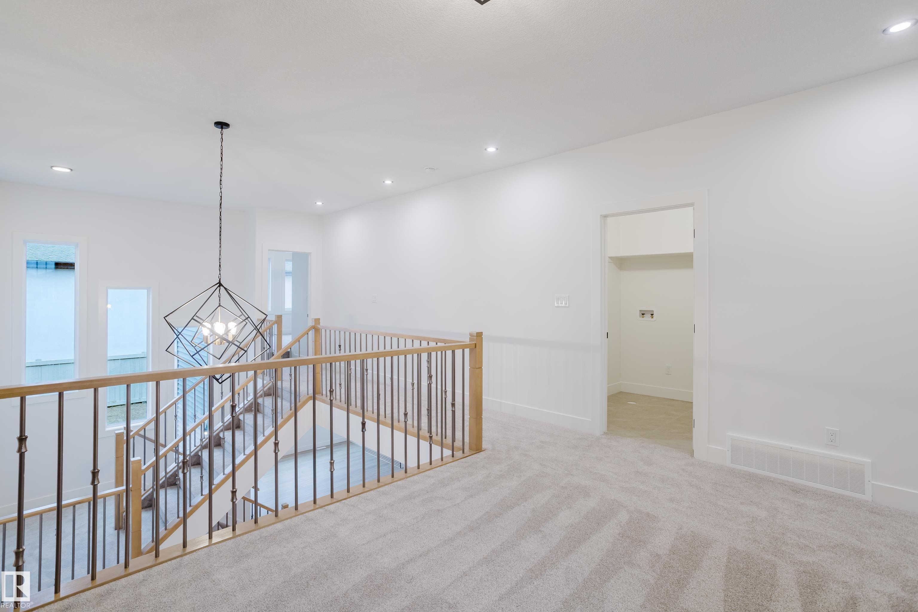 Experience elevated living in this stunning brand-new luxury home in Kinglet Gardens, a serene, nature-inspired community in Northwest Edmonton. Thoughtfully designed with premium craftsmanship and sophisticated detailing throughout, this residence offers 4 spacious bedrooms upstairs along with 3 beautifully finished full bathrooms, including an elegant main-floor bedroom with a full bath, perfect for guests or multi-generational families seeking comfort and privacy. The main level is highlighted by a breathtaking open-to-below dining room, where soaring ceilings and expansive windows create a bright, impressive atmosphere ideal for refined entertaining. Upstairs, a stylish and versatile bonus room provides an additional space for relaxation or work-from-home needs. A separate side entrance enhances the home's long-term versatility, offering exceptional potential for a future private suite, while the large double attached garage adds everyday convenience and ample room for vehicles and storage.