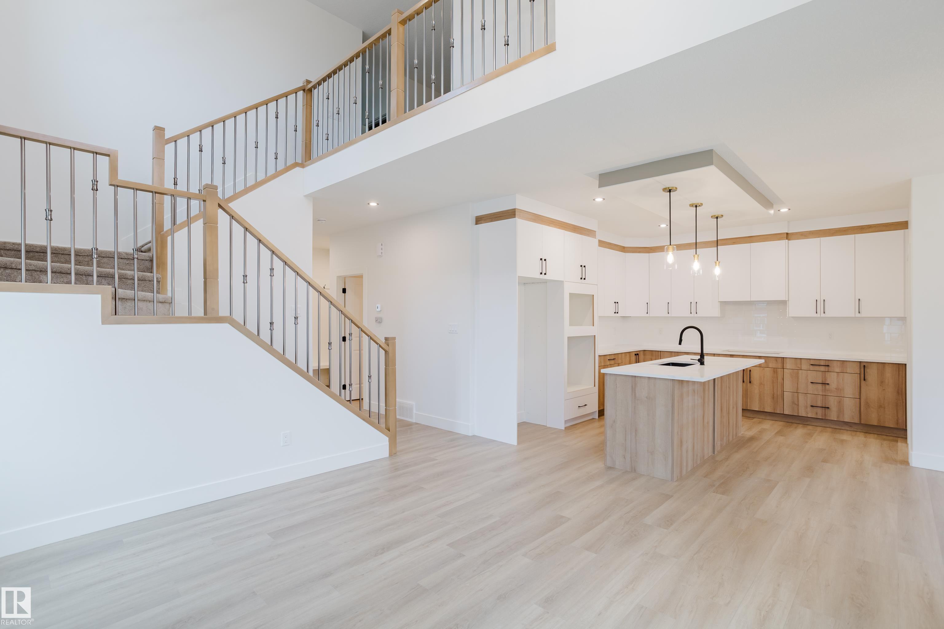Welcome to this exceptional brand-new residence in the highly desirable community of Kinglet Gardens, thoughtfully designed to deliver modern luxury, comfort, and functionality. This impressive home offers 4 spacious bedrooms and 3 full bathrooms, including a well-appointed main-floor full washroom paired with a versatile den--ideal for guests, office use, or multi-generational living. The showstopping open-to-below living room creates a grand architectural statement with abundant natural light, seamlessly connecting to a contemporary chef's kitchen featuring premium finishes, sleek cabinetry, and a fully equipped spice kitchen to accommodate all culinary needs. The upper level showcases four generously sized bedrooms along with a bright bonus room, providing excellent separation of space for family relaxation. A convenient side entrance adds tremendous potential for future basement development, while the large double attached garage offers ample space for vehicles and storage.