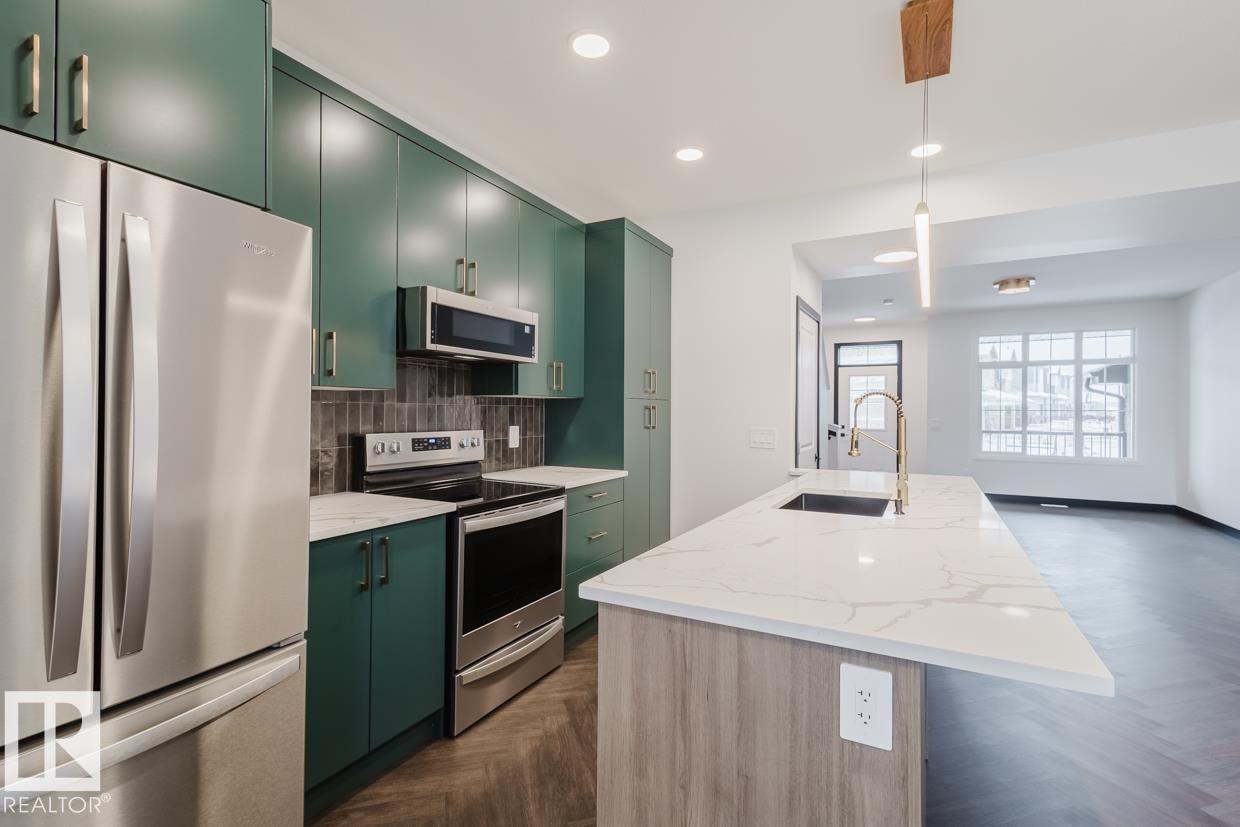 Discover Your Dream Home in Kinglet Gardens. This stunning 3-bedroom, 2.5-bathroom duplex seamlessly blends style and functionality. The main floor boasts 9' ceilings and a convenient half bath, perfect for guests. The beautifully designed kitchen is a highlight, featuring 42" upgraded cabinets, quartz countertops, and a waterline to the fridge. Upstairs, enjoy the flex area, spacious laundry room, full 4-piece bathroom, and 3 generously sized bedrooms. The luxurious primary suite offers a walk-in closet and ensuite. The separate side entrance and legal suite rough in's are an added bonus. Other features include FULL LANDSCAPING, a $3k appliance allowance, unfinished basement with painted floors, high-efficiency furnace, and triple-pane windows. Buy with confidence. Built by Rohit. UNDER CONSTRUCTION! Photos may differ from actual property. Appliances NOT included.