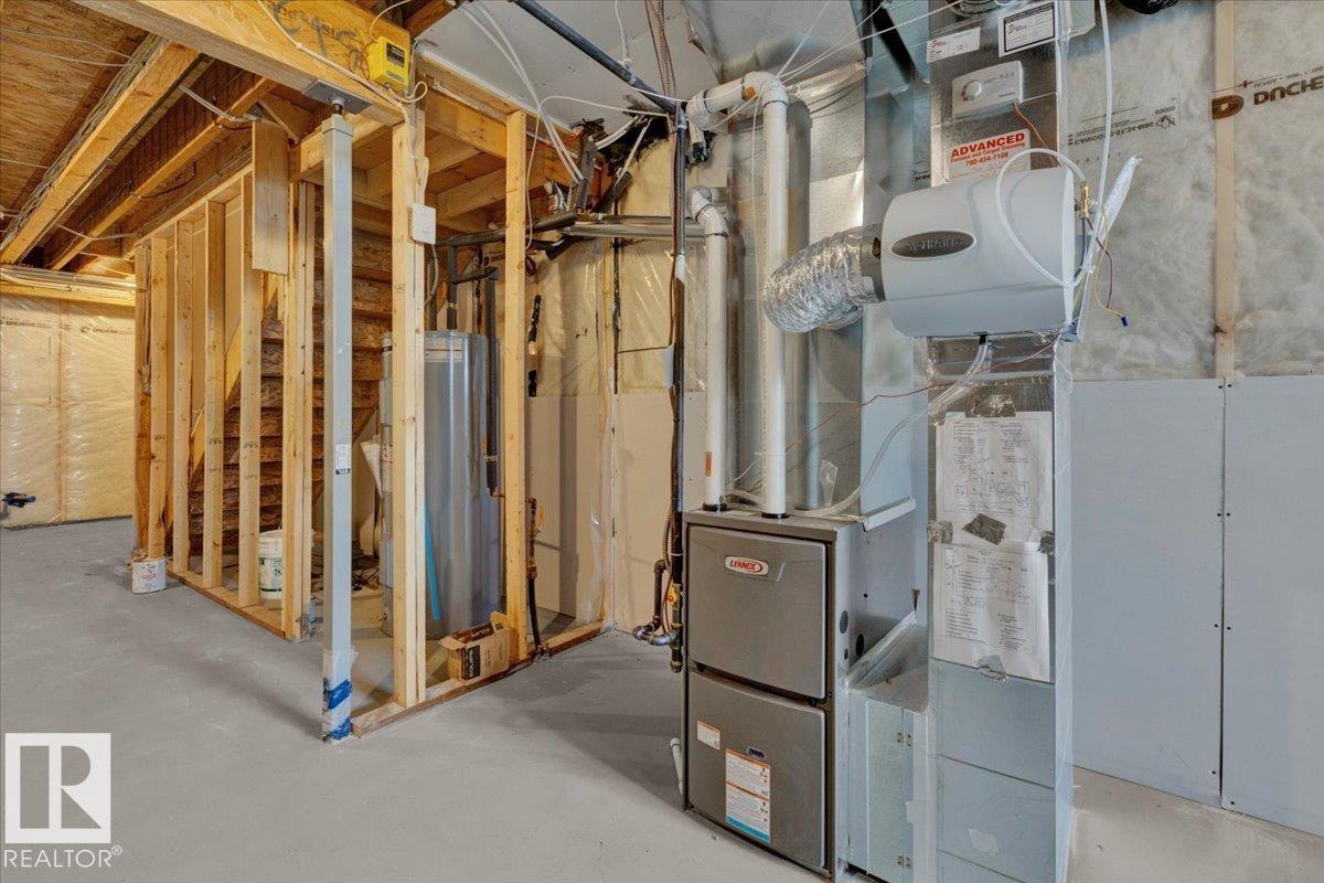 Welcome Home to Kinglet, Edmonton! Double Detached Garage Include! This beautifully crafted Rohit Homes Talo half duplex offers 1515 sq ft of modern living in a warm, family-friendly community. Featuring a Neo Classical design, this home includes 3 bedrooms, 2.5 bathrooms, 9' ceilings, and an open-concept main floor. Enjoy a spacious kitchen, functional layout, and bonus/flex room upstairs. The primary suite boasts a walk-in closet and ensuite. With side entrance for future suite potential, a large basement, rear parking pad with lane access (future garage ready), and a generous yard perfect for a deck, this home is designed for growth. Appliances, landscaping, quartz countertops, triple-pane windows, and a high-efficiency furnace all included. Located near the scenic Big Lakes area on Edmonton's NW edge with tons of walking trails, parks, and amenities nearby.