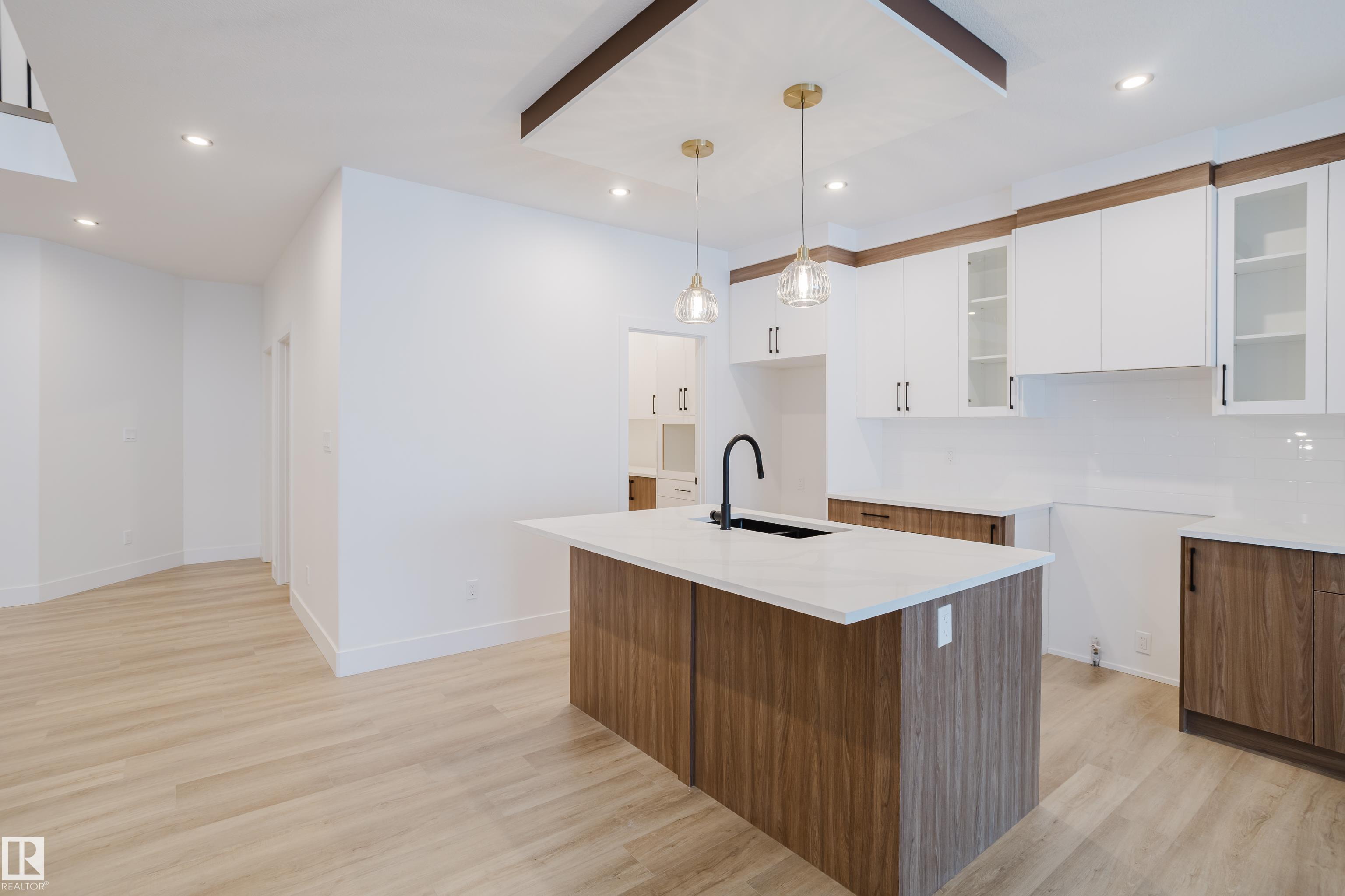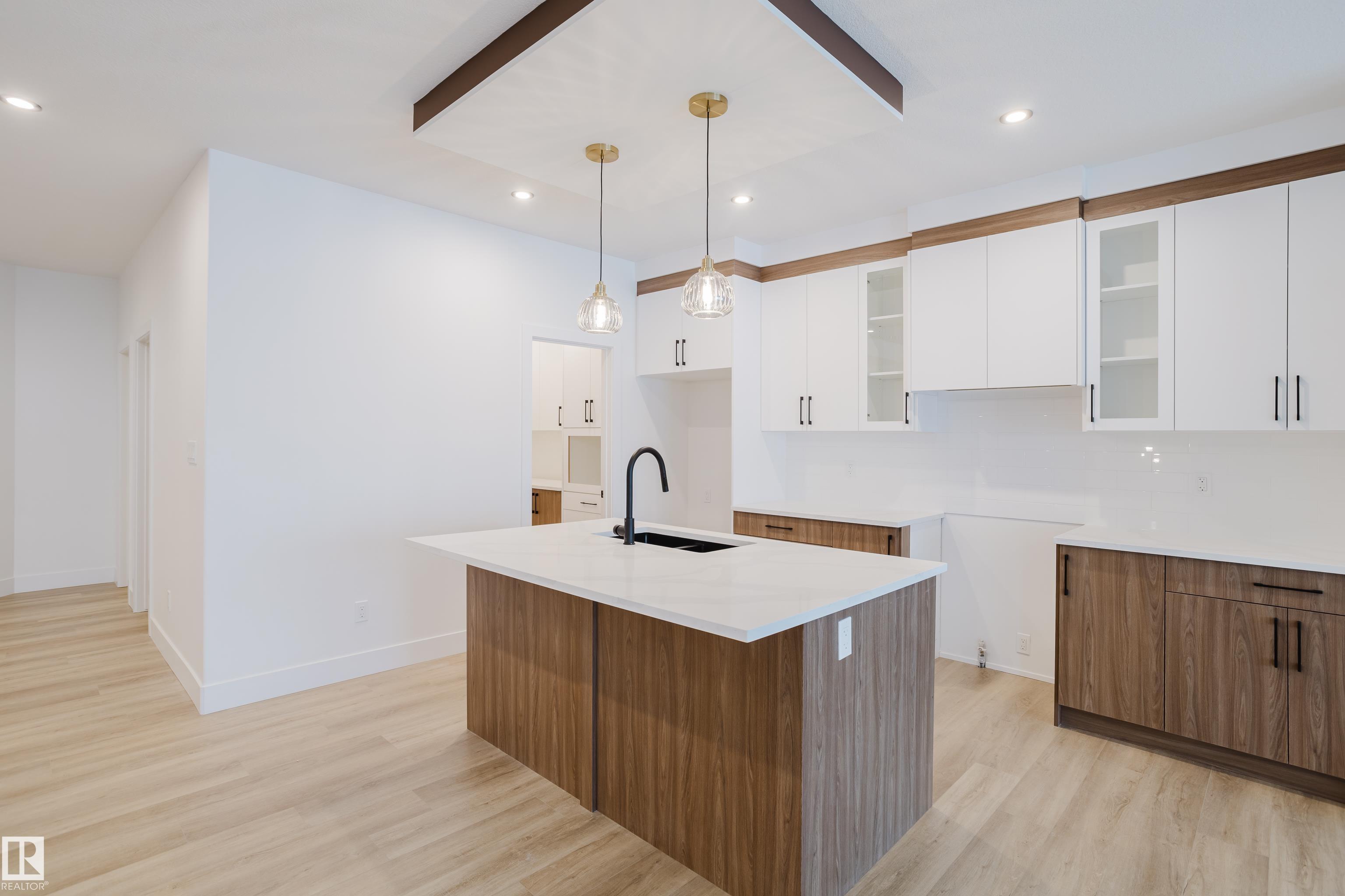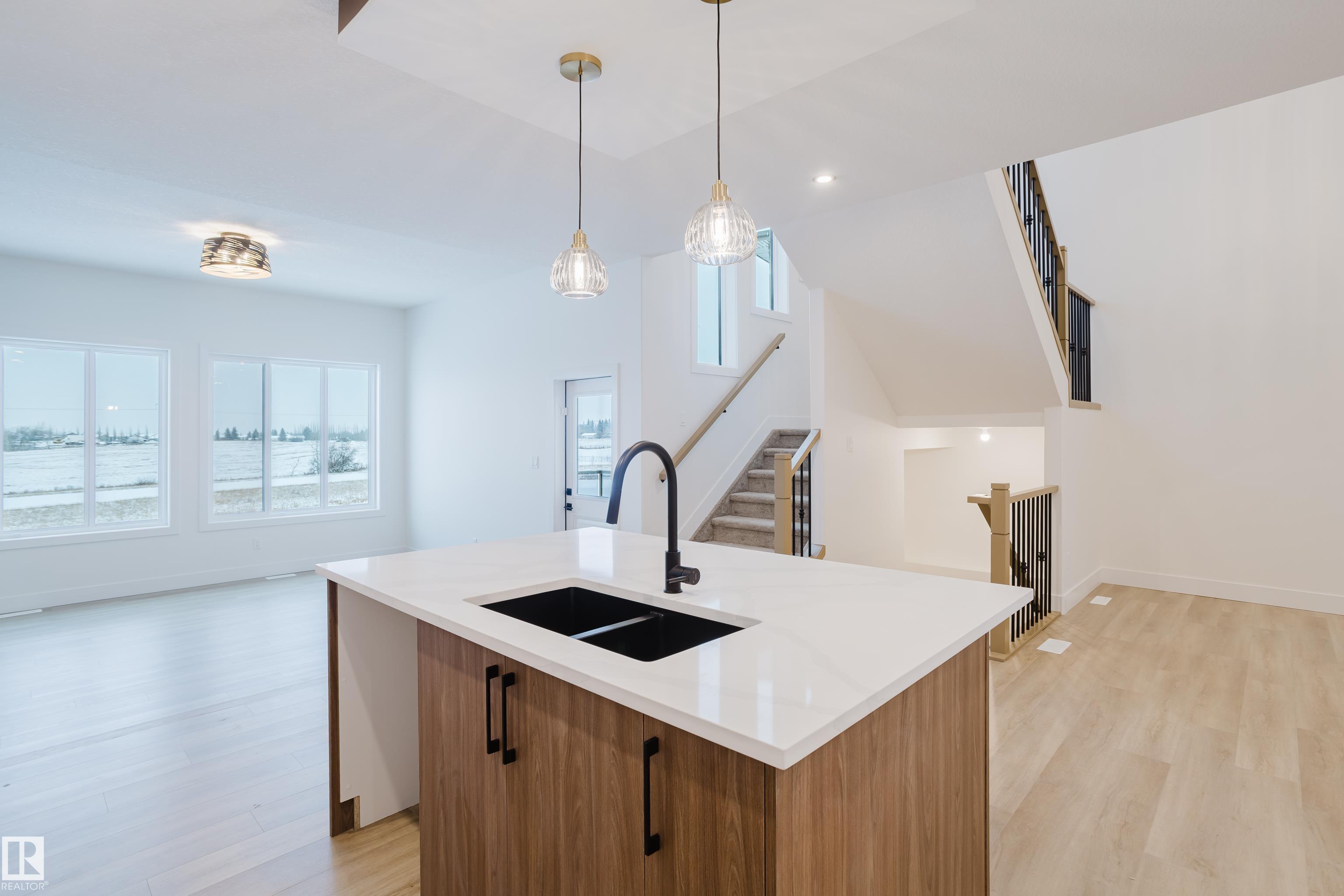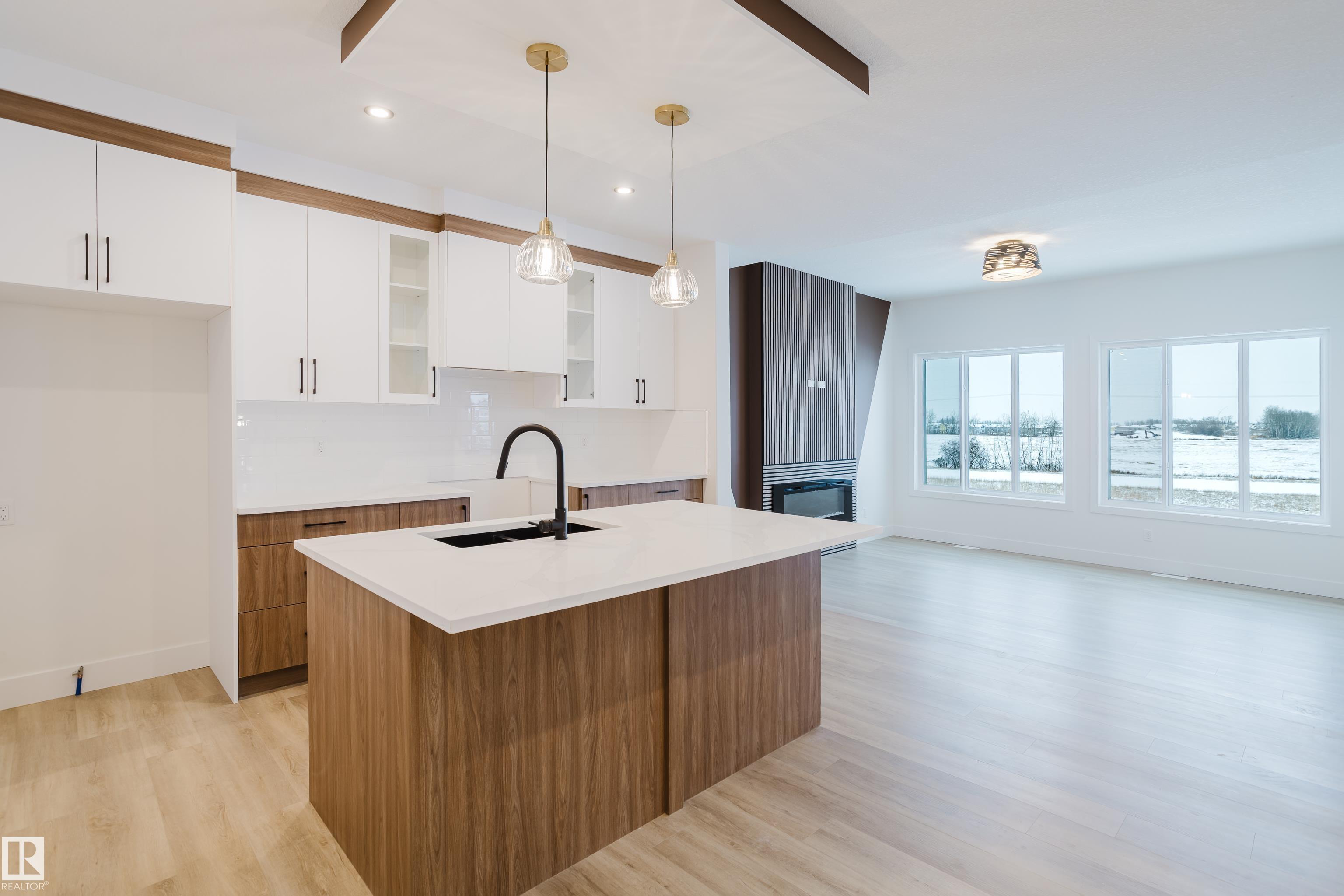 Experience luxury living in Kinglet Gardens with this brand-new walkout home featuring a triple car garage and an exceptional layout designed for modern families. Offering 5 bedrooms and 4 full bathrooms--including a convenient main-floor bedroom and bath--this home provides both comfort and versatility. The stunning step-down living room with a cozy fireplace is flooded with natural light, perfectly complementing the modern kitchen and dining area--ideal for everyday living and entertaining. Upstairs, a generous bonus room provides flexible space for media, play, or a home office. The walkout basement backs onto a beautiful pond, delivering serene, year-round views and easy access to outdoor living. Located in one of Northwest Edmonton's most desirable new communities, this home blends thoughtful design, stylish finishes, and outstanding value.