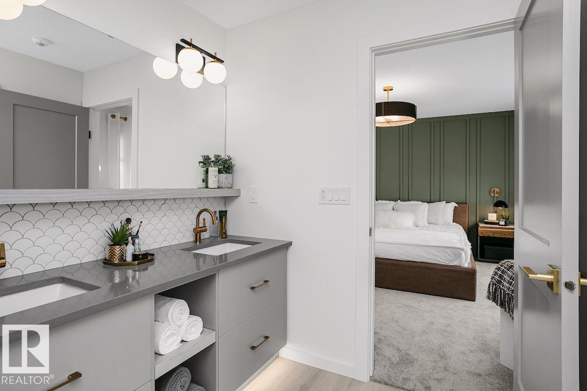 The Elena showhome in Kinglet is on a one of a kind lot that backs onto Environmental reserve with an oversized backyard (over 55' long) and a full walkout basement with 9' ceilings. The home is a 3 bedroom 2 and a half bath with oversize bonus room, large mud room storage space and a built-in dog wash boasting 2,284 sqft. Featuring upgraded modern railings to an ensuite with double sinks, stand-alone tub and a fully customized tiled shower. Everything in this home was meticulously designed by Bedrock's Interior Design Studio, from the upgraded cabinets and shelving in the kitchen featuring ample storage to multiple feature walls throughout the home. This home includes a widened heated garage with man door, rear elevated deck with metal railing, blinds, all appliances, as well as the comforts of a fireplace and central A/C. Designed as a showpiece for Bedrock this home has over $130,000 of upgrades included, even down to the modern Black stainless steel included kitchen appliances.