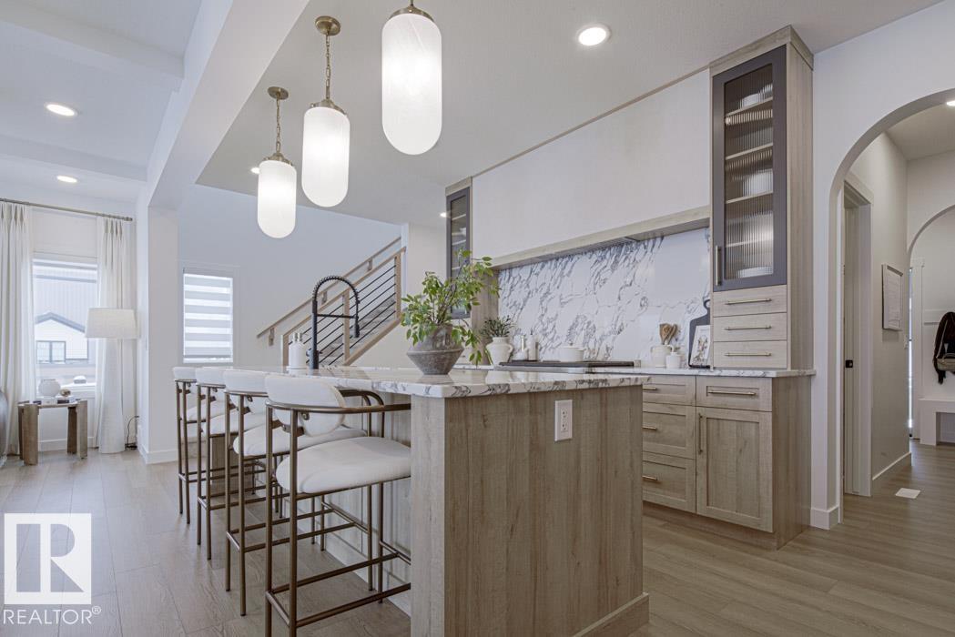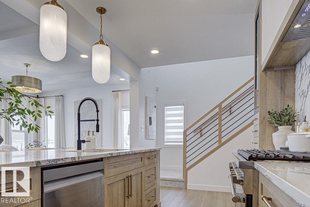 Built by Sterling Homes, this home blends efficient design with modern style, ideal for family living. The main floor features a double attached garage, side entrance, 9' ceilings on both levels, and durable luxury vinyl plank flooring. A welcoming foyer leads to a half bath and a functional mudroom that connects to the kitchen through a spacious walk-in butler's pantry with sink and built-in microwave--perfect for a coffee bar. The kitchen is the focal point, showcasing a large island, a Silgranit sink, quartz countertops, custom cabinetry, and a full-height tiled backsplash. The open-concept living and dining area includes a stylish fireplace, large windows, and patio access. Upstairs offers a bright primary suite with a 5-piece ensuite,4-piece main bath, and walk-through closet to the laundry, plus a bonus room, full bath, and two bedrooms with walk-in closets.