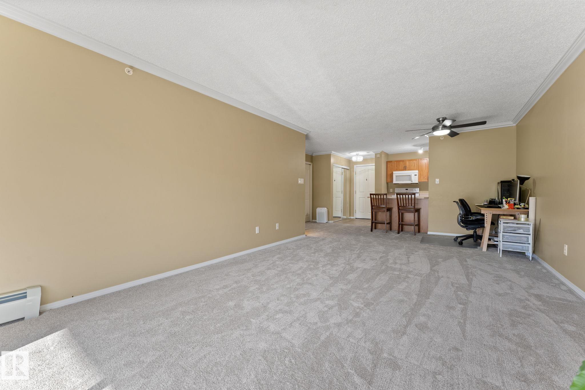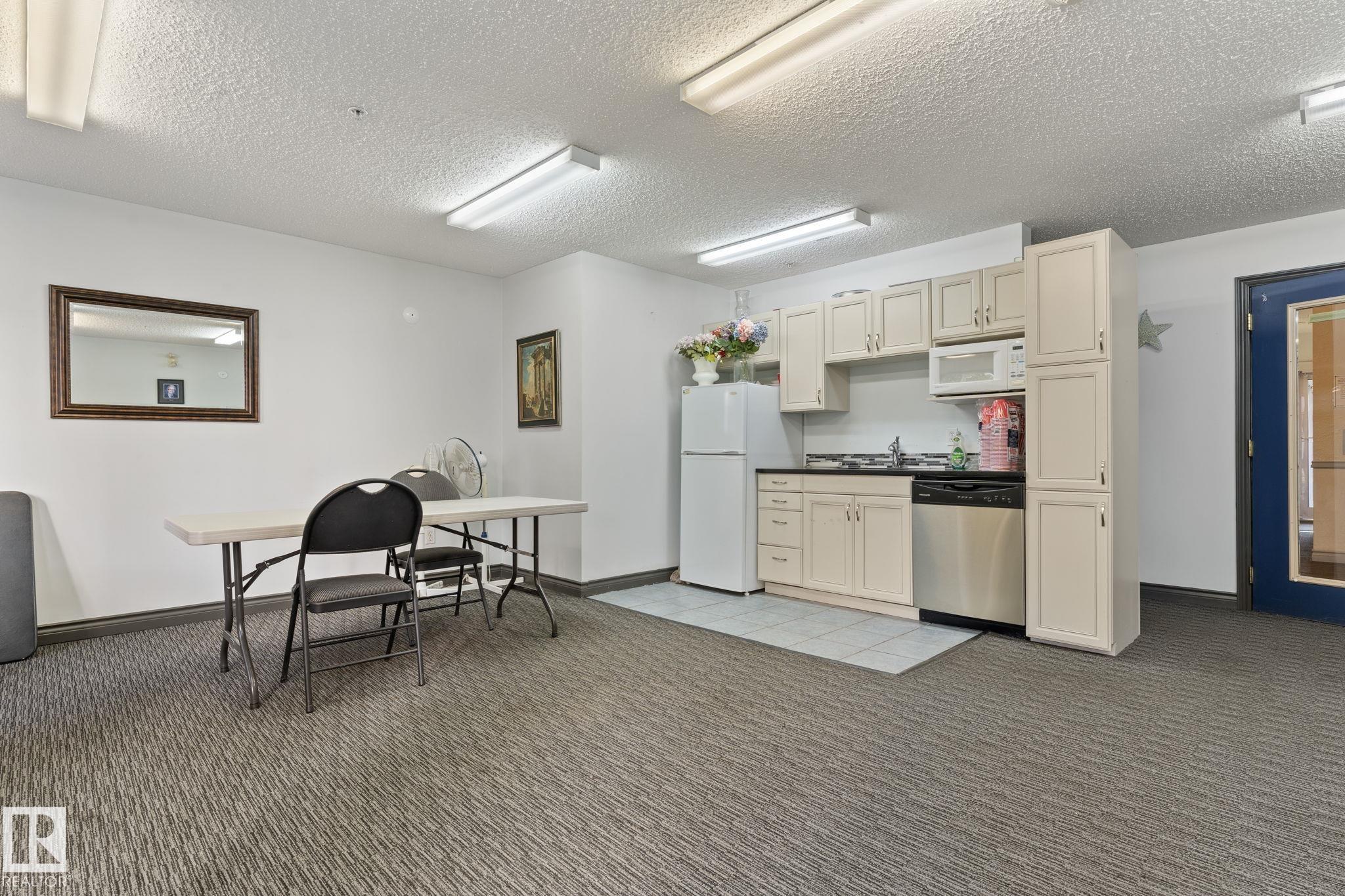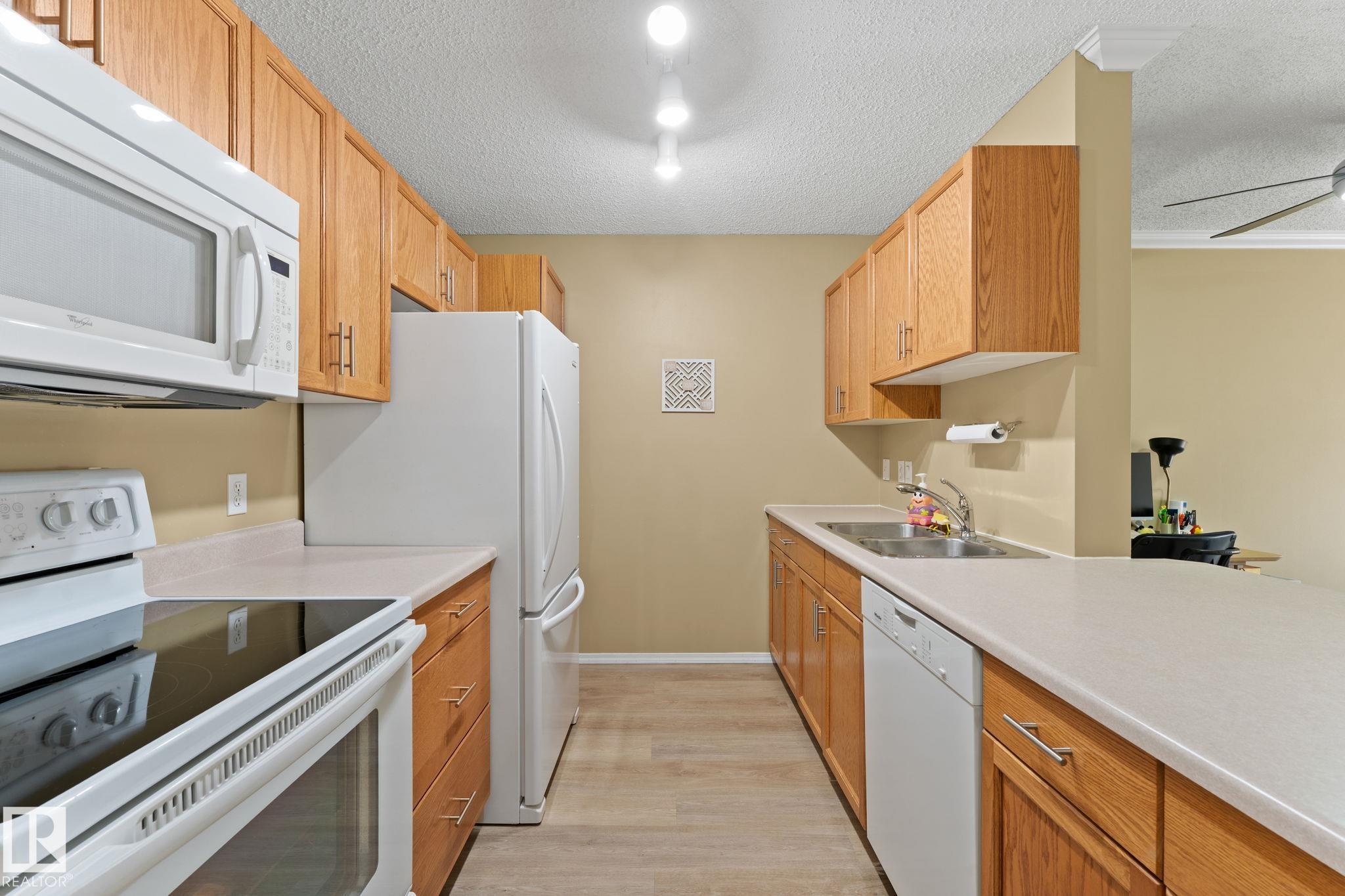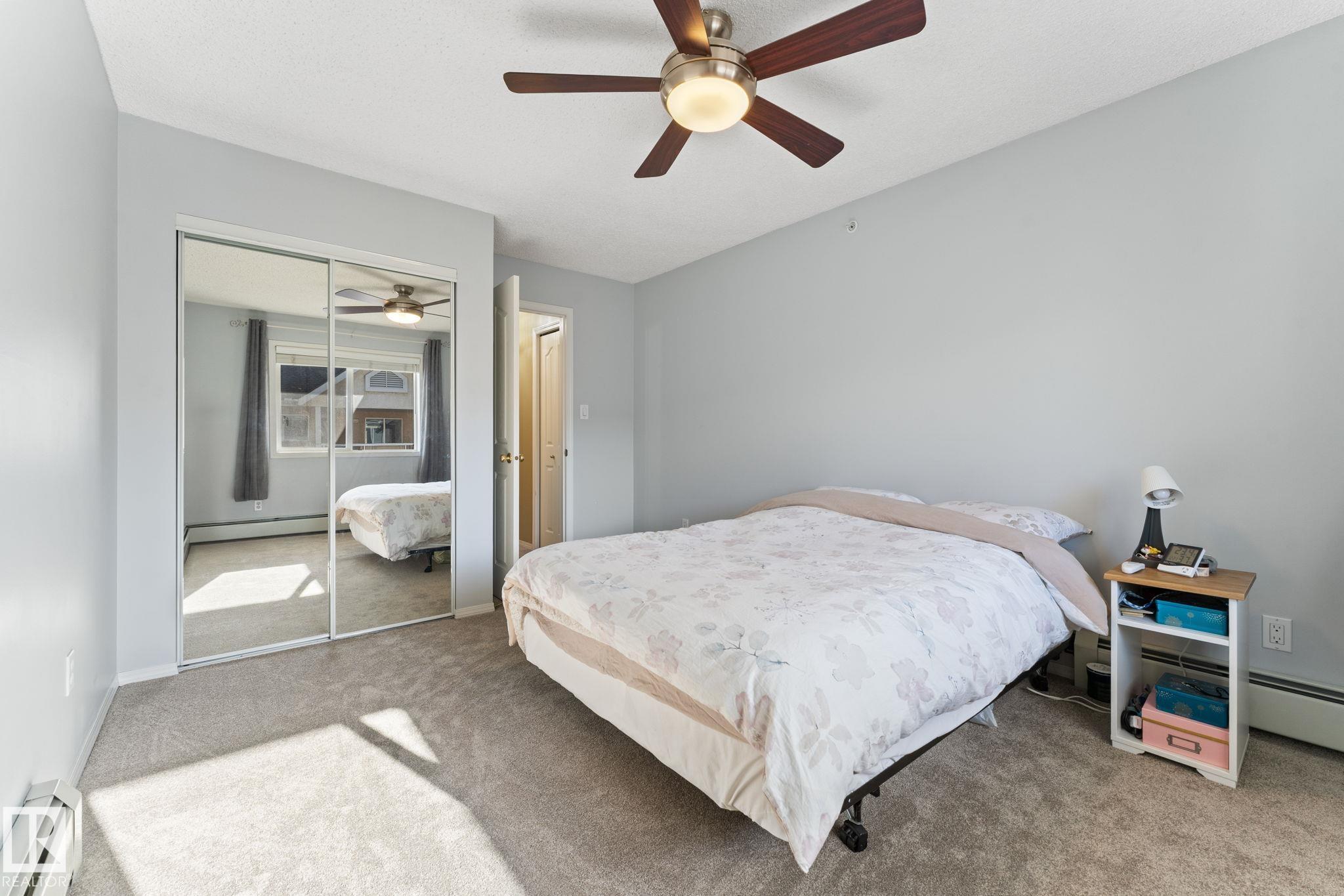 TOP FLOOR, SOUTH-FACING 1 bedroom unit in Grande Whitemud! This bright and spacious condo features NEW flooring (Carpet/Laminate 2025) and NEW fresh paint throughout (2025), a cozy GAS FIEPLACE, and south-facing balcony over-looking the court yard with natural gas BBQ hook-up. Functional layout with in-suite laundry and storage room. Enjoy the convenience of the underground titled HEATED PARKING with a storage cage directly in front of the stall. The building offers amenities including a social/party room and fitness room. Ideal location close to restaurants, shopping, and quick access to transit--with a bus stop right outside the building. Easy access to whitemud and A Henday. The building comes equipped with access doors and an elevator, ideal for those with mobility issues. Perfect for first-time buyers, students, or investors!