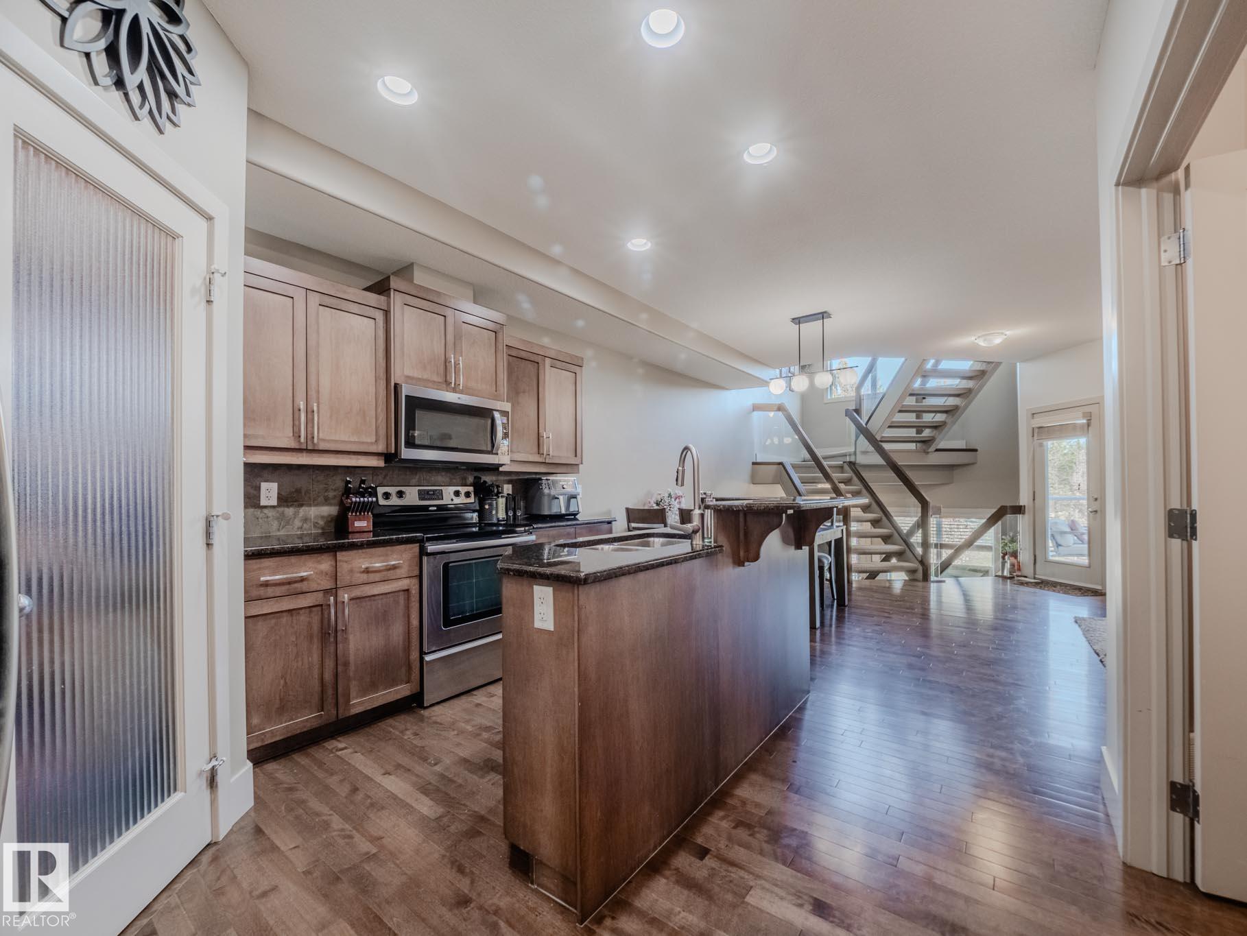 Spectacular views, high quality finishes and low maintenance lifestyle in the desirable neighbourhood of Rutherford! This fantastic 1596 sq. ft. executive duplex with over 2,200 sq. ft. of finished living area has it all! From soaring windows, open concept floor plan, granite countertops, hardwood flooring, oversized single attached garage, main floor office/den, walk-through pantry, 3 full bathrooms and 1 half bathroom, 3 bedrooms, 2 gas fireplaces, wet bar, high ceilings, ensuite bathroom with separate soaker tub and walk-in shower, upstairs bonus room and so much more! Enjoy your raised patio with family and friends while being surrounded by the beautiful scenery and views of the large pond, which the home backs onto. This amazing home is sure to check all the boxes on your wish list! Only minutes to shopping, dining, and entertainment. Easy and convenient access to main roads like the Anthony Henday, Gateway Blvd and the QE2. Don't miss out on the opportunity to call this great property your new home!