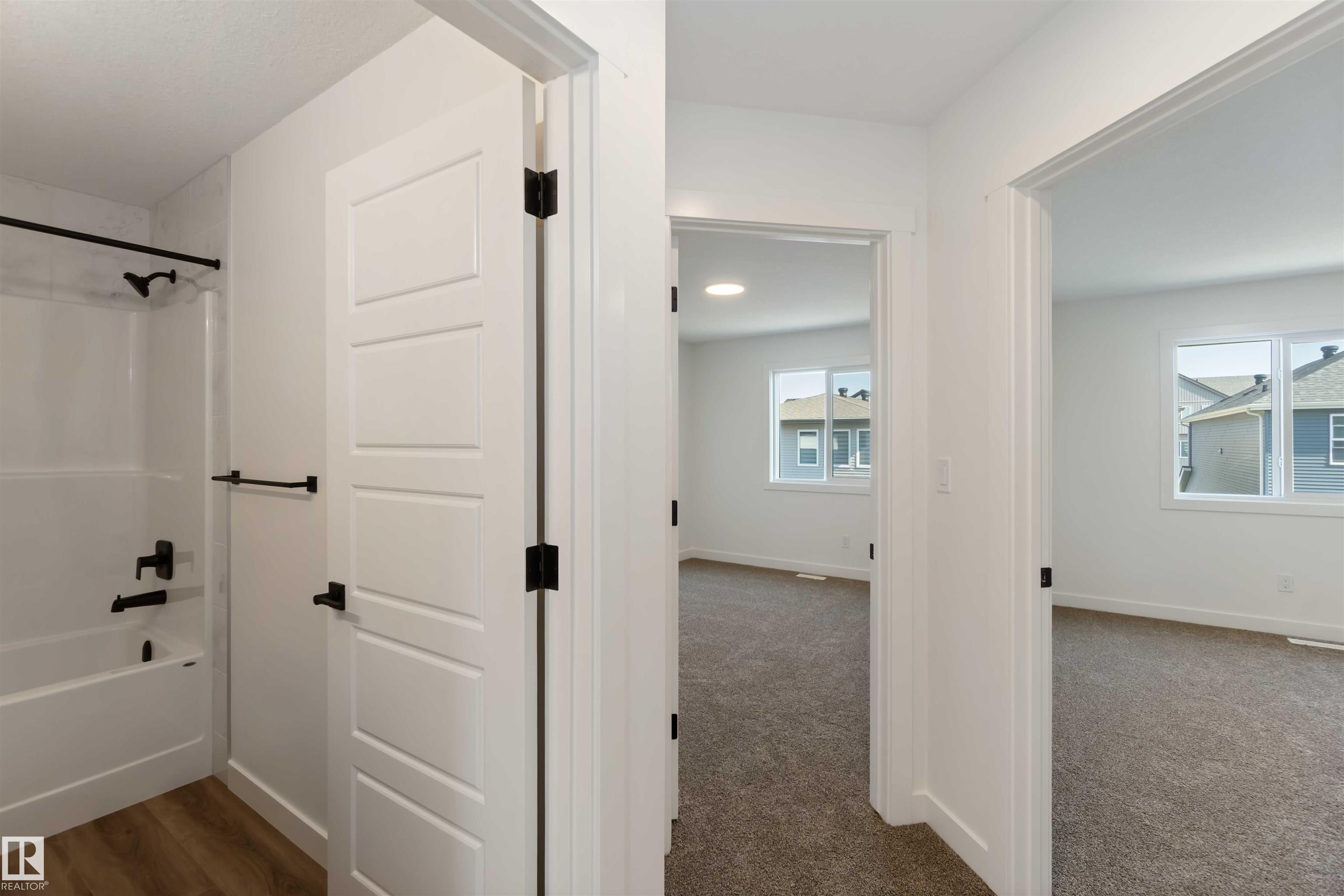 The Affinity model blends elegance and smart design for today's families. It features an extended double attached garage with a floor drain, side entry, 9' ceilings on main & basement levels, and LVP flooring throughout the main. The foyer leads to a 3-piece bath with walk-in shower and a versatile den. The open-concept kitchen, nook & great room are perfect for gatherings. The kitchen includes a flush island, built-in microwave, full-height tiled backsplash, Silgranit sink, chimney hood fan, soft-close cabinetry & corner pantry. Great room with fireplace & nook offer large windows and access to the backyard. Upstairs, the bright primary suite features a 5-piece ensuite with double sinks, walk-in shower, freestanding tub & walk-in closet. You'll also find a bonus room, 3-piece bath, laundry, and two additional bedrooms with generous closets. Includes black fixtures, upgraded railings, basement rough-in & our new Sterling Signature Specification.