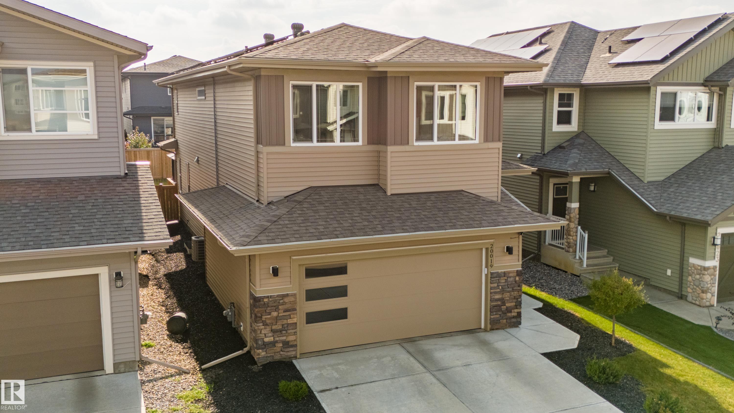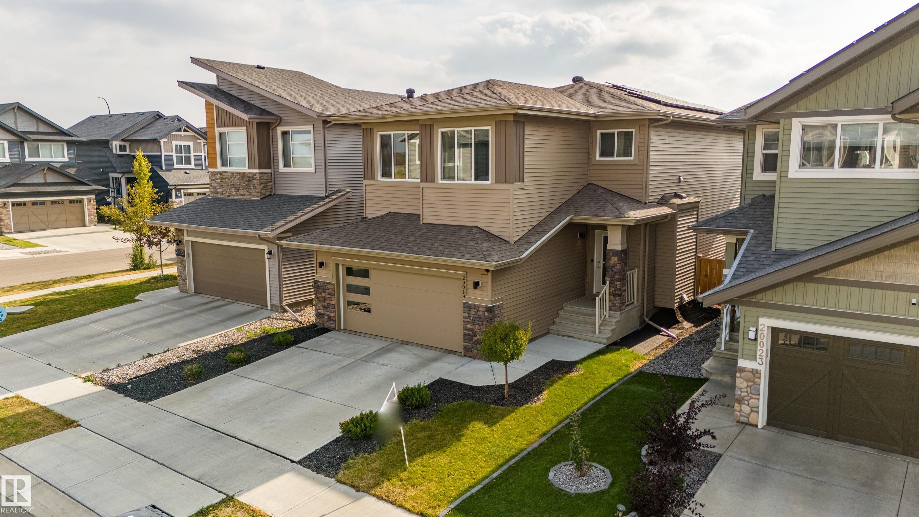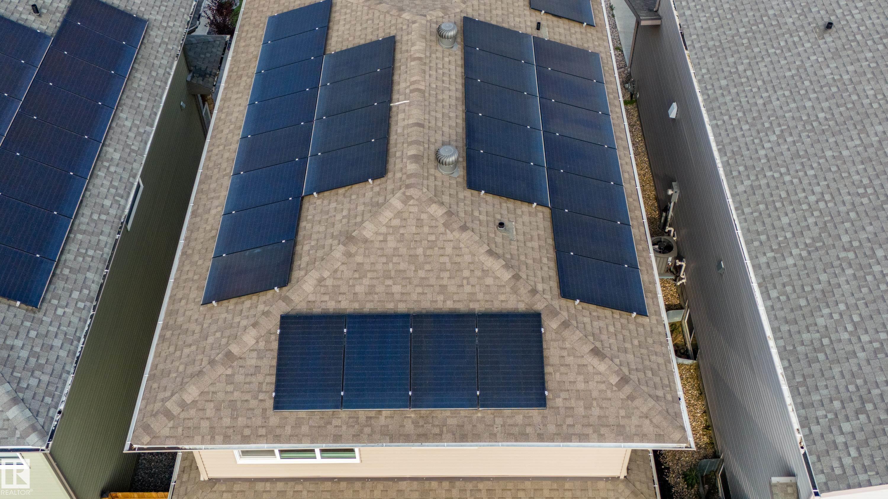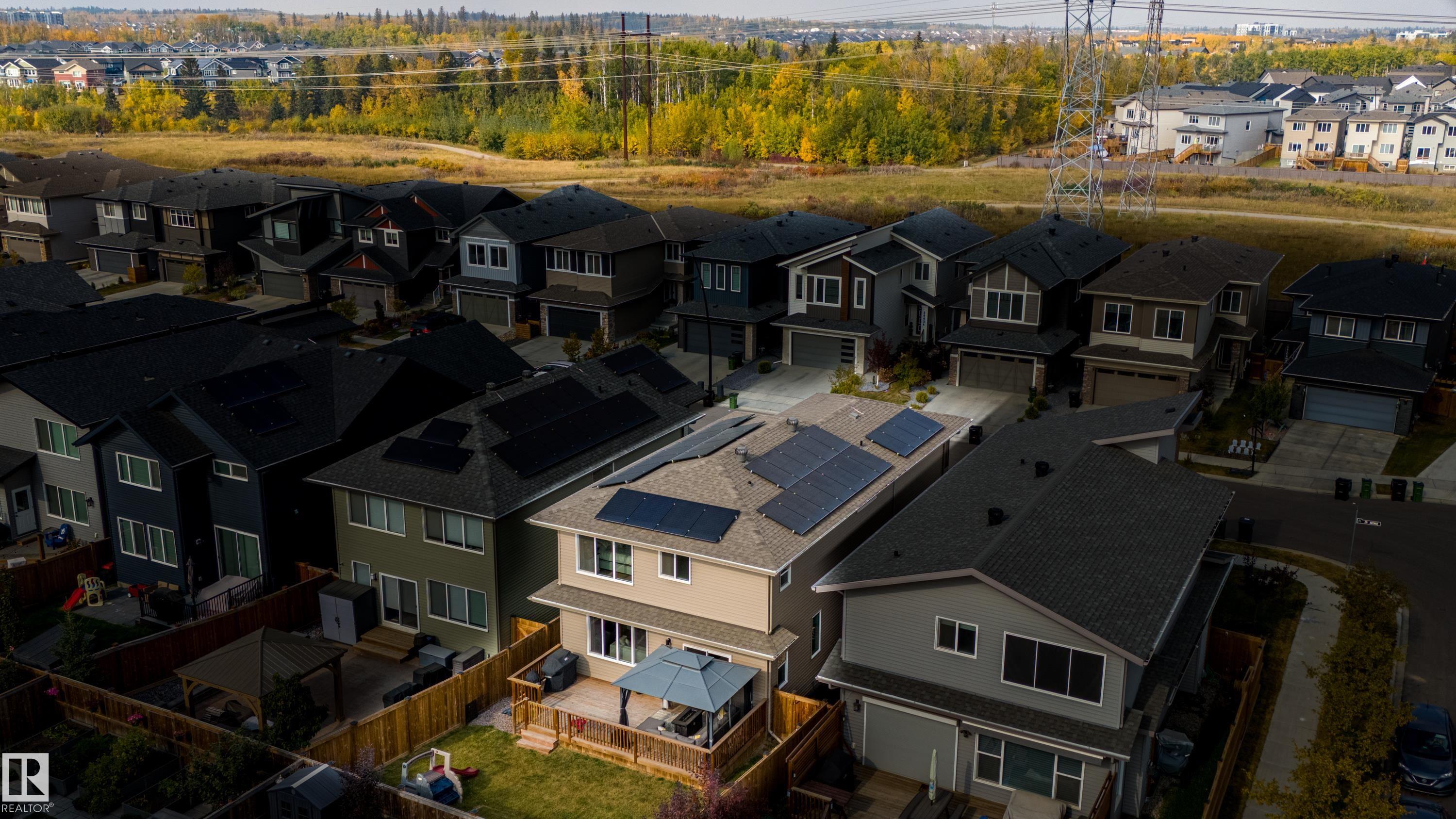 Live in The Uplands! This 2,450 ftý 3 BED / 2.5 BATH home blends style, comfort, and smart efficiency. The OPEN layout impresses with Spacious Great Room with beautiful fireplace and Shelving located next to the Chef's Kitchen featuring quartz counters, large island, stainless appliances, and a WALK-through pantry into a spacious Mudroom with Hooks & Bench. Upstairs, the HUGE BONUS room invites family movie nights and hangouts. The SPA-like 5-piece ensuite offers Separate His & Her Vanities, Walk-in shower, Soaker tub, AND His/Her walk-in closets too! Built for today as well as tomorrow, this home boasts a 12.96 kW SOLAR system to keep energy BILLS LOW. Enjoy sunny days in the SOUTH-facing yard and Full Width Deck on a REGULAR LOT (NOT zero lot line), while CENTRAL A/C keeps you cool all summer. Ideally located in SW Edmonton with quick access to the Anthony Henday and ALL Nearby amenities. An absolute MUST-SEE. Make this your family's next home! Close to walking trails, and beautiful ravine views.