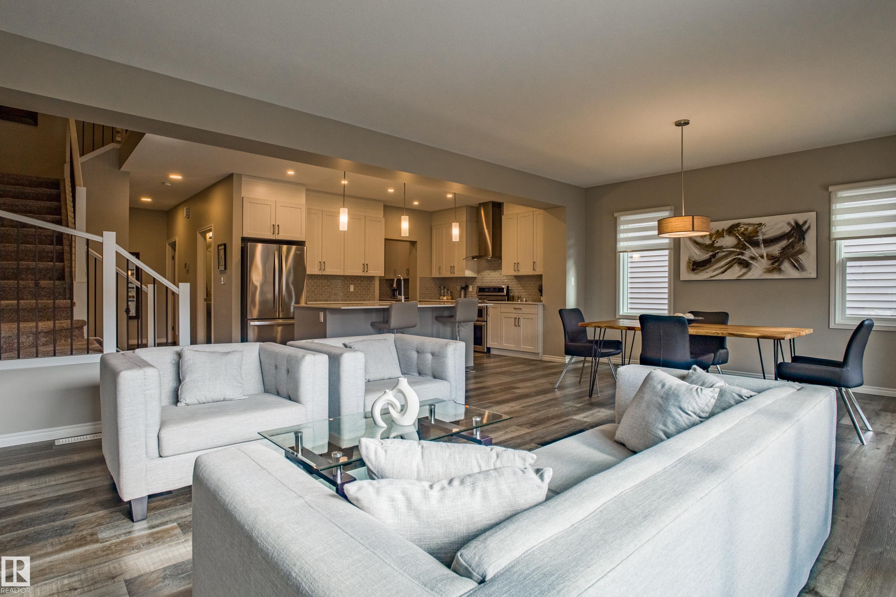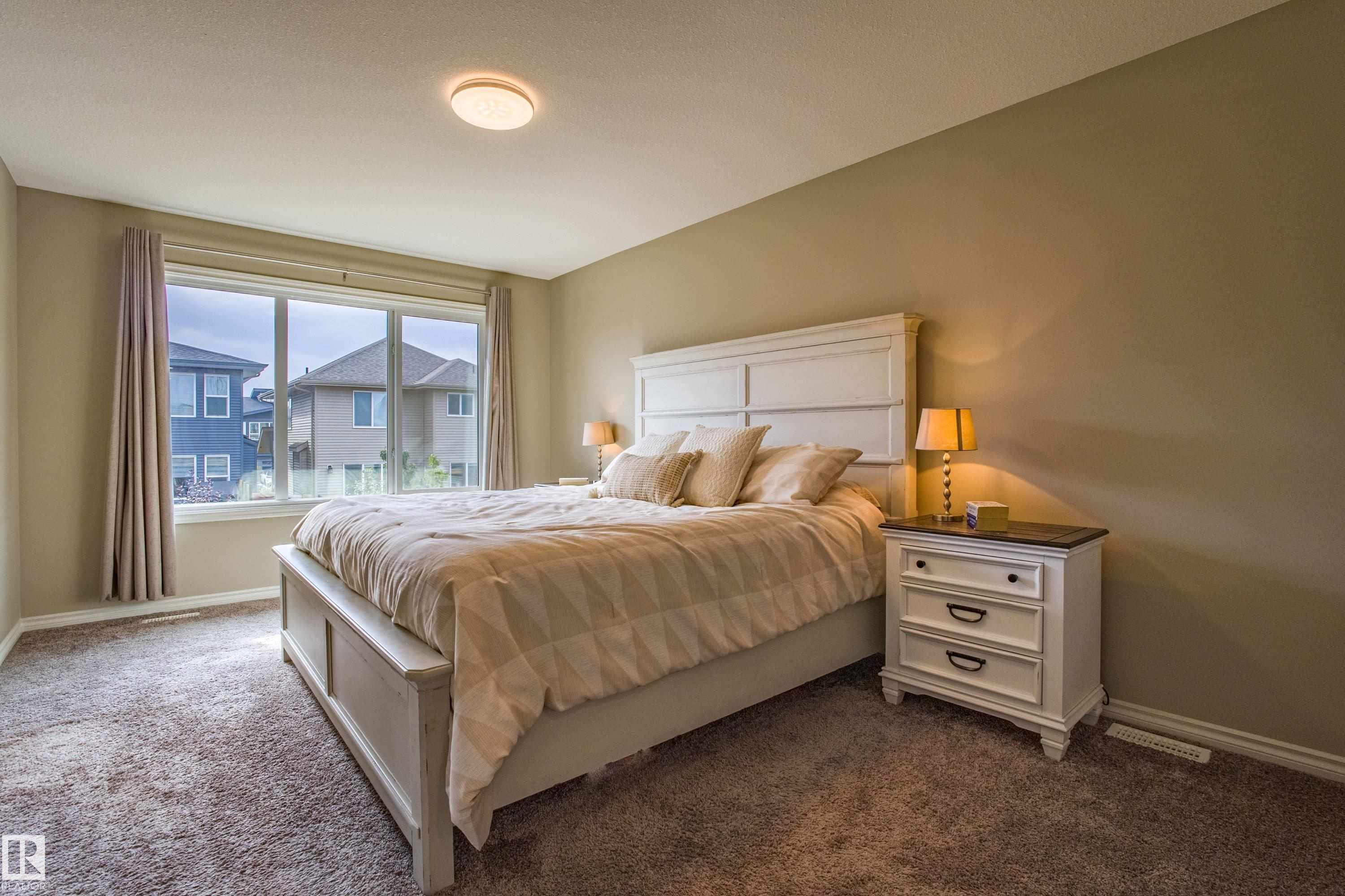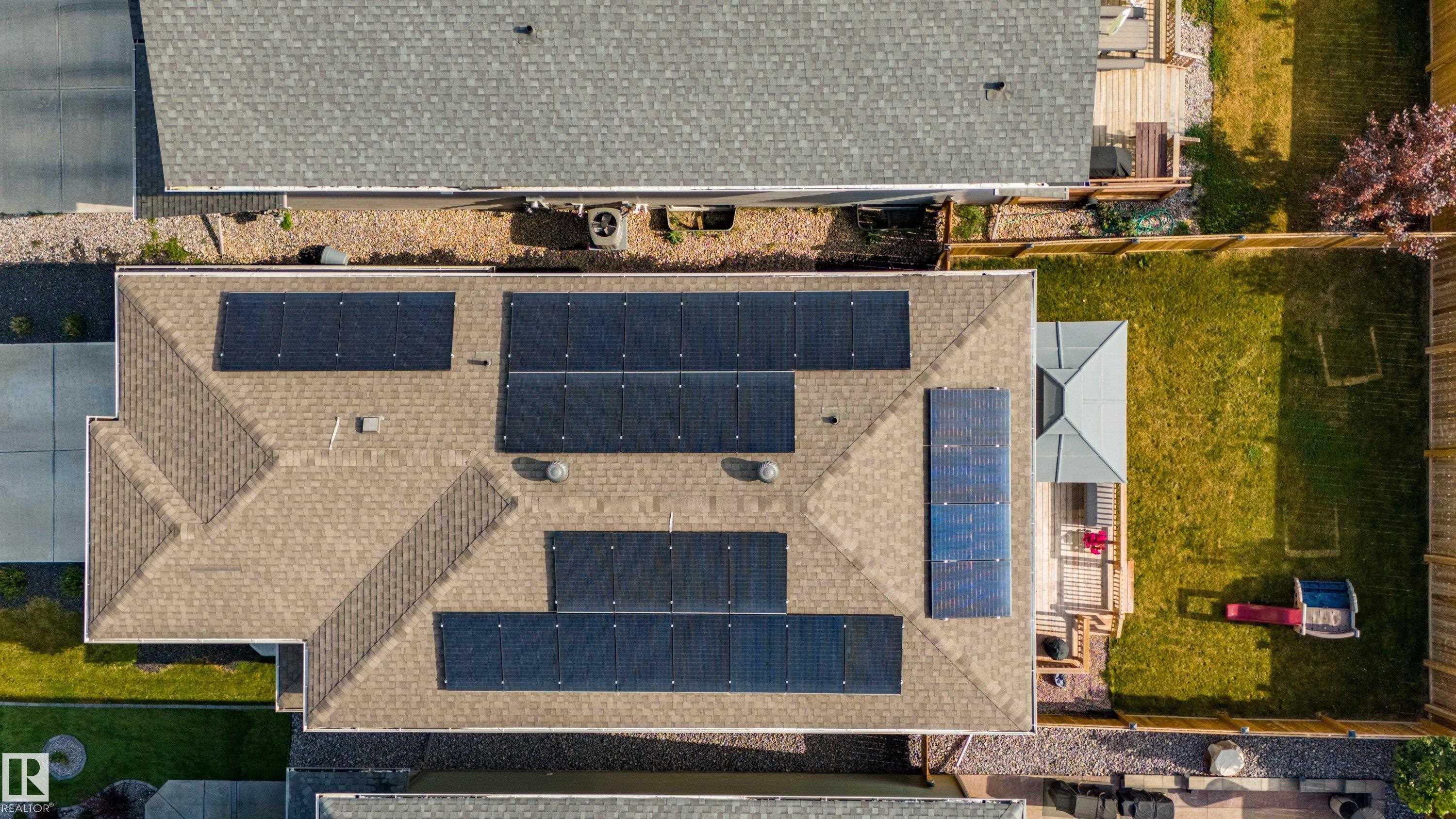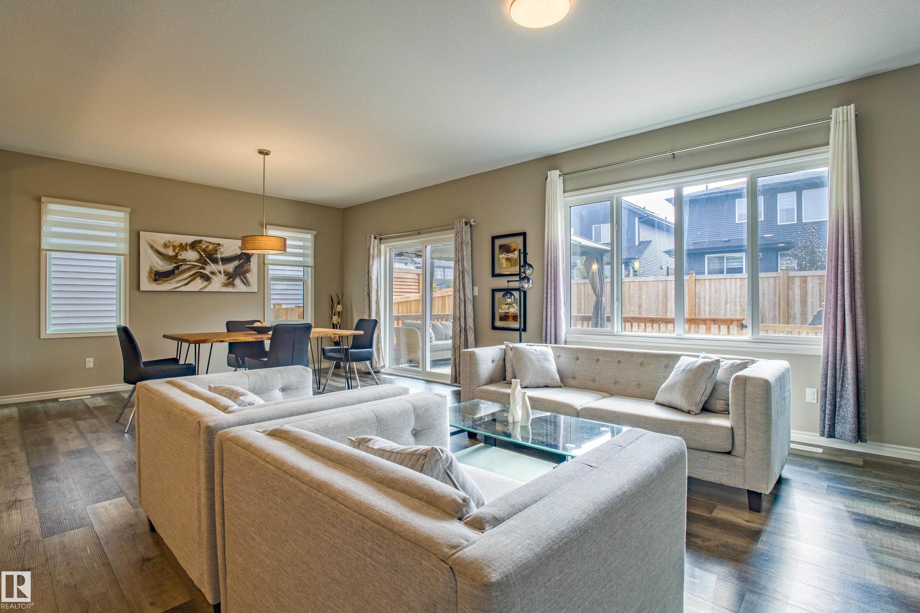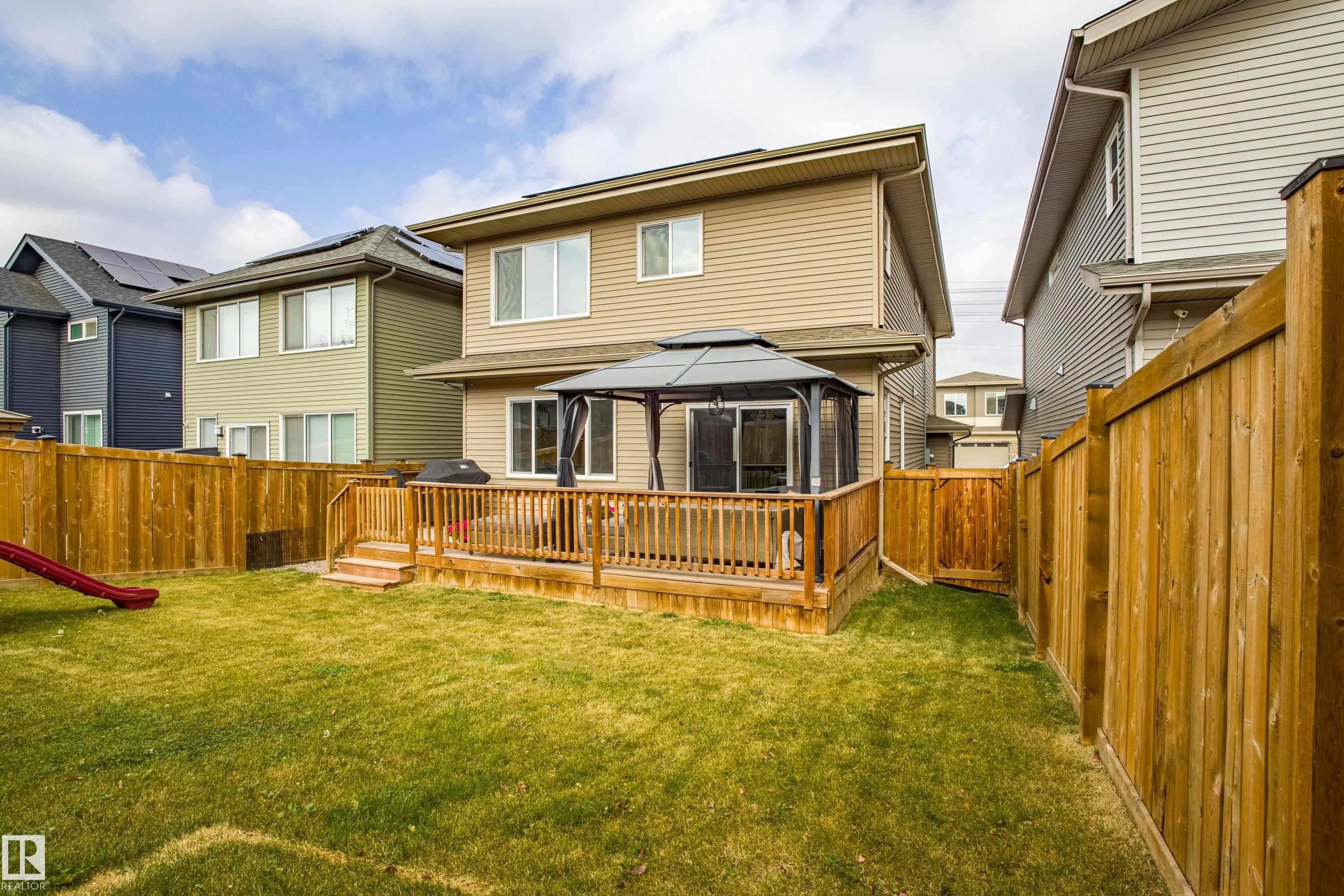 Live in The Uplands! This 2,450 ftý 3 BED / 2.5 BATH home blends style, comfort, and smart efficiency. The OPEN layout impresses with Spacious Great Room with beautiful fireplace and Shelving located next to the Chef's Kitchen featuring quartz counters, large island, stainless appliances, and a WALK-through pantry into a spacious Mudroom with Hooks & Bench. Upstairs, the HUGE BONUS room invites family movie nights and hangouts. The SPA-like 5-piece ensuite offers Separate His & Her Vanities, Walk-in shower, Soaker tub, AND His/Her walk-in closets too! Built for today as well as tomorrow, this home boasts a 12.96 kW SOLAR system to keep energy BILLS LOW. Enjoy sunny days in the SOUTH-facing yard and Full Width Deck on a REGULAR LOT (NOT zero lot line), while CENTRAL A/C keeps you cool all summer. Ideally located in SW Edmonton with quick access to the Anthony Henday and ALL Nearby amenities. An absolute MUST-SEE. Make this your family's next home! Close to walking trails, and beautiful ravine views.
