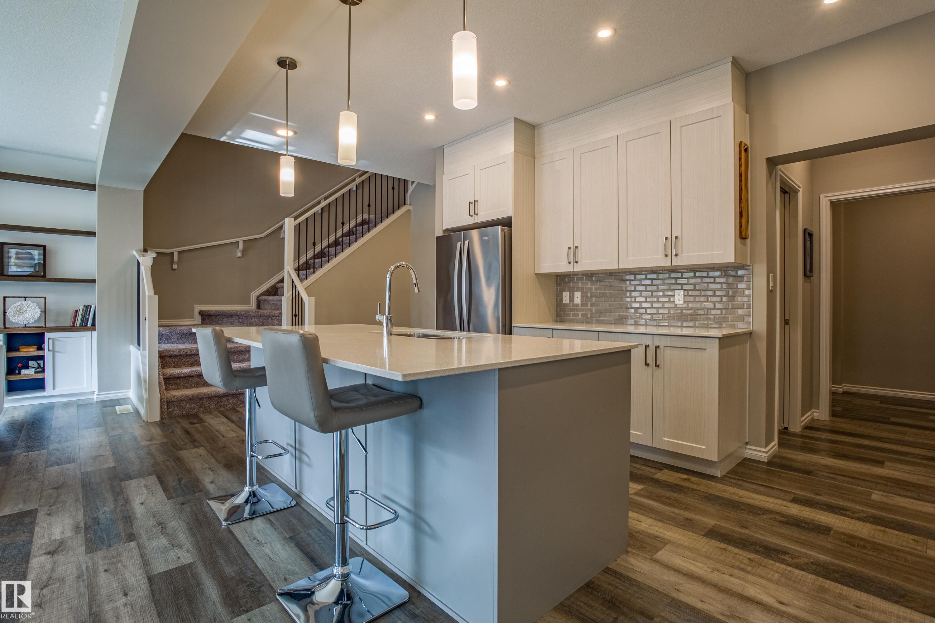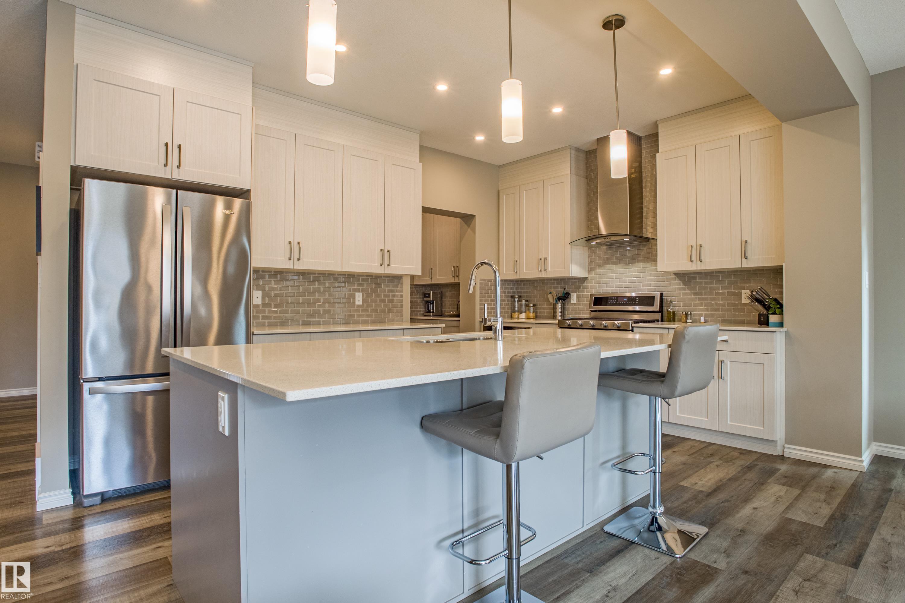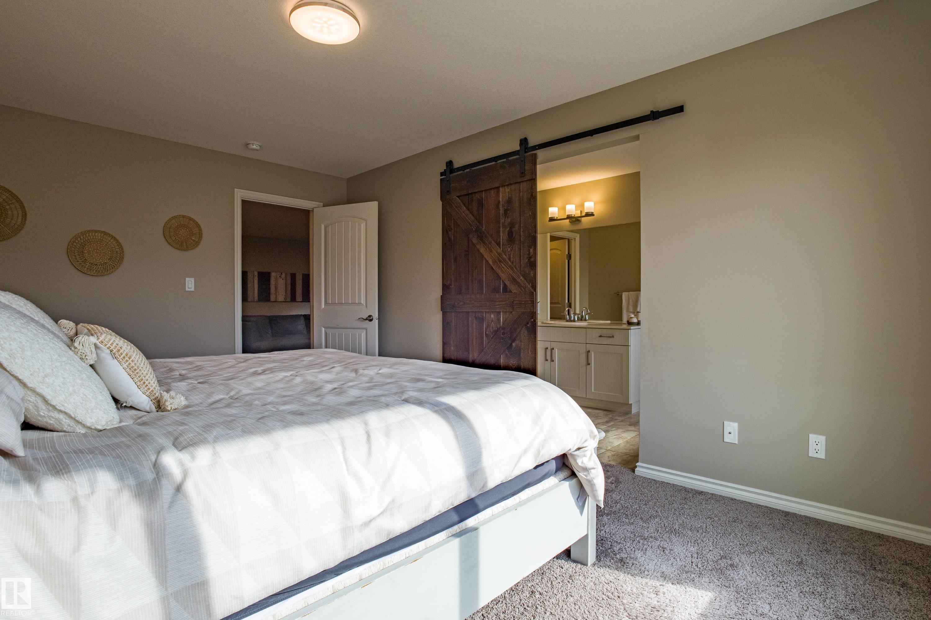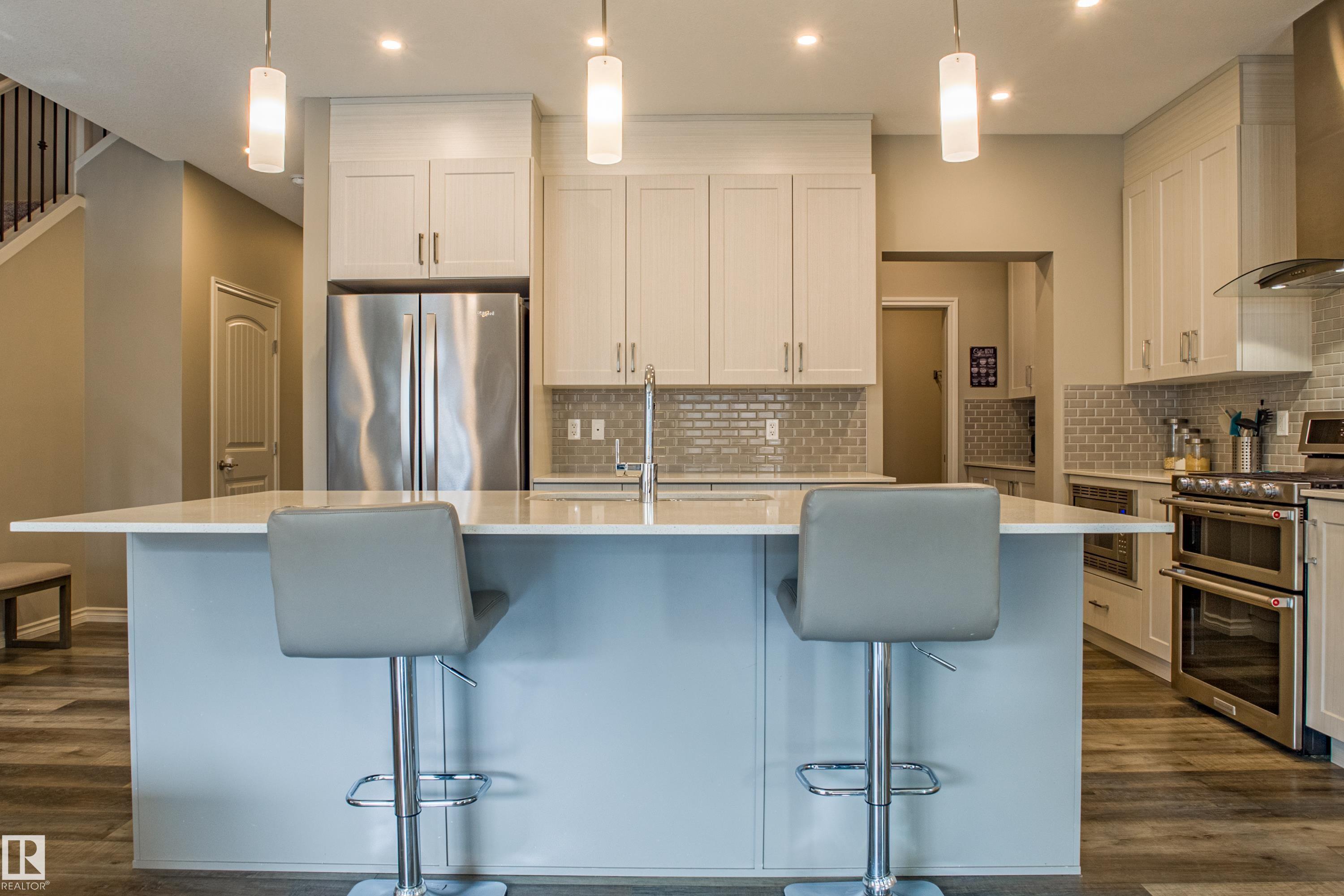 Live in The Uplands! This 2,450 ftý 3 BED / 2.5 BATH home blends style, comfort, and smart efficiency. The OPEN layout impresses with Spacious Great Room with beautiful fireplace and Shelving located next to the Chef's Kitchen featuring quartz counters, large island, stainless appliances, and a WALK-through pantry into a spacious Mudroom with Hooks & Bench. Upstairs, the HUGE BONUS room invites family movie nights and hangouts. The SPA-like 5-piece ensuite offers Separate His & Her Vanities, Walk-in shower, Soaker tub, AND His/Her walk-in closets too! Built for today as well as tomorrow, this home boasts a 12.96 kW SOLAR system to keep energy BILLS LOW. Enjoy sunny days in the SOUTH-facing yard and Full Width Deck on a REGULAR LOT (NOT zero lot line), while CENTRAL A/C keeps you cool all summer. Ideally located in SW Edmonton with quick access to the Anthony Henday and ALL Nearby amenities. An absolute MUST-SEE. Make this your family's next home! Close to walking trails, and beautiful ravine views.