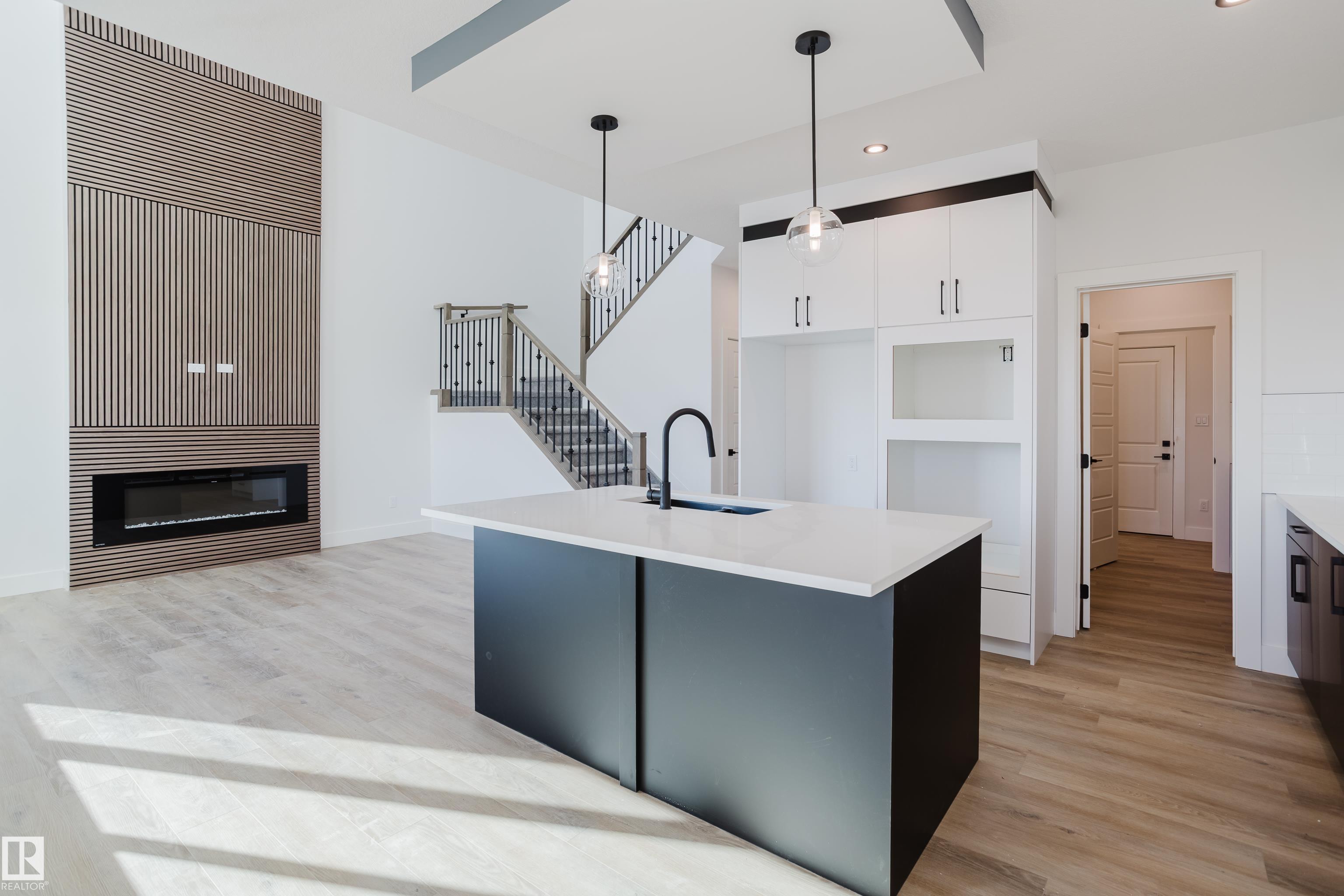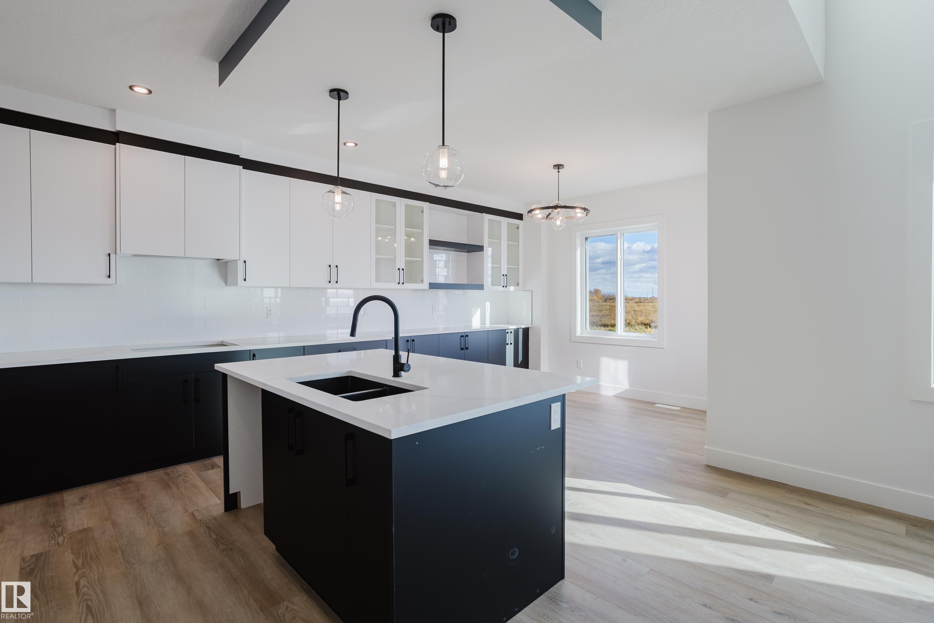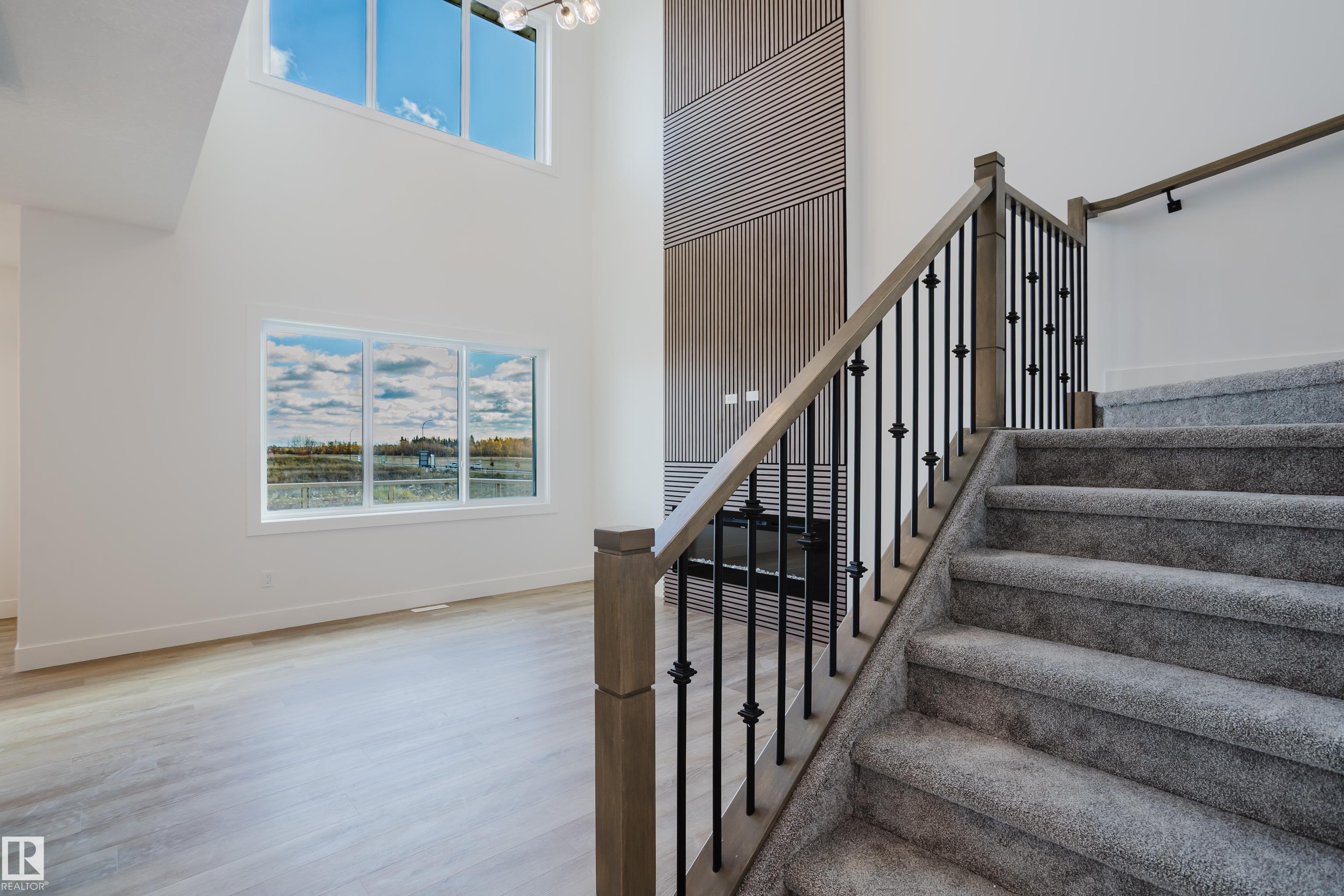 Brand new home in the desirable Uplands community, backing onto a serene pond with stunning views and a walkout basement. This beautifully designed property features a full bedroom and bathroom on the main floor--ideal for guests or multigenerational living. The open-to-above living room with a cozy fireplace adds a touch of elegance and warmth, flowing seamlessly into the modern kitchen and convenient spice kitchen. Upstairs offers four generously sized bedrooms, including a luxurious primary suite, plus a spacious bonus room perfect for a home office, media room, or play area. Enjoy outdoor living with a deck off the dining room, perfect for entertaining or relaxing while overlooking the peaceful water. A rare opportunity to own a thoughtfully designed, move-in-ready home in one of Edmonton's most sought-after neighborhoods!