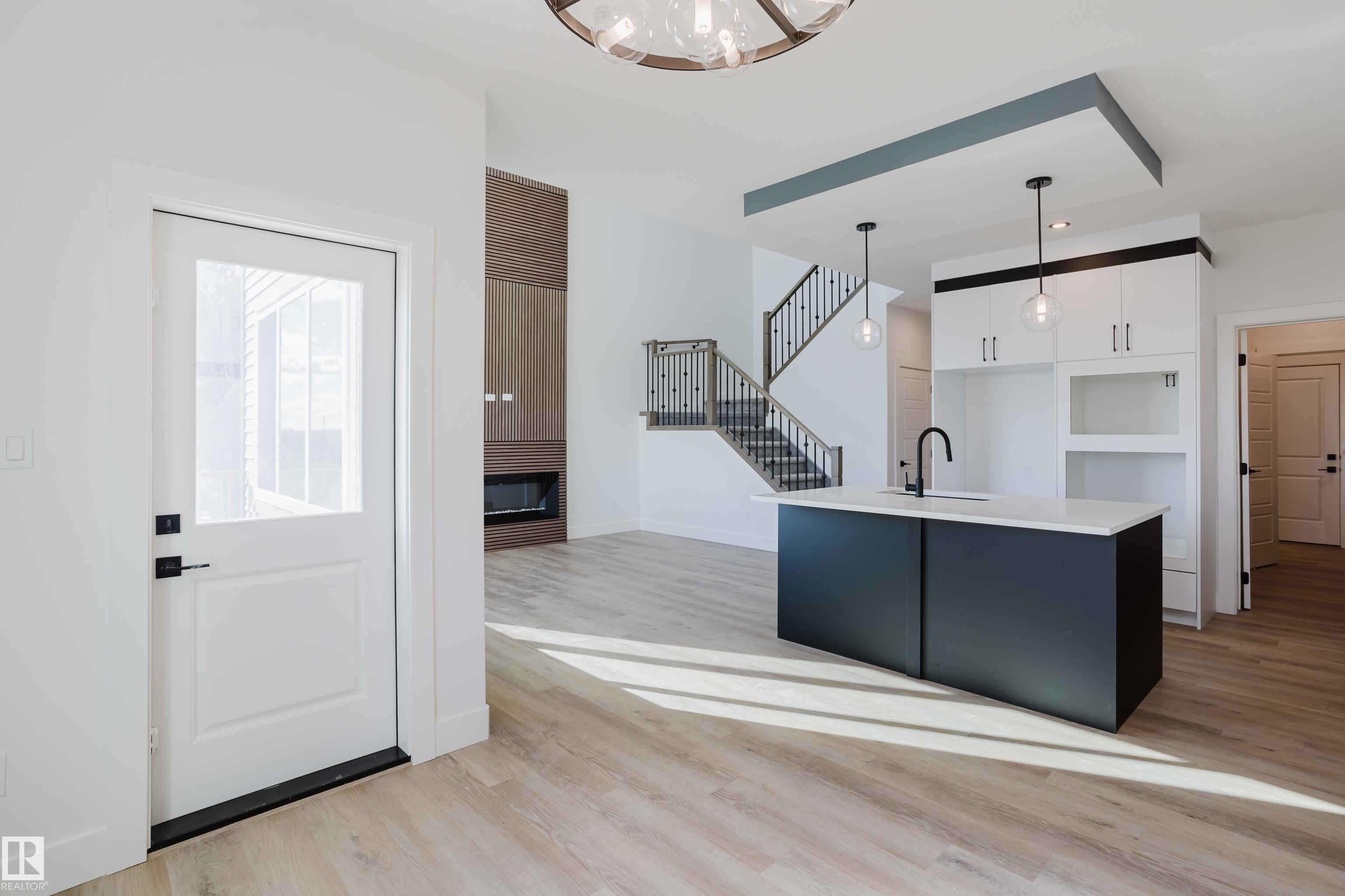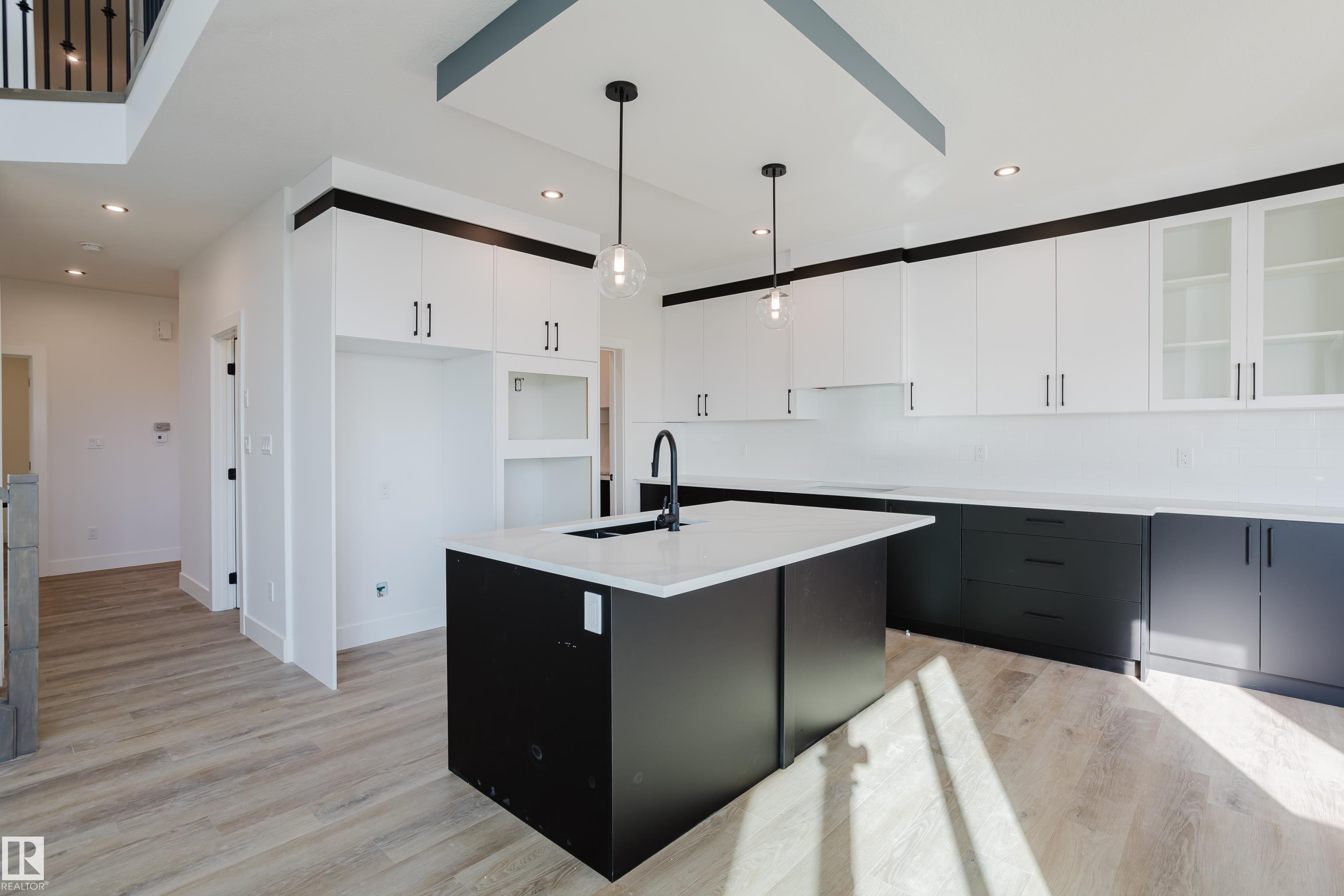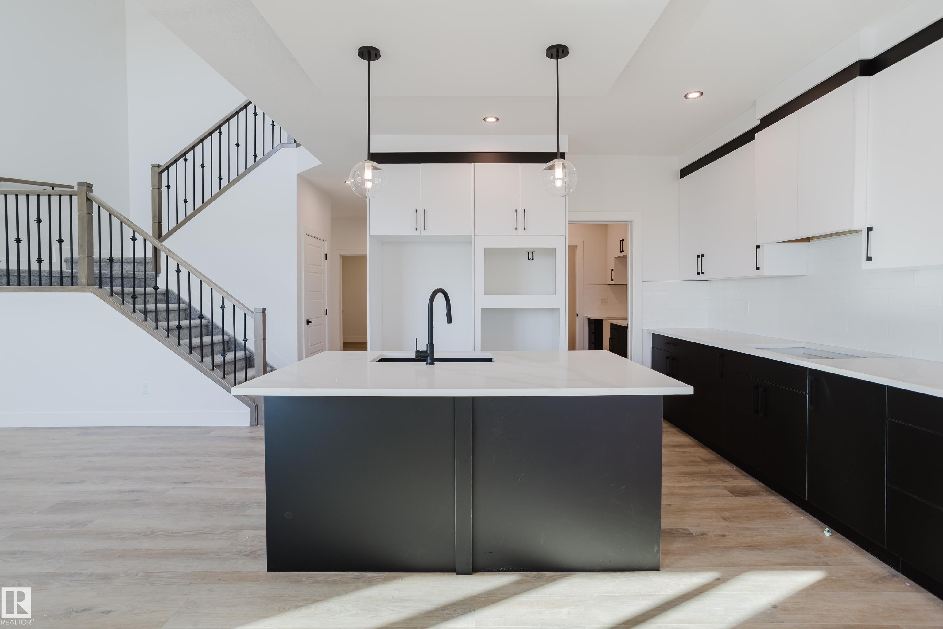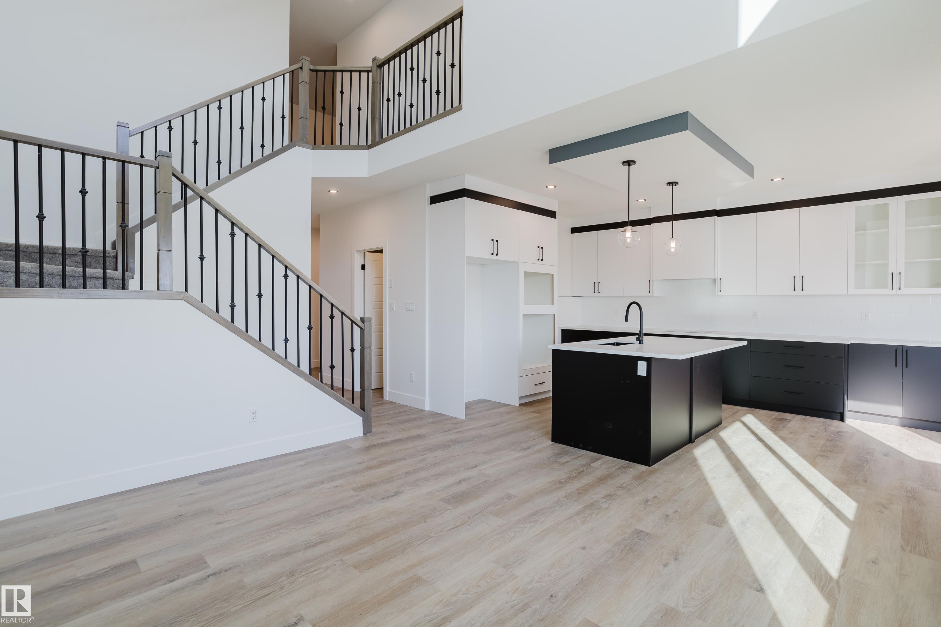 Brand new home in the desirable Uplands community, backing onto a serene pond with stunning views and a walkout basement. This beautifully designed property features a full bedroom and bathroom on the main floor--ideal for guests or multigenerational living. The open-to-above living room with a cozy fireplace adds a touch of elegance and warmth, flowing seamlessly into the modern kitchen and convenient spice kitchen. Upstairs offers four generously sized bedrooms, including a luxurious primary suite, plus a spacious bonus room perfect for a home office, media room, or play area. Enjoy outdoor living with a deck off the dining room, perfect for entertaining or relaxing while overlooking the peaceful water. A rare opportunity to own a thoughtfully designed, move-in-ready home in one of Edmonton's most sought-after neighborhoods!