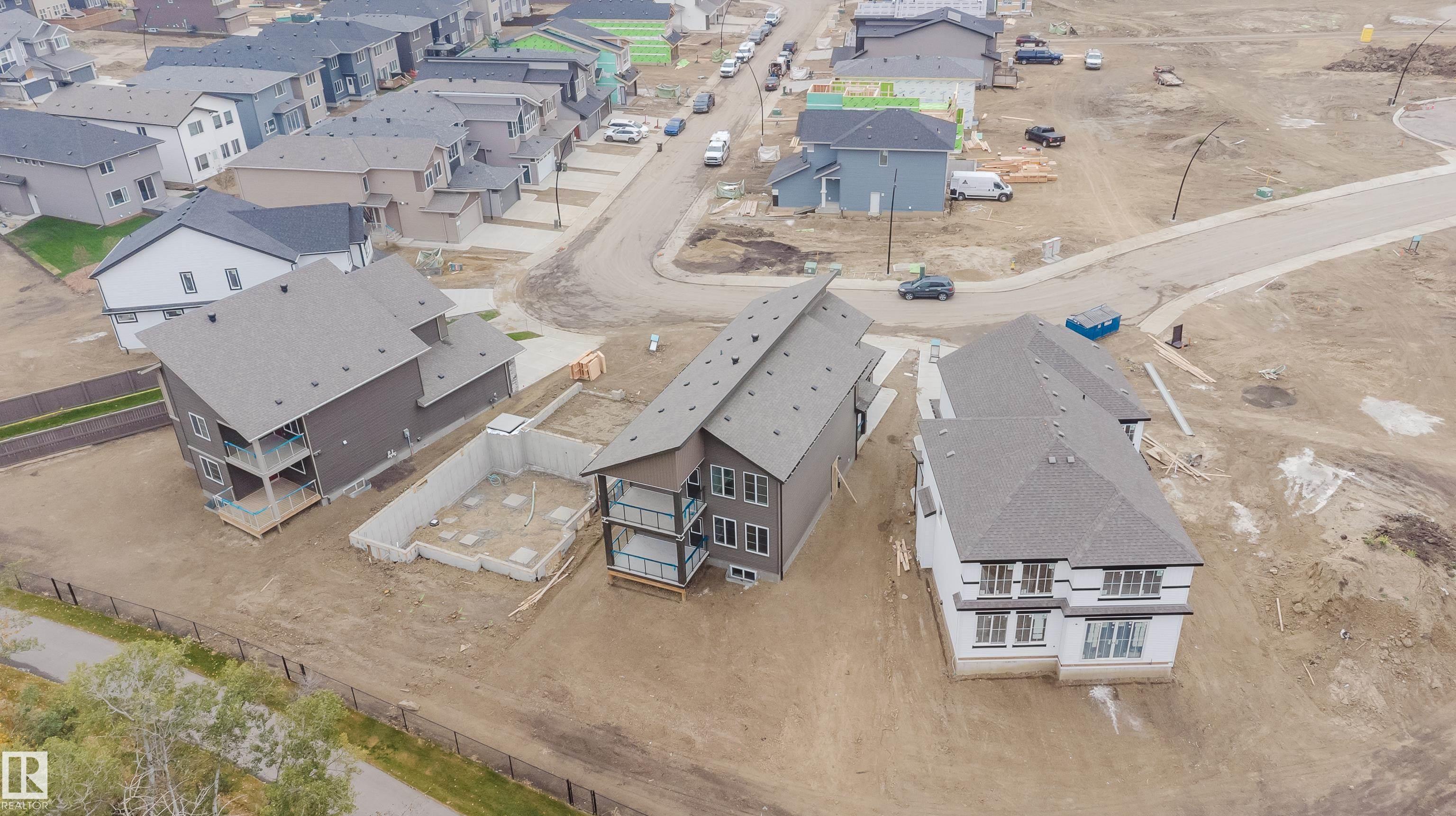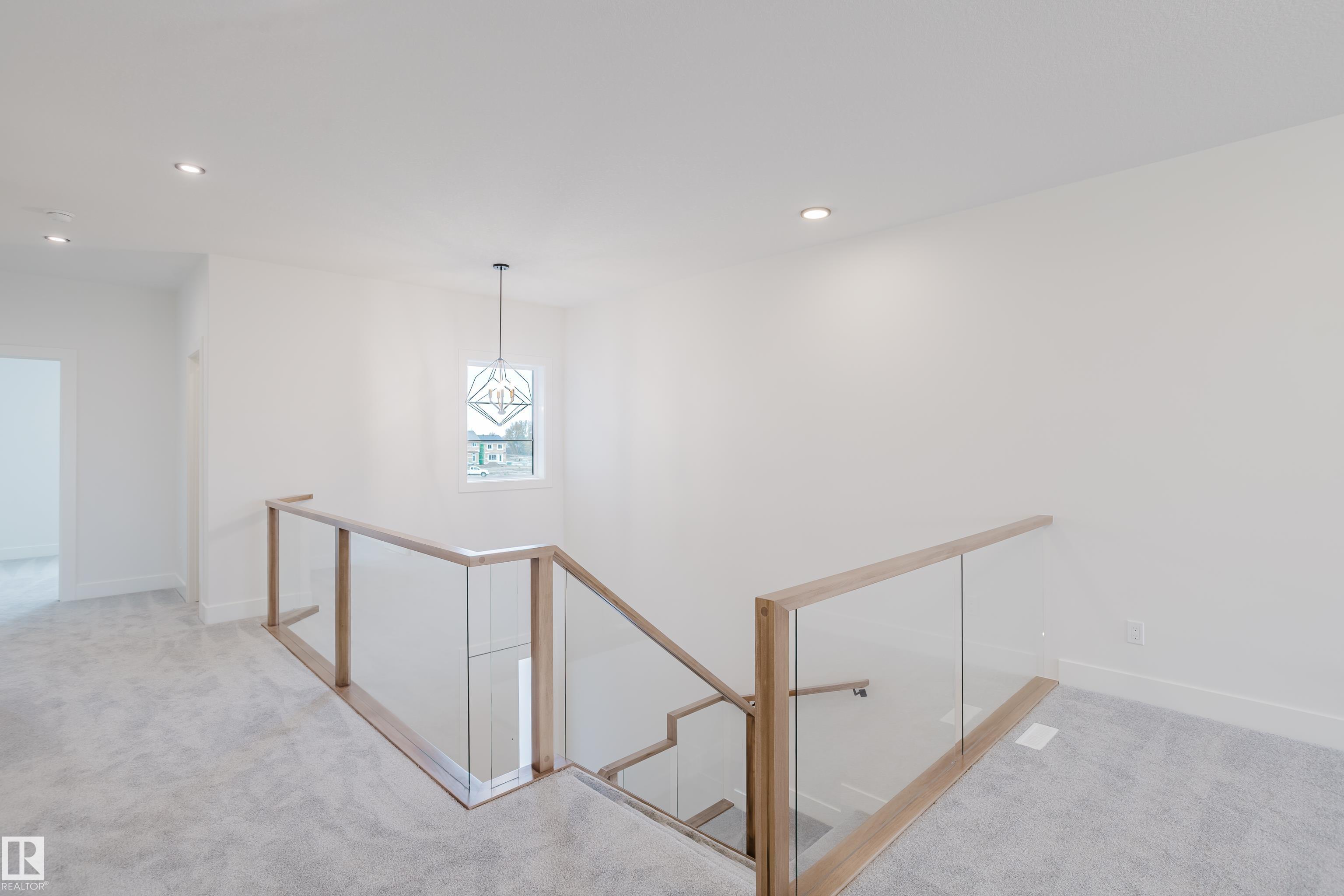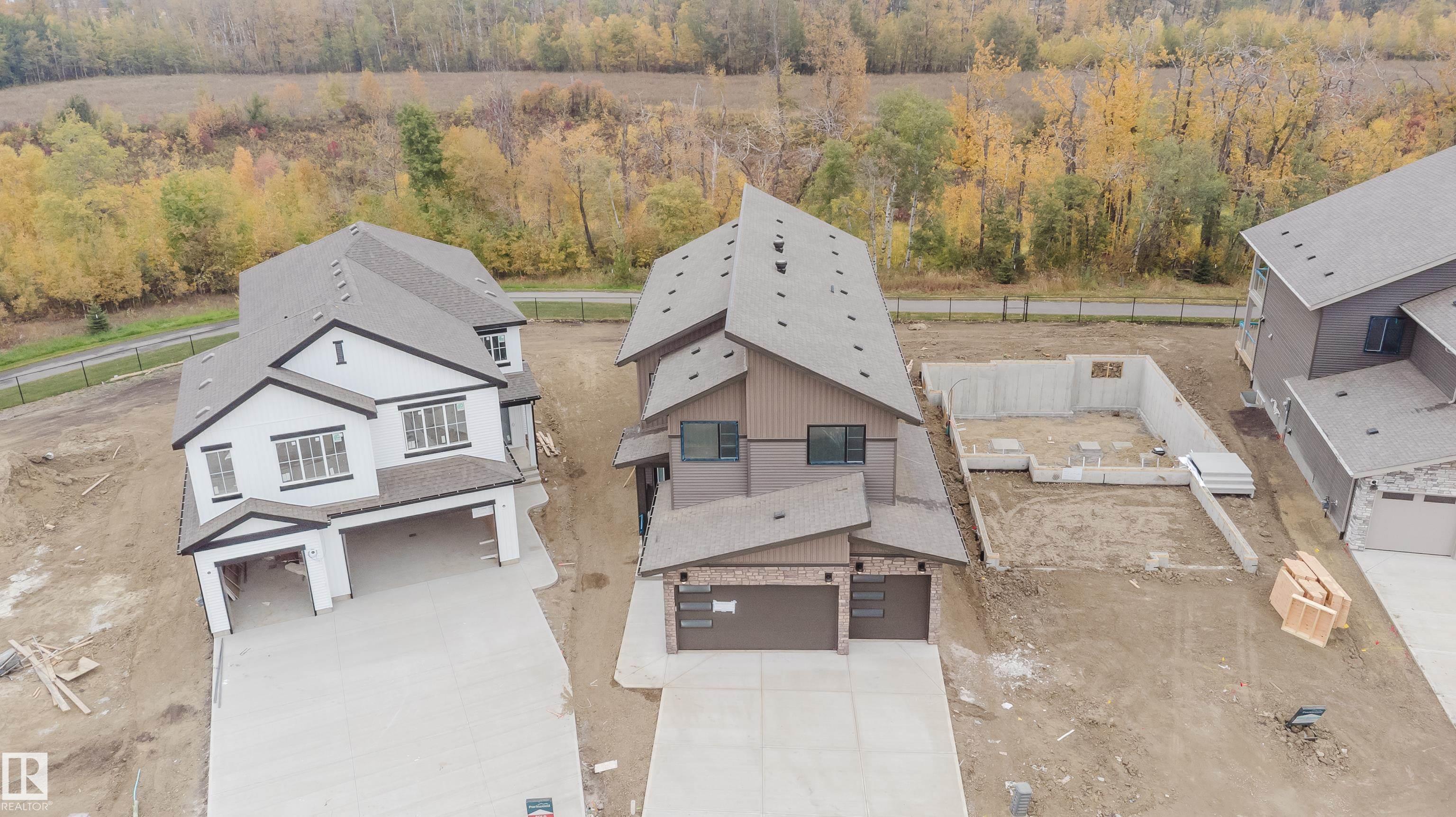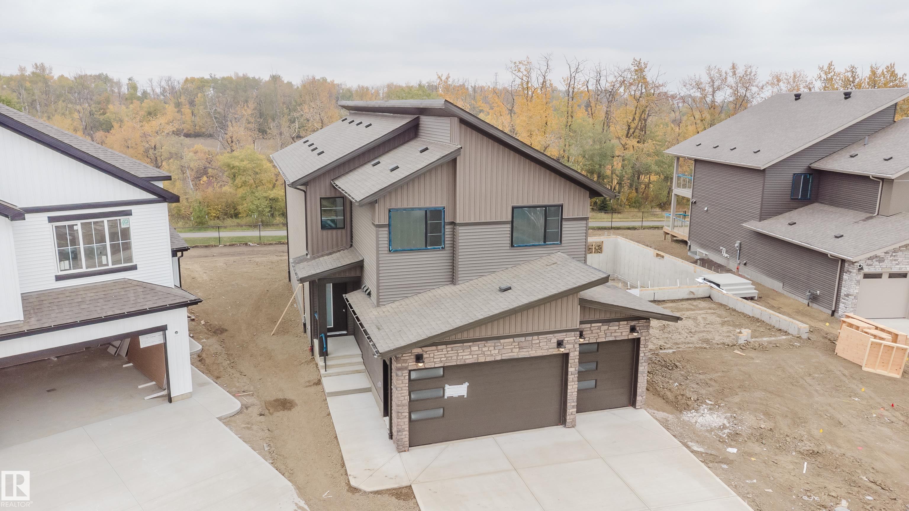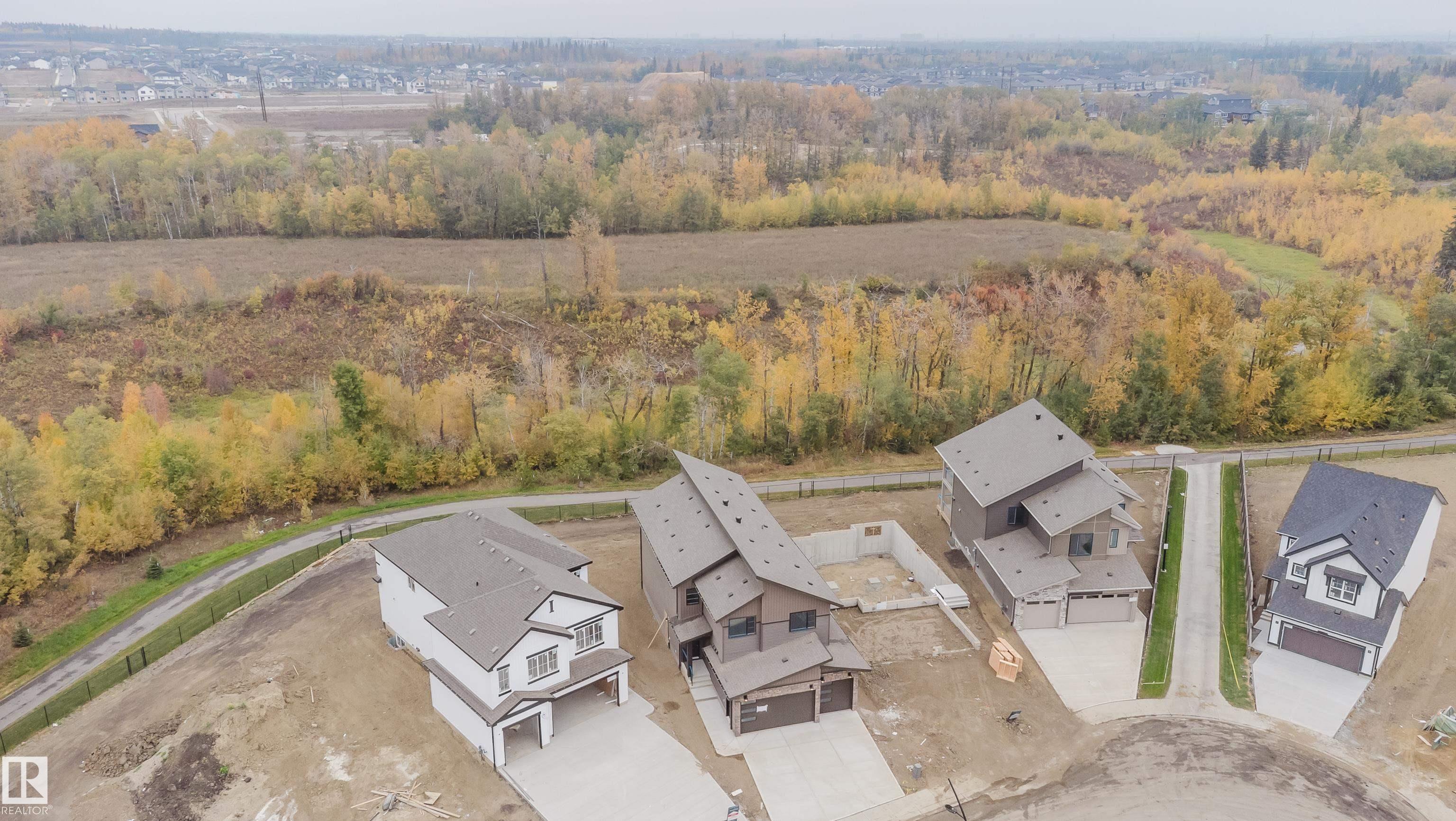 Experience elevated living in this brand new triple car garage home in The Uplands, backing onto a peaceful ravine for stunning views and privacy. This thoughtfully designed residence features a dramatic open-to-below living room with a sleek fireplace, a spacious main floor office, and a full bathroom--perfect for guests or working from home. The extended chef's kitchen offers premium finishes, abundant cabinetry, and a layout built for both function and entertaining. Elegant glass railings and illuminated step lights add a modern touch, while the upper level boasts a generously sized bedroom retreat, a versatile bonus room for family gatherings or relaxation, and a well-appointed laundry room with built-in cabinets for added convenience and organization. Outdoor living is elevated with a covered deck and an upper balcony overlooking the ravine, ideal for morning coffee or evening entertaining. A dedicated side entrance to the basement provides excellent flexibility for future development.