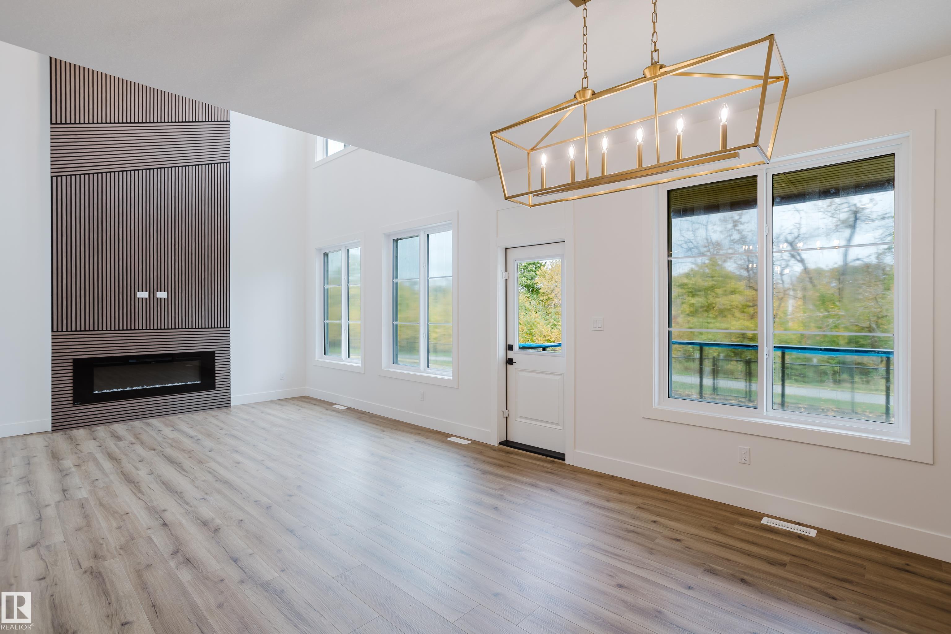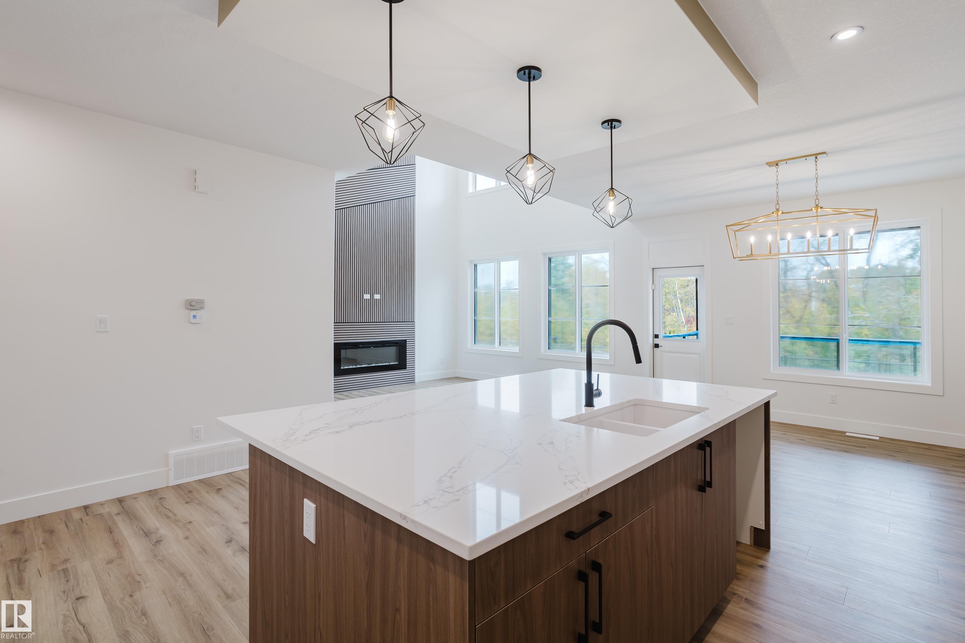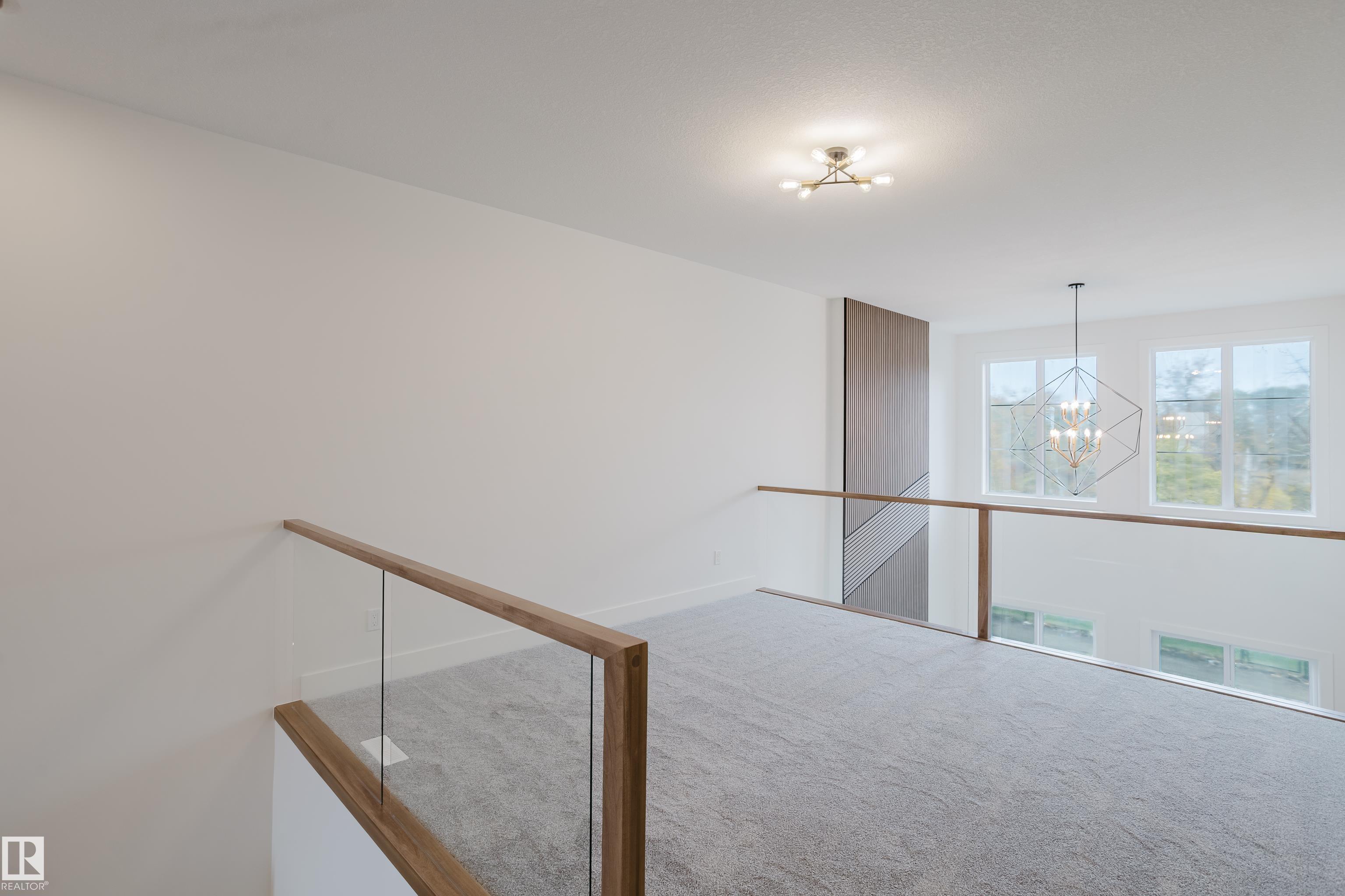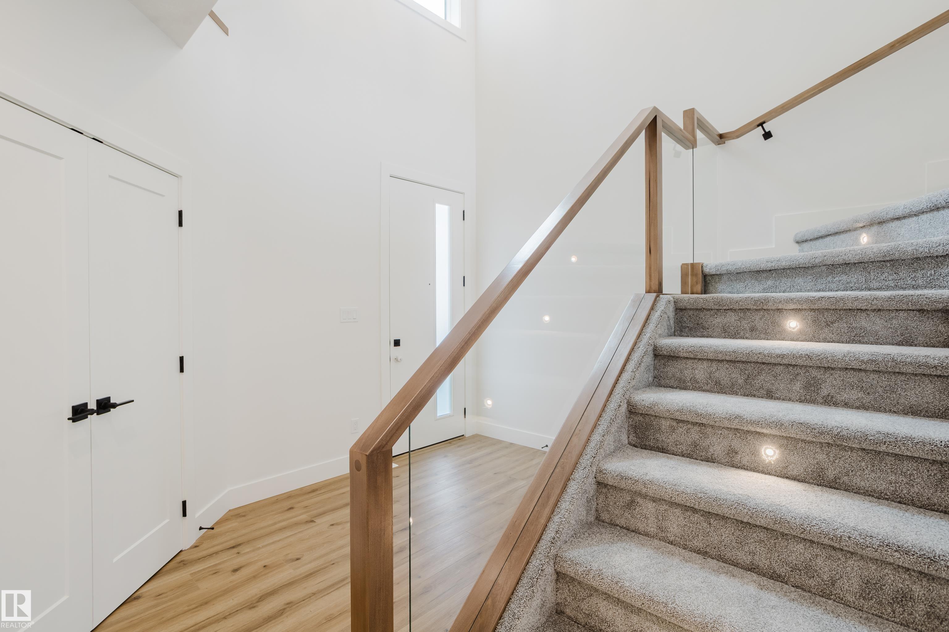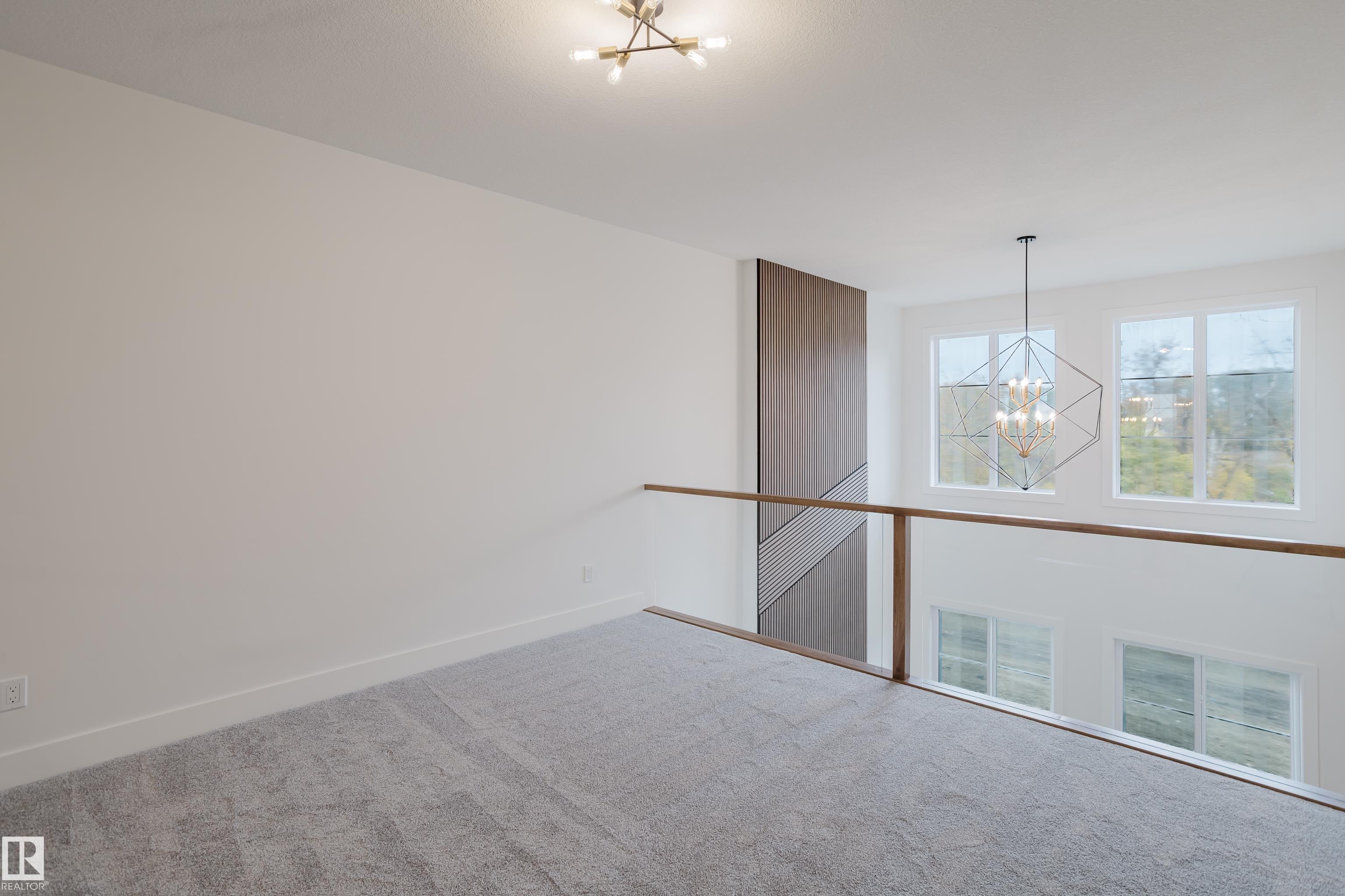 Experience elevated living in this brand new triple car garage home in The Uplands, backing onto a peaceful ravine for stunning views and privacy. This thoughtfully designed residence features a dramatic open-to-below living room with a sleek fireplace, a spacious main floor office, and a full bathroom--perfect for guests or working from home. The extended chef's kitchen offers premium finishes, abundant cabinetry, and a layout built for both function and entertaining. Elegant glass railings and illuminated step lights add a modern touch, while the upper level boasts a generously sized bedroom retreat, a versatile bonus room for family gatherings or relaxation, and a well-appointed laundry room with built-in cabinets for added convenience and organization. Outdoor living is elevated with a covered deck and an upper balcony overlooking the ravine, ideal for morning coffee or evening entertaining. A dedicated side entrance to the basement provides excellent flexibility for future development.
