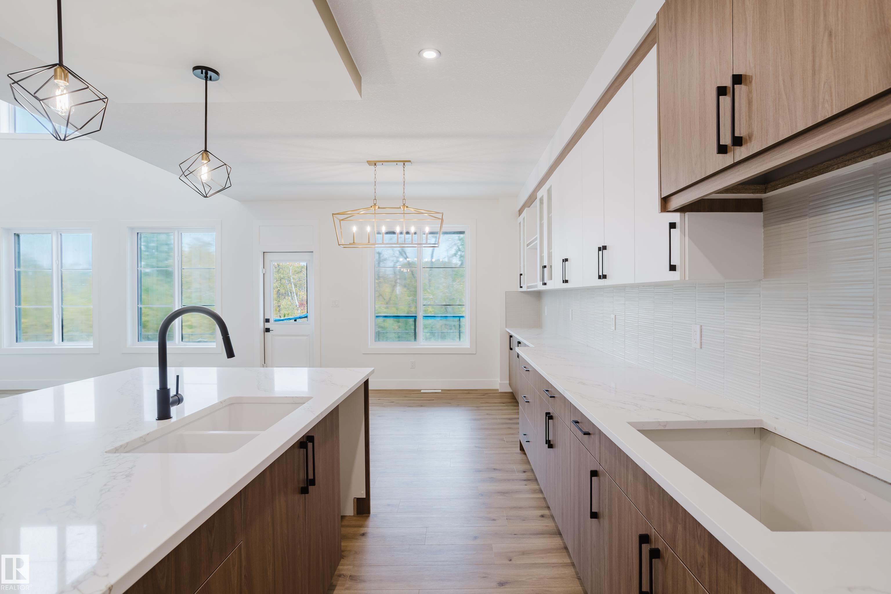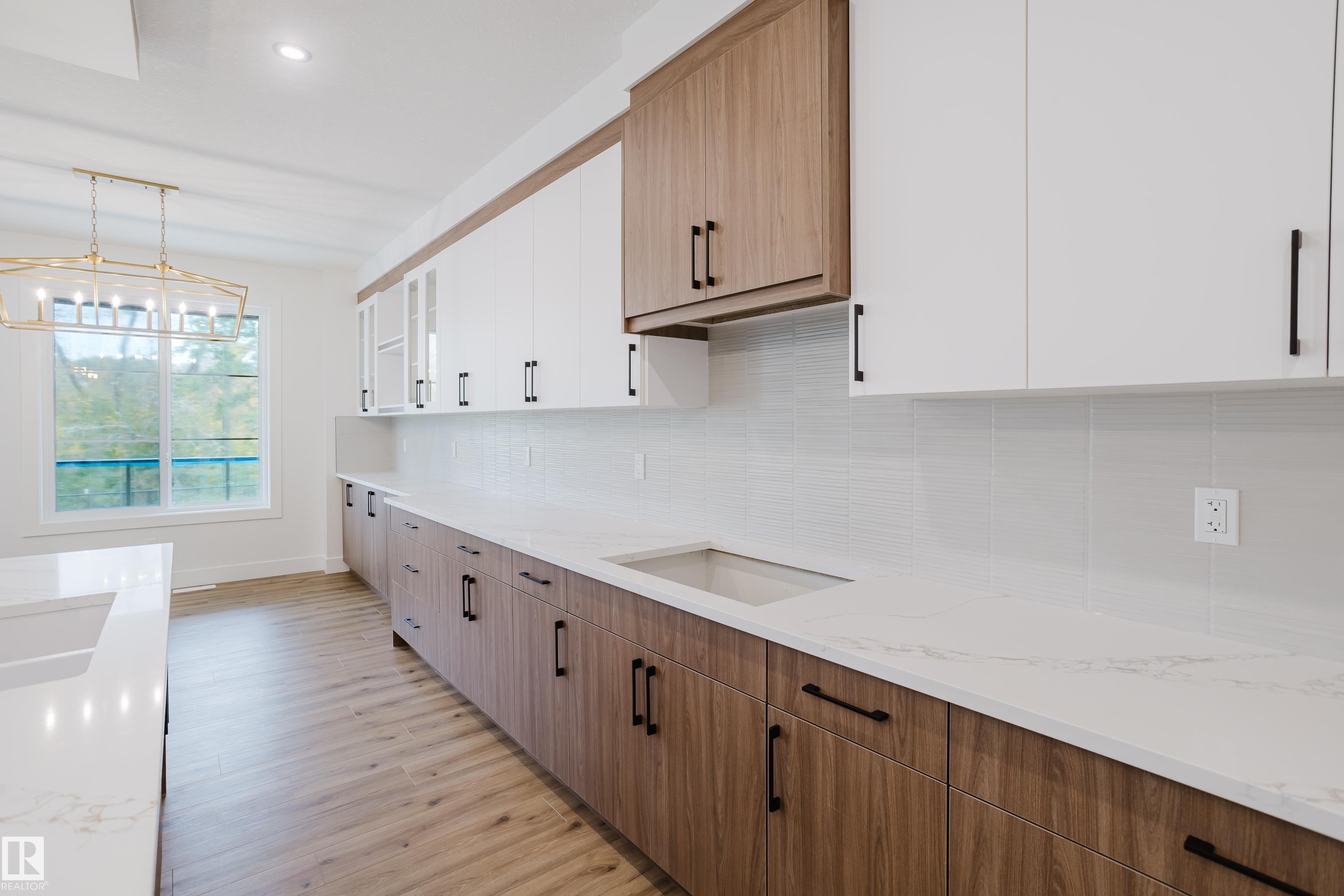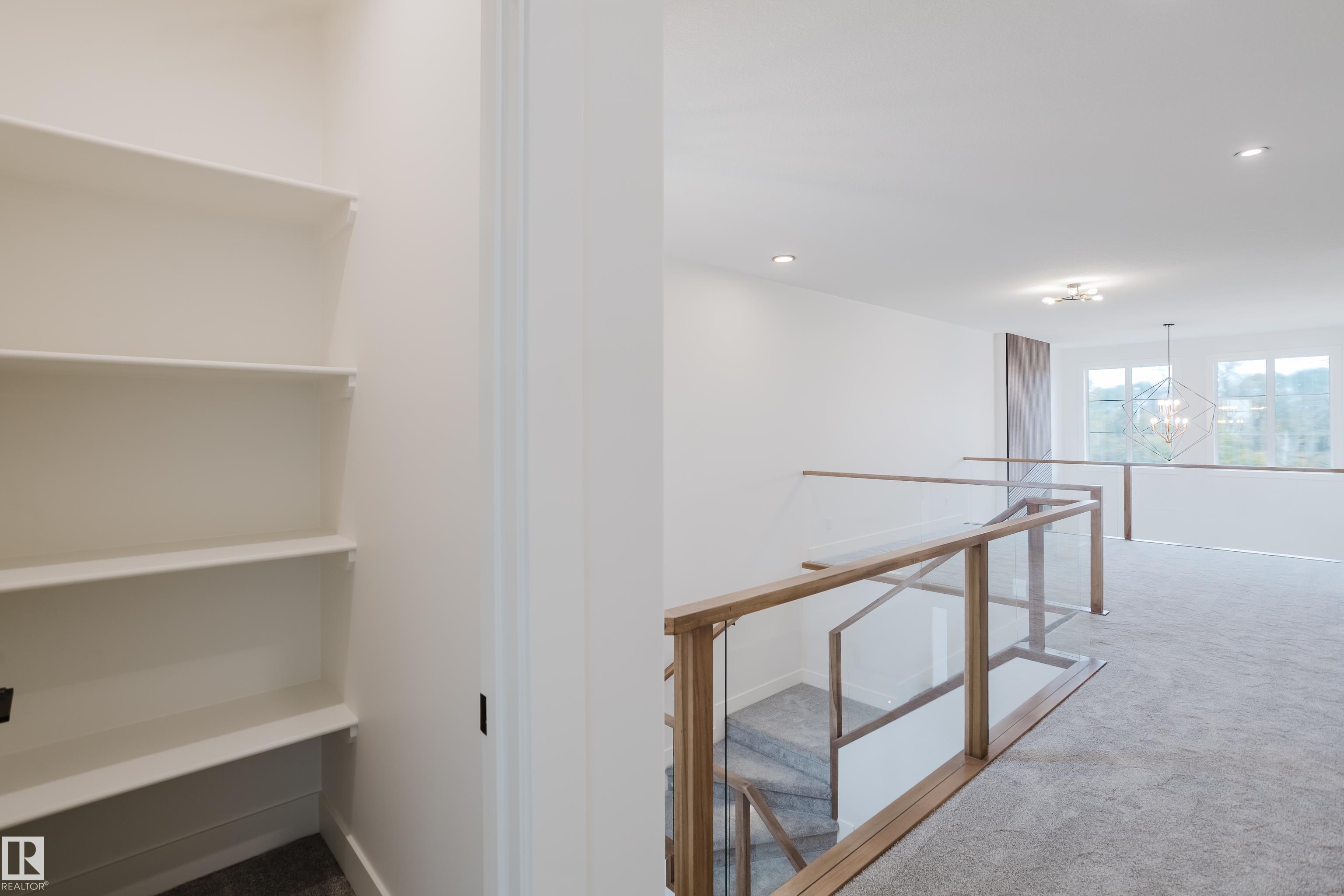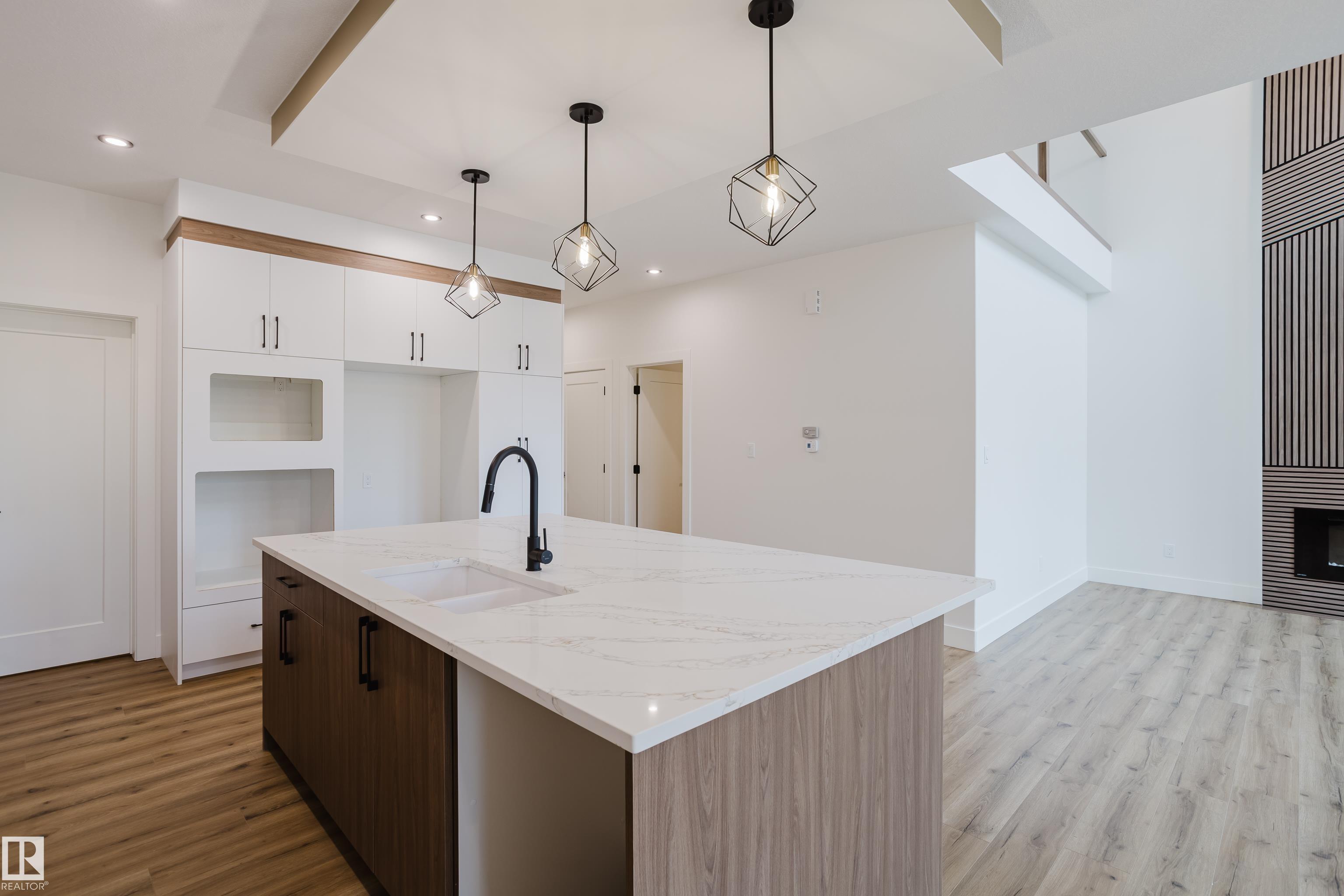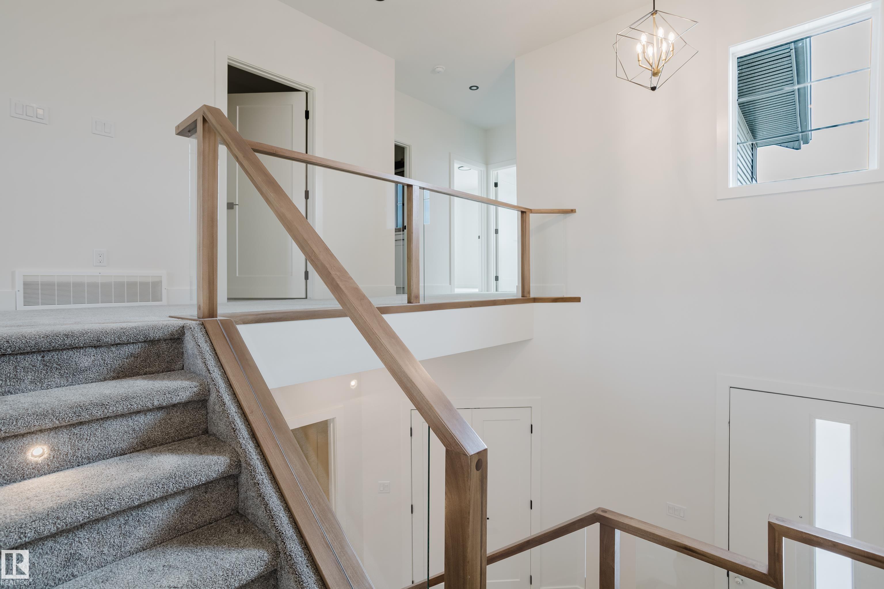 Experience elevated living in this brand new triple car garage home in The Uplands, backing onto a peaceful ravine for stunning views and privacy. This thoughtfully designed residence features a dramatic open-to-below living room with a sleek fireplace, a spacious main floor office, and a full bathroom--perfect for guests or working from home. The extended chef's kitchen offers premium finishes, abundant cabinetry, and a layout built for both function and entertaining. Elegant glass railings and illuminated step lights add a modern touch, while the upper level boasts a generously sized bedroom retreat, a versatile bonus room for family gatherings or relaxation, and a well-appointed laundry room with built-in cabinets for added convenience and organization. Outdoor living is elevated with a covered deck and an upper balcony overlooking the ravine, ideal for morning coffee or evening entertaining. A dedicated side entrance to the basement provides excellent flexibility for future development.