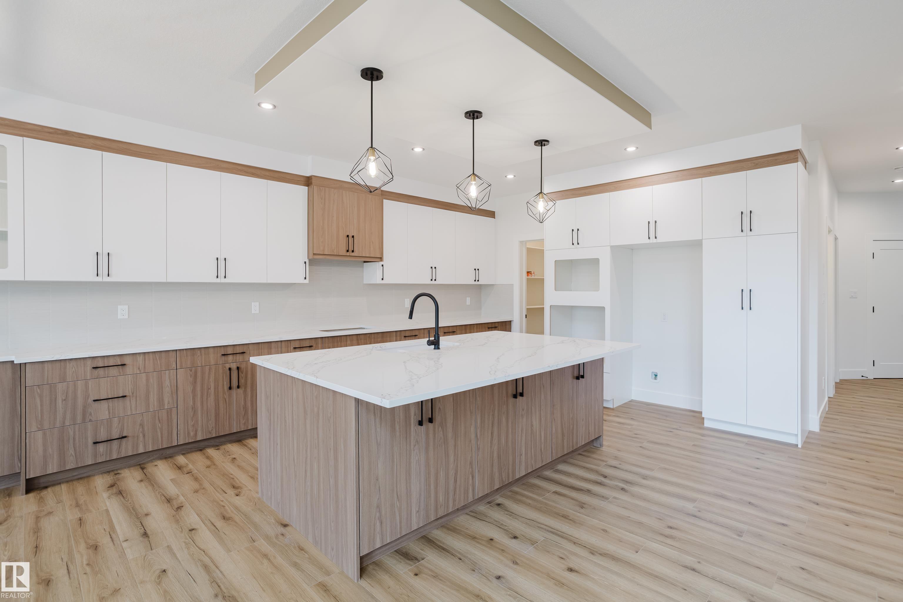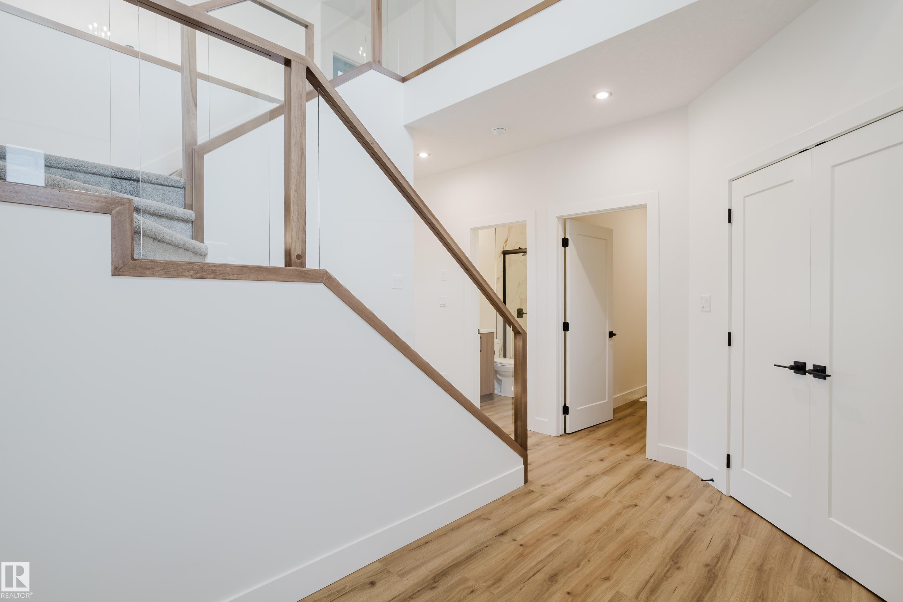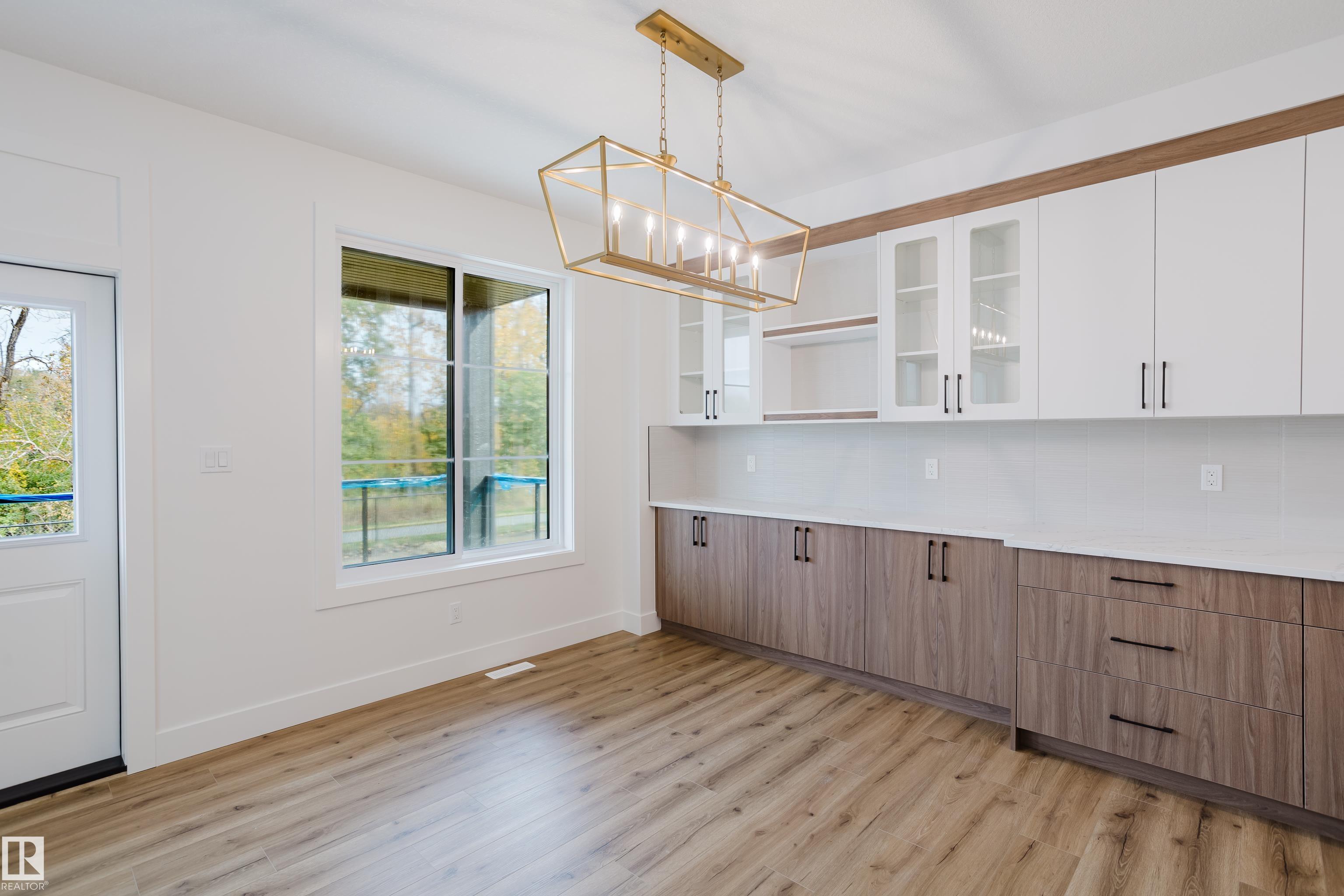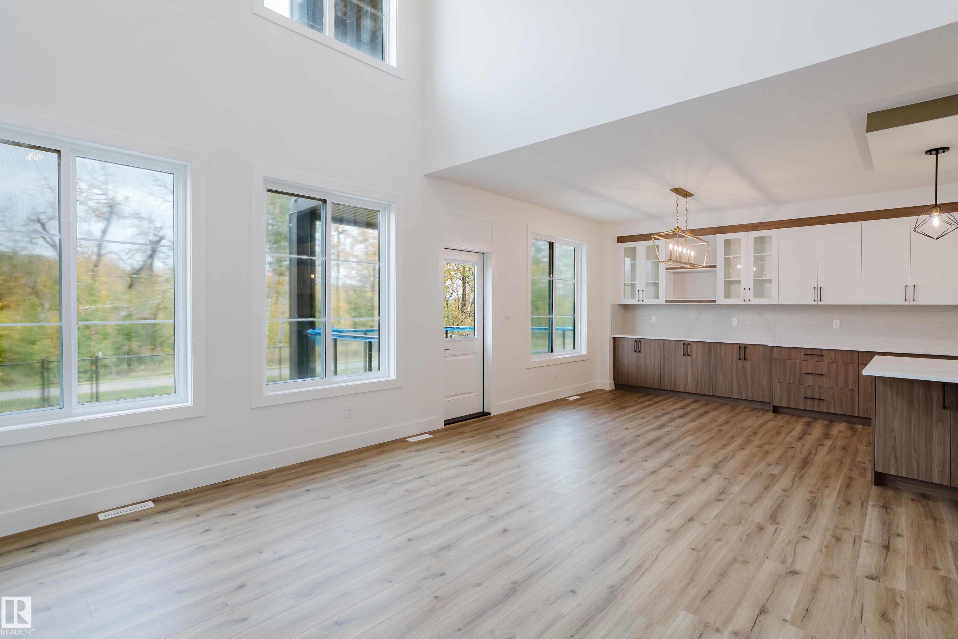 Experience elevated living in this brand new triple car garage home in The Uplands, backing onto a peaceful ravine for stunning views and privacy. This thoughtfully designed residence features a dramatic open-to-below living room with a sleek fireplace, a spacious main floor office, and a full bathroom--perfect for guests or working from home. The extended chef's kitchen offers premium finishes, abundant cabinetry, and a layout built for both function and entertaining. Elegant glass railings and illuminated step lights add a modern touch, while the upper level boasts a generously sized bedroom retreat, a versatile bonus room for family gatherings or relaxation, and a well-appointed laundry room with built-in cabinets for added convenience and organization. Outdoor living is elevated with a covered deck and an upper balcony overlooking the ravine, ideal for morning coffee or evening entertaining. A dedicated side entrance to the basement provides excellent flexibility for future development.