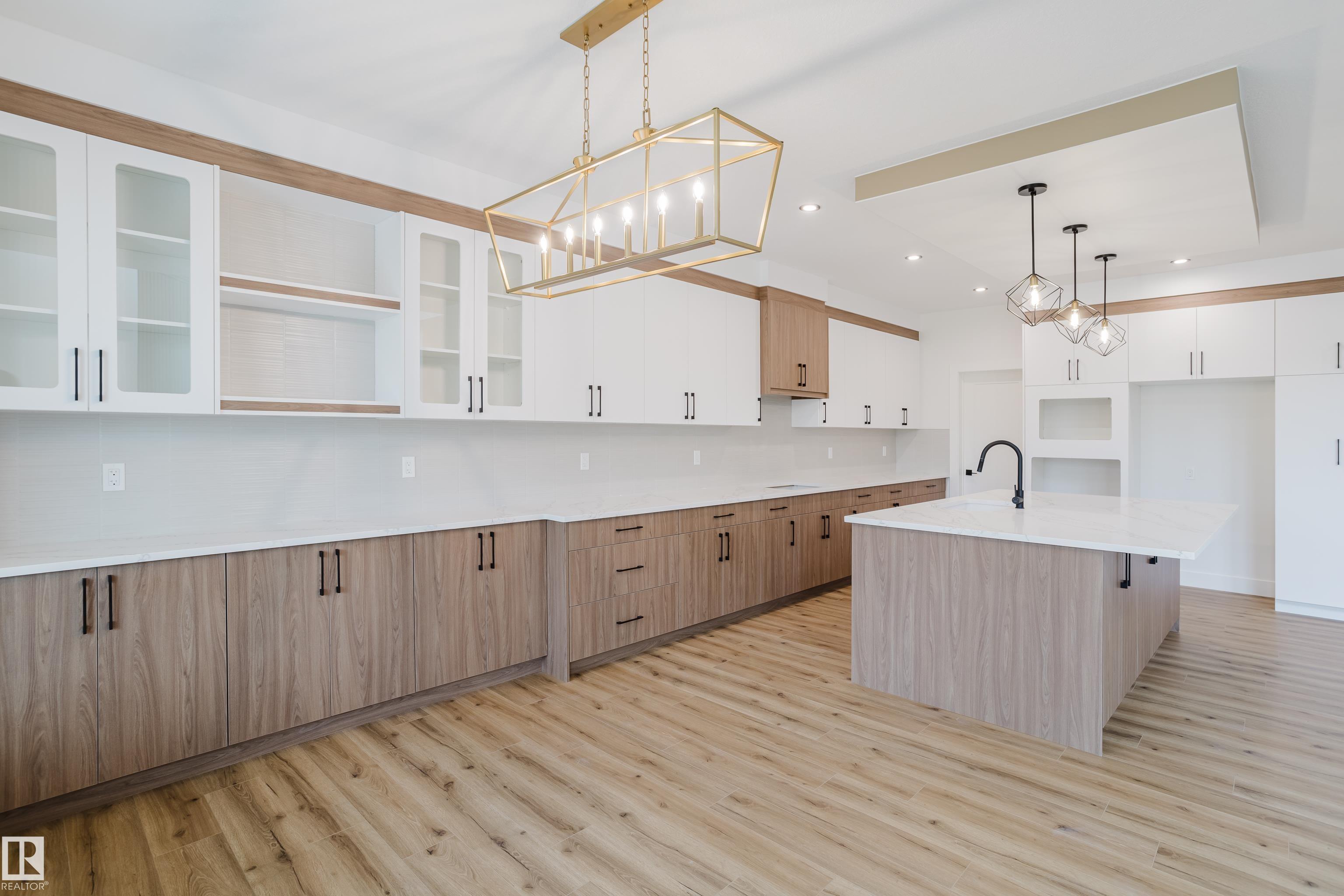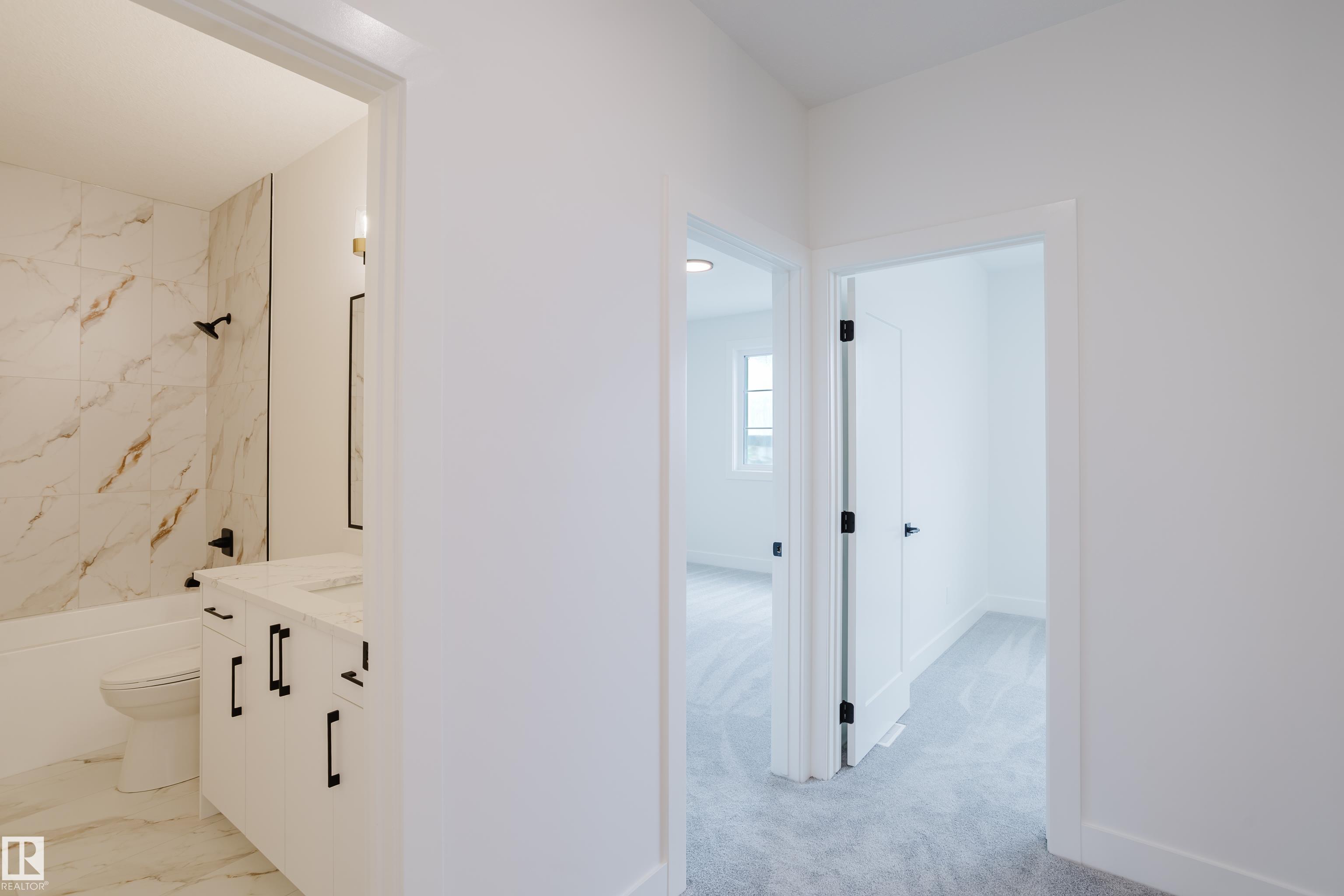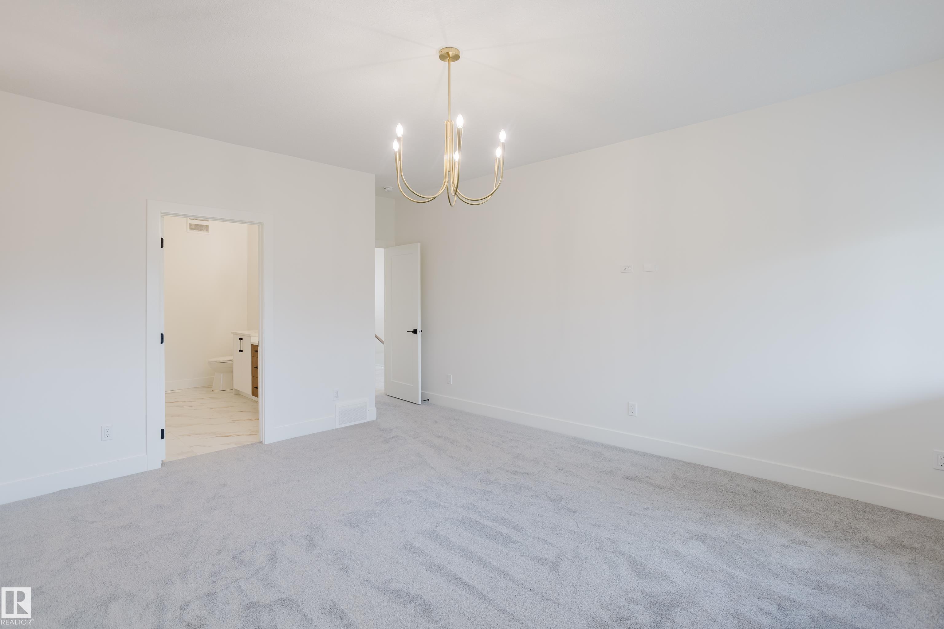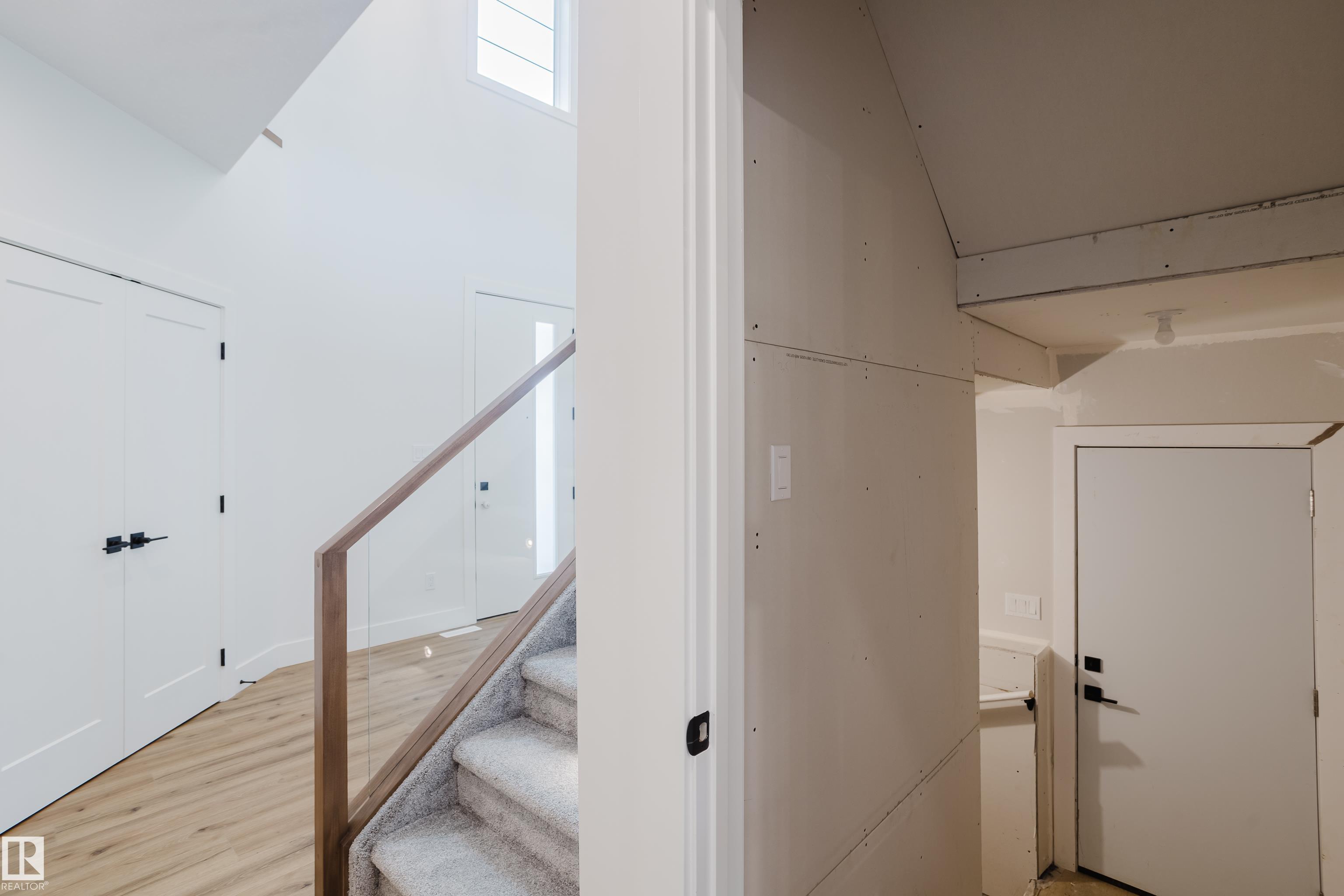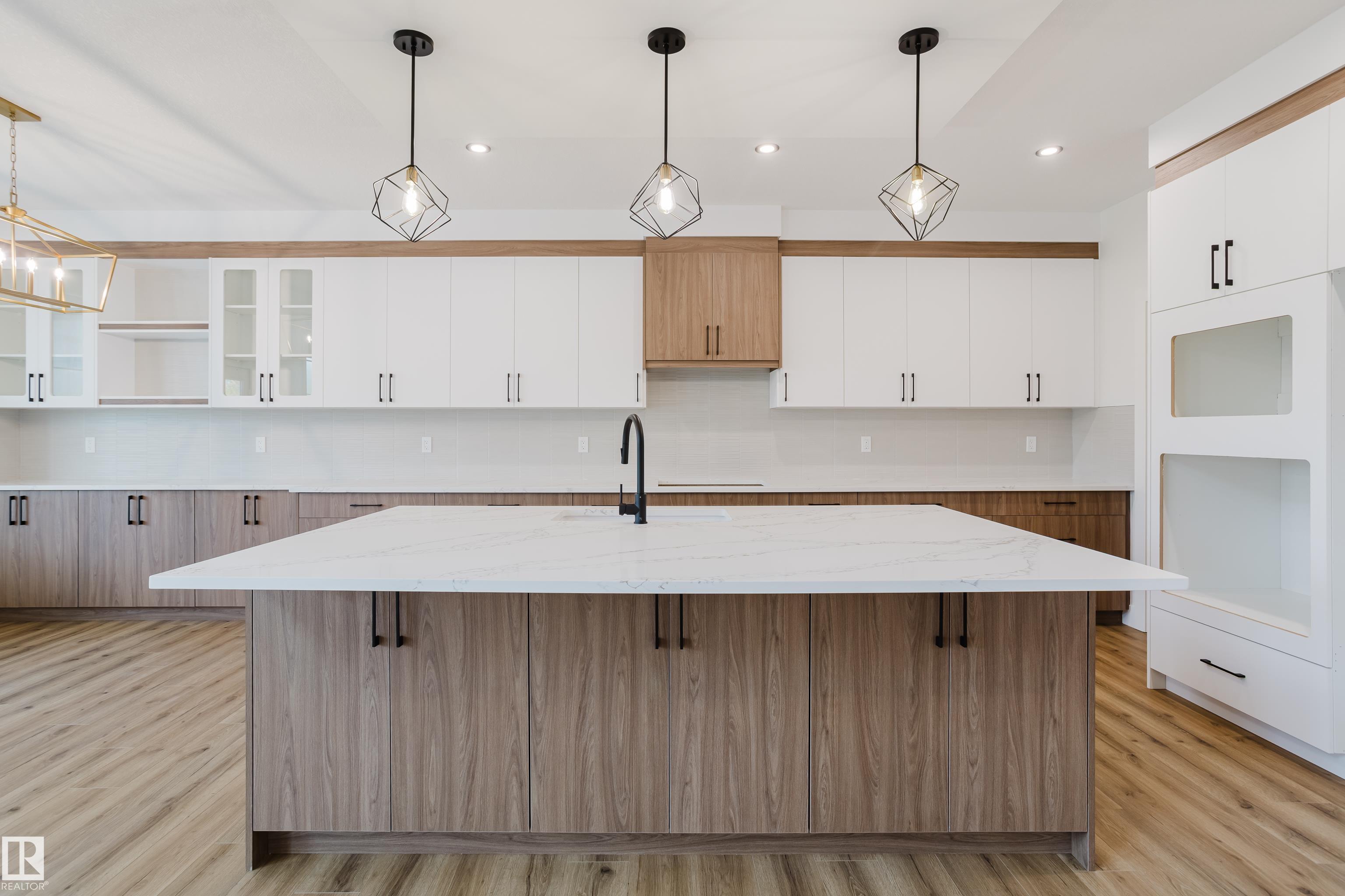 Experience elevated living in this brand new triple car garage home in The Uplands, backing onto a peaceful ravine for stunning views and privacy. This thoughtfully designed residence features a dramatic open-to-below living room with a sleek fireplace, a spacious main floor office, and a full bathroom--perfect for guests or working from home. The extended chef's kitchen offers premium finishes, abundant cabinetry, and a layout built for both function and entertaining. Elegant glass railings and illuminated step lights add a modern touch, while the upper level boasts a generously sized bedroom retreat, a versatile bonus room for family gatherings or relaxation, and a well-appointed laundry room with built-in cabinets for added convenience and organization. Outdoor living is elevated with a covered deck and an upper balcony overlooking the ravine, ideal for morning coffee or evening entertaining. A dedicated side entrance to the basement provides excellent flexibility for future development.