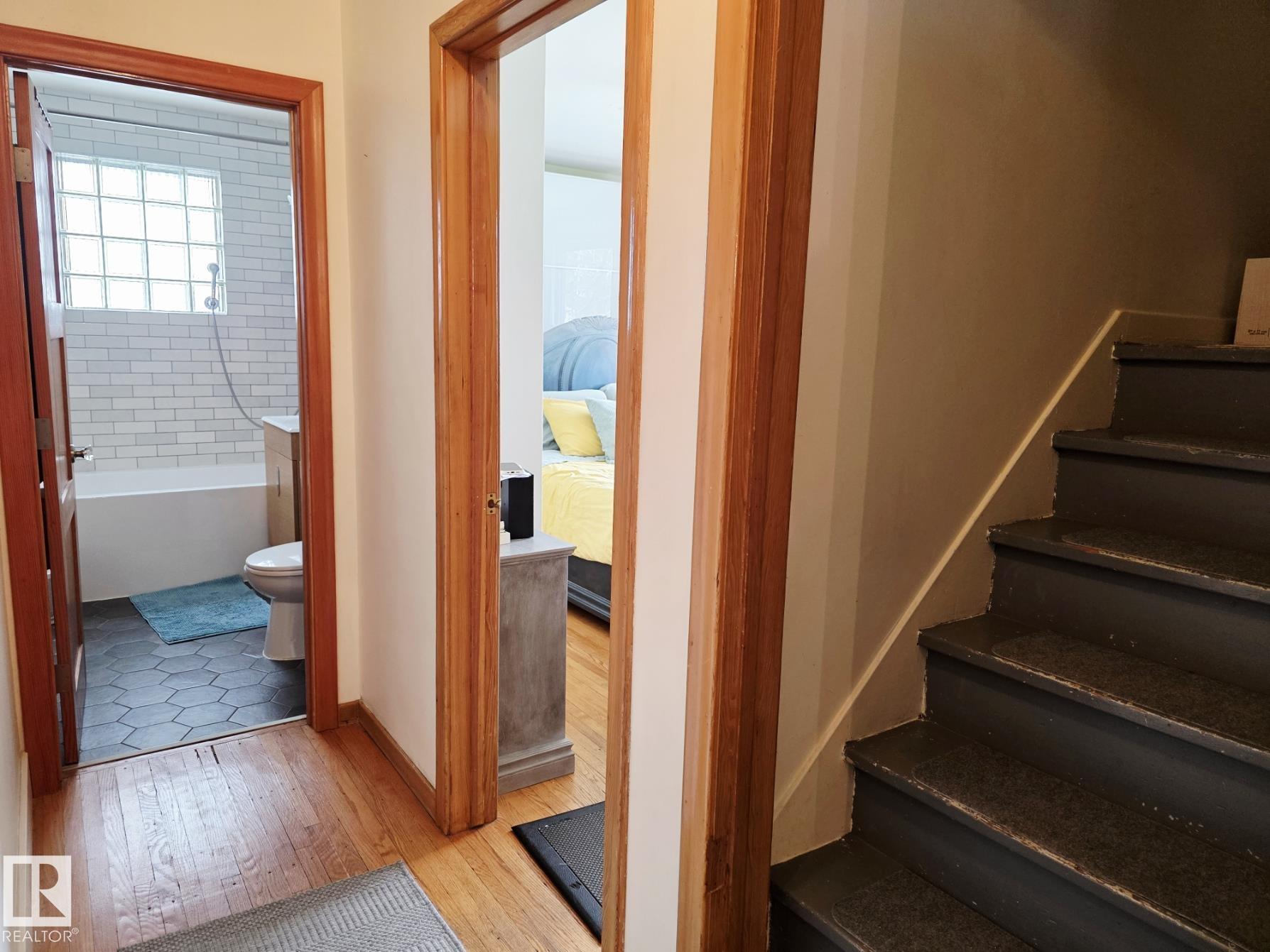 A rare redevelopment opportunity in Westmount, this MASSIVE 55' x 140' CORNER LOT offers incredible potential for a luxury custom build, infill project, redevelopment or long-term hold in a neighborhood where high-end development continues to thrive. Located on a quiet street just 2 blocks from the spray park and playground, 3 blocks to Westmount Fitness Club, and 3 blocks to Westglen School, the location perfectly blends lifestyle and convenience. Prefer to enjoy it now? The charming 1.5 Storey / semi-bungalow features a more open layout, original hardwood floors, upgraded oversized vinyl windows for abundant natural light, a renovated kitchen, stainless steel appliances with gas range, central A/C, and two updated four-piece bathrooms. Finished basement w/ separate entrance offers potential for a second kitchen. Oversized 24x24 Garage w/ extra parking. Step outside to a park-like backyard with a 21' x 17' deck, raised garden beds, and a stunning mature cherry tree--a rare find in the heart of the city.