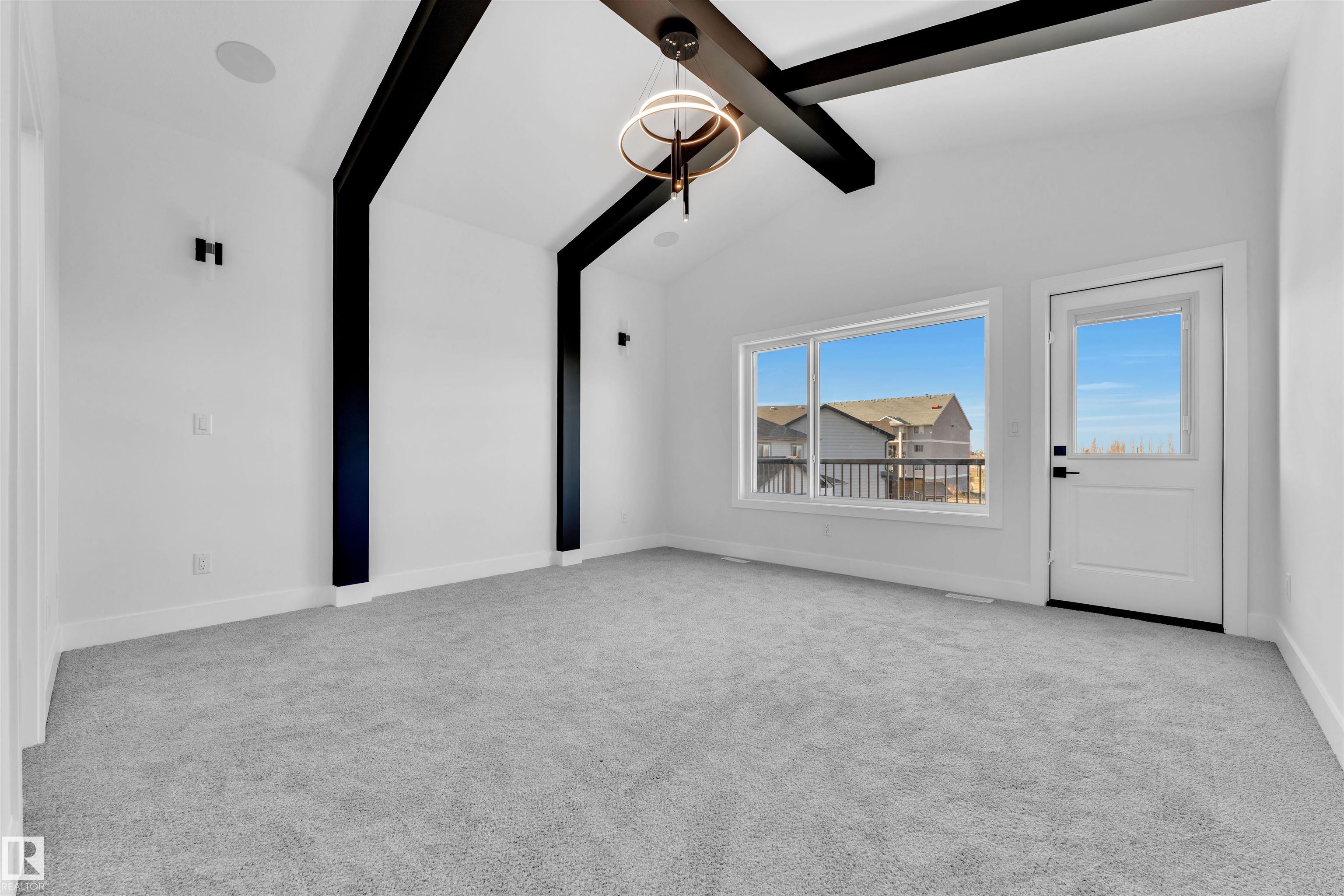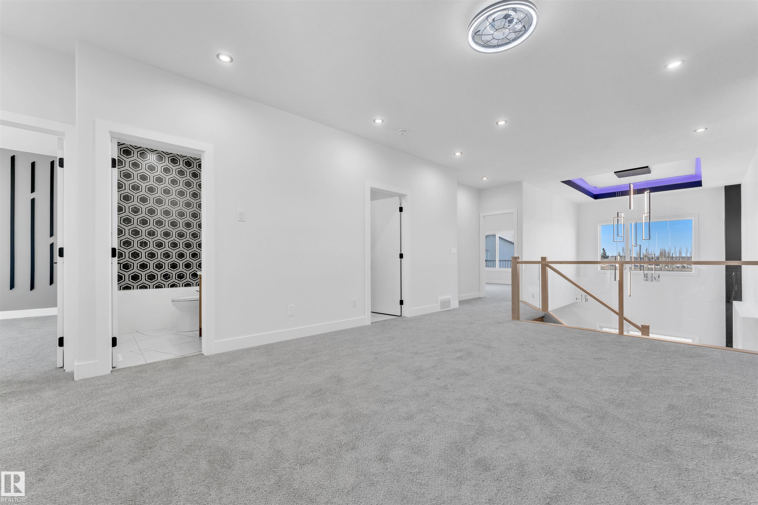 Step into luxury with this fully upgraded custom WALKOUT double car garage home BACKING TO Green Space ! The main floor features a spacious den and a stylish half bath for added convenience. The chef-inspired kitchen is a true masterpiece, complete with a unique center island and a pantry for ample storage. The open-concept living area showcases a custom feature wall, while the adjacent dining space offers direct access to the FULL SIZE DECK ideal for entertaining. The upper level you will find a spacious bonus room. Grand primary suite with a stunning feature wall, a 5-piece ensuite with custom finishes, a large walk-in closet & BALCONY. Two additional bedrooms with their own walk in closet & common bathroom. Laundry is conveniently located upstairs. The unfinished WALKOUT basement offers endless potential for your personal touch. This home is a true masterpiece, don't miss your chance to make it yours!