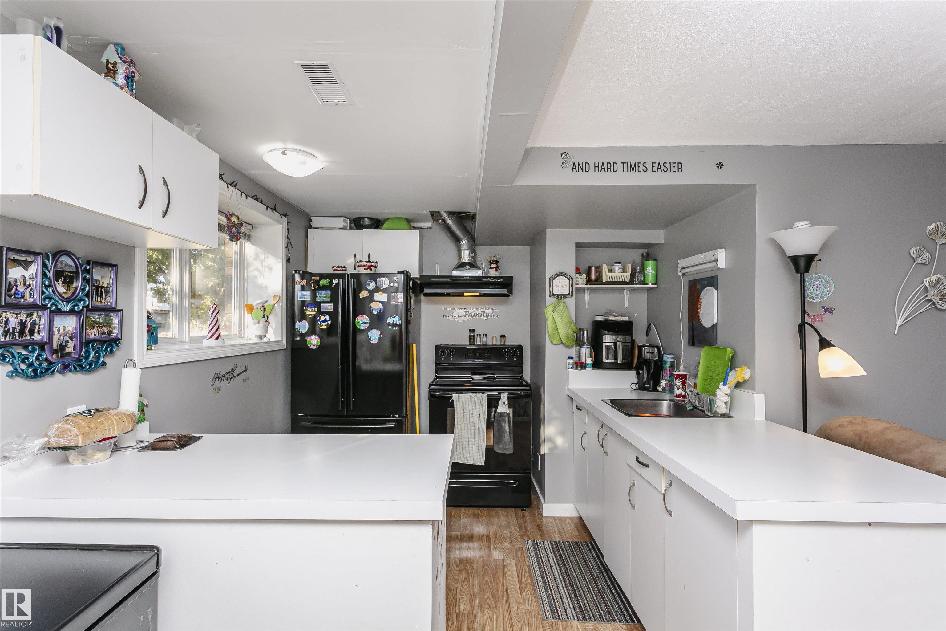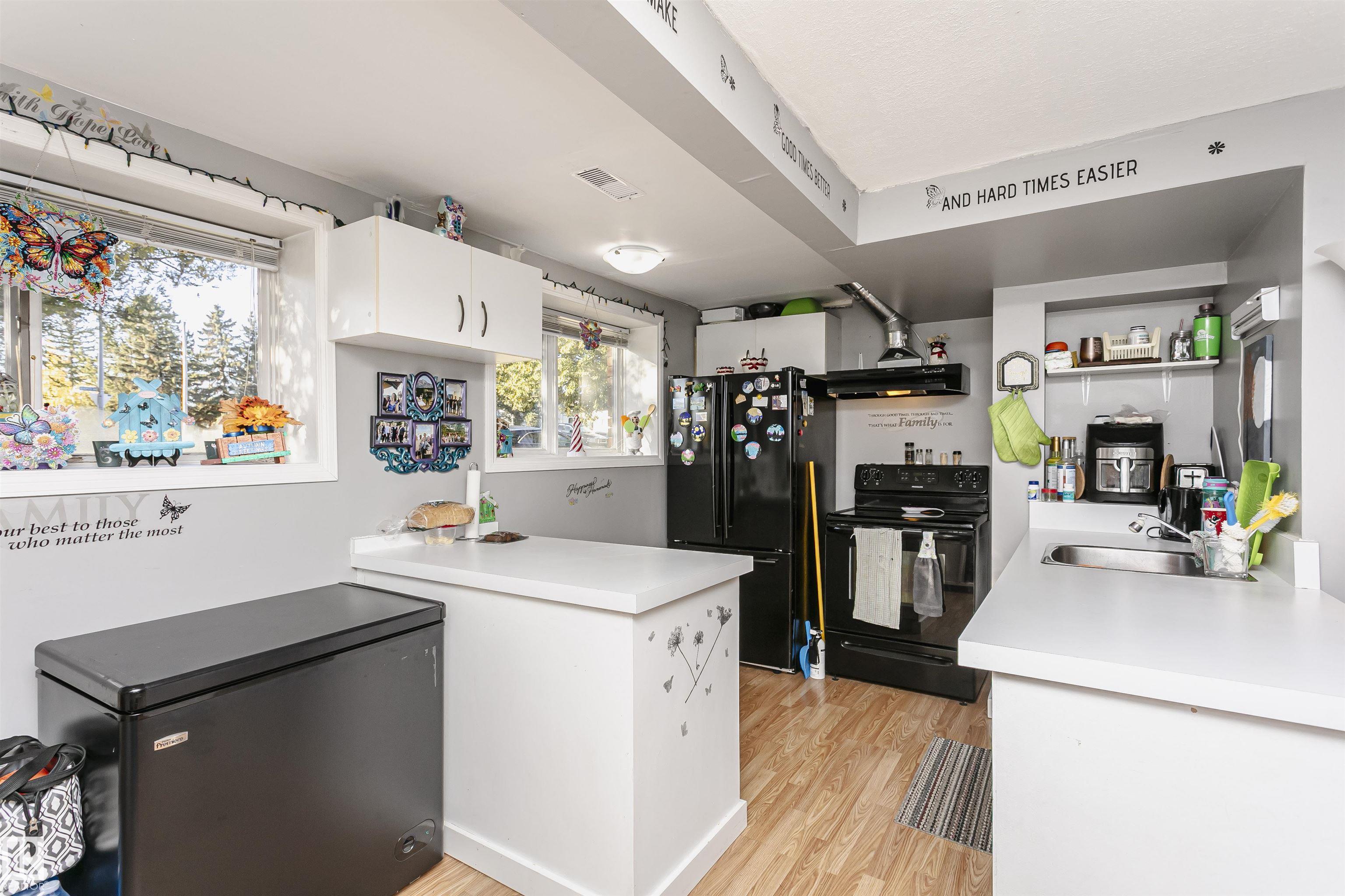 Are you looking for an AFFORDABLE 4-bedroom bi-level with a double detached garage? This functional home checks all the boxes. The main floor features a bright open living room, formal dining area, and upgraded eat in kitchen. Spacious primary bedroom with a 4-piece ensuite and big closet, plus two more bedrooms and another full bath. Patio doors leading to a huge deck--perfect for BBQs and summer nights! The legal basement suite is a showstopper with a bright kitchen, 3-piece bath, oversized bedroom, cozy living room with a gas fireplace, and large windows that fill the space with light. Updates include upstairs newer windows, 2 furnaces, hot water tank, shingles (2015) . The large garage also has extra parking on the side, enough room for a trailer. Great location--walk to schools, parks, and shopping!