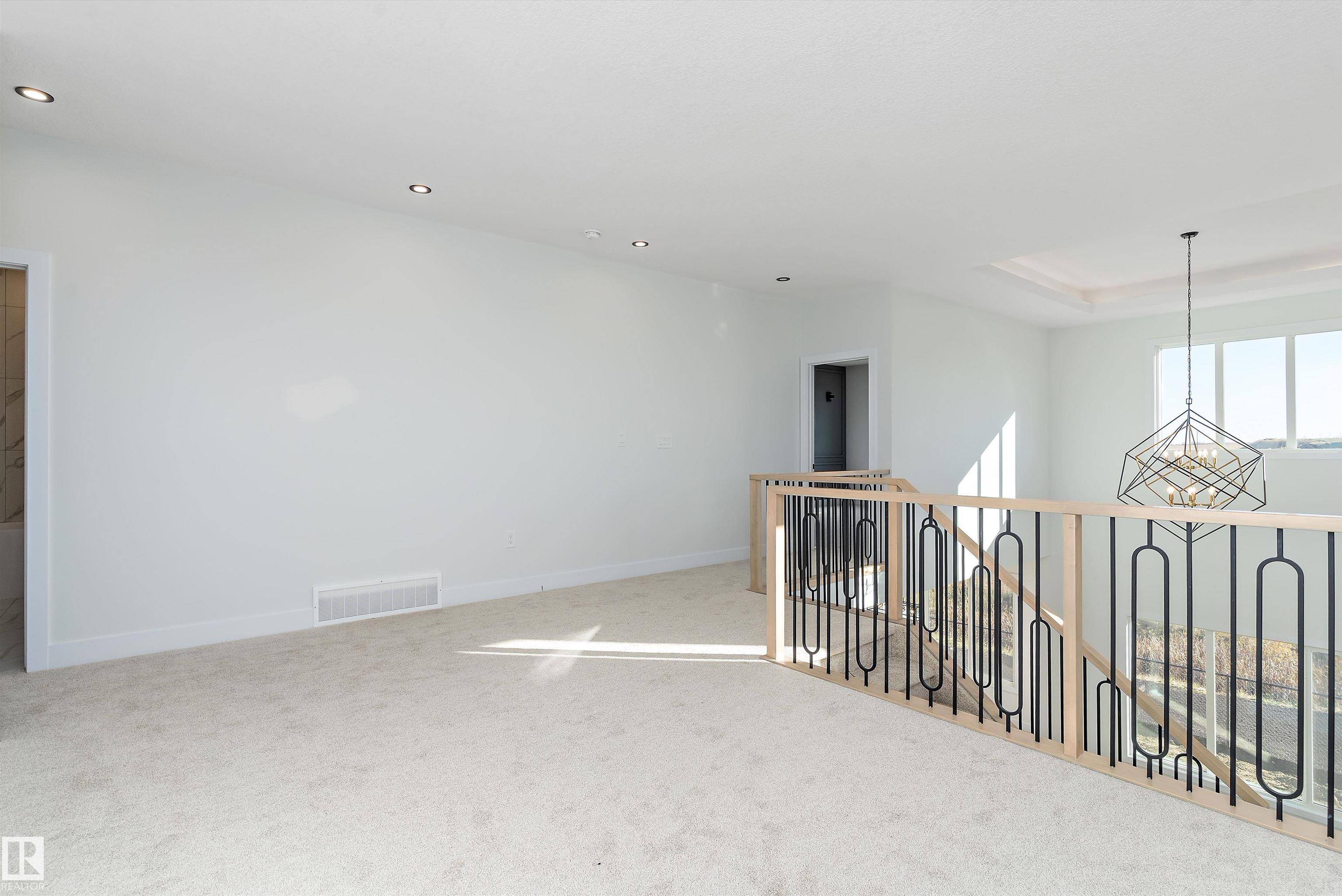 Welcome to this stunning new home in the serene community of Devon Ravines! Thoughtfully designed for comfort and functionality, this home backs onto the ravine and green space, offering privacy and beautiful natural views. The bright main floor features an open layout with a modern kitchen complete with a walkthrough pantry for added convenience. The dining area flows into the open-to-below living room, highlighted by a contemporary fireplace and oversized windows that fill the space with natural light. Upstairs, you'll find two spacious bedrooms, including a large primary suite with a walk-in closet and a 5-piece ensuite featuring a soaker tub and separate shower. A versatile bonus room and upper-level laundry add everyday convenience. This new home combines quality finishes, a thoughtful layout, and a peaceful setting close to parks, schools, and walking trails. Don't miss this opportunity!