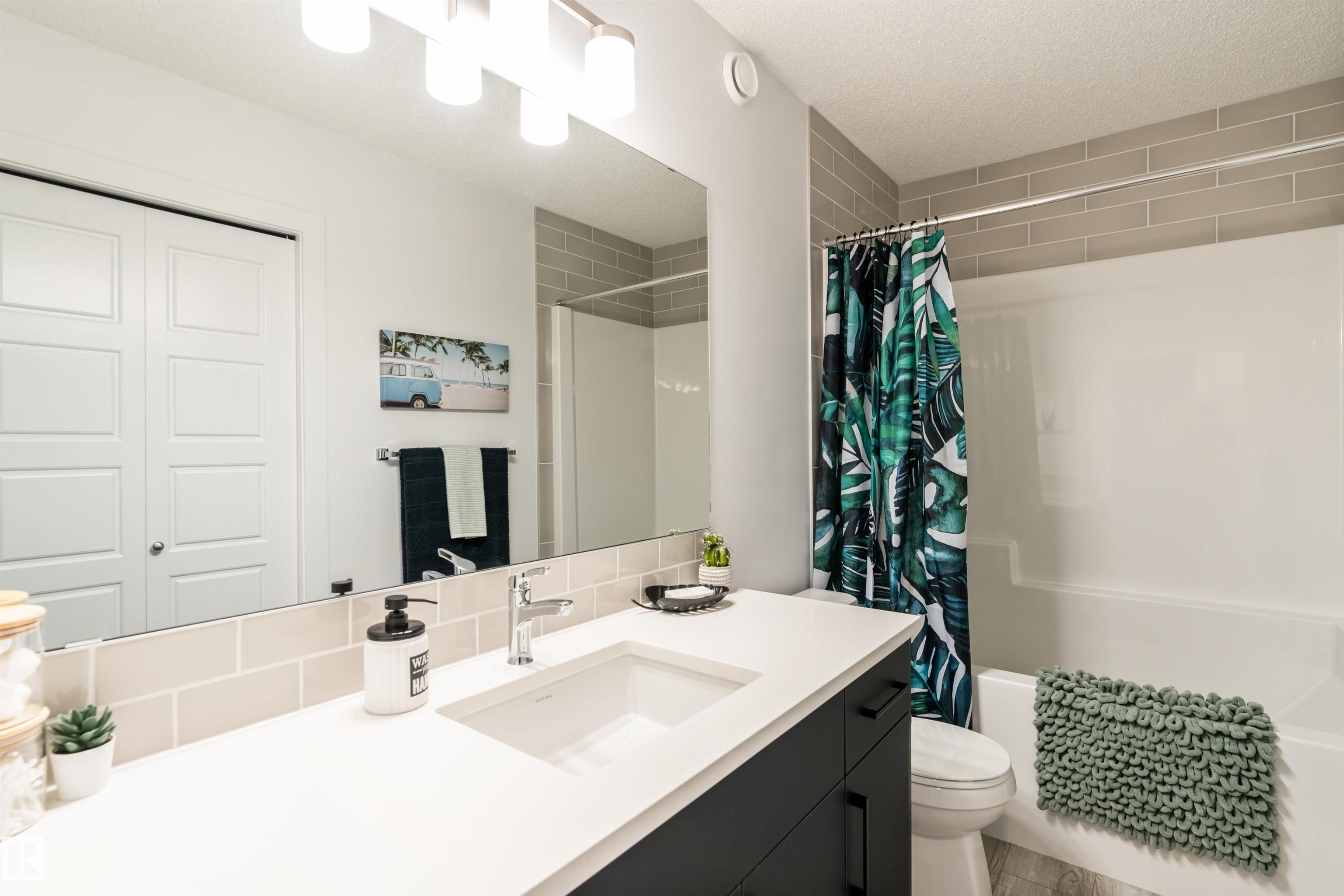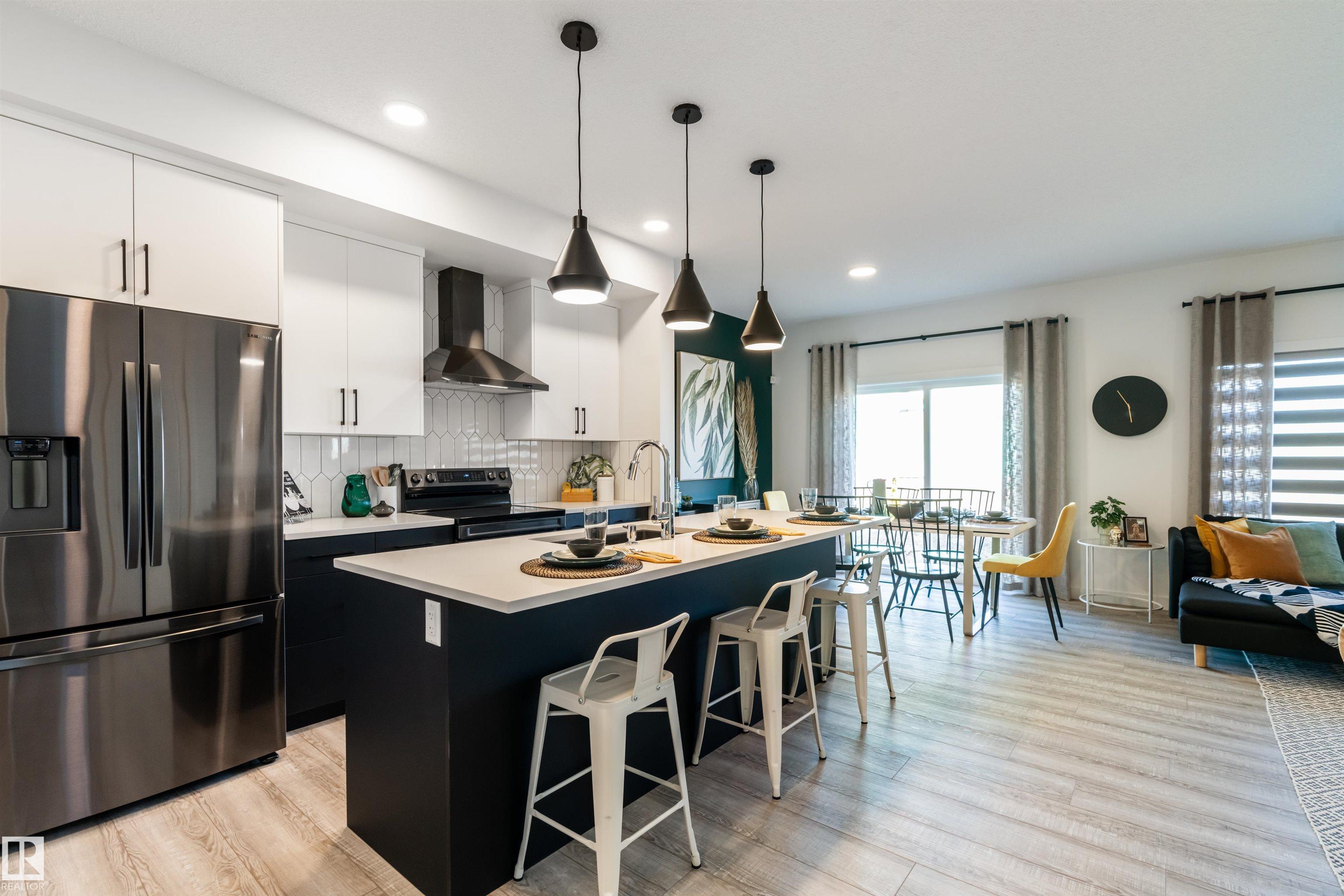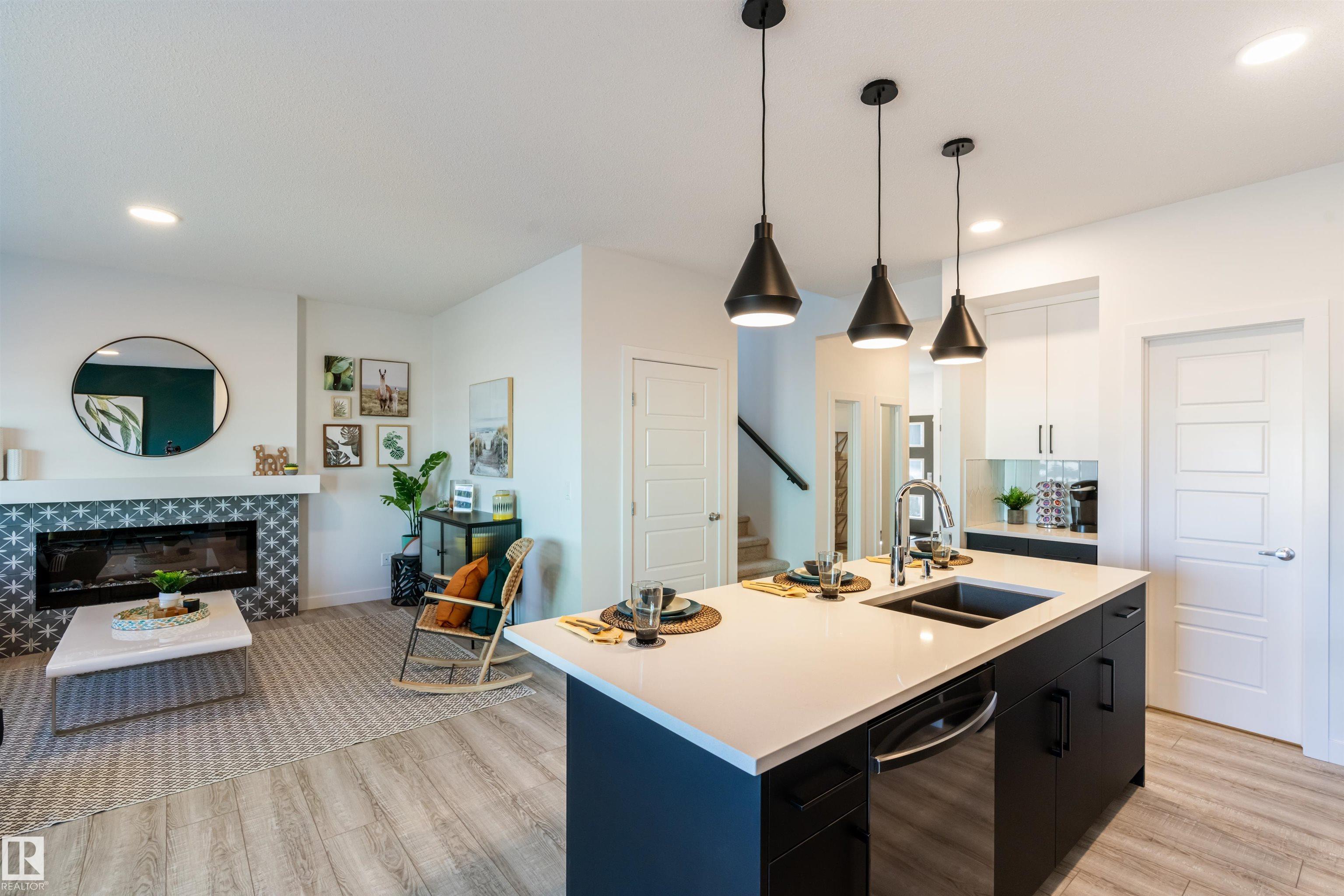 MOVE IN READY AND WAITING FOR YOU! In the desired community of Black Stone, the home features 4 bedrooms on the upper level and provides over 2,100 sf of UPGRADED family living. The main floor is highlighted by a GREAT kitchen with a large center island/eating bar, stone counter tops, an appliance allowance, a water line to the fridge, pot & pan drawers, soft-close doors/drawers plus an upgraded backsplash. Other main floor highlights include 9' ceilings, a functional family room with fireplace, wood & metal spindle railings, and a MAIN FLOOR DEN for working from home. The upper level features a HUGE master bedroom with a vaulted ceiling, double sinks, a free standing soaker tub, a walk-in shower plus the washer/dryer are conveniently located. Other highlightS include a SEPERATE SIDE ENTRANCE to the basement (9',ceilings) with rough-ins for a bathroom, wet bar & laundry. The gas lines for the BBQ and kitchen are also roughed-in PLUS the attached garage has an 8' door and is 2' longer. THIS IS THE ONE!