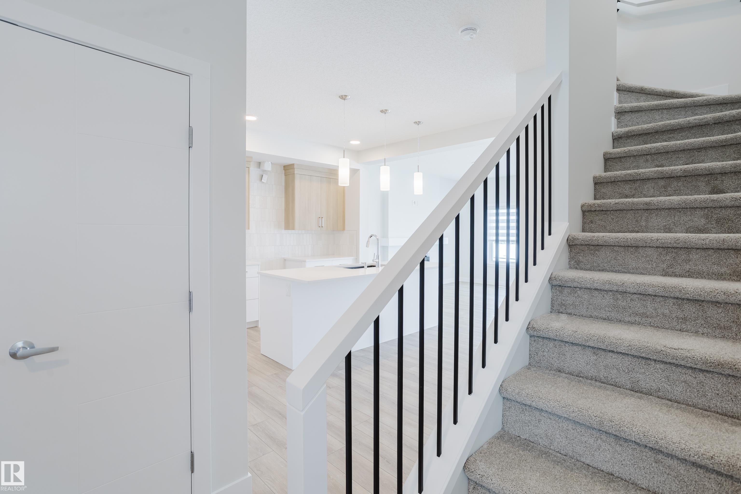 On a quiet street in the desired community of BLACKSTONE, this large Half-Duplex with an attached double garage provides over 1,500 sf of FUNCTIONAL Family Living! The Main Floor features 9' ceilings, a GREAT kitchen with a big center island/eating bar with provision for a built in microwave, quartz countertops, soft close cabinets, an UPGRADED BACK SPLASH, pot/pan drawers, and a large eating area. Other highlights include wood and metal railings, WINDOW COVERINGS throughout, plus a GREAT ROOM with a fireplace and Big windows that flood the home with light! The 2nd level provides a BONUS ROOM, space for a Washer/Dryer, and a LARGE master bedroom with a walk-in closet and a luxury ensuite with 2-sinks and a walk-in shower! A SPERATE SIDE ENTRANCE leads you to the basement with 9 'foundation walls, an egress window, PLUS rough-ins for a 2nd furnace, laundry area, and a wet bar. Outside...you will love the rear deck with aluminium railings and a BBQ gas hook up. CLOSE TO WALKING TRAILS AND A PLAYGROUND!