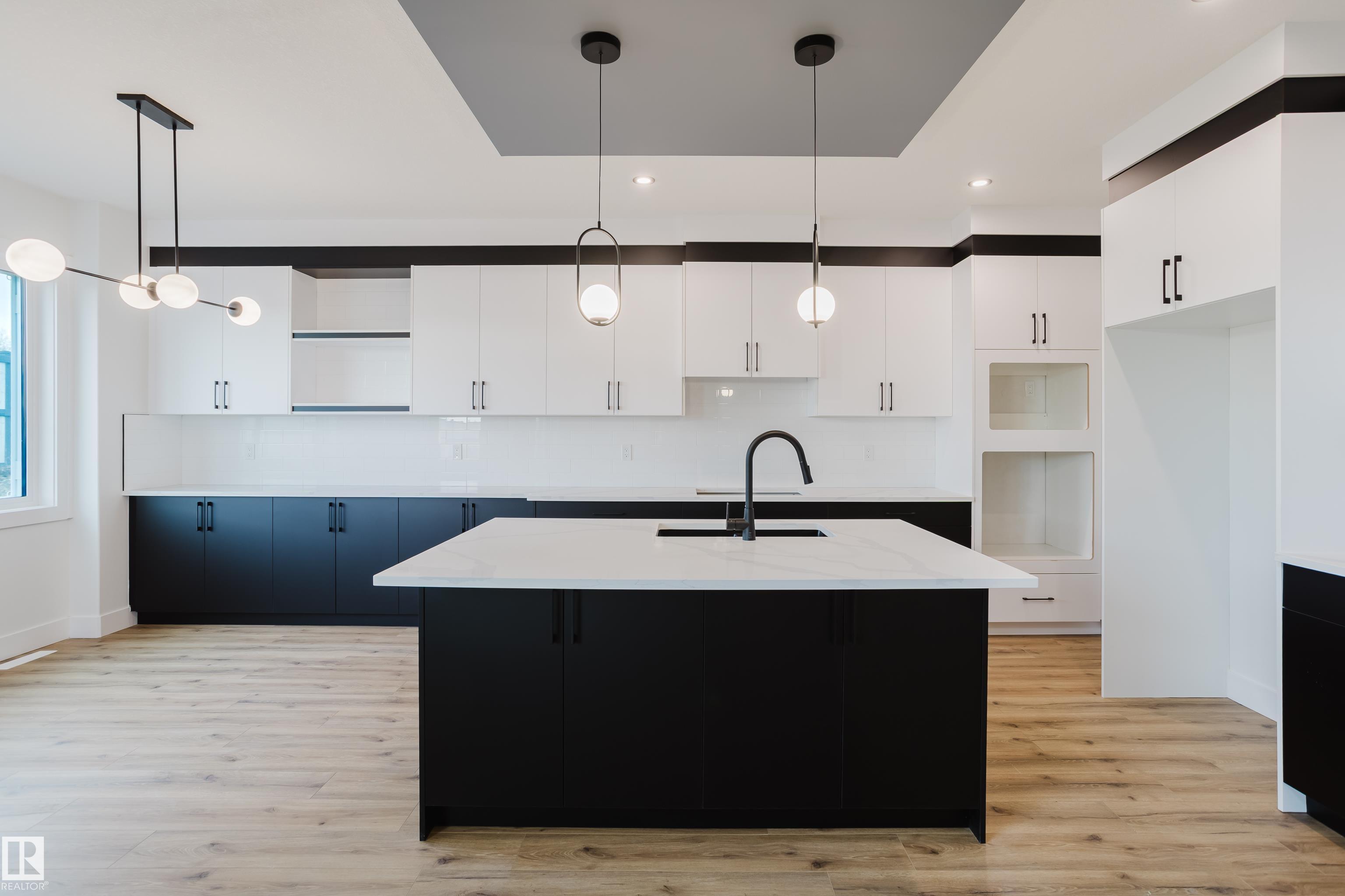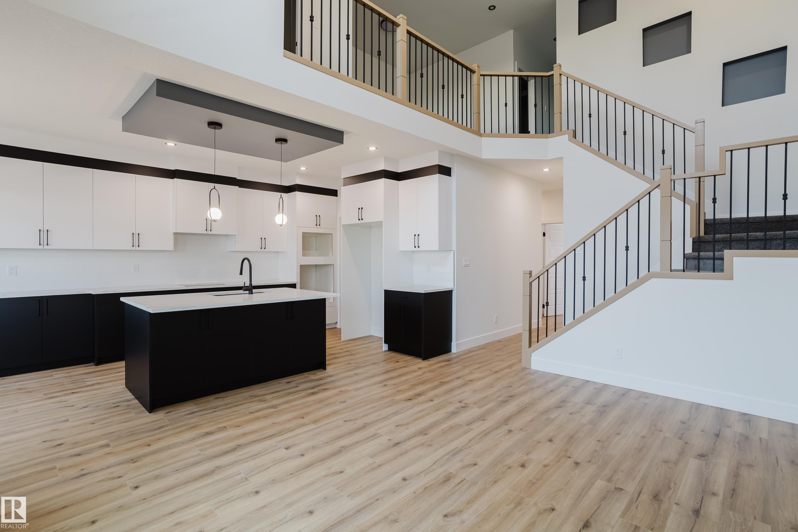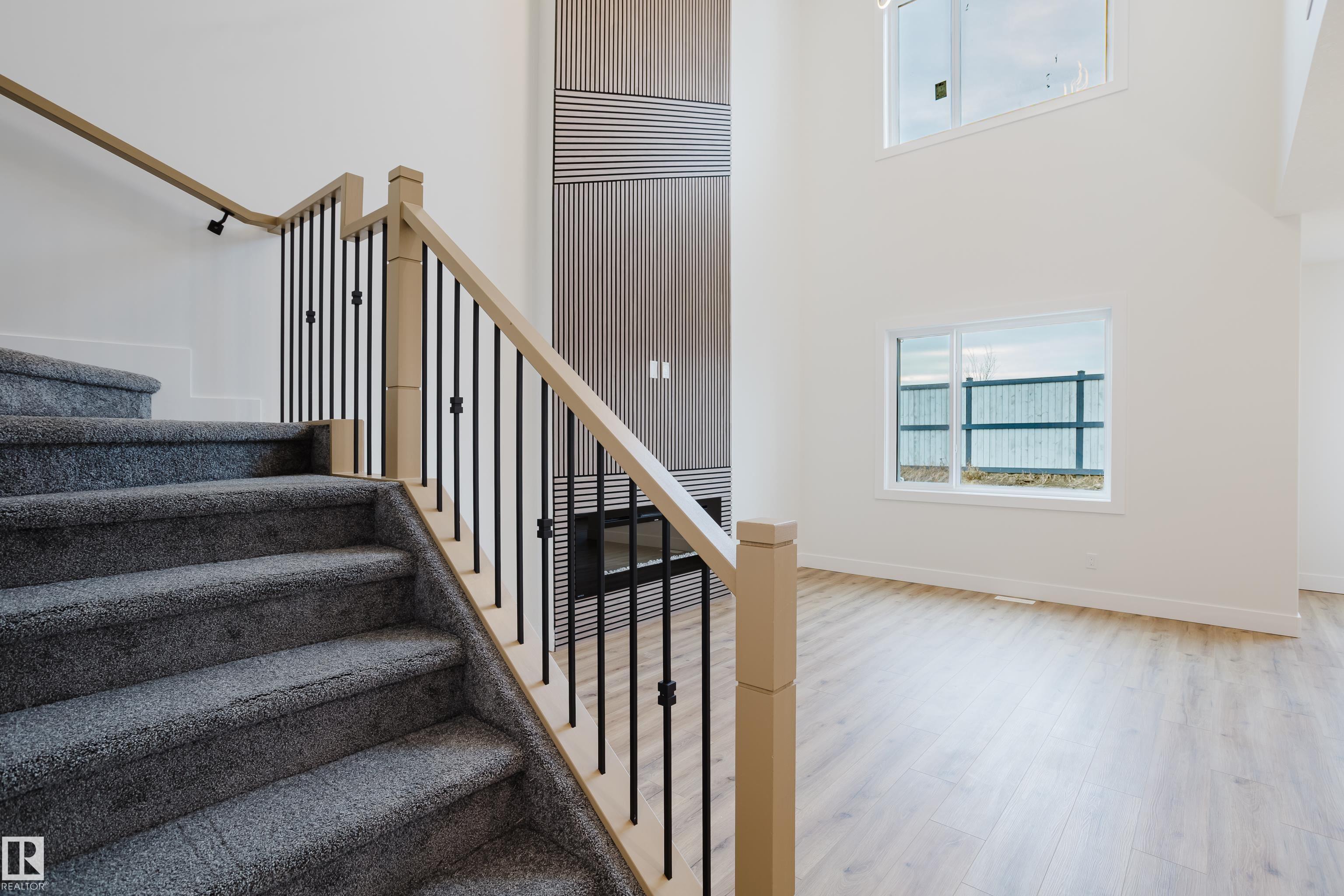 Welcome to this beautifully designed 4-bedroom, 3-bathroom home located in the desirable community of Meadowview in Leduc. The main floor features modern vinyl plank flooring, 9-foot ceilings, and an impressive open-to-above living room that allows for an abundance of natural light. A main-floor bedroom and full bathroom offer flexible living options, ideal for guests or multi-generational families. The kitchen is equipped with contemporary finishes and connects seamlessly to the dining area, making it perfect for everyday living and entertaining. Upstairs, you'll find three spacious bedrooms, including a primary suite with a 5-piece ensuite featuring a separate shower and soaker tub. The unfinished basement includes a separate entrance for potential future development. Located close to schools, parks, and amenities, this home offers both comfort and convenience in a growing family-friendly neighbourhood.